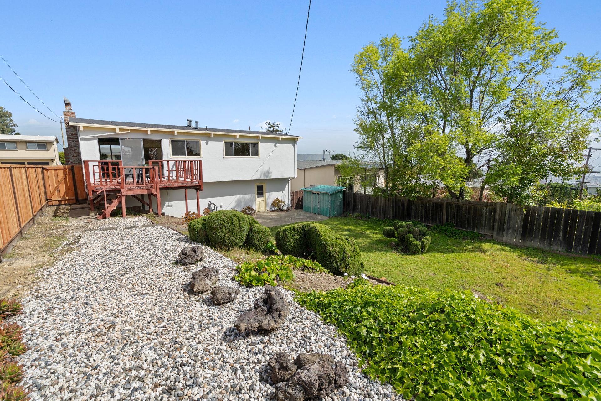 - Spacious, fully fenced yard space is a blank slate for creativity complete with a Granny Smith Apple Tree and Asian Pear Tree