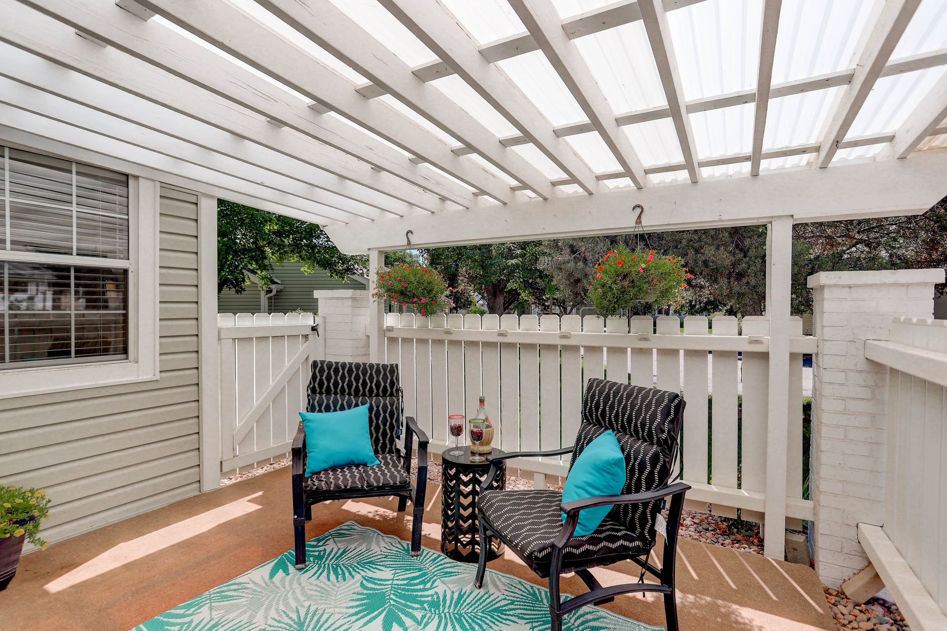 Welcome home to this lovely ranch patio home in the terrific neighborhood of Heather Gardens. You will love living a carefree lifestyle with low-maintenance living. The home has absolutely no stairs at the front porch, garage or onto the back patio. The entry with a new door leads you down the hall to a bright living room with vaulted ceilings and a natural stone fireplace. You will love the new kitchen cabinetry, hardware, granite countertop, white farm sink with a new faucet and window that overlooks the green space. The kitchen ceiling soffit was removed and now has low-voltage lighting with beetle-kill wood trim. The large primary bedroom has a double closet and a separate vanity sink area. The bathroom is private with its own door and beautifully tiled walk-in shower. The second bedroom and/or office has a bay window and is just across the hall from a full bathroom and laundry closet. Imagine enjoying the respite of a covered back patio with two gates to access the green space. There is plenty of storage in the two-car attached garage. Just down the street is a lovely pond with benches for your enjoyment. This active adult community and lifestyle provides more than 100 activities, clubs and classes. The 50,000 square-foot community clubhouse features the Rendezvous restaurant with a patio, fitness center, billiard room, ping pong, indoor and outdoor heated swimming pools, jacuzzi and sauna. The Executive nine-hole golf course offers league play, low green fees, golf rentals and lessons. Close to Cherry Creek State Park, Light Rail, Denver International Airport, shopping, restaurants and trails makes this an amazing centrally located place to call home.