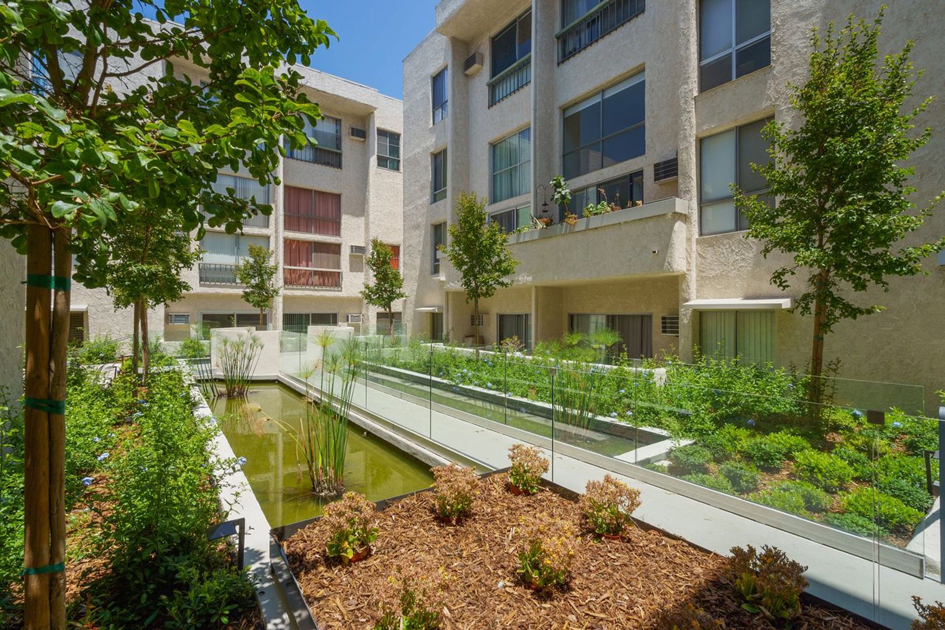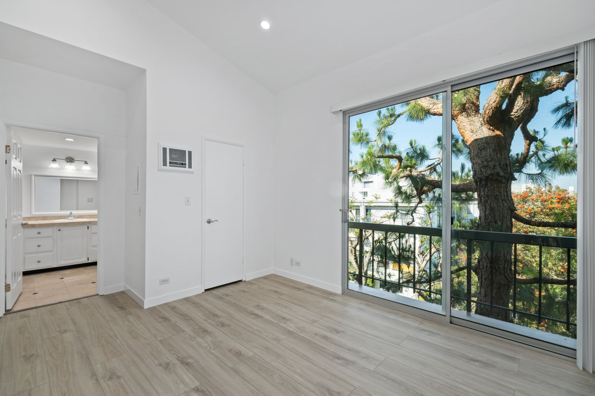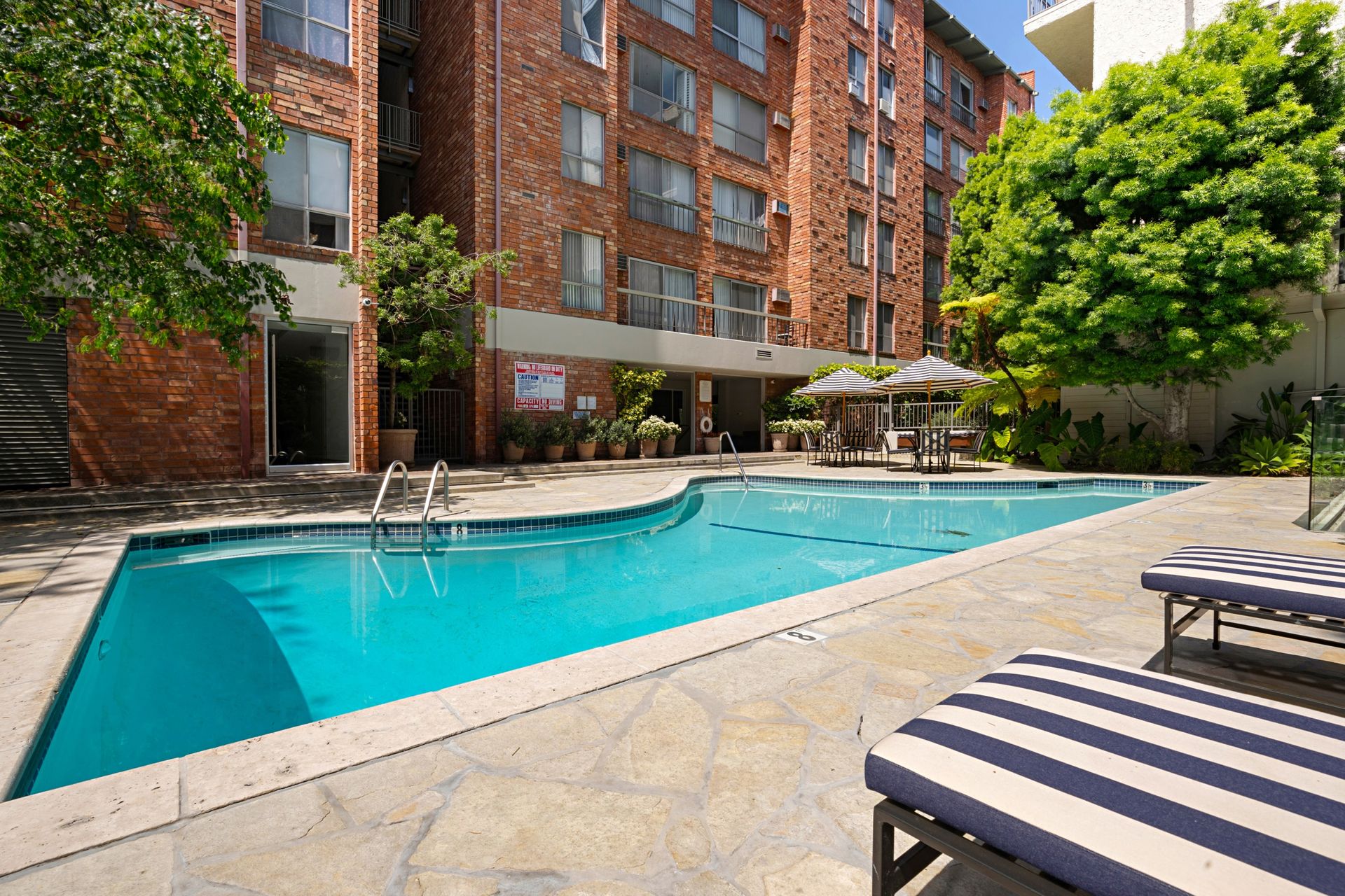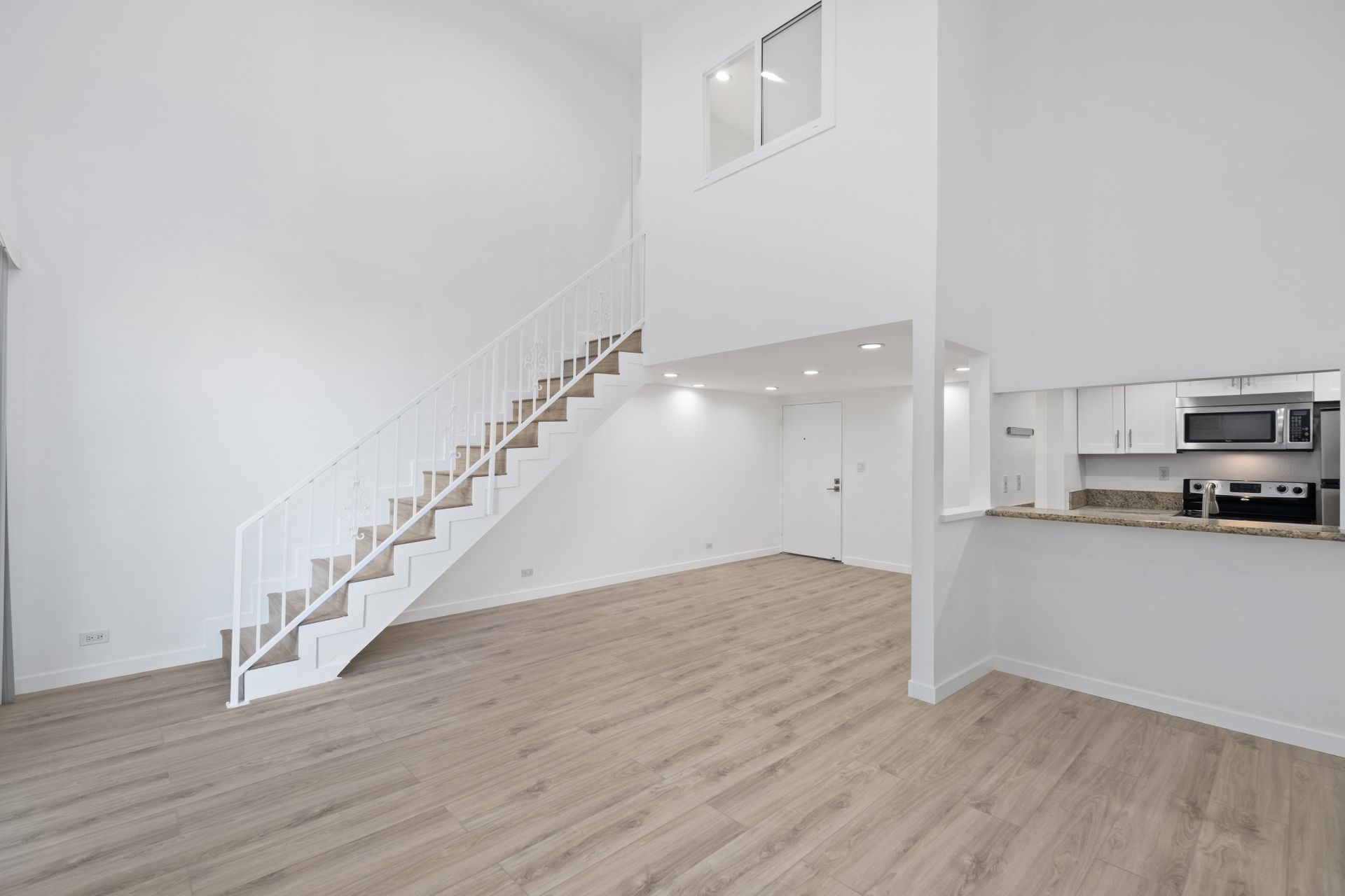 If you want to live in hip boutique hotel environment...look no further. This beautiful resort-style building is centrally located in the heart of Westwood. The complex features a 24-hour security guard, package delivery check-in & digital notification system, on-site manager, professional fitness center with a gym, steam room and sauna, a party room with a catering kitchen, separate lounge/conference room, bicycle storage rooms and more. Imagine relaxing in the outdoor space that features; lush landscaping, waterfalls, outdoor lounging areas, heated pool and spa, koi ponds and friendly turtles. Located up above the Westwood skyline, this 2-story top floor penthouse was just recently remodeled throughout. The loft style unit has 2 bedrooms, 2 baths, an updated kitchen with stainless steel appliances, vinyl plank flooring, double pane sliding glass doors and is nicely located on a corner of the building with tree top views from both balconies. High vaulted ceilings accent the spaciously open living and dining areas for an abundance of room for entertaining. The first floor bedroom has a plethora of storage; two slider closets and one walk in closet. Plus a full bathroom w/ more storage and in-unit stacked laundry for your convenience. The upstairs loft is often used as a 2nd bedroom or private office, has it's own three quarters bathroom and access to the bonus storage area. Condo comes with one assigned parking spot in the gated and secured garage. A large park with tennis, basketball courts and dog park are conveniently located across the street. All this and you are just moments away from UCLA, Westwood Village and the upcoming purple line subway station. Two EV car charging stations are available onsite. Rent includes; electricity, water & trash.