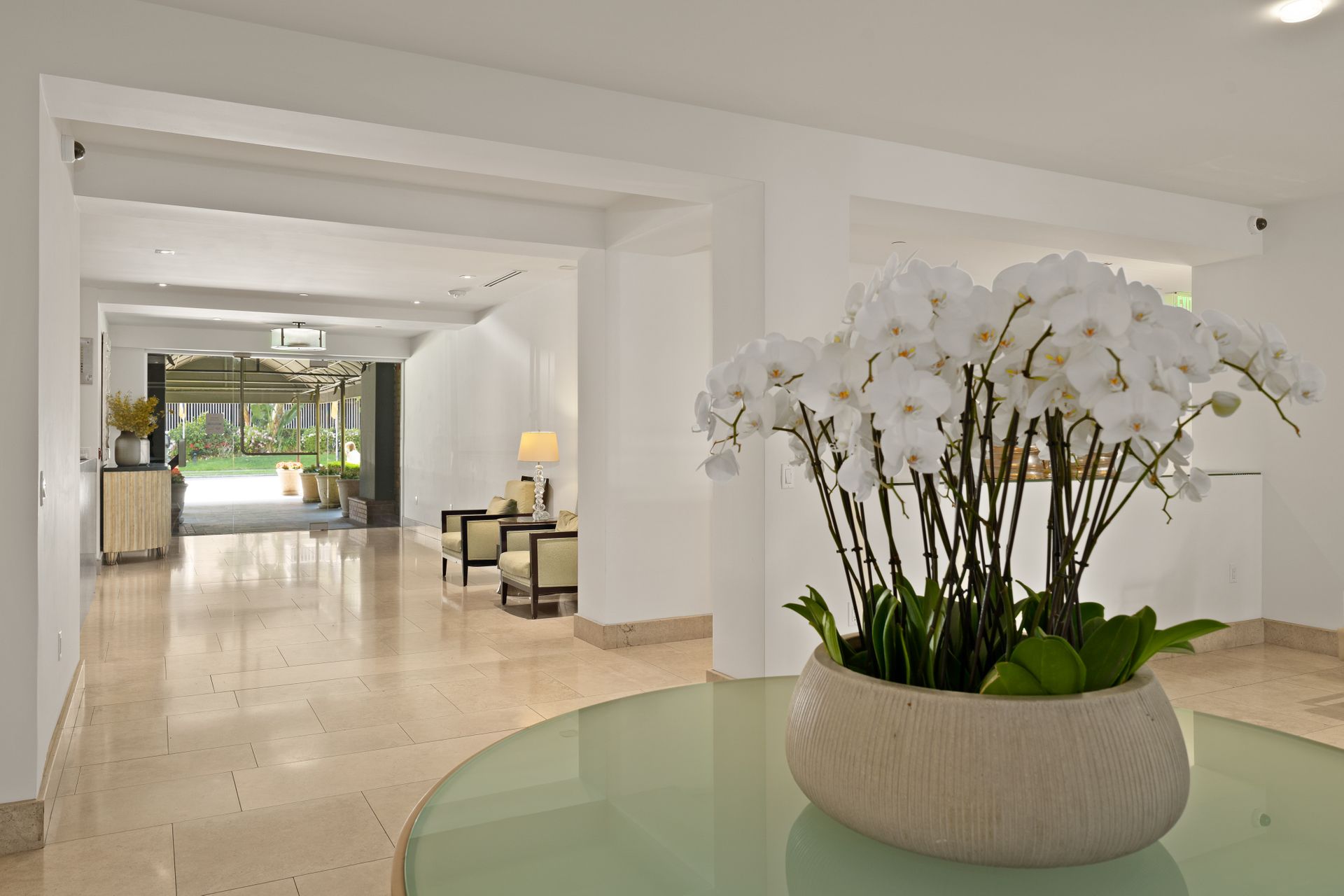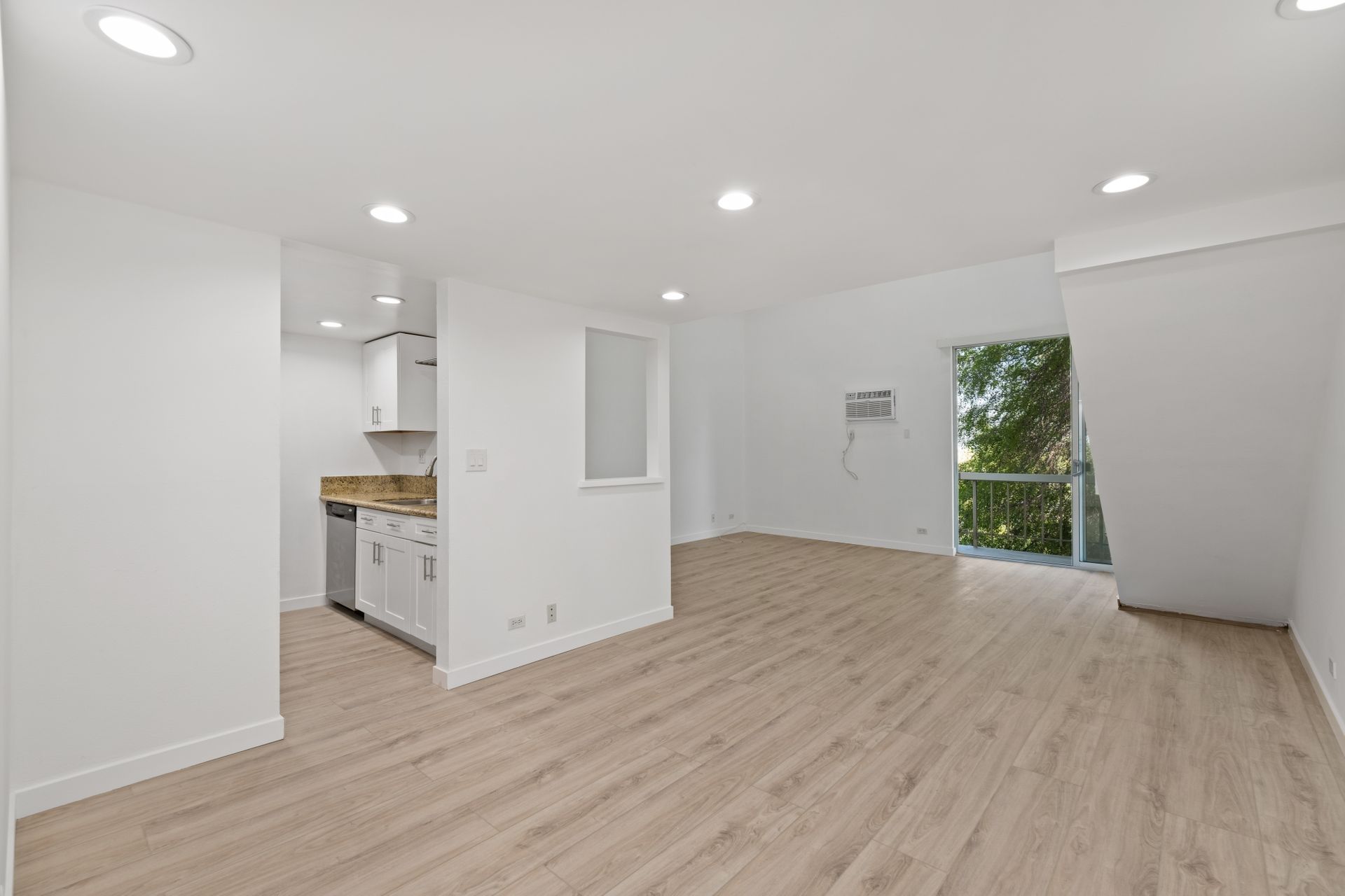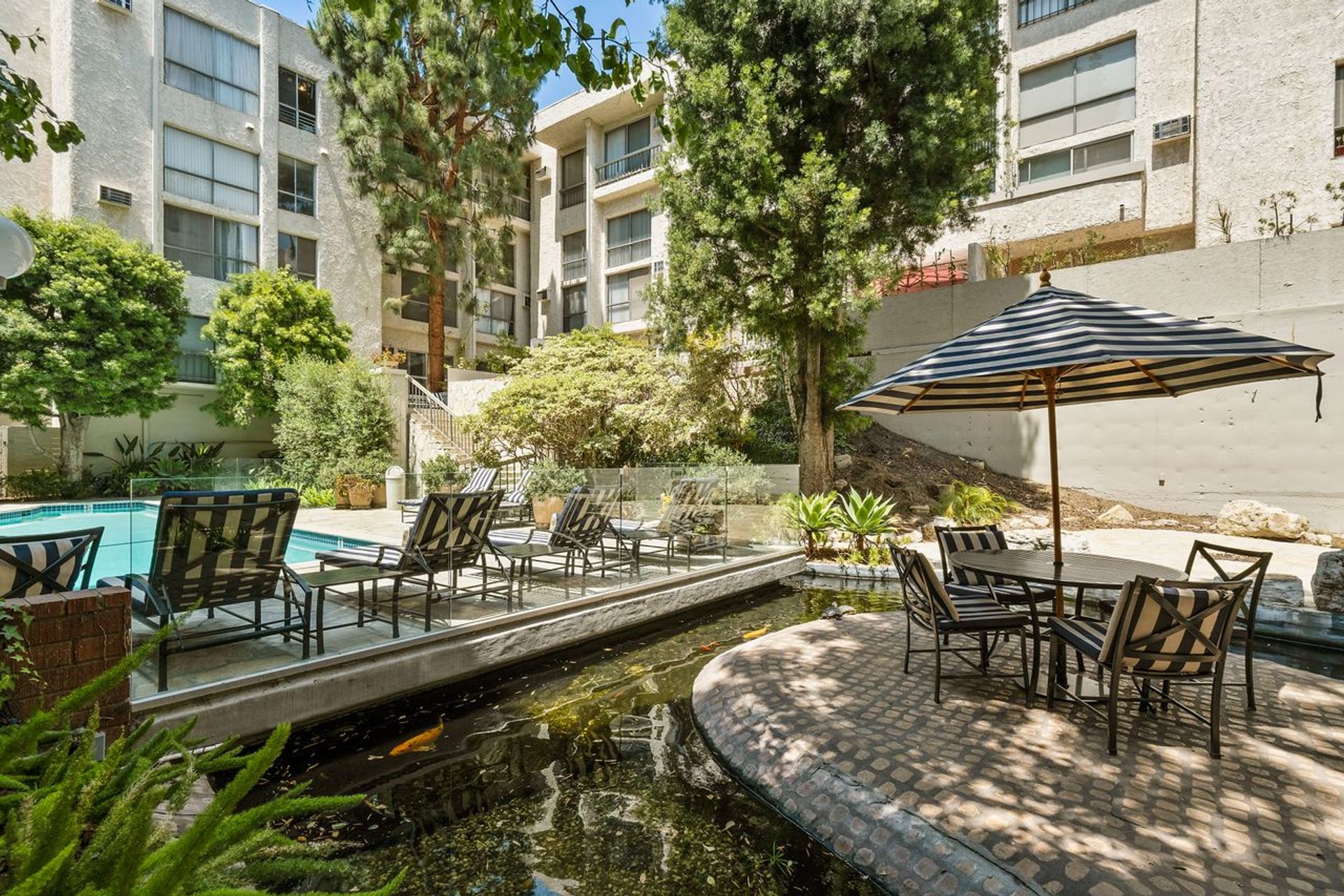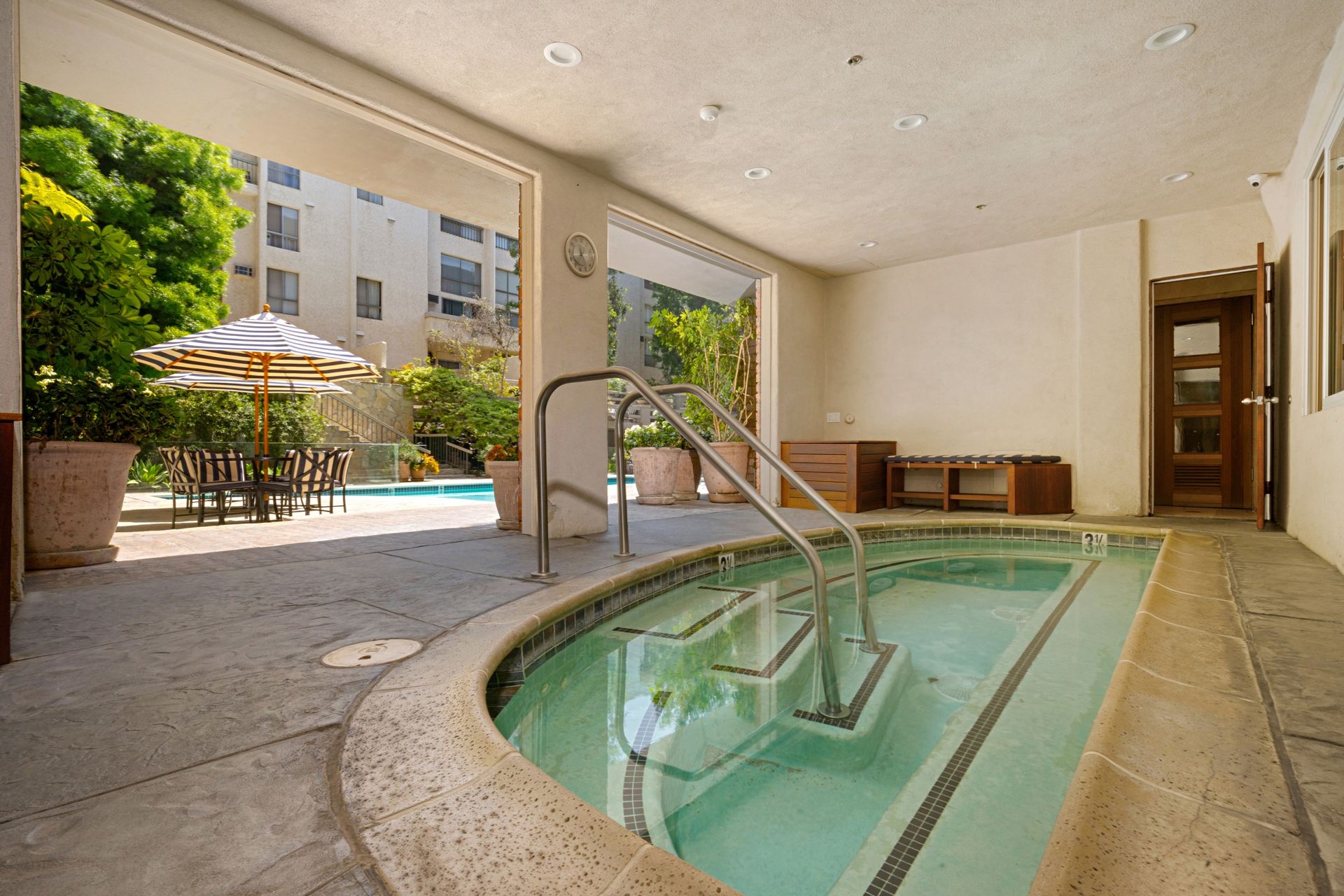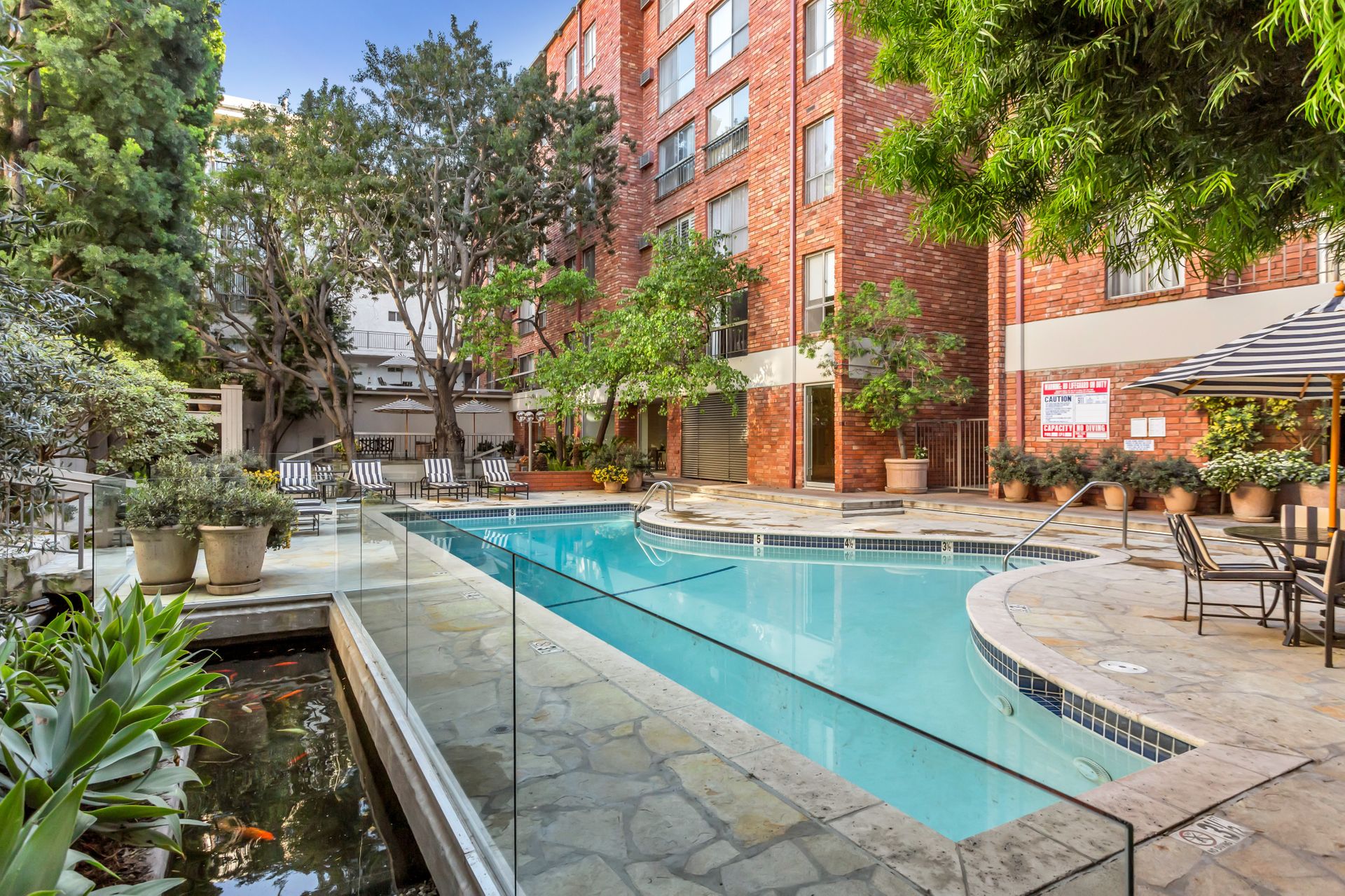 If you want to live in hip boutique hotel environment...look no further. This beautiful resort-style building is centrally located in the heart of Westwood. The complex features a 24-hour security guard, package delivery check-in & digital notification system, on-site manager, professional fitness center with a gym, steam room and sauna, a party room with a catering kitchen, separate lounge/conference room, bicycle storage rooms and more. Imagine relaxing in the outdoor space that features; lush landscaping, waterfalls, outdoor lounging areas, heated pool and spa, koi ponds and friendly turtles. Located up above the Westwood skyline, this 2-story top floor penthouse was just recently remodeled throughout. The loft style unit has 2 bedrooms, 2 baths, an updated kitchen with stainless steel appliances, vinyl plank flooring, double pane sliding glass doors and is nicely located on a corner of the building with tree top views from both balconies. High vaulted ceilings accent the spaciously open living and dining areas for an abundance of room for entertaining. The first floor bedroom has a plethora of storage; two slider closets and one walk in closet. Plus a full bathroom w/ more storage and in-unit stacked laundry for your convenience. The upstairs loft is often used as a 2nd bedroom or private office, has it's own three quarters bathroom and access to the bonus storage area. Condo comes with one assigned parking spot in the gated and secured garage. A large park with tennis, basketball courts and dog park are conveniently located across the street. All this and you are just moments away from UCLA, Westwood Village and the upcoming purple line subway station. Two EV car charging stations are available onsite. Rent includes; electricity, water & trash.