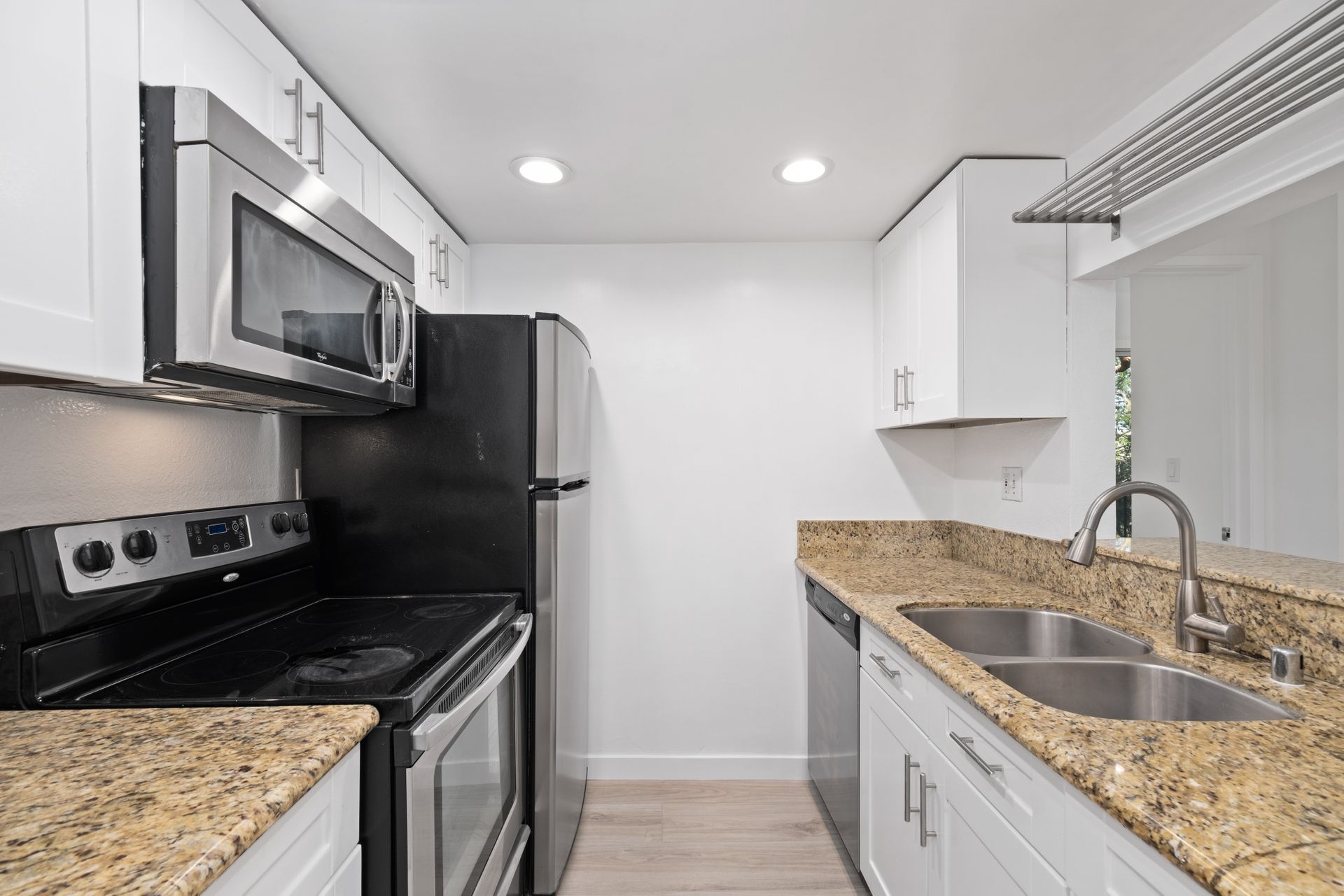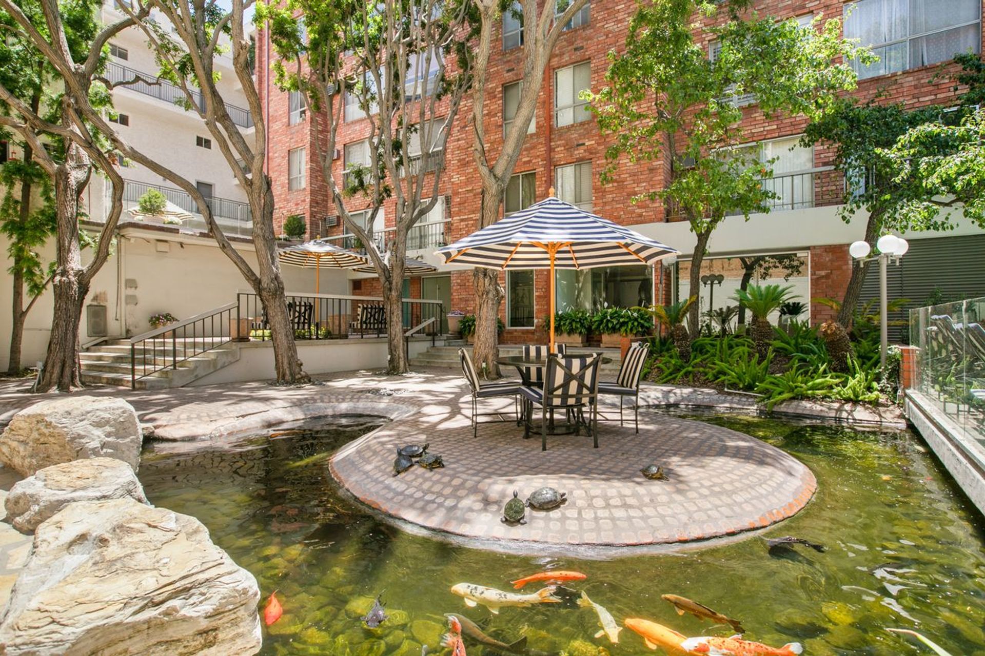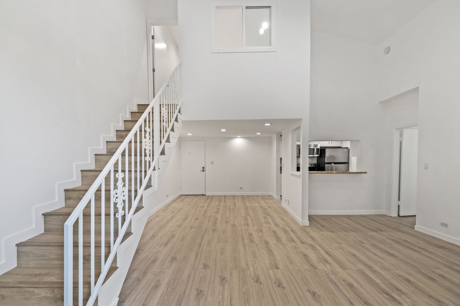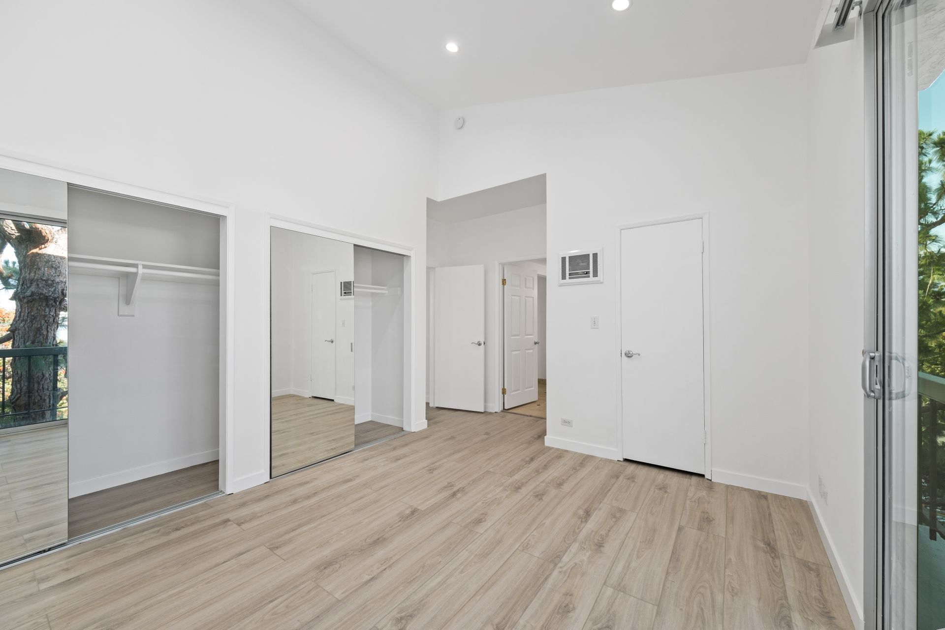 If you want to live in hip boutique hotel environment...look no further. This beautiful resort-style building is centrally located in the heart of Westwood. The complex features a 24-hour security guard, package delivery check-in & digital notification system, on-site manager, professional fitness center with a gym, steam room and sauna, a party room with a catering kitchen, separate lounge/conference room, bicycle storage rooms and more. Imagine relaxing in the outdoor space that features; lush landscaping, waterfalls, outdoor lounging areas, heated pool and spa, koi ponds and friendly turtles. Located up above the Westwood skyline, this 2-story top floor penthouse was just recently remodeled throughout. The loft style unit has 2 bedrooms, 2 baths, an updated kitchen with stainless steel appliances, vinyl plank flooring, double pane sliding glass doors and is nicely located on a corner of the building with tree top views from both balconies. High vaulted ceilings accent the spaciously open living and dining areas for an abundance of room for entertaining. The first floor bedroom has a plethora of storage; two slider closets and one walk in closet. Plus a full bathroom w/ more storage and in-unit stacked laundry for your convenience. The upstairs loft is often used as a 2nd bedroom or private office, has it's own three quarters bathroom and access to the bonus storage area. Condo comes with one assigned parking spot in the gated and secured garage. A large park with tennis, basketball courts and dog park are conveniently located across the street. All this and you are just moments away from UCLA, Westwood Village and the upcoming purple line subway station. Two EV car charging stations are available onsite. Rent includes; electricity, water & trash.