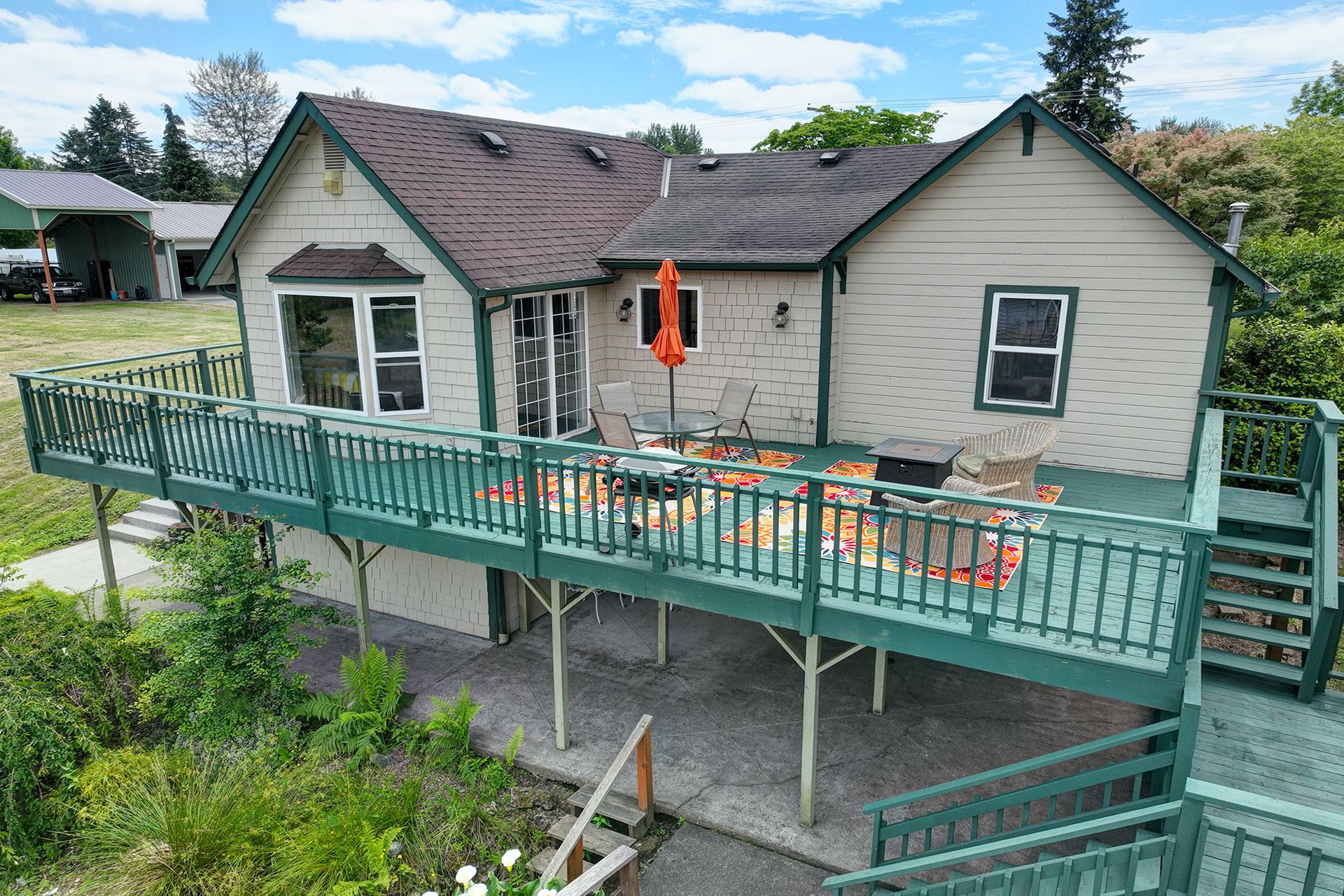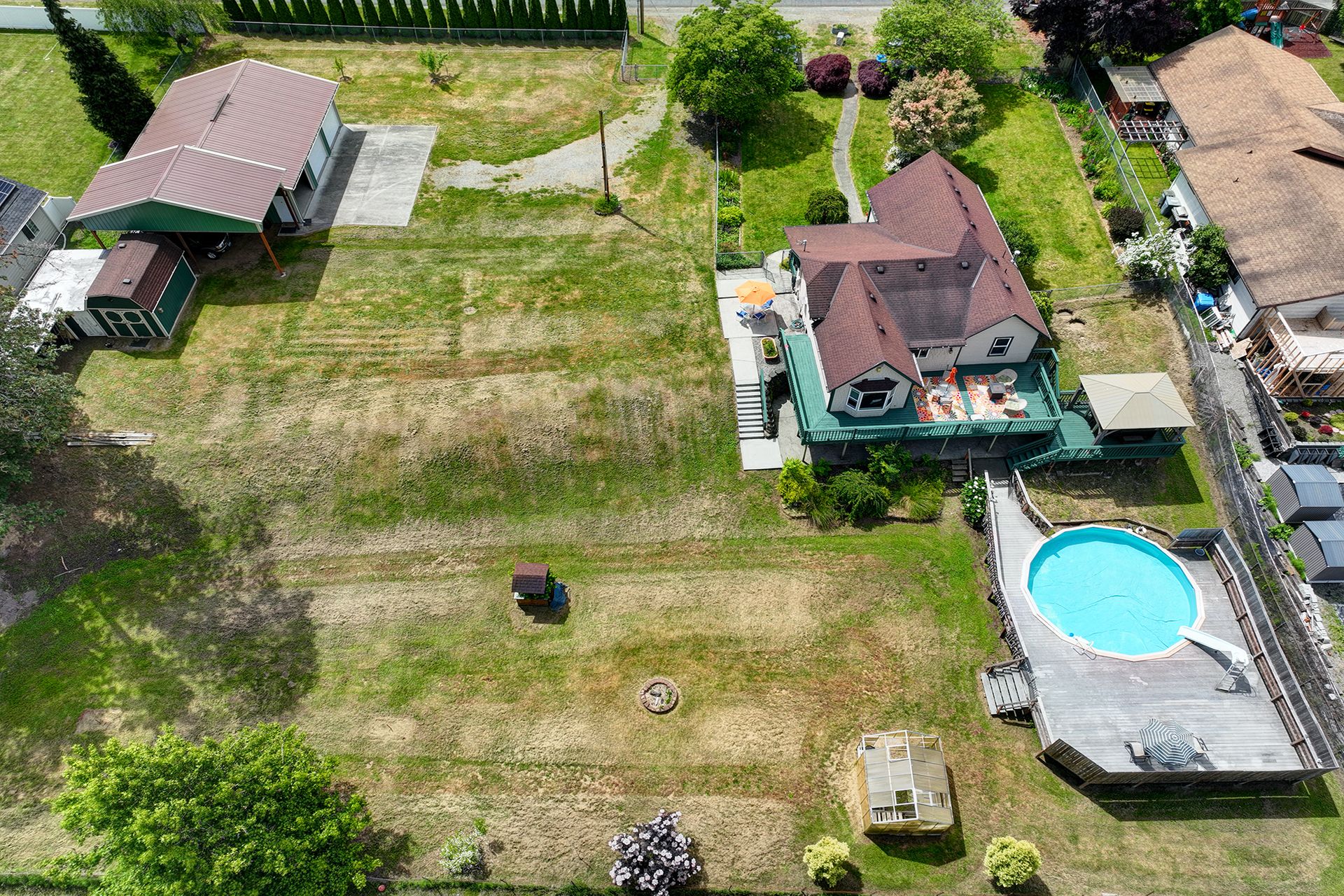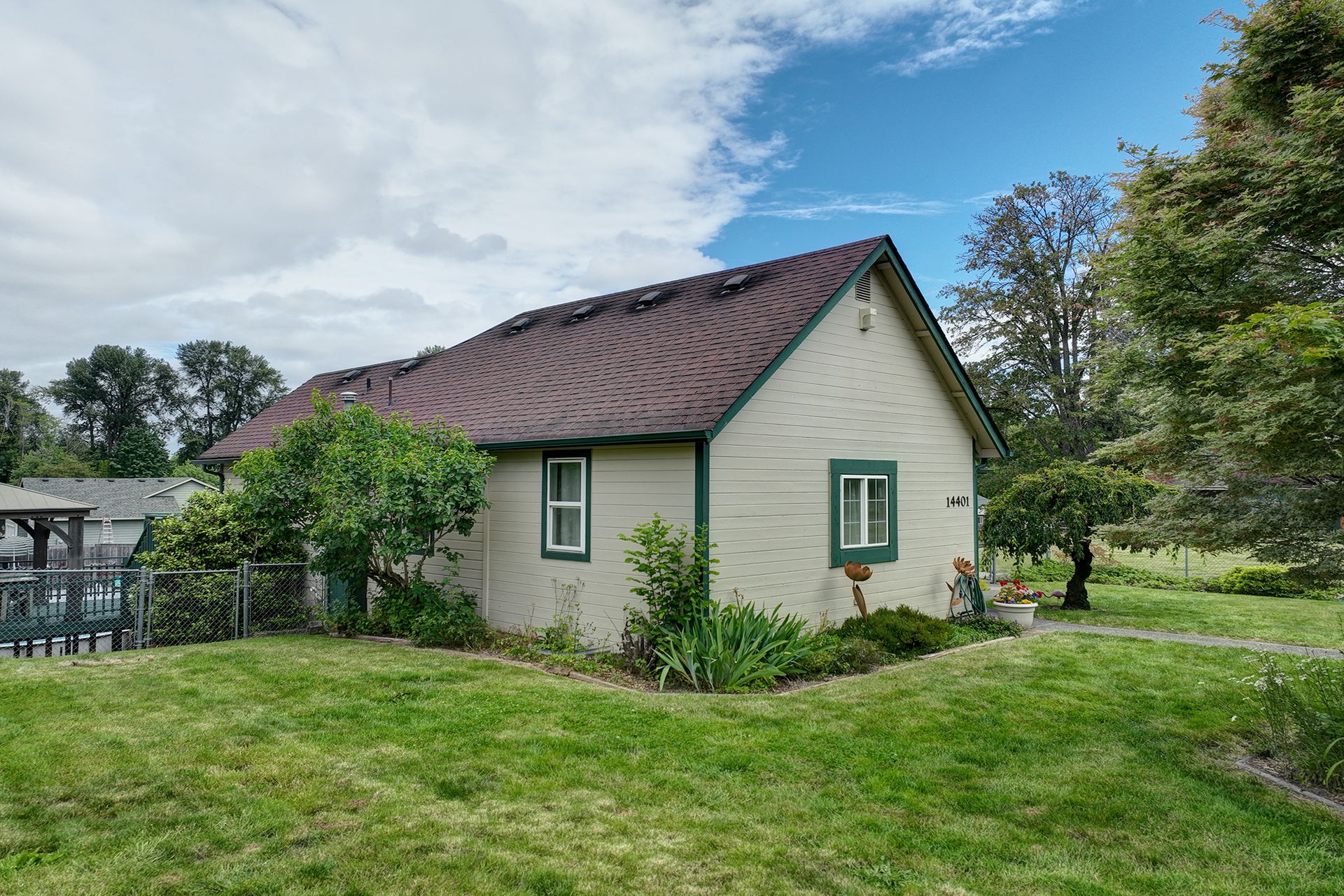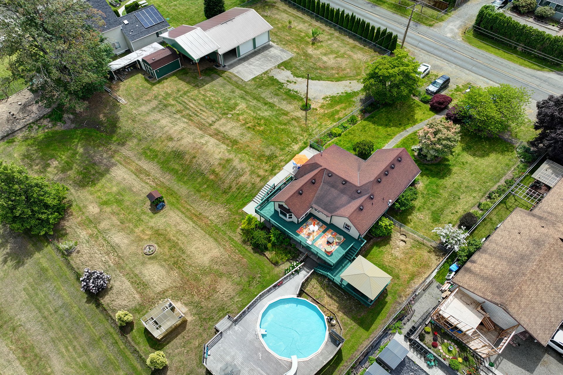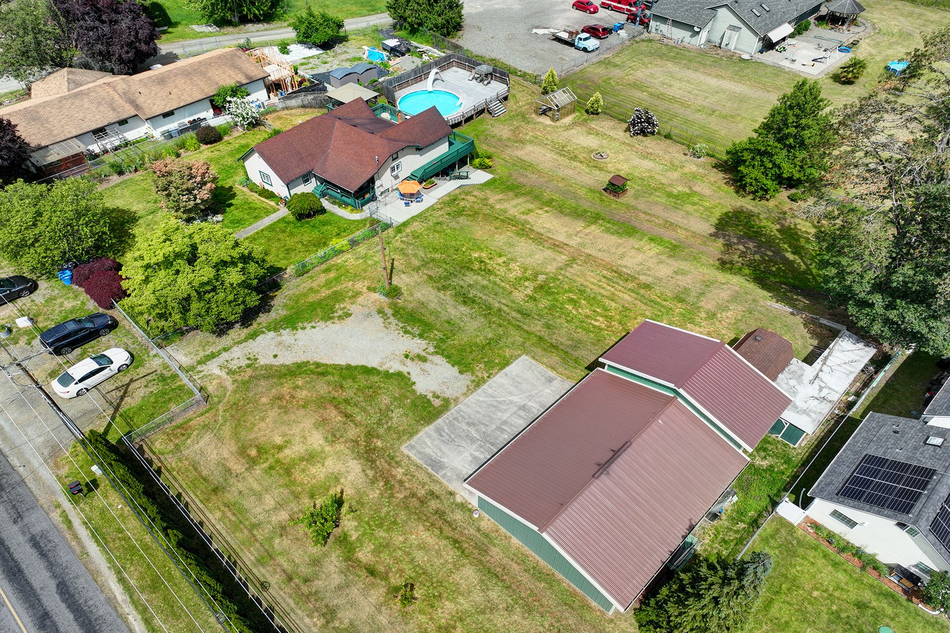 This charming farmhouse, on just shy of an acre, offers a unique blend of vintage character and modern comfort. The renovated kitchen features new cabinets, butcher block countertops and stainless-steel appliances, while hardwood floors add warmth and elegance throughout. The lower level provides a flexible recreation room or office space, three-quarter bath and additional finished room, ideal for a fourth bedroom. The utility/mud room leads to the patio and expansive deck, where you can relax by the pool or in the hot tub. Outdoor and hobby enthusiasts will appreciate the approximately 1,080 square foot shop with a metal roof - perfect for projects or storage, RV carport, outbuildings, covered woodshed and a greenhouse. Conveniently located near freeways, restaurants, shops and more!