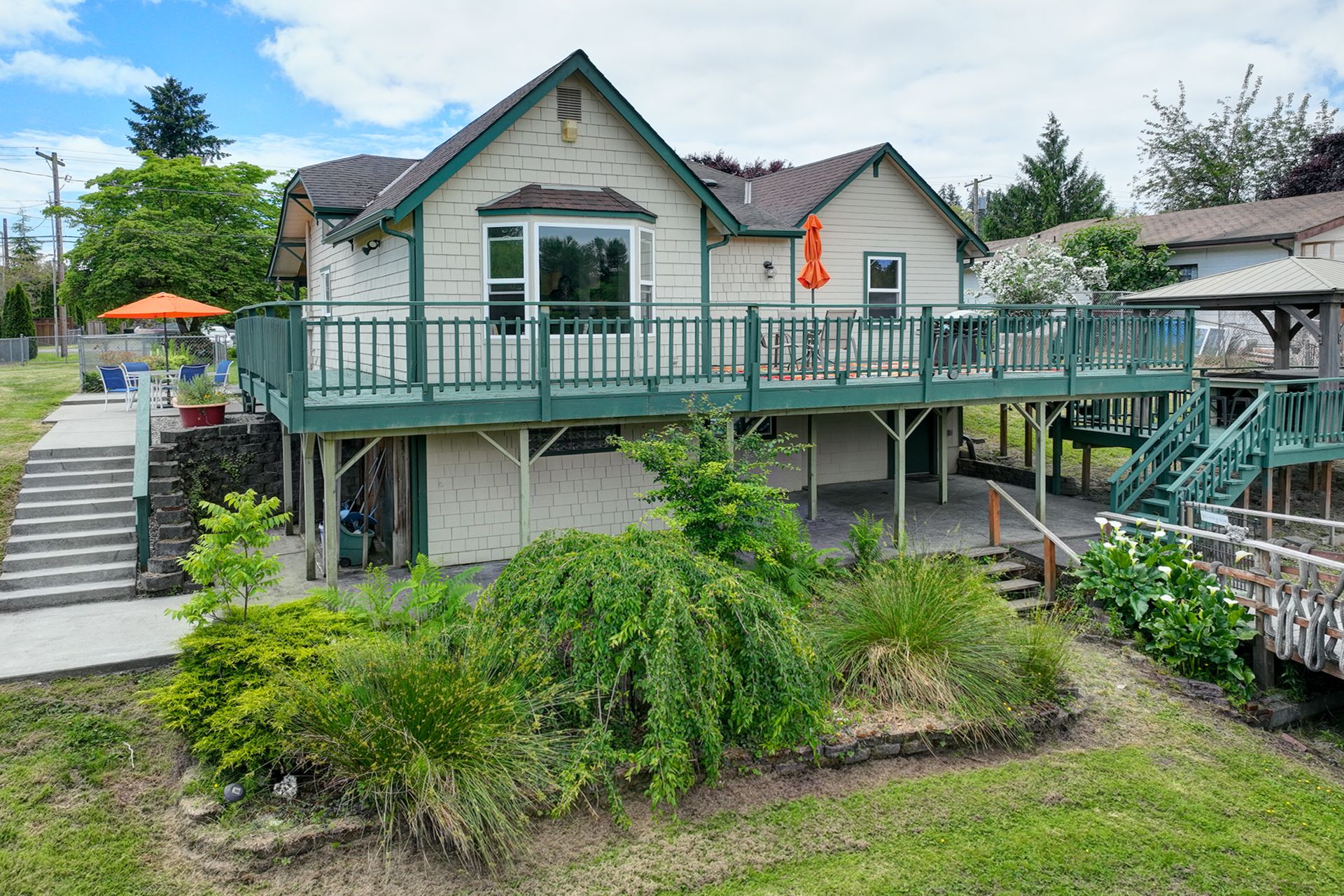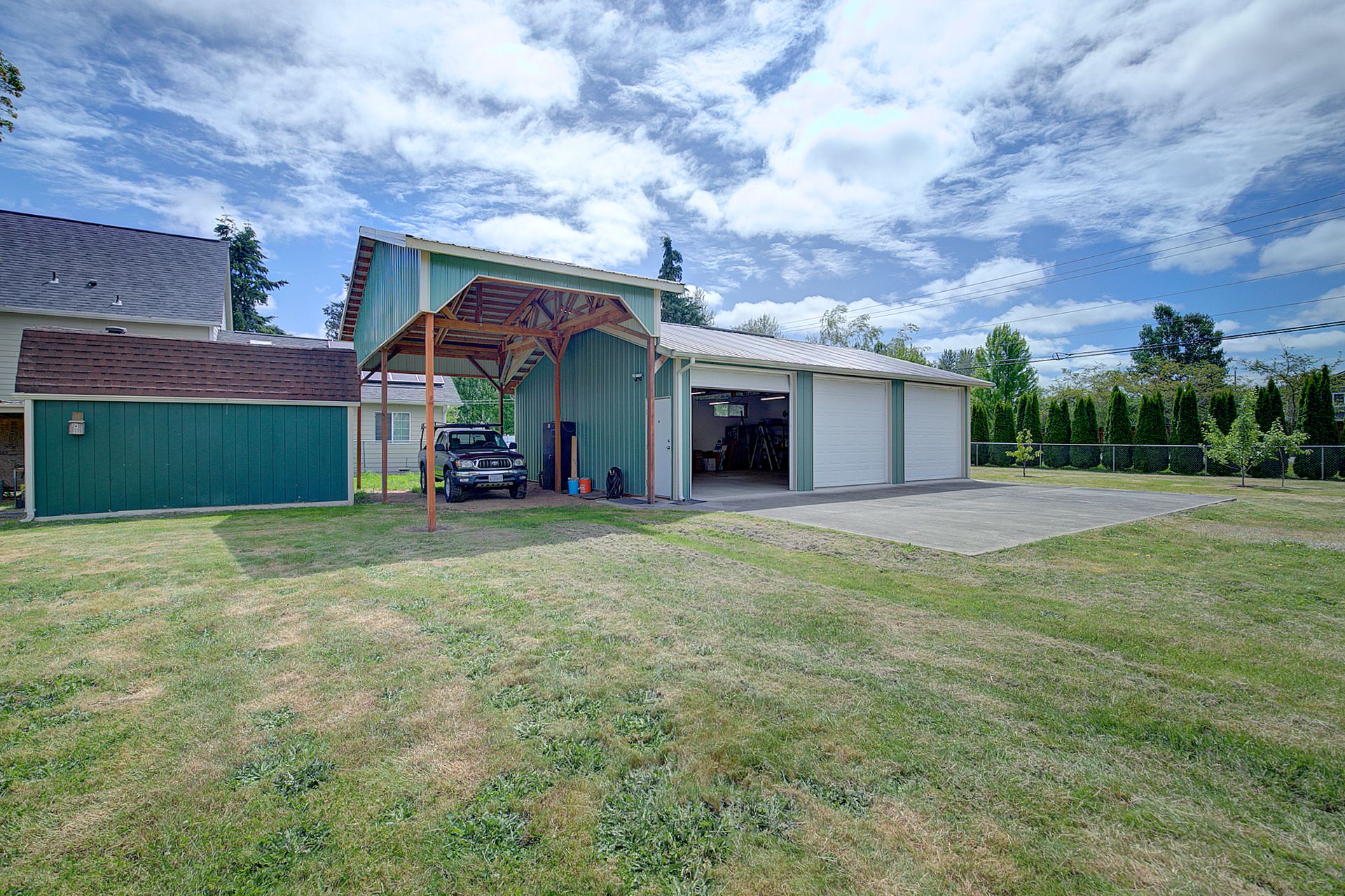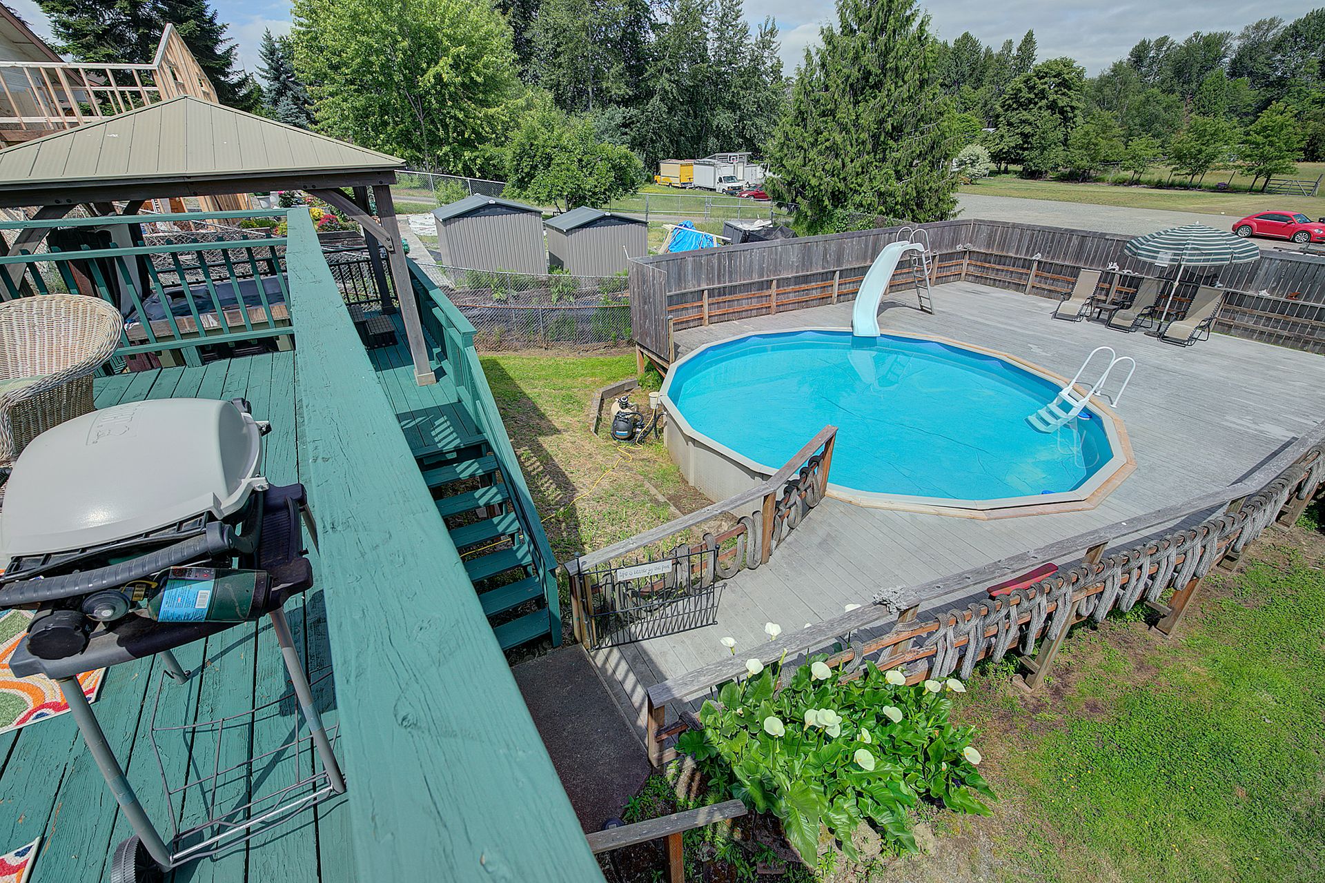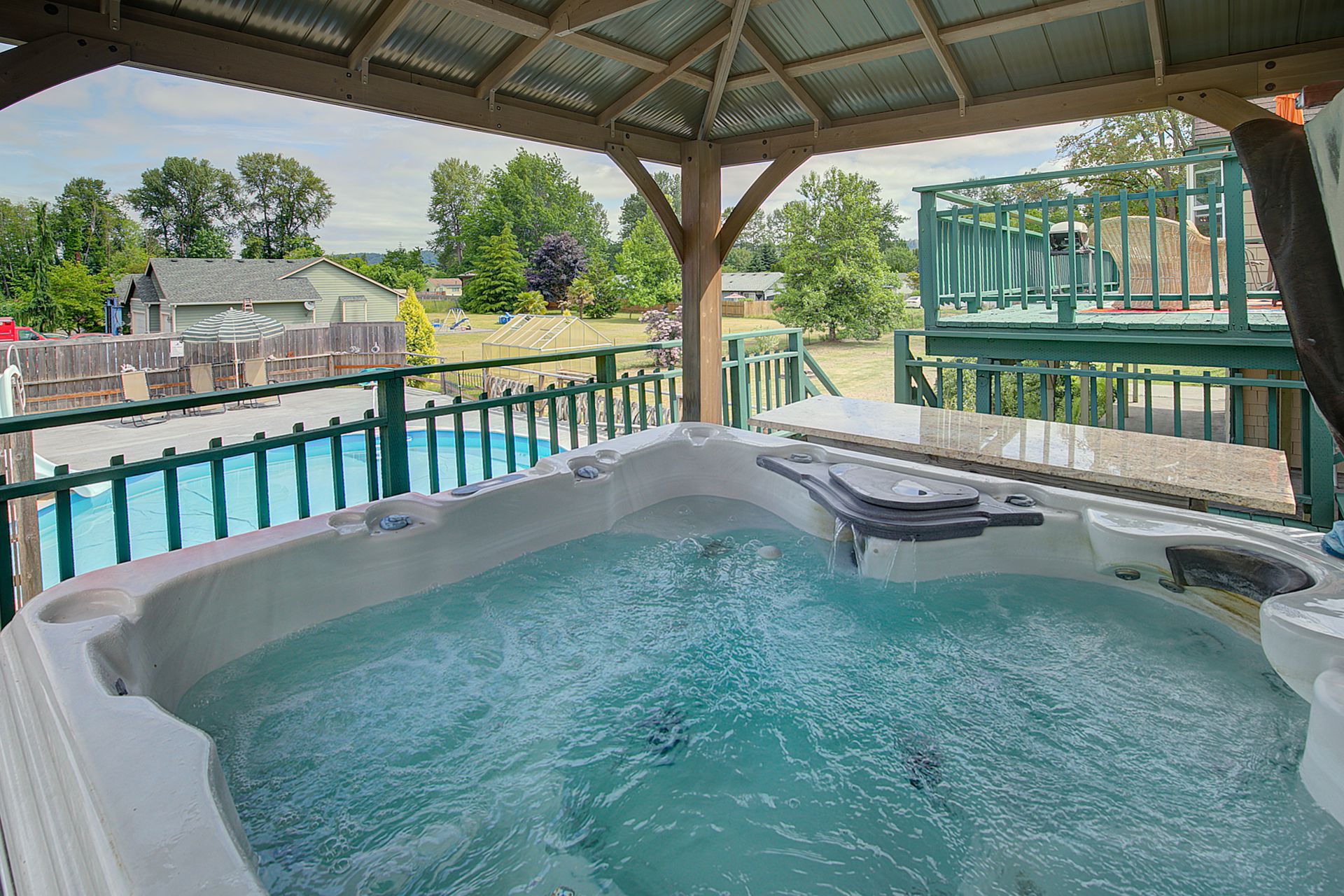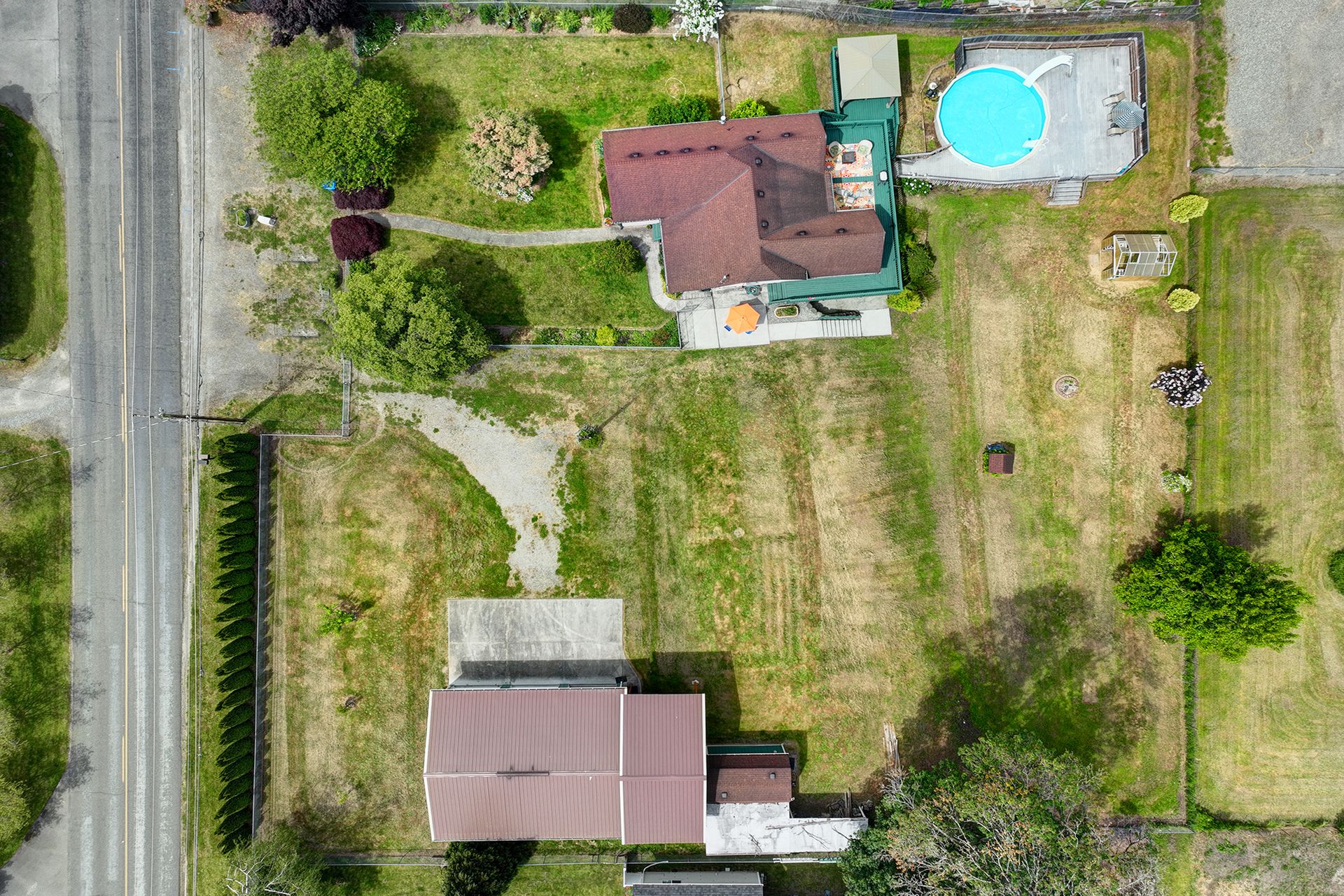 This charming farmhouse, on just shy of an acre, offers a unique blend of vintage character and modern comfort. The renovated kitchen features new cabinets, butcher block countertops and stainless-steel appliances, while hardwood floors add warmth and elegance throughout. The lower level provides a flexible recreation room or office space, three-quarter bath and additional finished room, ideal for a fourth bedroom. The utility/mud room leads to the patio and expansive deck, where you can relax by the pool or in the hot tub. Outdoor and hobby enthusiasts will appreciate the approximately 1,080 square foot shop with a metal roof - perfect for projects or storage, RV carport, outbuildings, covered woodshed and a greenhouse. Conveniently located near freeways, restaurants, shops and more!