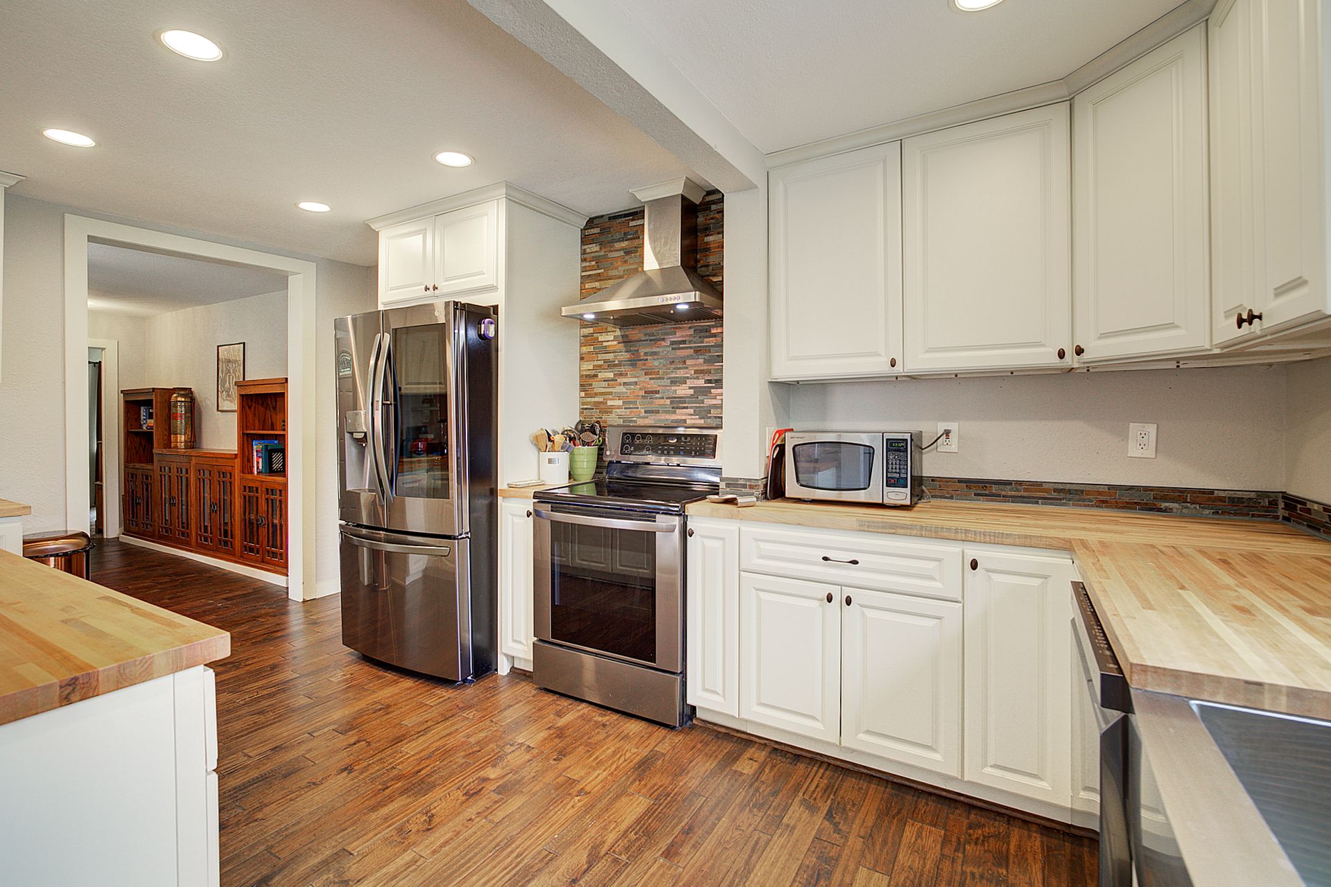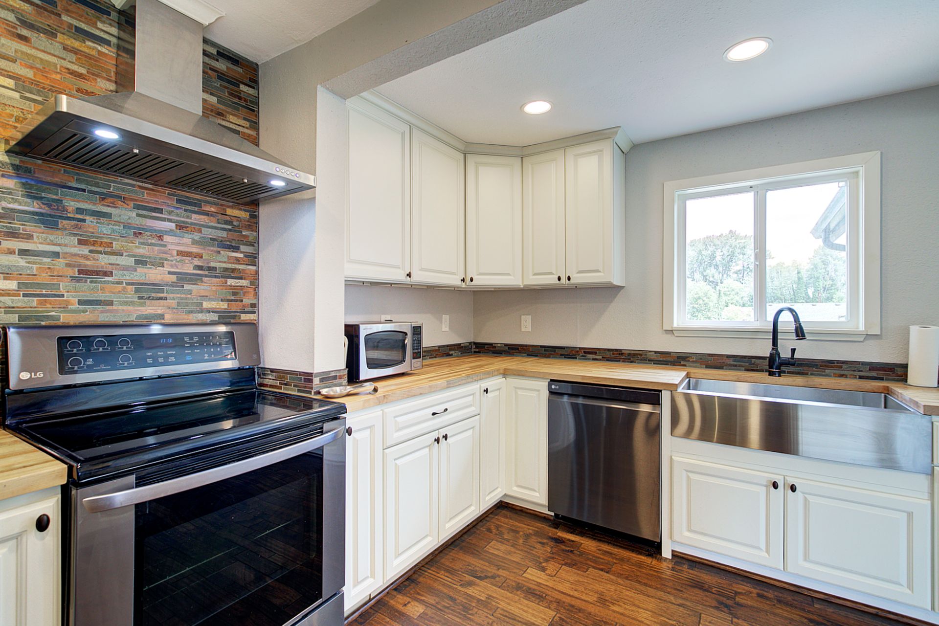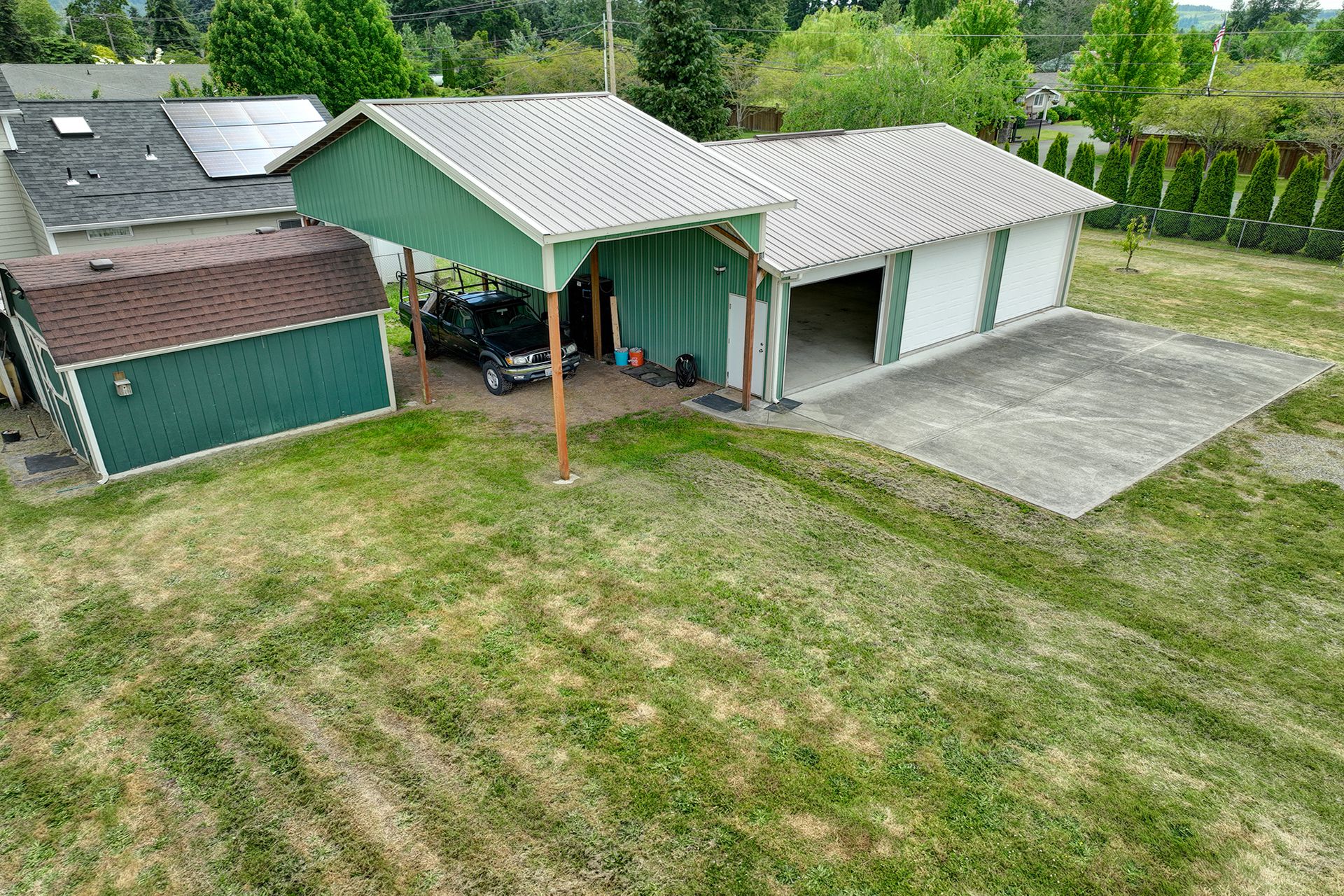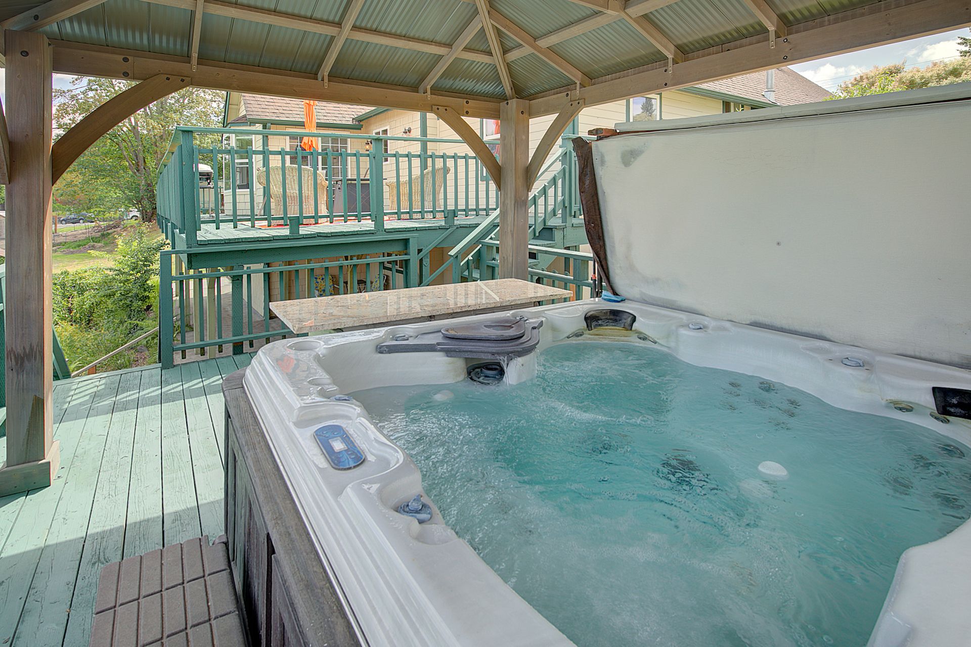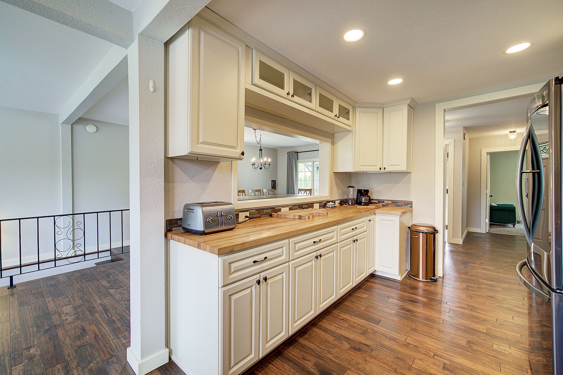 This charming farmhouse, on just shy of an acre, offers a unique blend of vintage character and modern comfort. The renovated kitchen features new cabinets, butcher block countertops and stainless-steel appliances, while hardwood floors add warmth and elegance throughout. The lower level provides a flexible recreation room or office space, three-quarter bath and additional finished room, ideal for a fourth bedroom. The utility/mud room leads to the patio and expansive deck, where you can relax by the pool or in the hot tub. Outdoor and hobby enthusiasts will appreciate the approximately 1,080 square foot shop with a metal roof - perfect for projects or storage, RV carport, outbuildings, covered woodshed and a greenhouse. Conveniently located near freeways, restaurants, shops and more!