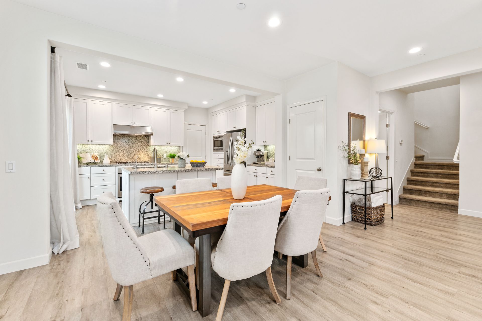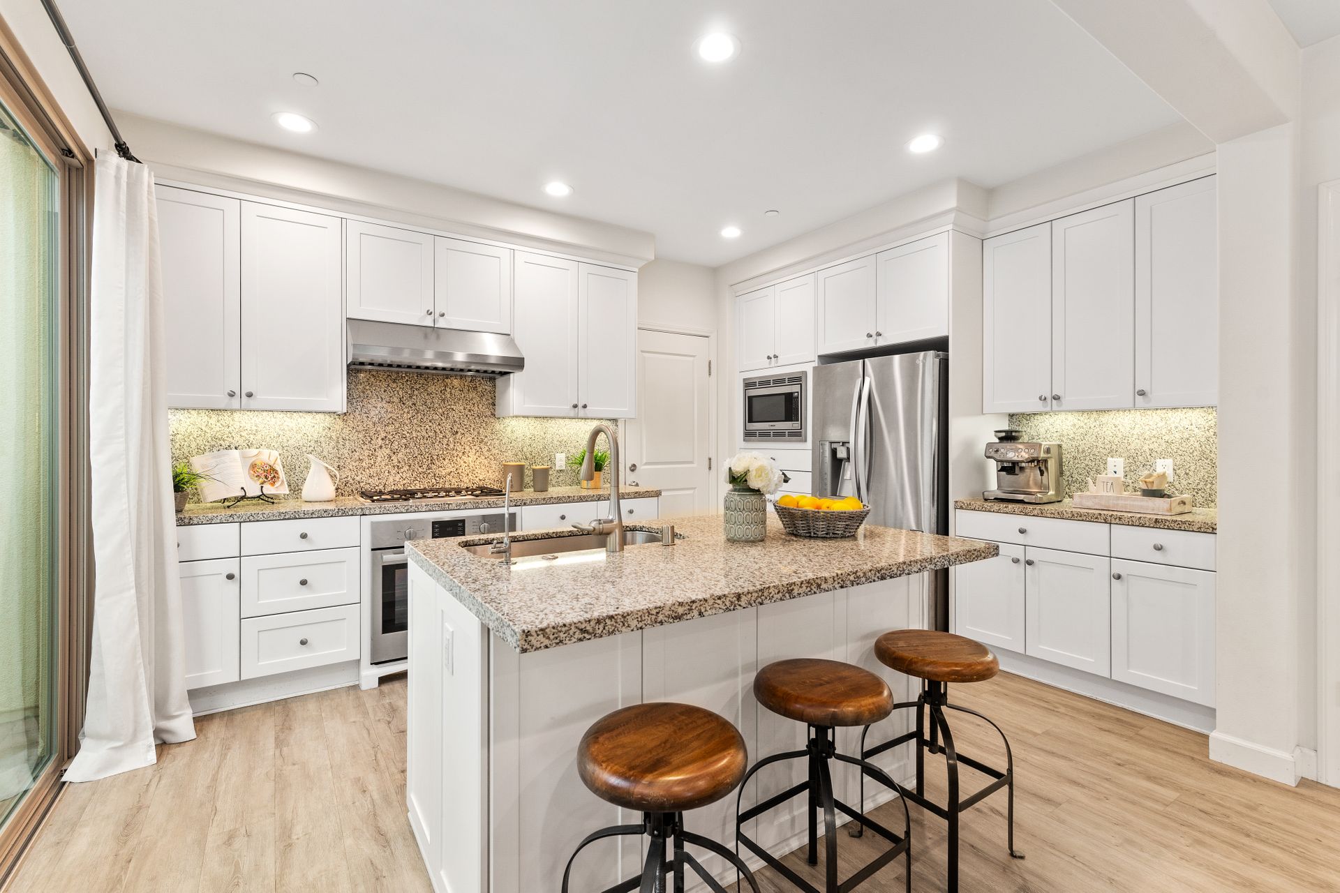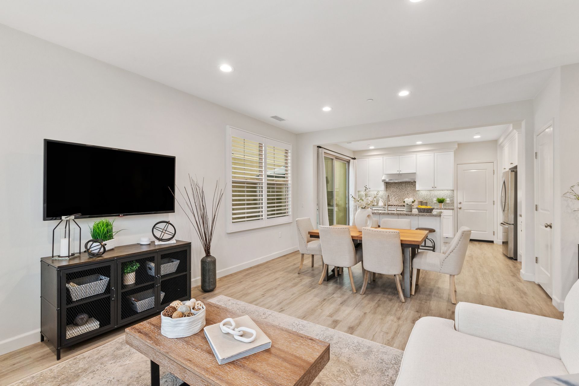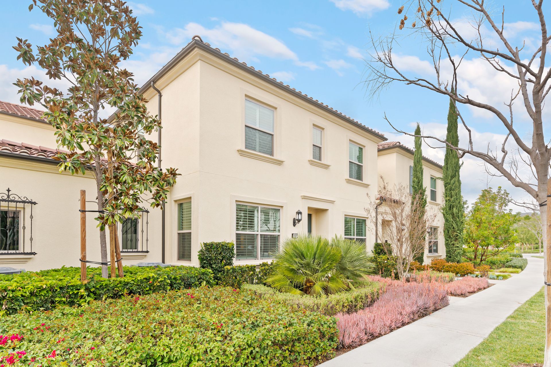 Don’t miss this gorgeous model-like townhome in the newer community of Indigo in Portola Springs. Built in 2017, this hardly lived-in home features three bedrooms, three baths, an open floorplan and lots of upgrades. Enter through the formal foyer and you will be greeted by a large and bright great room with high ceilings, recessed lighting, grey luxury vinyl flooring and large windows overlooking the lush green belt in front of the home. The gourmet kitchen features upgraded quartz countertops, a large kitchen island, stainless steel appliances and a walk-in pantry. There is a convenient main floor bedroom and full bath for guests! Escape upstairs to find two spacious bedrooms. A well-appointed primary suite promises to pamper you in spa-like luxury. You will love the oversized primary bath featuring dual upgraded vanities, a soaking tub, a separate shower and large walk-in closet. There is one additional bedroom at the opposite end which has its own en-suite bathroom. A separate laundry room is conveniently located upstairs. Entertain in the private serene courtyard and enjoy the two-car attached garage! Additional features include plantation shutters, a separate storage unit in the courtyard and an energy efficient tankless water heater. Zoned for award-winning Irvine Unified schools and in a prime location! This home is close to Woodbury Shopping Center which includes many dining options, Trader Joes, and much more. Also a short distance to HOA amenities including tennis courts, Olympic-sized pool, and parks. You will not want to miss out on this opportunity!