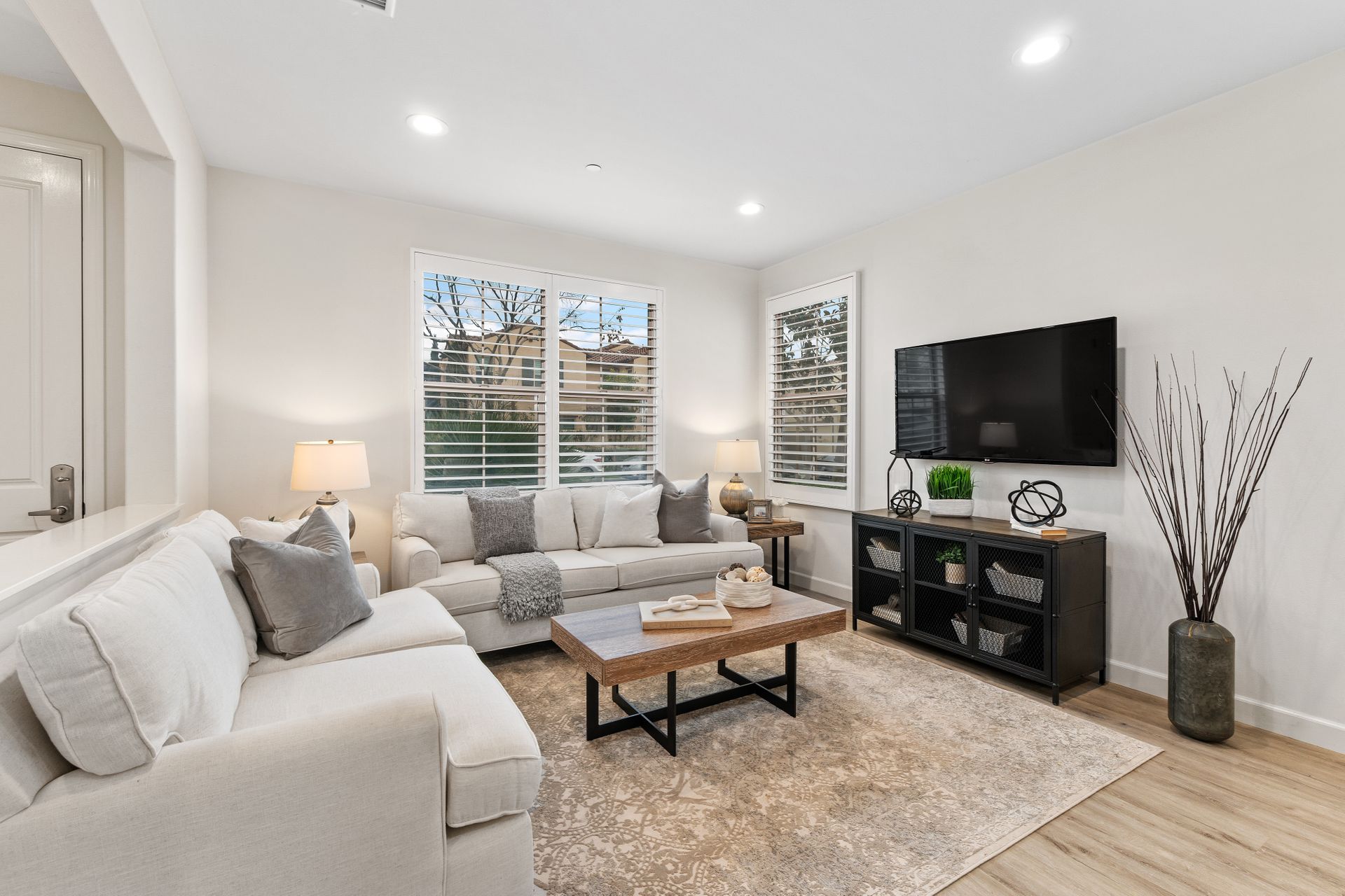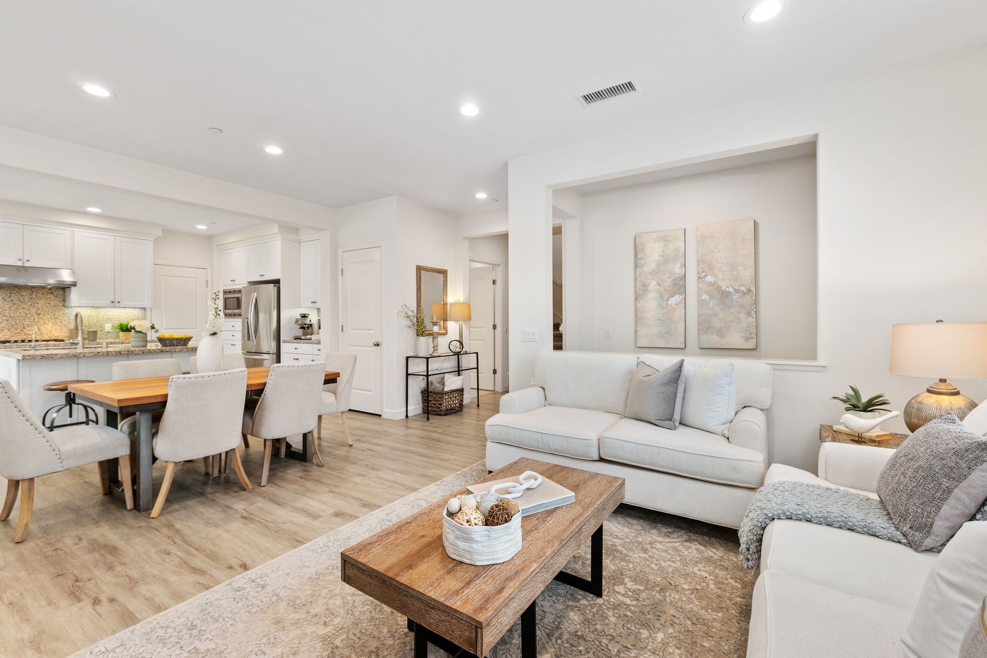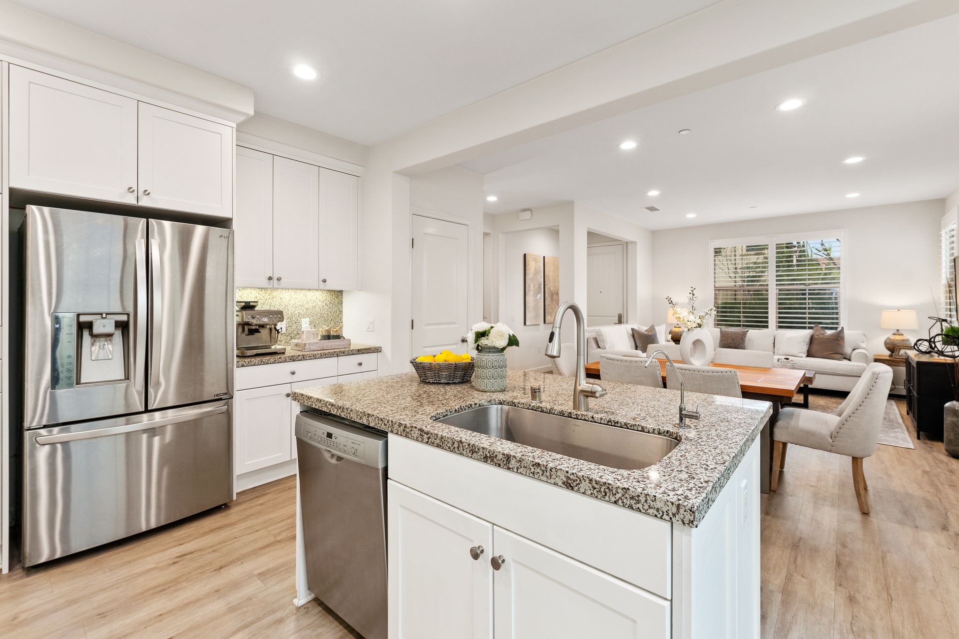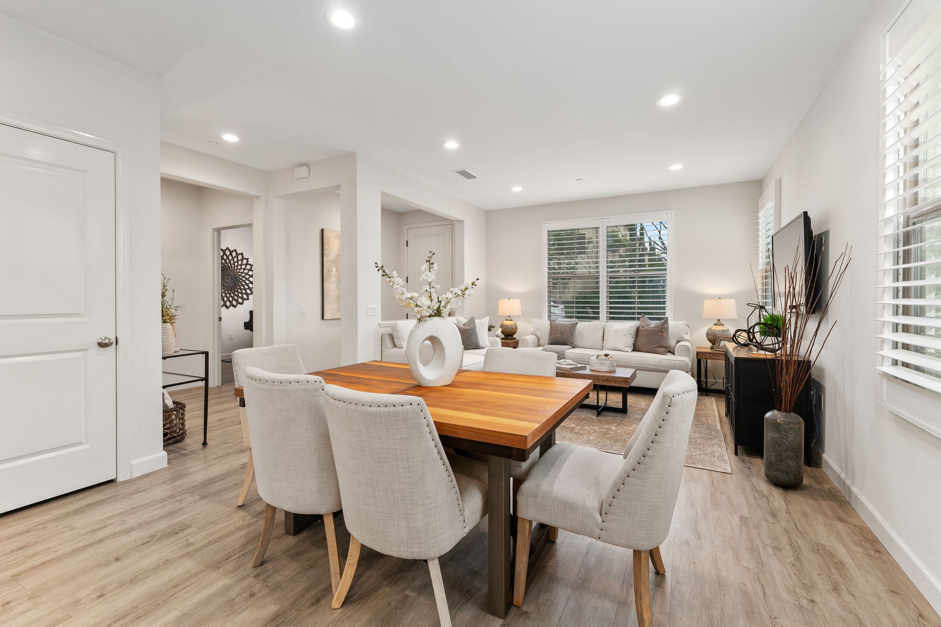 Don’t miss this gorgeous model-like townhome in the newer community of Indigo in Portola Springs. Built in 2017, this hardly lived-in home features three bedrooms, three baths, an open floorplan and lots of upgrades. Enter through the formal foyer and you will be greeted by a large and bright great room with high ceilings, recessed lighting, grey luxury vinyl flooring and large windows overlooking the lush green belt in front of the home. The gourmet kitchen features upgraded quartz countertops, a large kitchen island, stainless steel appliances and a walk-in pantry. There is a convenient main floor bedroom and full bath for guests! Escape upstairs to find two spacious bedrooms. A well-appointed primary suite promises to pamper you in spa-like luxury. You will love the oversized primary bath featuring dual upgraded vanities, a soaking tub, a separate shower and large walk-in closet. There is one additional bedroom at the opposite end which has its own en-suite bathroom. A separate laundry room is conveniently located upstairs. Entertain in the private serene courtyard and enjoy the two-car attached garage! Additional features include plantation shutters, a separate storage unit in the courtyard and an energy efficient tankless water heater. Zoned for award-winning Irvine Unified schools and in a prime location! This home is close to Woodbury Shopping Center which includes many dining options, Trader Joes, and much more. Also a short distance to HOA amenities including tennis courts, Olympic-sized pool, and parks. You will not want to miss out on this opportunity!