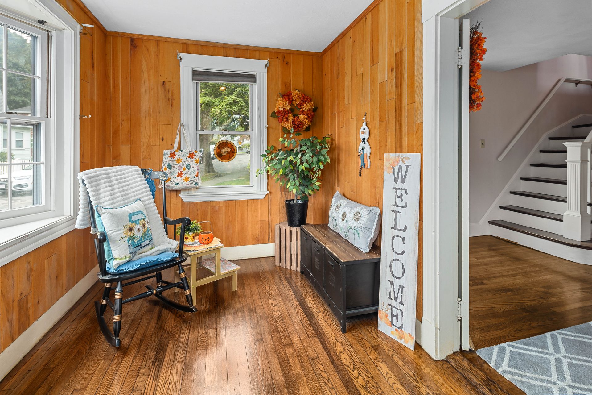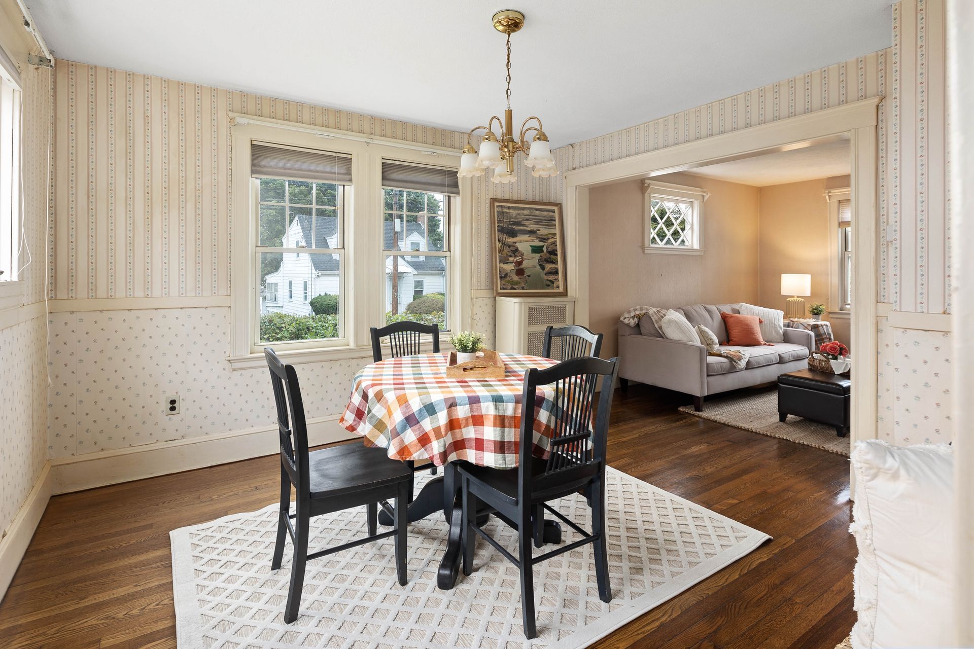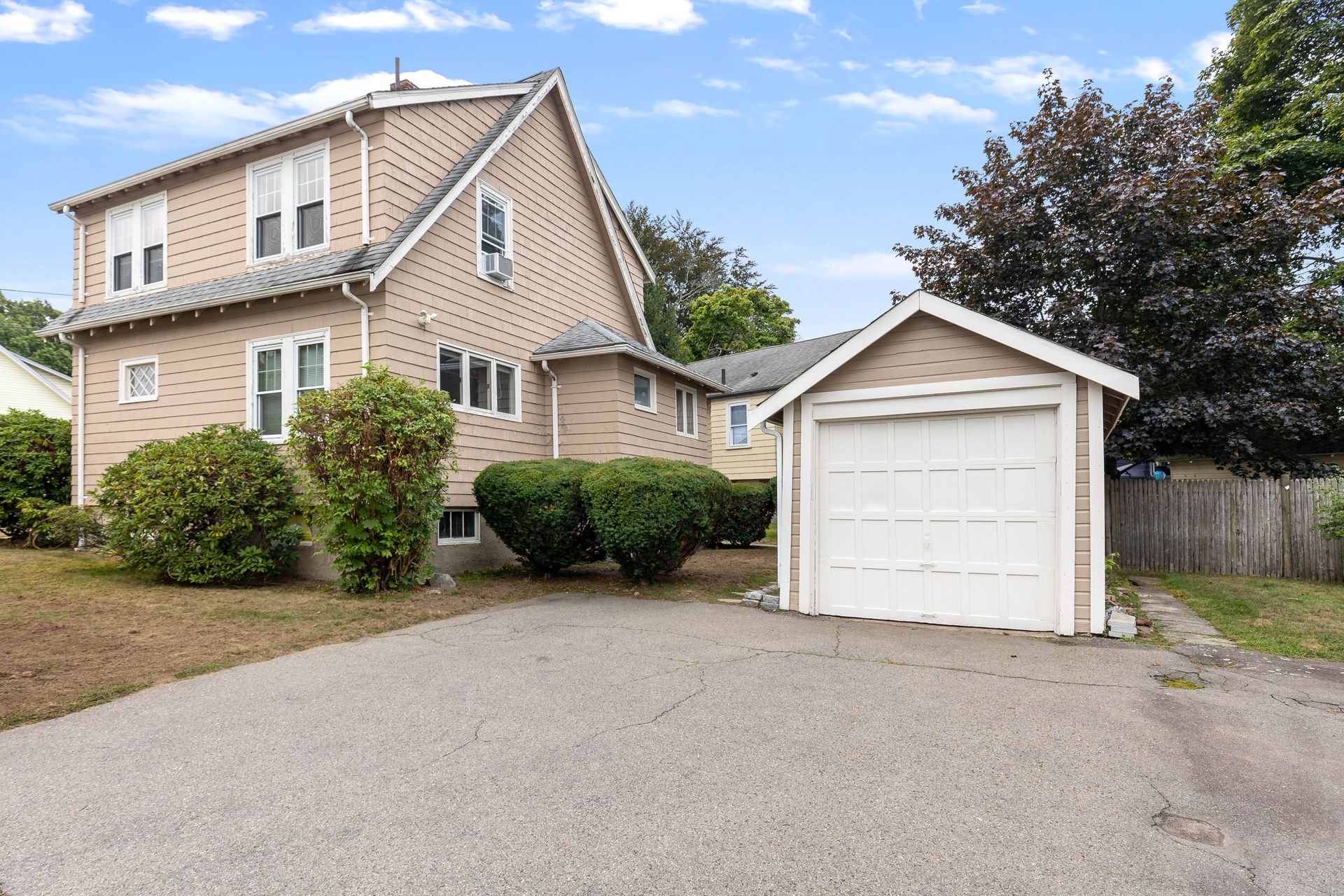 Lovingly maintained home in an incredible location! This well cared for three bedroom, one and one-half bathroom property is set on a quiet corner lot with a detached one car garage and ample driveway parking. Eat in kitchen features a cozy banquette. Spacious living room and dining room are filled with charm and newly refinished hardwood floors. The second floor offers three bright and sunny bedrooms rooms with a main bathroom. Additional partially finished space in the lower level complete with a room that has been used as a bedroom previously featuring a cedar closet. Minutes to shops, restaurants, public transit, beaches and the highway. Spacious suburb coastal living while being close to Boston.