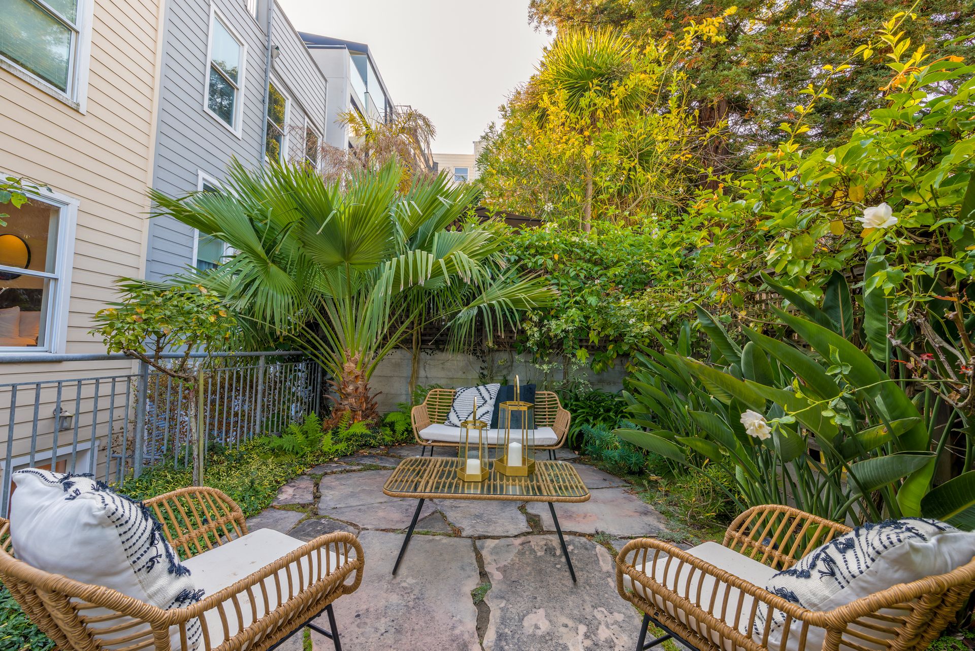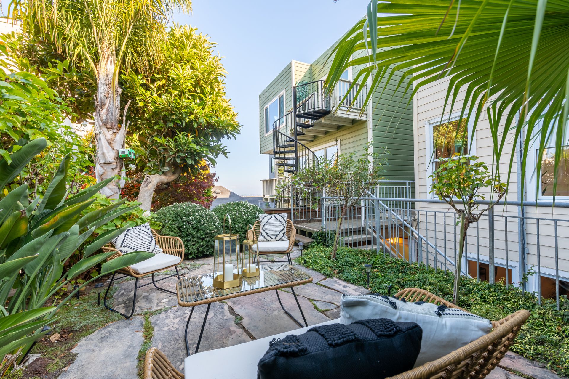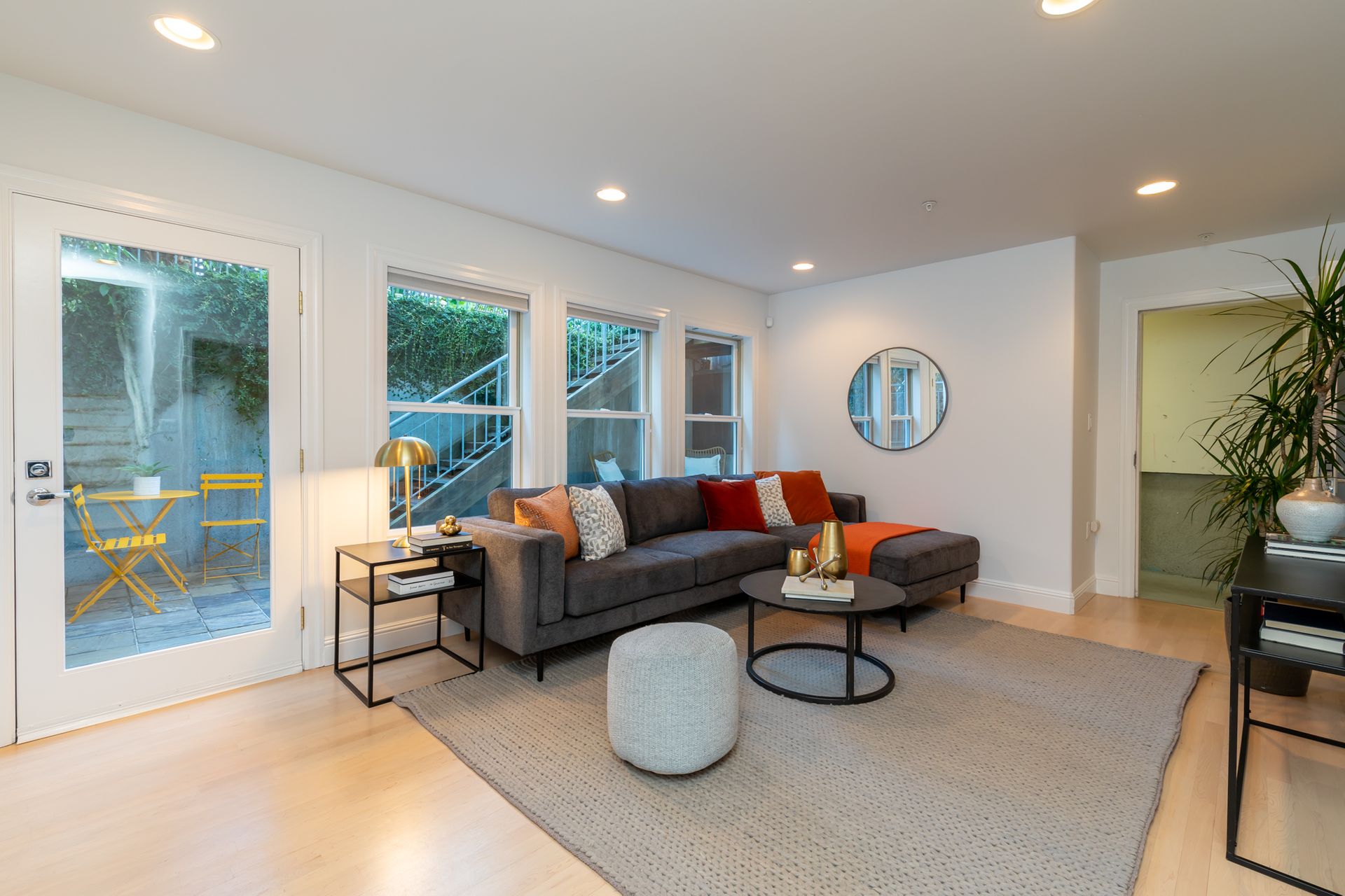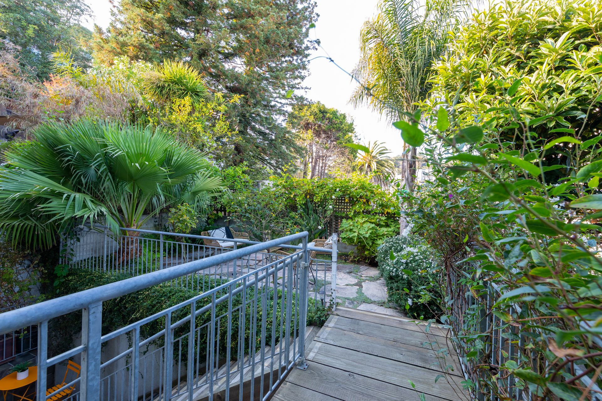 This stunning 2-level condo has a modern open living, dining and kitchen space; perfect for entertaining. The chef's kitchen is classic with stainless steel appliances including a 36" Thermador gas range. In addition to the above, the main level has two bedrooms including a primary suite with sumptuous bath and a second bedroom with adjacent 2nd bath. The private garden is accessed from the second rear bedroom and is beautifully planted and very inviting. The lower level has a third bedroom or den and 3rd bath. There are hardwood floors thoughout the home except for the primary suite which has handsome wool carpet. Besides the private yard there is a second patio off the lower level. The unit has space for 2 cars in tandem parking as well as storage on the garage level plus a private laundry area. The prime Corona Heights location provides easy access to the Castro or Cole Valley. Muni Metro, Tech Shuttles and a plethora of shops and restaurants are easily accessed.