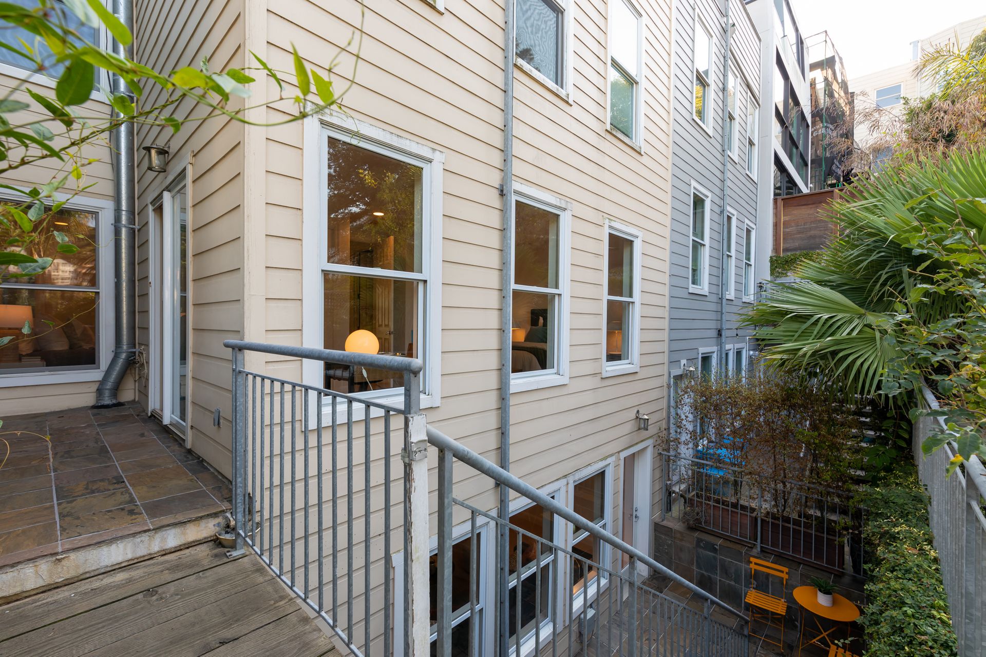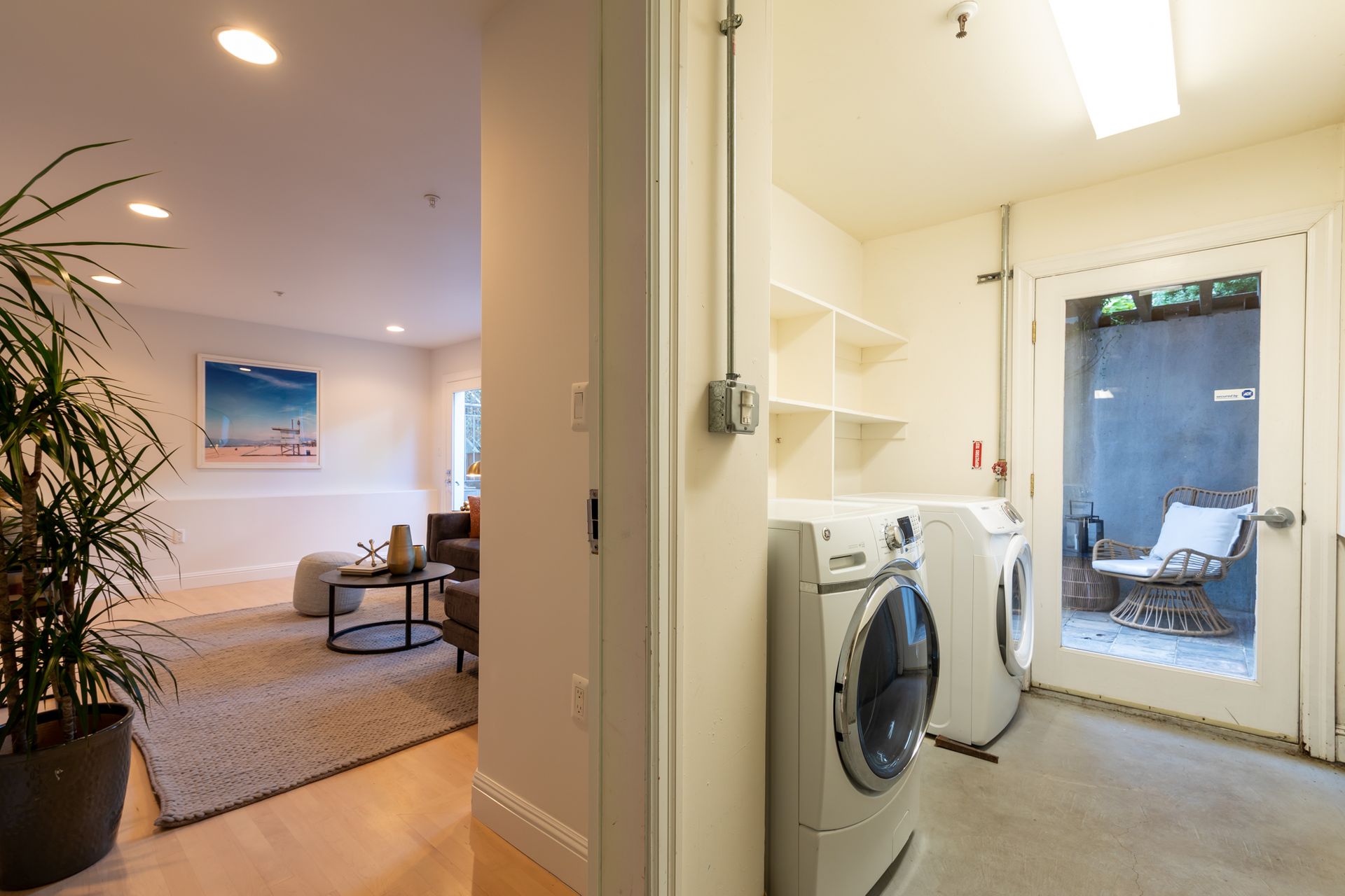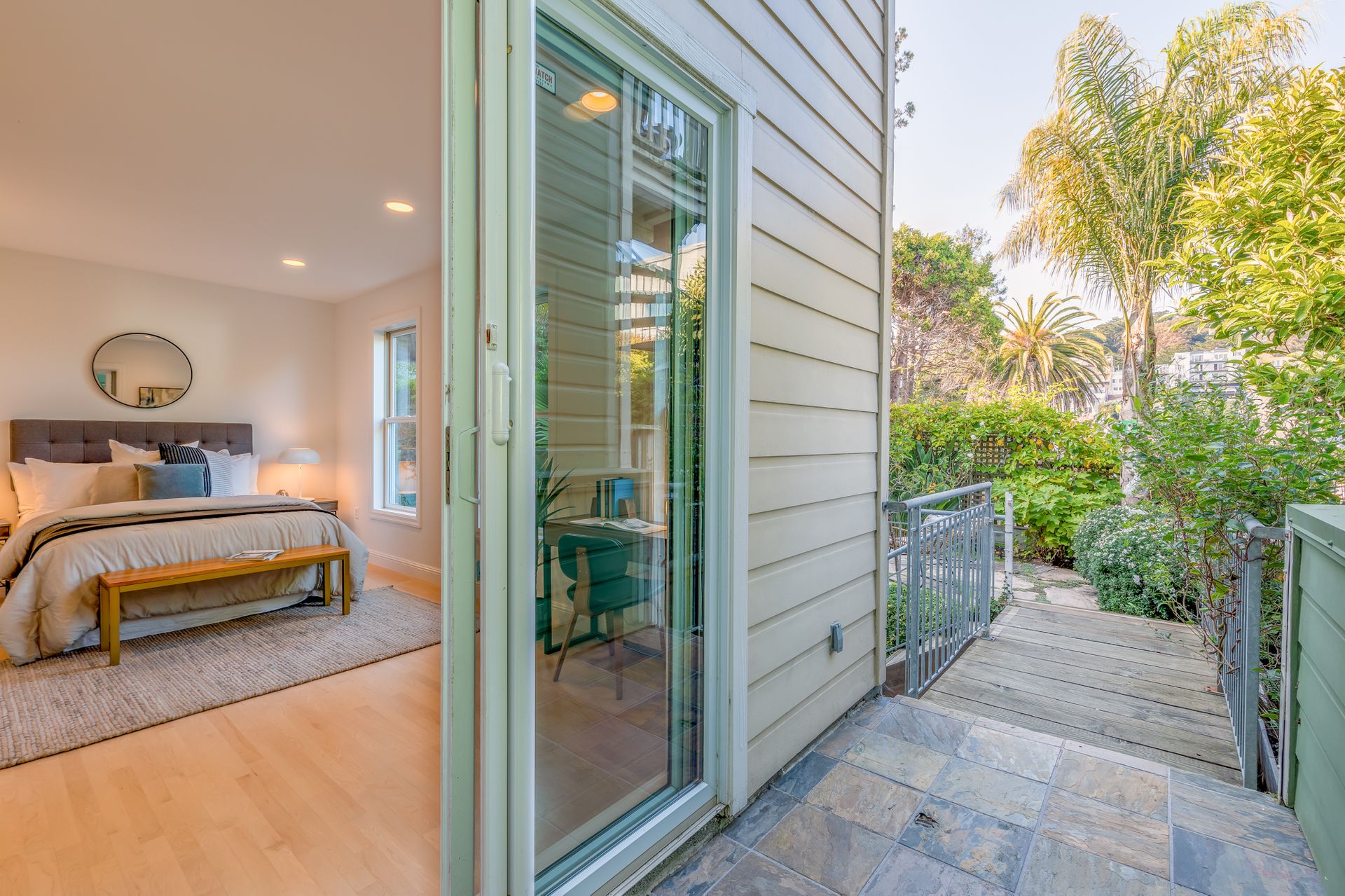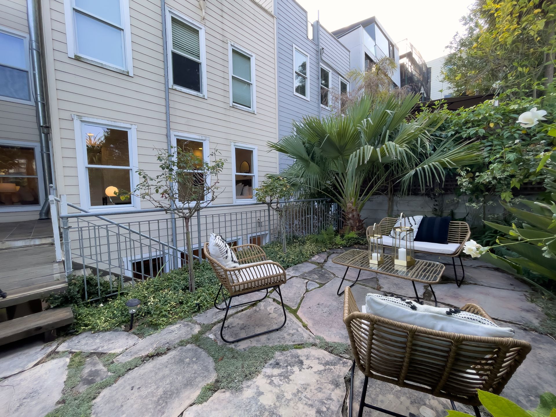 This stunning 2-level condo has a modern open living, dining and kitchen space; perfect for entertaining. The chef's kitchen is classic with stainless steel appliances including a 36" Thermador gas range. In addition to the above, the main level has two bedrooms including a primary suite with sumptuous bath and a second bedroom with adjacent 2nd bath. The private garden is accessed from the second rear bedroom and is beautifully planted and very inviting. The lower level has a third bedroom or den and 3rd bath. There are hardwood floors thoughout the home except for the primary suite which has handsome wool carpet. Besides the private yard there is a second patio off the lower level. The unit has space for 2 cars in tandem parking as well as storage on the garage level plus a private laundry area. The prime Corona Heights location provides easy access to the Castro or Cole Valley. Muni Metro, Tech Shuttles and a plethora of shops and restaurants are easily accessed.