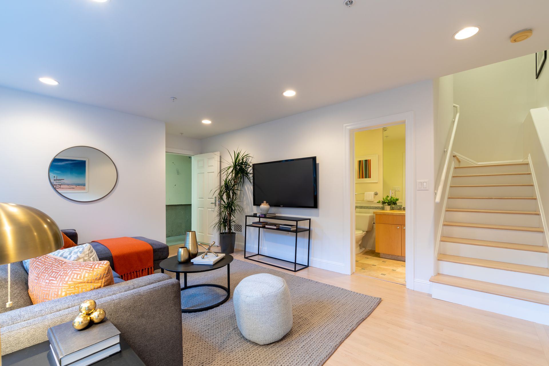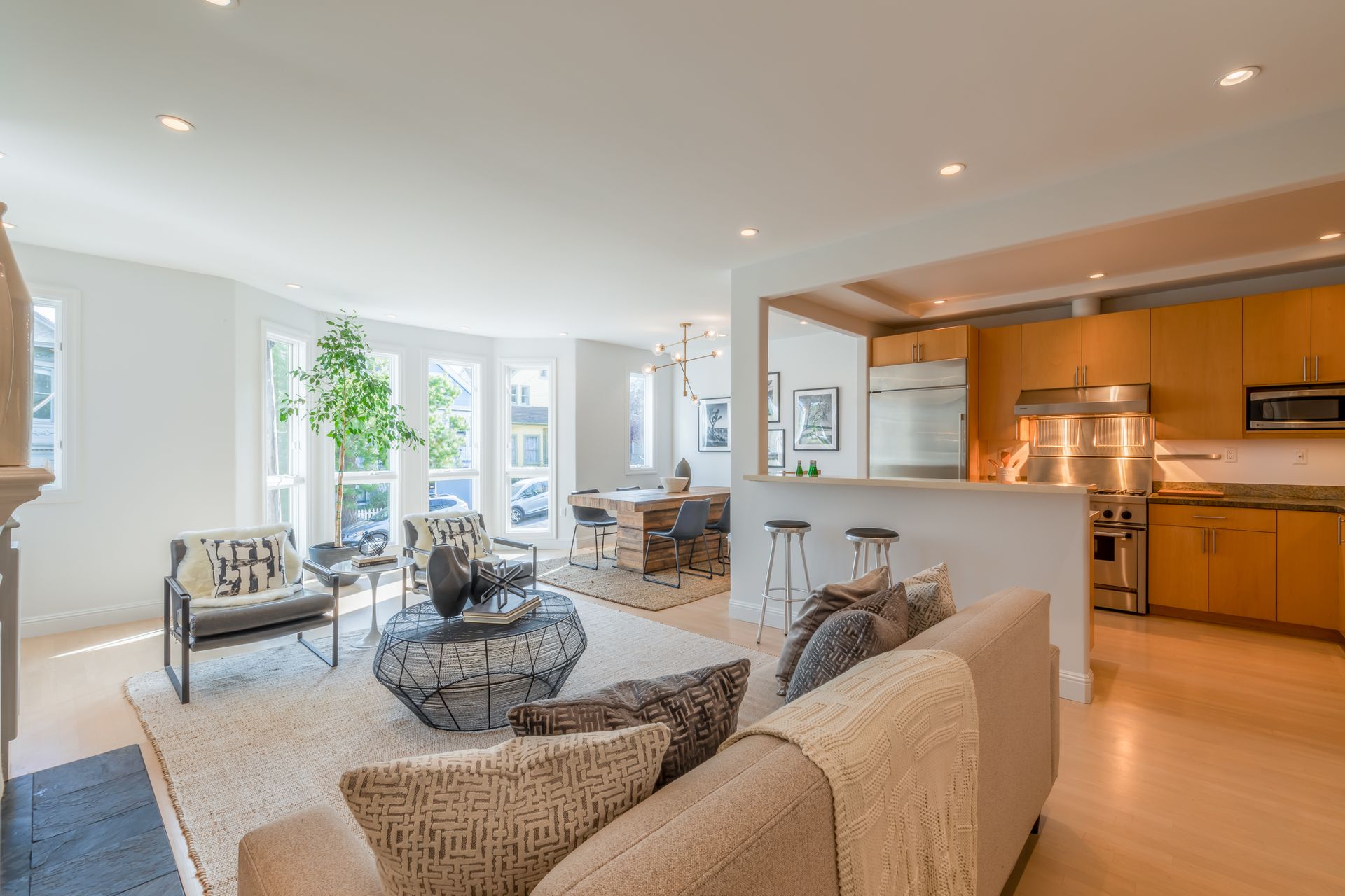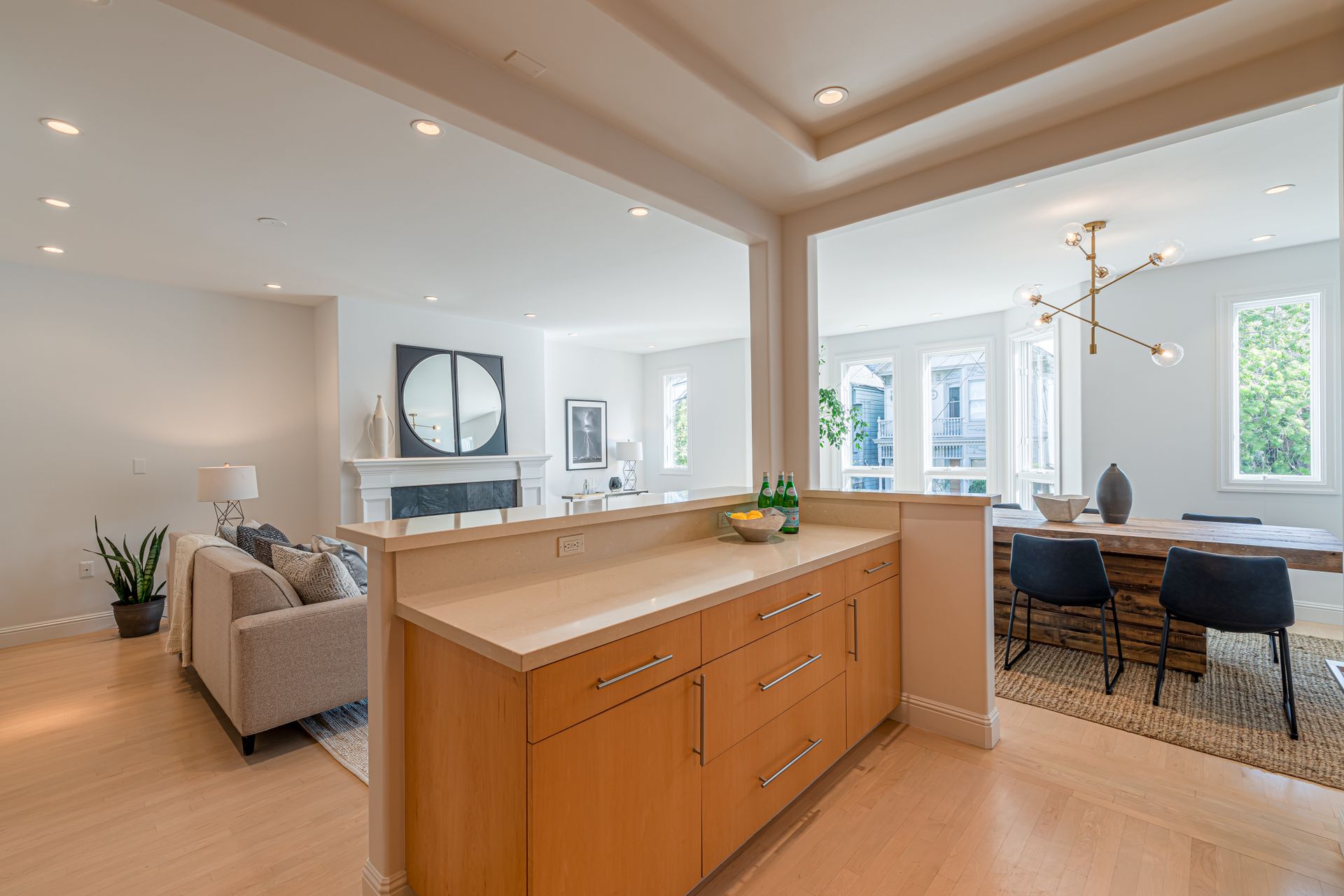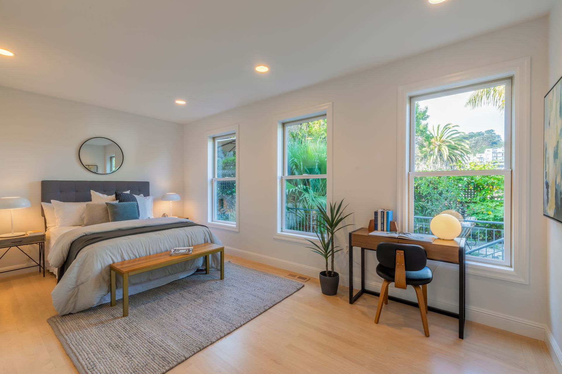 This stunning 2-level condo has a modern open living, dining and kitchen space; perfect for entertaining. The chef's kitchen is classic with stainless steel appliances including a 36" Thermador gas range. In addition to the above, the main level has two bedrooms including a primary suite with sumptuous bath and a second bedroom with adjacent 2nd bath. The private garden is accessed from the second rear bedroom and is beautifully planted and very inviting. The lower level has a third bedroom or den and 3rd bath. There are hardwood floors thoughout the home except for the primary suite which has handsome wool carpet. Besides the private yard there is a second patio off the lower level. The unit has space for 2 cars in tandem parking as well as storage on the garage level plus a private laundry area. The prime Corona Heights location provides easy access to the Castro or Cole Valley. Muni Metro, Tech Shuttles and a plethora of shops and restaurants are easily accessed.