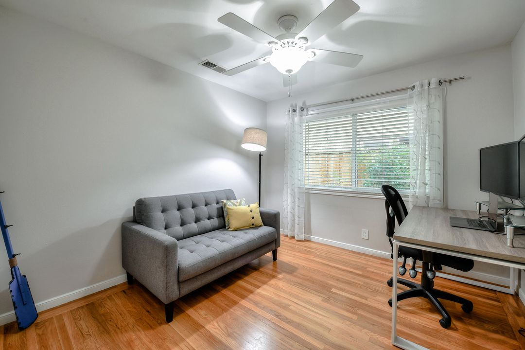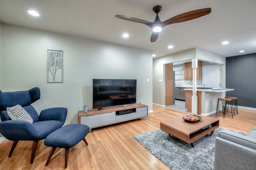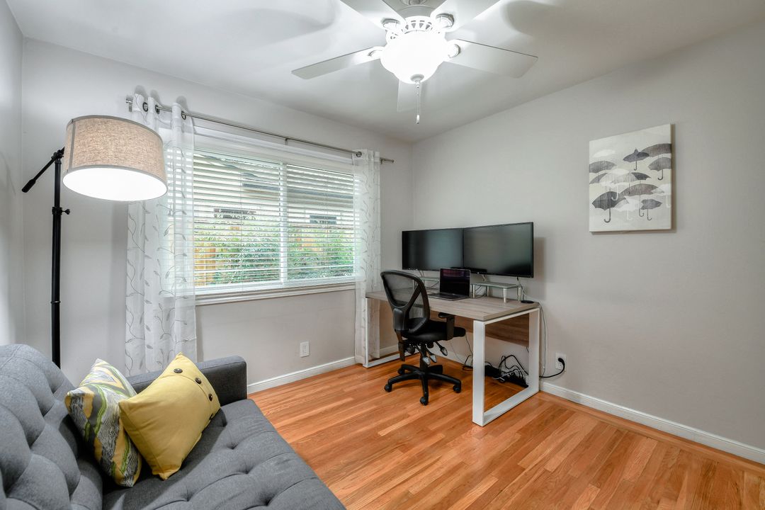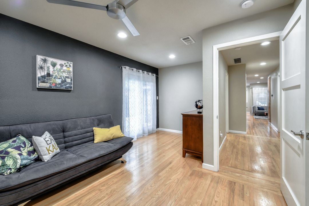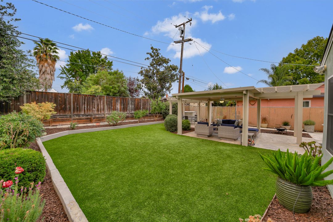 Sweet updated home on a tree-lined street in Willow Glen. Updated and expanded with an open concept plan. Hardwood floors. bright space with lots of windows and recessed lighting. Updated kitchen has quartz counters, striking marble tile backsplash wall, gas cooktop and an eat at island. The master includes an ensuite bathroom with walk-in rainshower. Two additional bedrooms, one with a slider to the backyard. A perfect at home work or school space. Indoor laundry room and hall bath are convenient and updated. The backyard offers multiple entertainment areas with two pergolas, low maintenance artificial turf and raised bed gardens creating a private oasis. Attached garage with EV charging station. Leased solar panels help offset your energy bills. Close to public schools (Booksin Elem., Willow Glen Middle & Willow Glen High), grocery stores, restaurants and parks. Take a look, fall in love and make it your home.