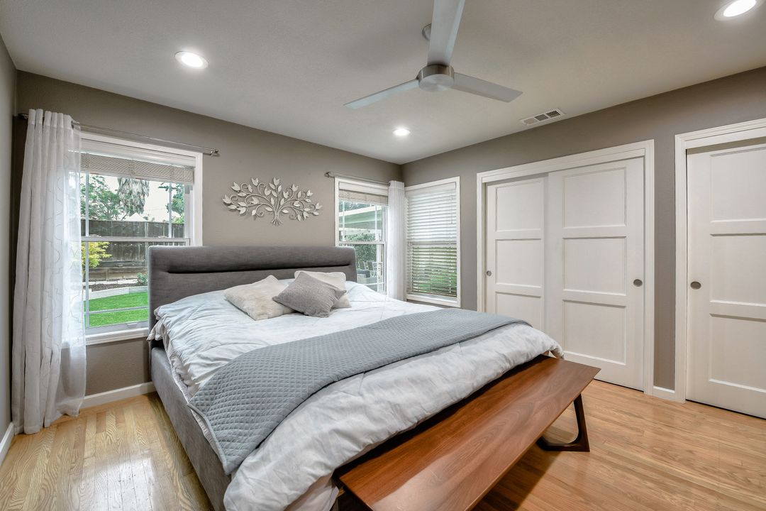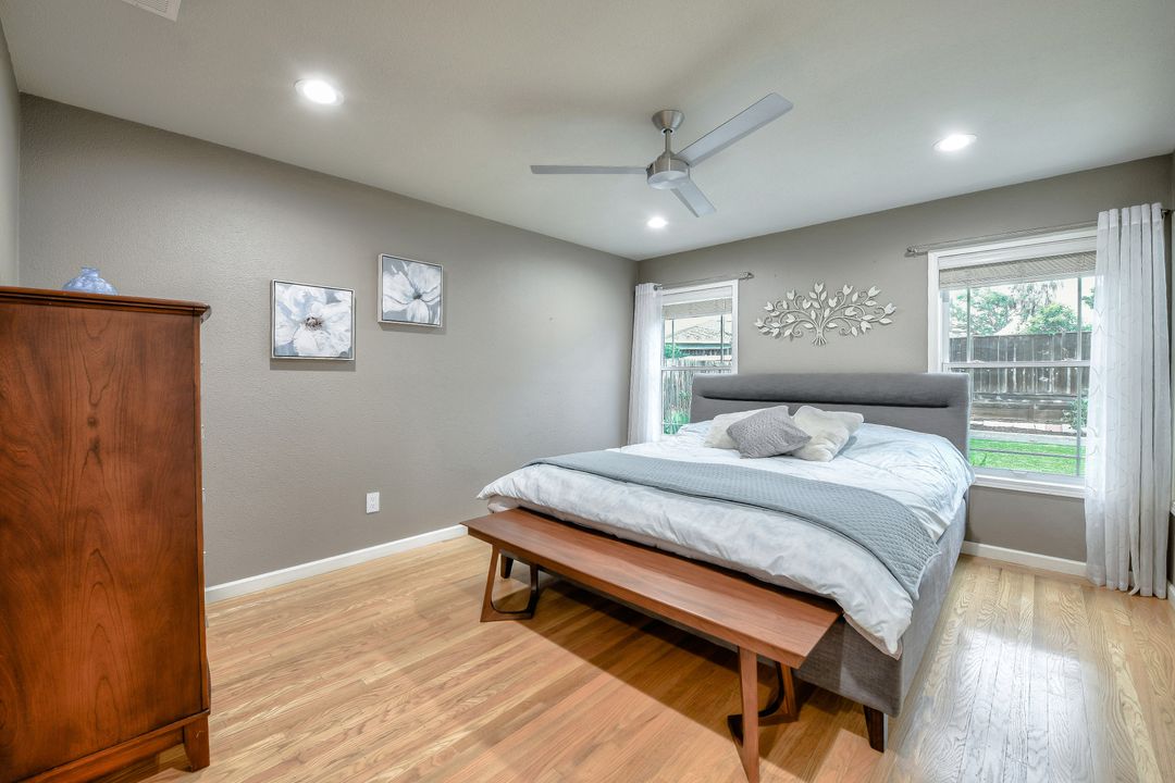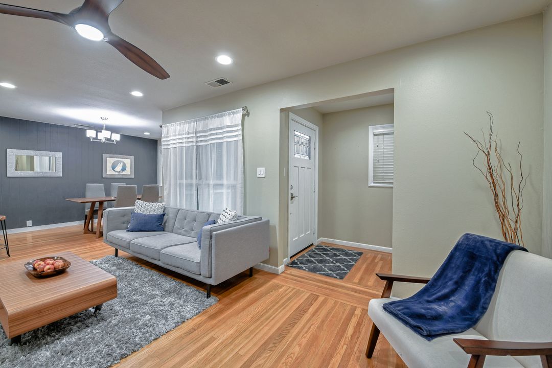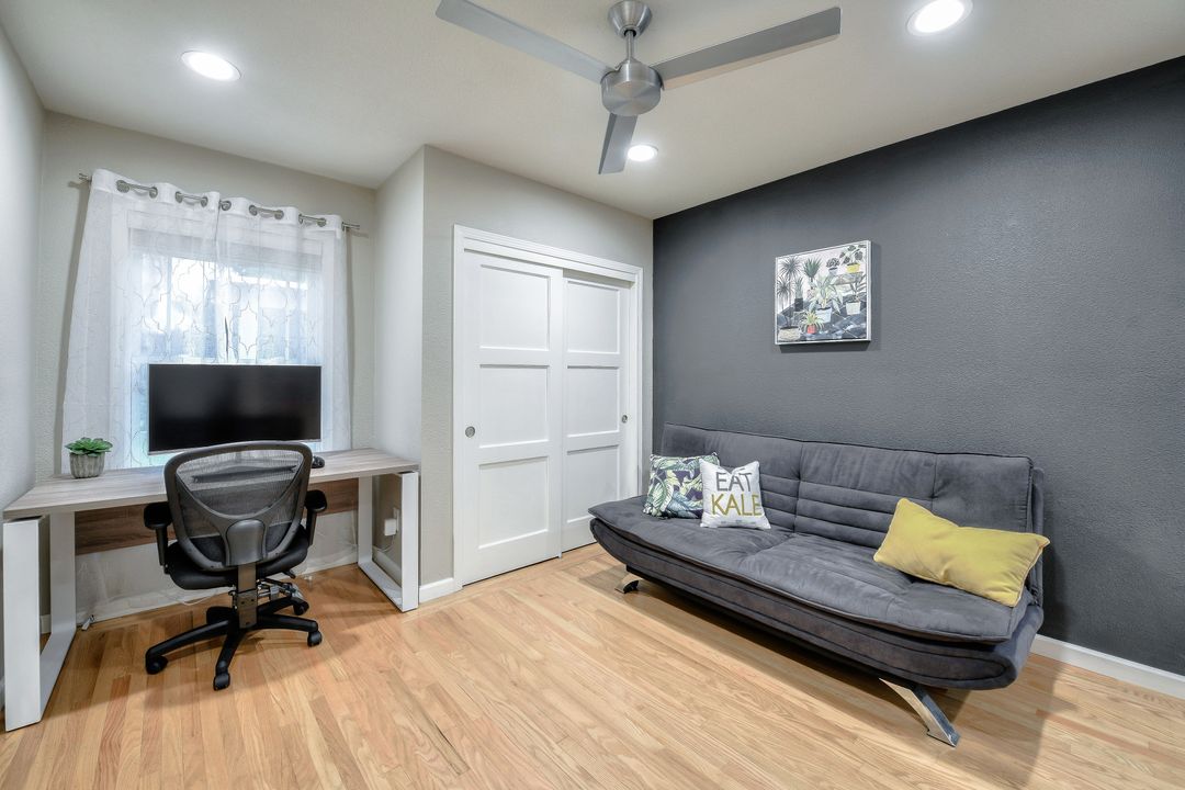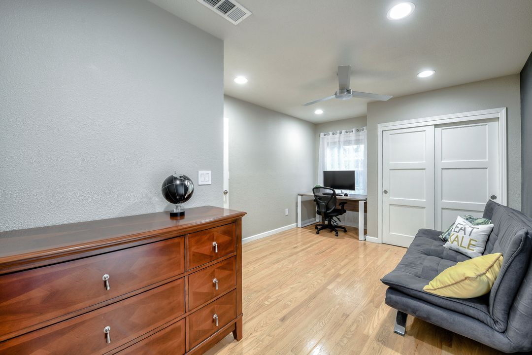 Sweet updated home on a tree-lined street in Willow Glen. Updated and expanded with an open concept plan. Hardwood floors. bright space with lots of windows and recessed lighting. Updated kitchen has quartz counters, striking marble tile backsplash wall, gas cooktop and an eat at island. The master includes an ensuite bathroom with walk-in rainshower. Two additional bedrooms, one with a slider to the backyard. A perfect at home work or school space. Indoor laundry room and hall bath are convenient and updated. The backyard offers multiple entertainment areas with two pergolas, low maintenance artificial turf and raised bed gardens creating a private oasis. Attached garage with EV charging station. Leased solar panels help offset your energy bills. Close to public schools (Booksin Elem., Willow Glen Middle & Willow Glen High), grocery stores, restaurants and parks. Take a look, fall in love and make it your home.