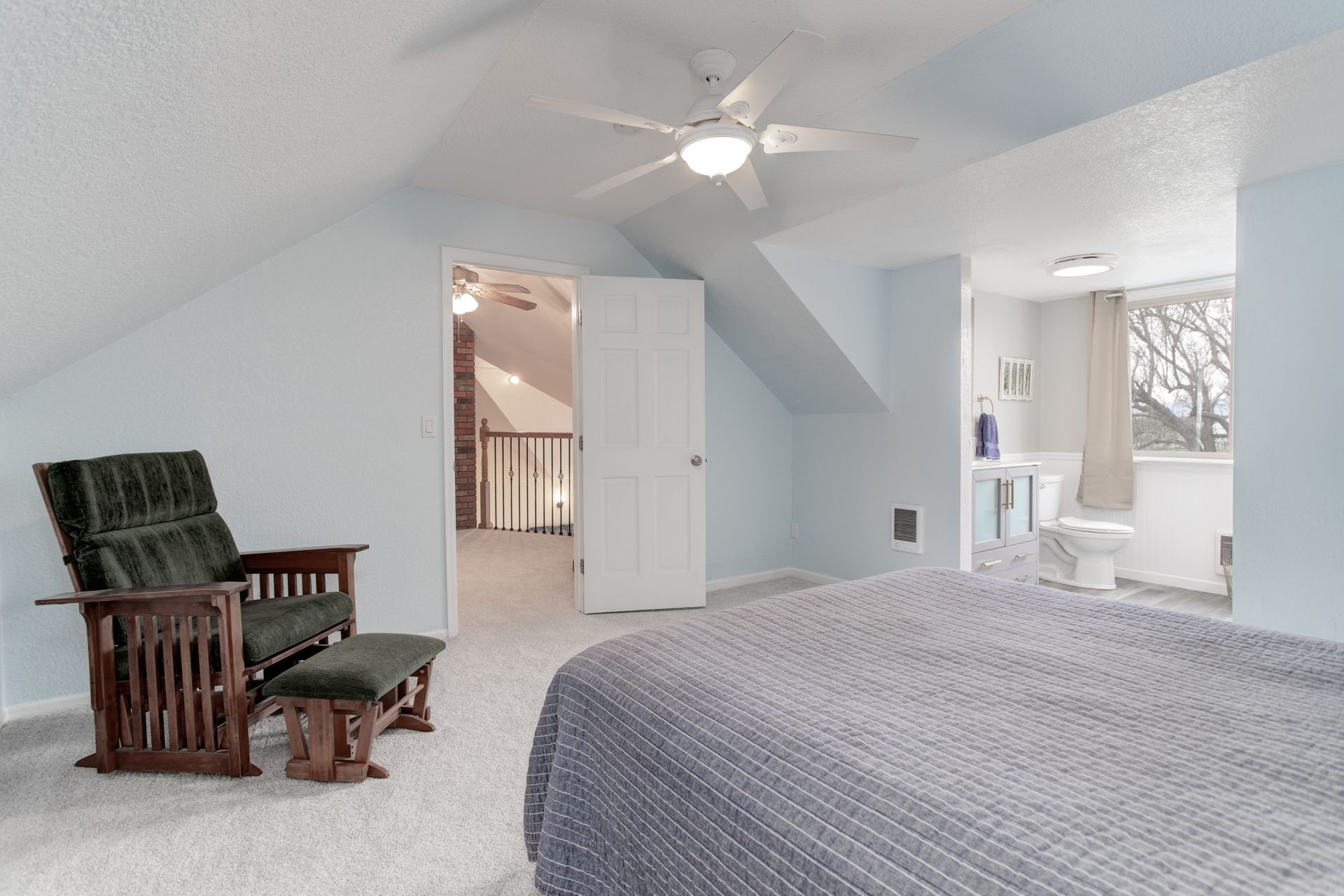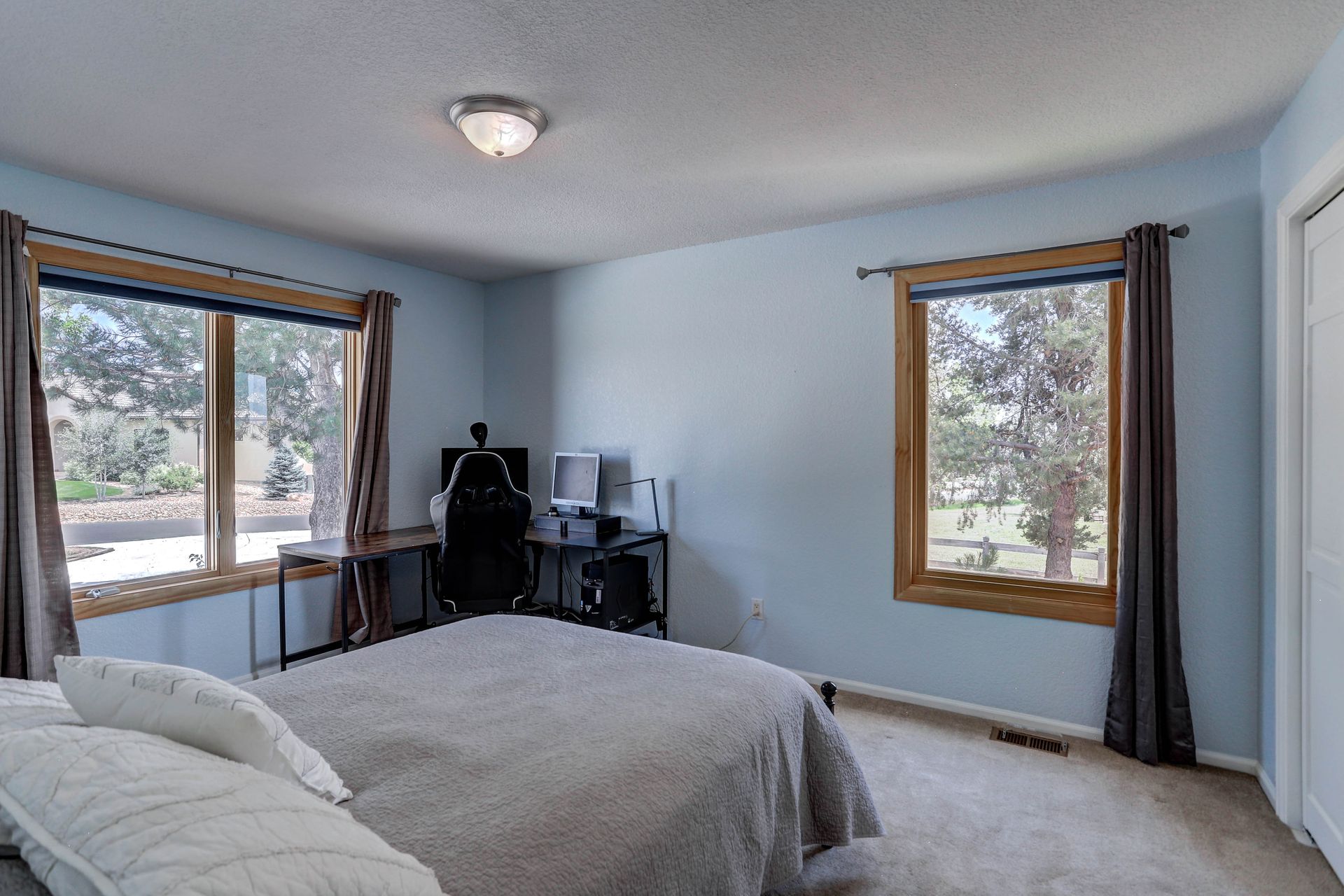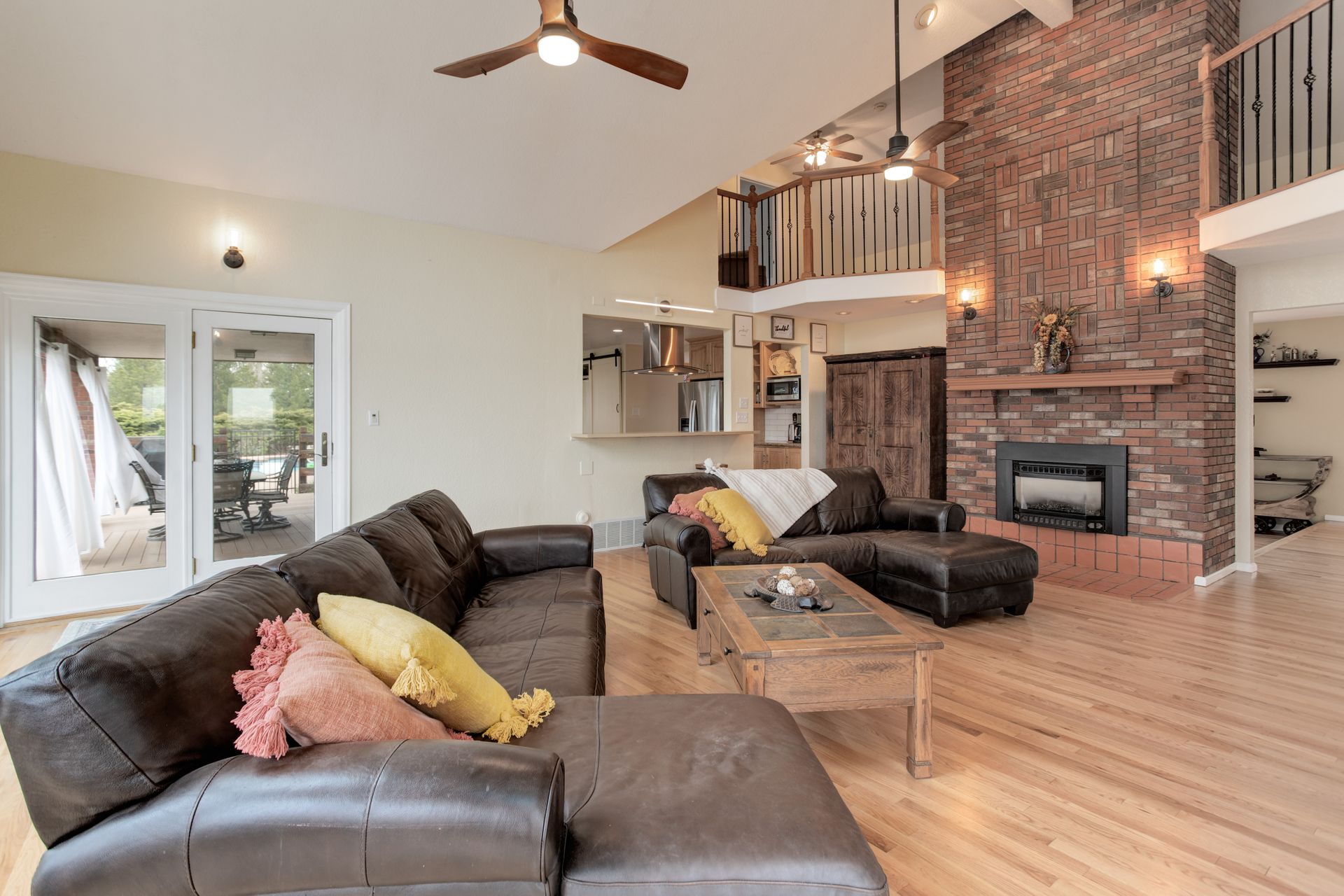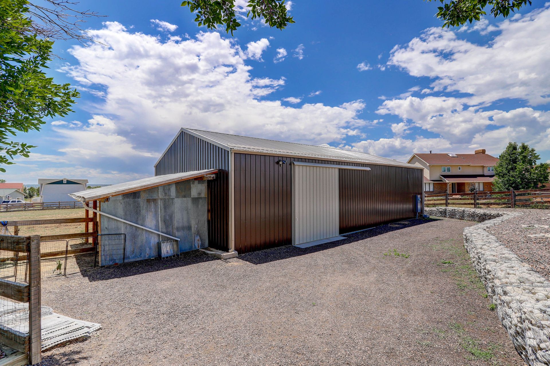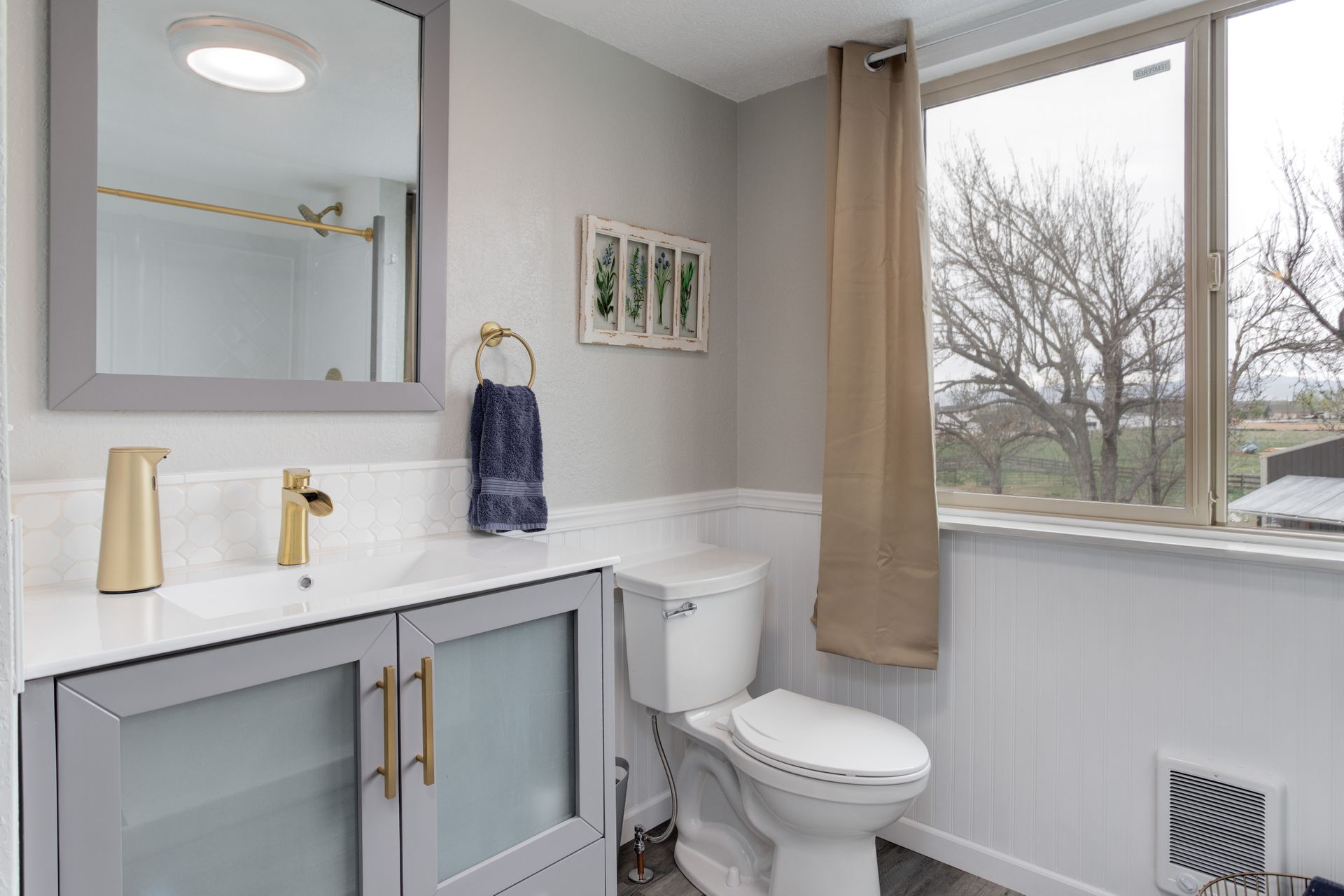 Sprawling 4300+ sqft. Colorado country estate is the perfect combination of manicured lawns, mature trees/plants and horse facilities! This welcoming home has casement windows, solid wood 6-panel doors, gleaming wood floors, new carpet and on the main level features...sunken 13x20 living room with new wood floors, bay window and arched entry to formal dining room, with bay window and art/pottery niches...12x14 office with wood floors and divided light French doors...19x24 great room with vaulted ceilings, West-facing window wall, floor-to-ceiling brick fireplace, view up to loft and walkout to both covered Trex decks...updated, sunny eat-in kitchen with hickory cabinets, granite counters, all appliances including newer SS smooth top range with double oven and SS fridge, recessed lighting, two pantries, and walk-out to the covered deck...convenient laundry and powder bath off the kitchen...17x20 primary bedroom with mountain views, pergola-covered deck access, and ensuite 5-pc bath with French doors, clawfoot tub, hickory cabinets and walk-in closet with custom shelving and ironing center...and 2nd bedroom with convenient access to full hall bath with new vanity and glass block window. The 11x18 upper level loft with wrought iron railing overlooks the great room, and leads to the tucked away spacious, yet cozy, 3rd bedroom with dormer and new ensuite 3/4 bath. The basement features a large game/rec room...spacious 4th bedroom with walk-in closet...and 15x27 mech/storage room. Outside, you'll enjoy the fenced pool area with waterfall and in-ground spa... park-like backyard...mature, producing grape vines (sellers make their own wine!), greenhouse & garden with abundant vegetables & plants...fenced pasture with round pen and lean-to stable/stall access...and easy in-and-out, paved/road base access to 56x30 garage/barn/workshop. Solar panels, central AC and so much more! Easy 3 mile bike ride to recreation at McKay Lake Park!
