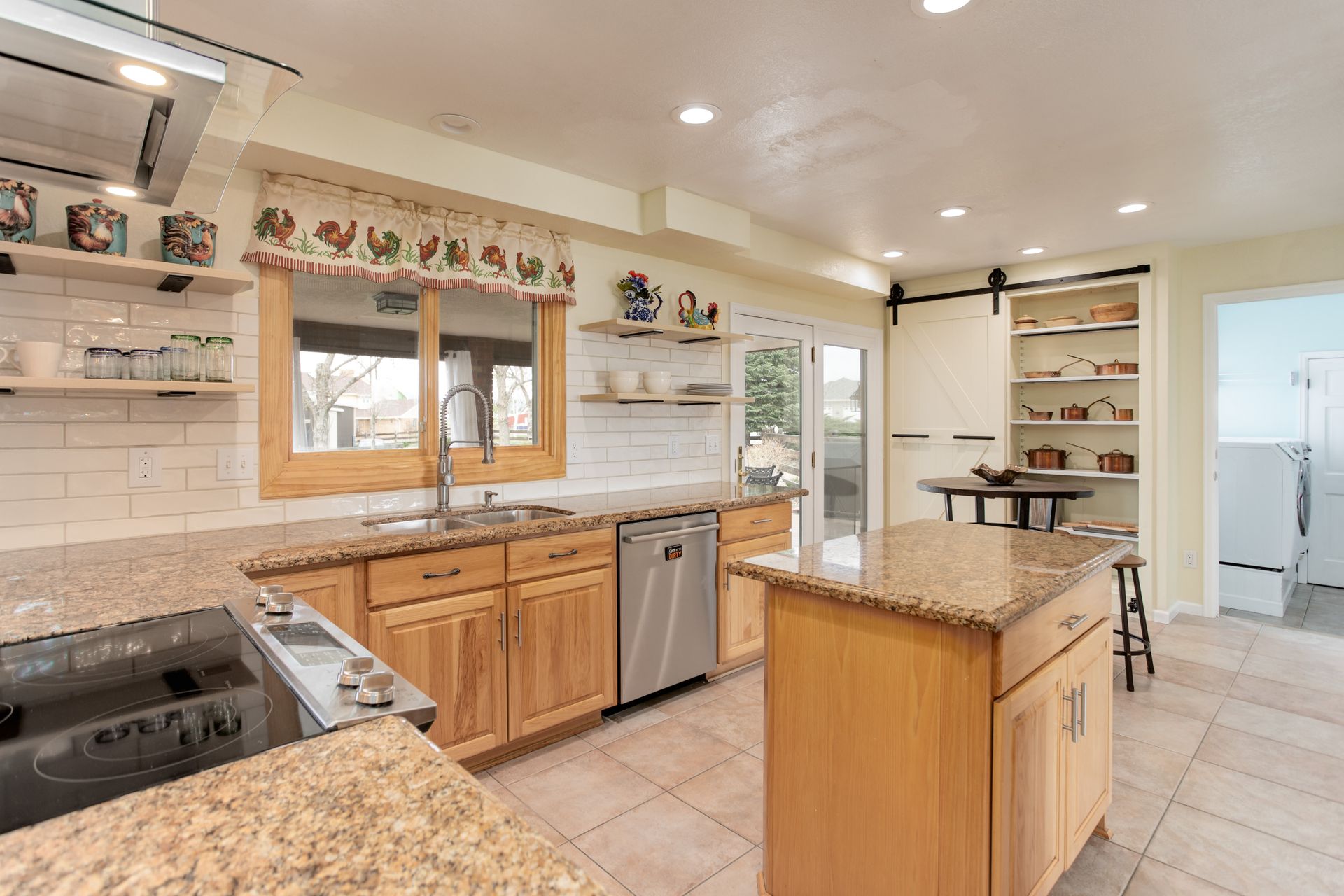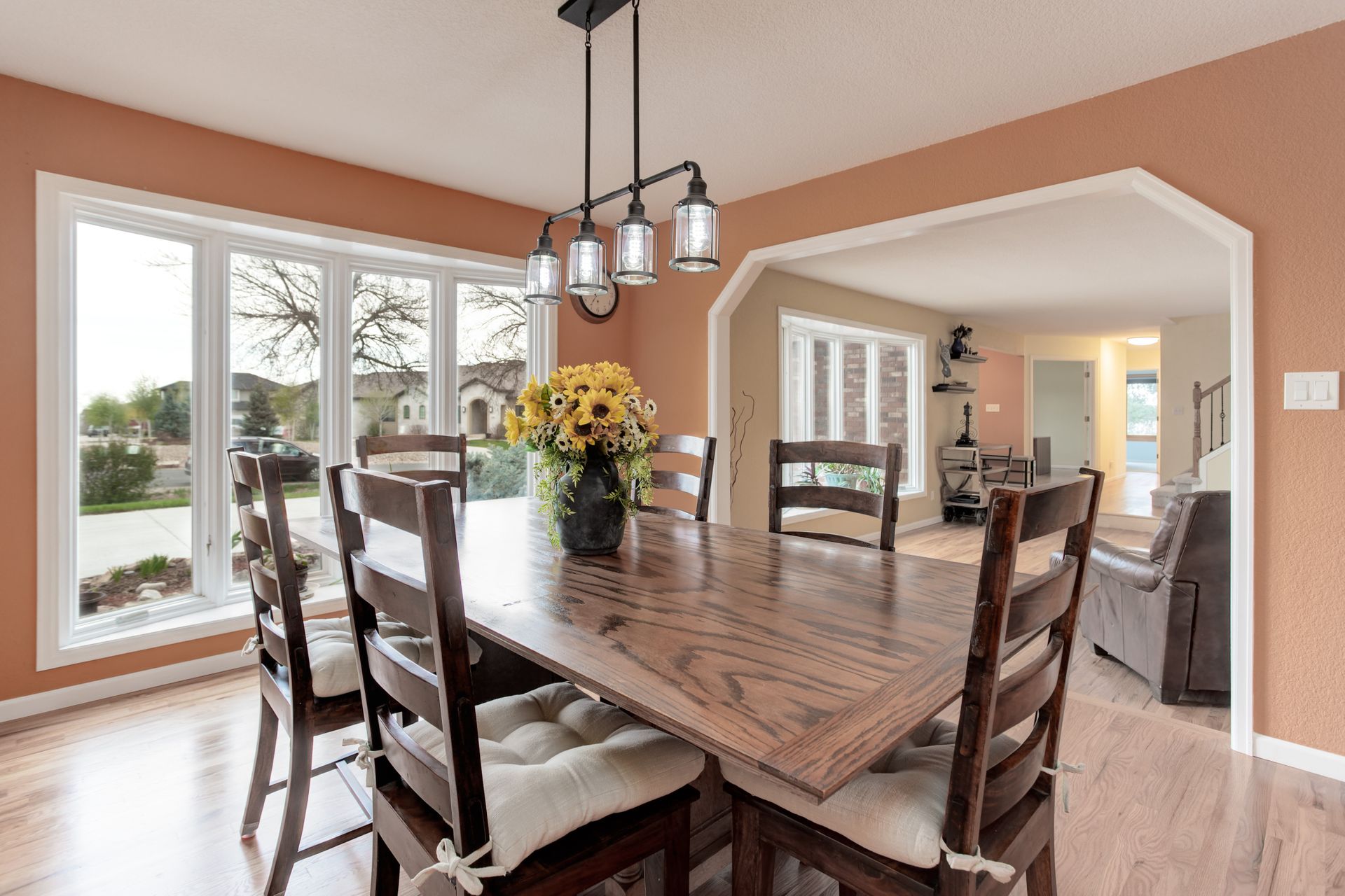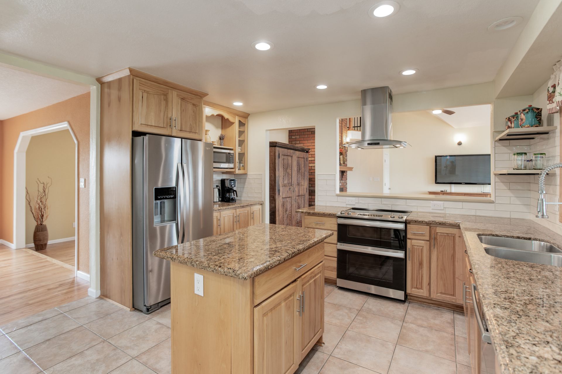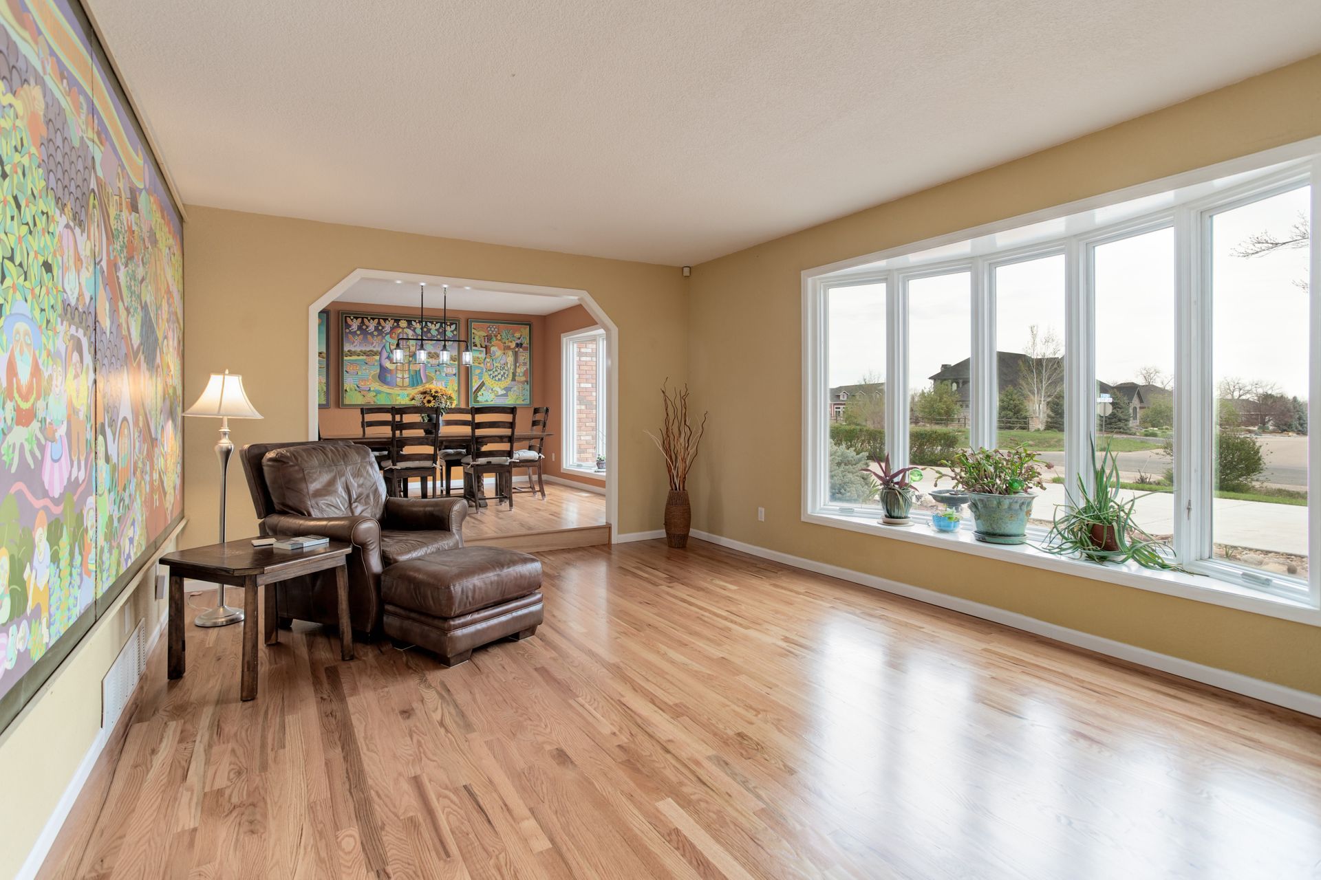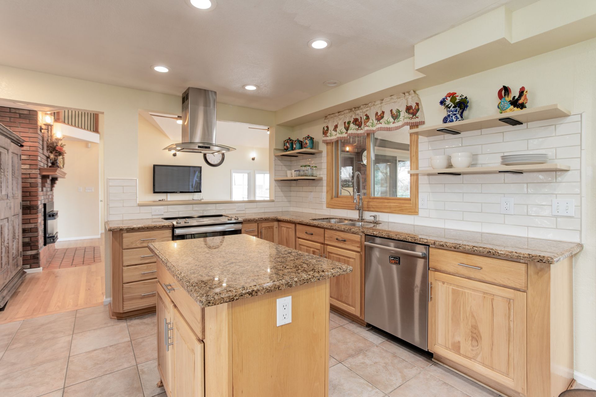 Sprawling 4300+ sqft. Colorado country estate is the perfect combination of manicured lawns, mature trees/plants and horse facilities! This welcoming home has casement windows, solid wood 6-panel doors, gleaming wood floors, new carpet and on the main level features...sunken 13x20 living room with new wood floors, bay window and arched entry to formal dining room, with bay window and art/pottery niches...12x14 office with wood floors and divided light French doors...19x24 great room with vaulted ceilings, West-facing window wall, floor-to-ceiling brick fireplace, view up to loft and walkout to both covered Trex decks...updated, sunny eat-in kitchen with hickory cabinets, granite counters, all appliances including newer SS smooth top range with double oven and SS fridge, recessed lighting, two pantries, and walk-out to the covered deck...convenient laundry and powder bath off the kitchen...17x20 primary bedroom with mountain views, pergola-covered deck access, and ensuite 5-pc bath with French doors, clawfoot tub, hickory cabinets and walk-in closet with custom shelving and ironing center...and 2nd bedroom with convenient access to full hall bath with new vanity and glass block window. The 11x18 upper level loft with wrought iron railing overlooks the great room, and leads to the tucked away spacious, yet cozy, 3rd bedroom with dormer and new ensuite 3/4 bath. The basement features a large game/rec room...spacious 4th bedroom with walk-in closet...and 15x27 mech/storage room. Outside, you'll enjoy the fenced pool area with waterfall and in-ground spa... park-like backyard...mature, producing grape vines (sellers make their own wine!), greenhouse & garden with abundant vegetables & plants...fenced pasture with round pen and lean-to stable/stall access...and easy in-and-out, paved/road base access to 56x30 garage/barn/workshop. Solar panels, central AC and so much more! Easy 3 mile bike ride to recreation at McKay Lake Park!
