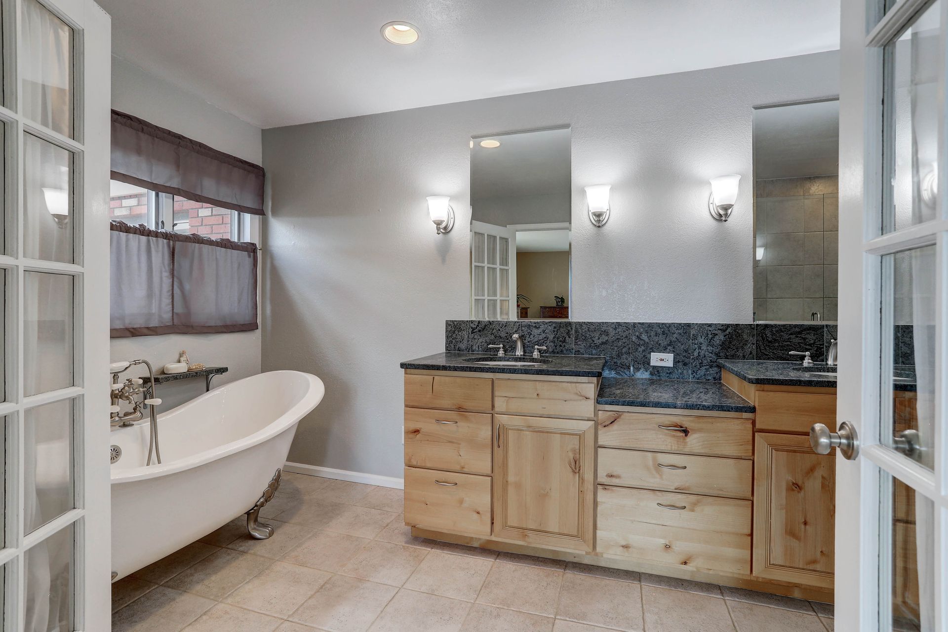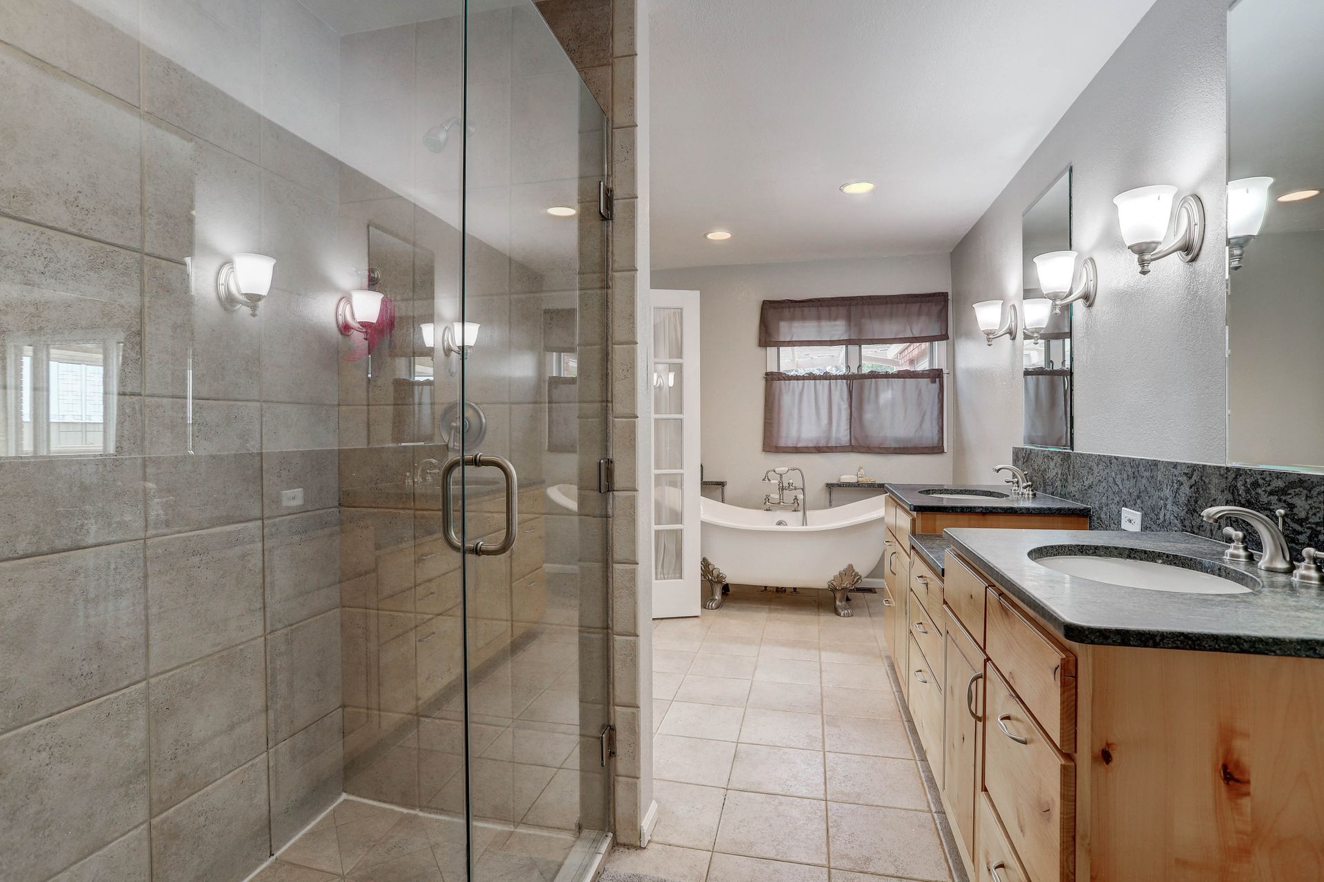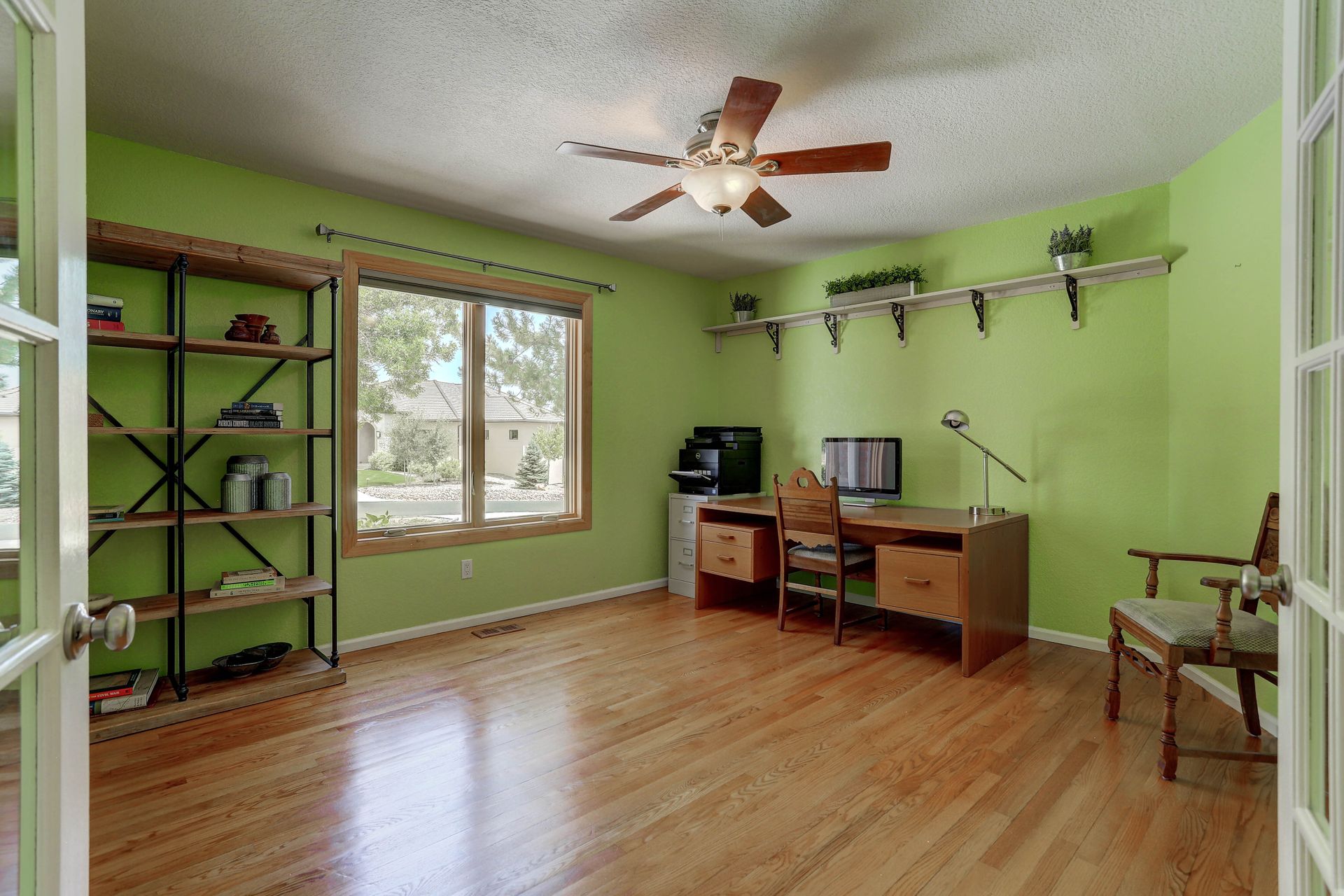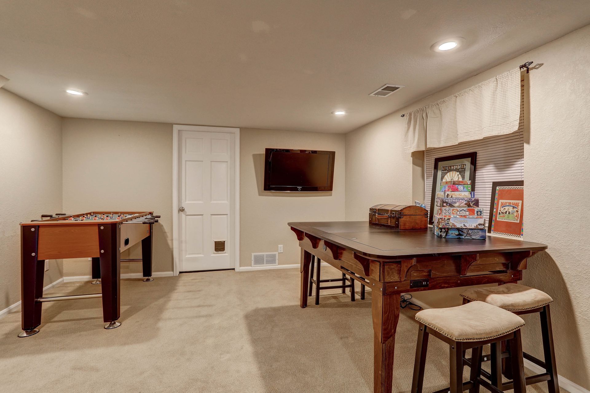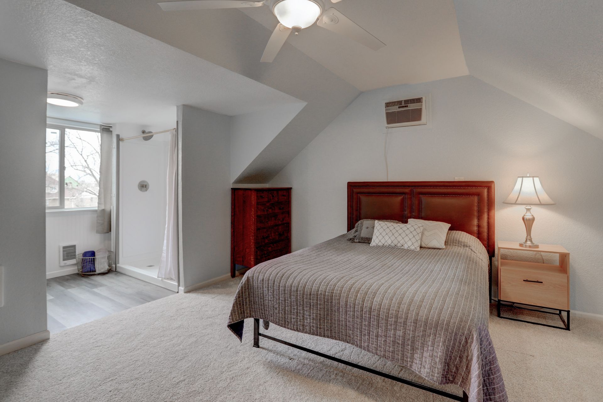 Sprawling 4300+ sqft. Colorado country estate is the perfect combination of manicured lawns, mature trees/plants and horse facilities! This welcoming home has casement windows, solid wood 6-panel doors, gleaming wood floors, new carpet and on the main level features...sunken 13x20 living room with new wood floors, bay window and arched entry to formal dining room, with bay window and art/pottery niches...12x14 office with wood floors and divided light French doors...19x24 great room with vaulted ceilings, West-facing window wall, floor-to-ceiling brick fireplace, view up to loft and walkout to both covered Trex decks...updated, sunny eat-in kitchen with hickory cabinets, granite counters, all appliances including newer SS smooth top range with double oven and SS fridge, recessed lighting, two pantries, and walk-out to the covered deck...convenient laundry and powder bath off the kitchen...17x20 primary bedroom with mountain views, pergola-covered deck access, and ensuite 5-pc bath with French doors, clawfoot tub, hickory cabinets and walk-in closet with custom shelving and ironing center...and 2nd bedroom with convenient access to full hall bath with new vanity and glass block window. The 11x18 upper level loft with wrought iron railing overlooks the great room, and leads to the tucked away spacious, yet cozy, 3rd bedroom with dormer and new ensuite 3/4 bath. The basement features a large game/rec room...spacious 4th bedroom with walk-in closet...and 15x27 mech/storage room. Outside, you'll enjoy the fenced pool area with waterfall and in-ground spa... park-like backyard...mature, producing grape vines (sellers make their own wine!), greenhouse & garden with abundant vegetables & plants...fenced pasture with round pen and lean-to stable/stall access...and easy in-and-out, paved/road base access to 56x30 garage/barn/workshop. Solar panels, central AC and so much more! Easy 3 mile bike ride to recreation at McKay Lake Park!