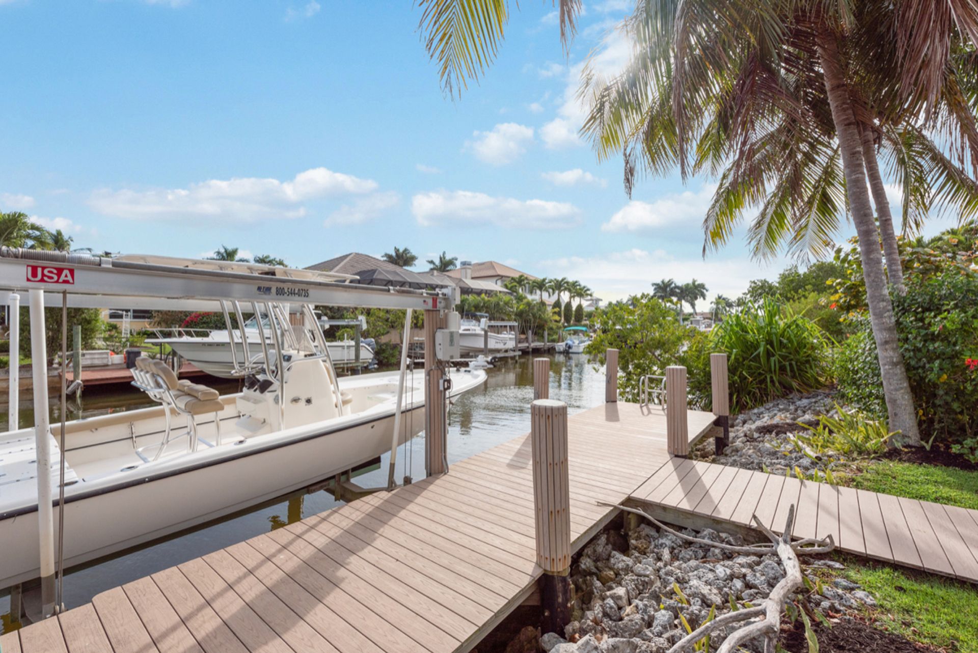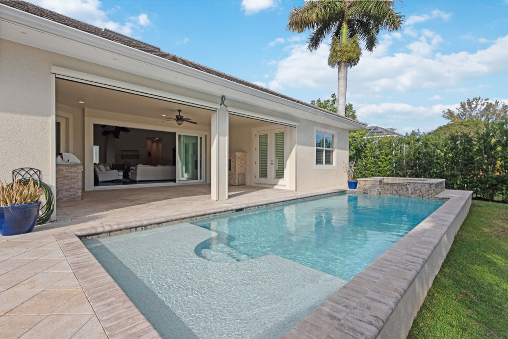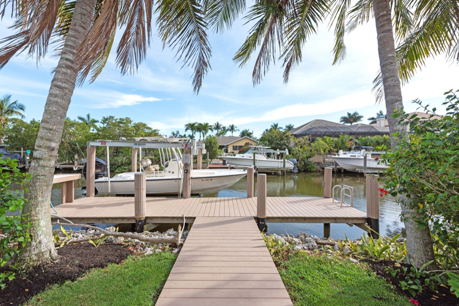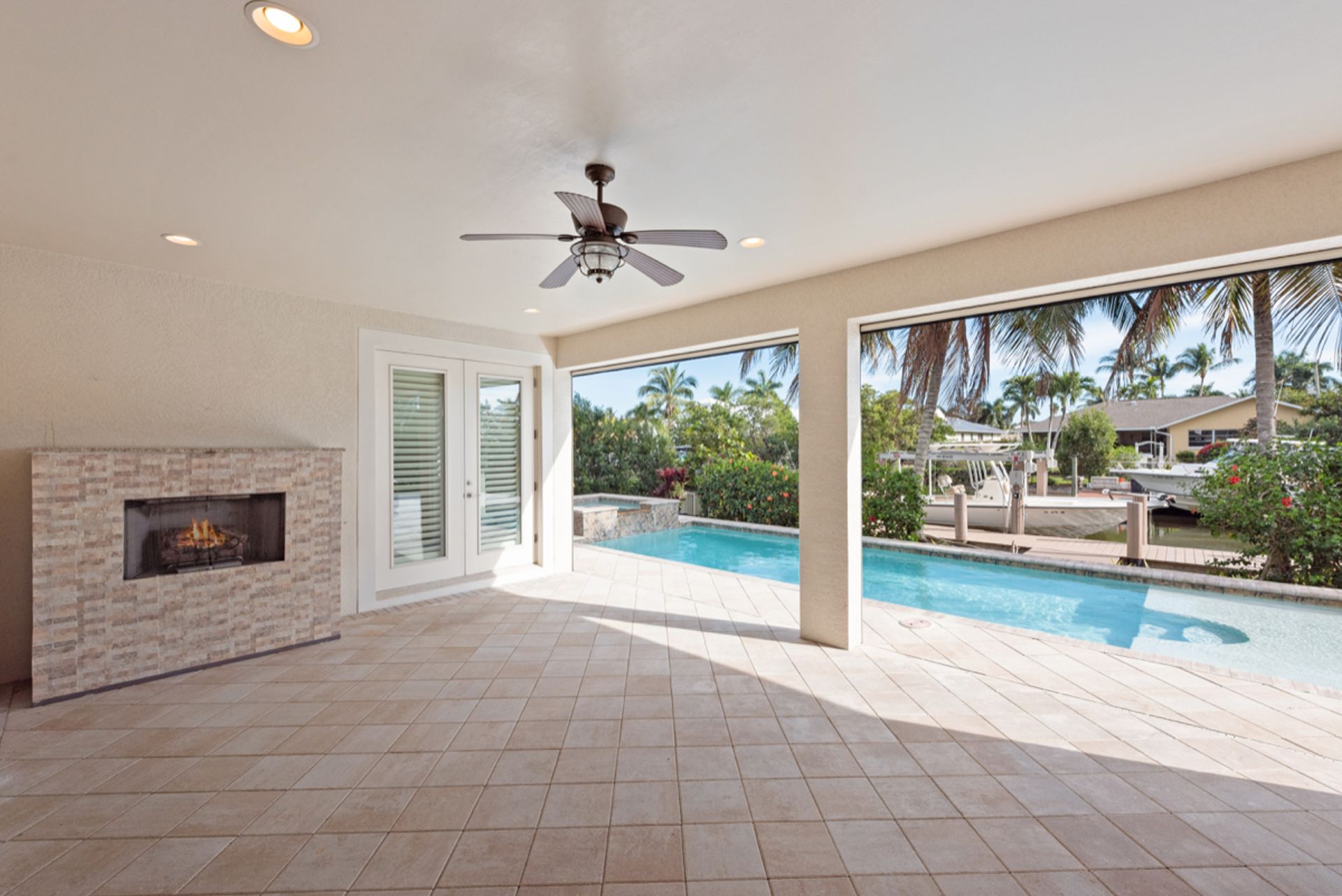 Enjoy the Naples lifestyle, within minutes to downtown out the front door and keeping your boat on the 12k lift out back with no bridges out to the Gulf of Mexico. Built in 2015, this home offers over 3,000 square feet, four bedrooms, four baths, a heated saltwater pool and a spa. The gourmet kitchen is perfect for entertaining with an oversized island and Thermador appliances and features 18' ceilings in the great room with water views. Some of the home's upgrades include quartz and granite counters, high-end cabinetry, vanities, tile showers, wood floors, built-in outdoor grill and fireplace, power retracting screens, impact windows and doors, plantation shutters, mature landscape and custom closet systems throughout. There are wonderful pool and canal views from the great room, kitchen, dining, guest and primary rooms.