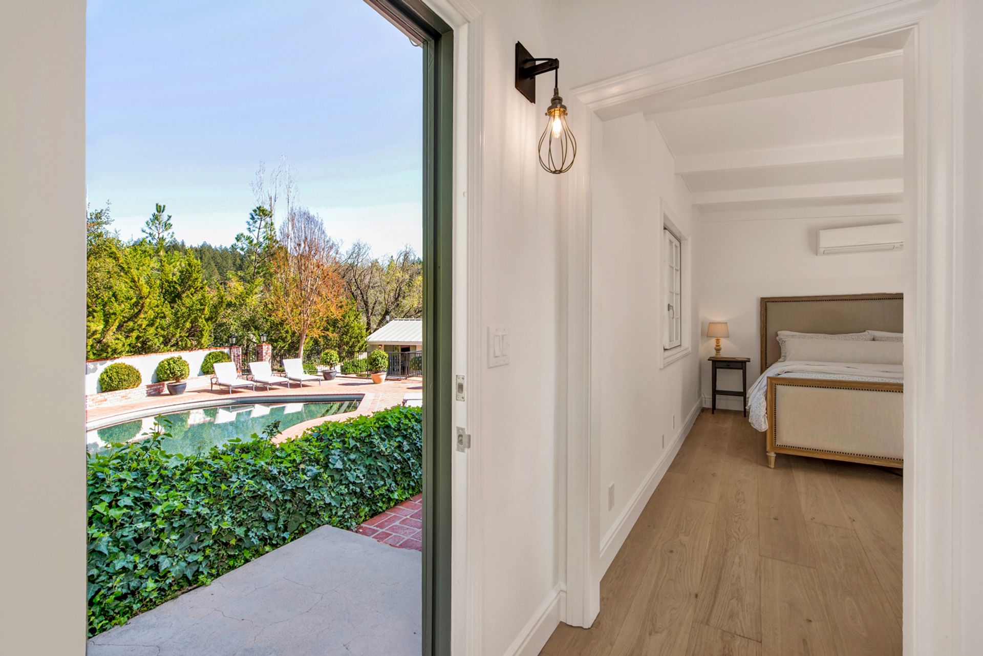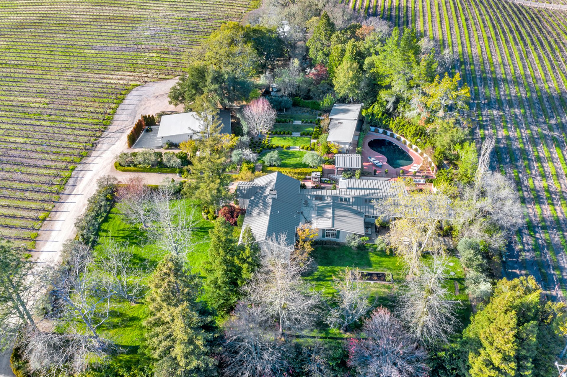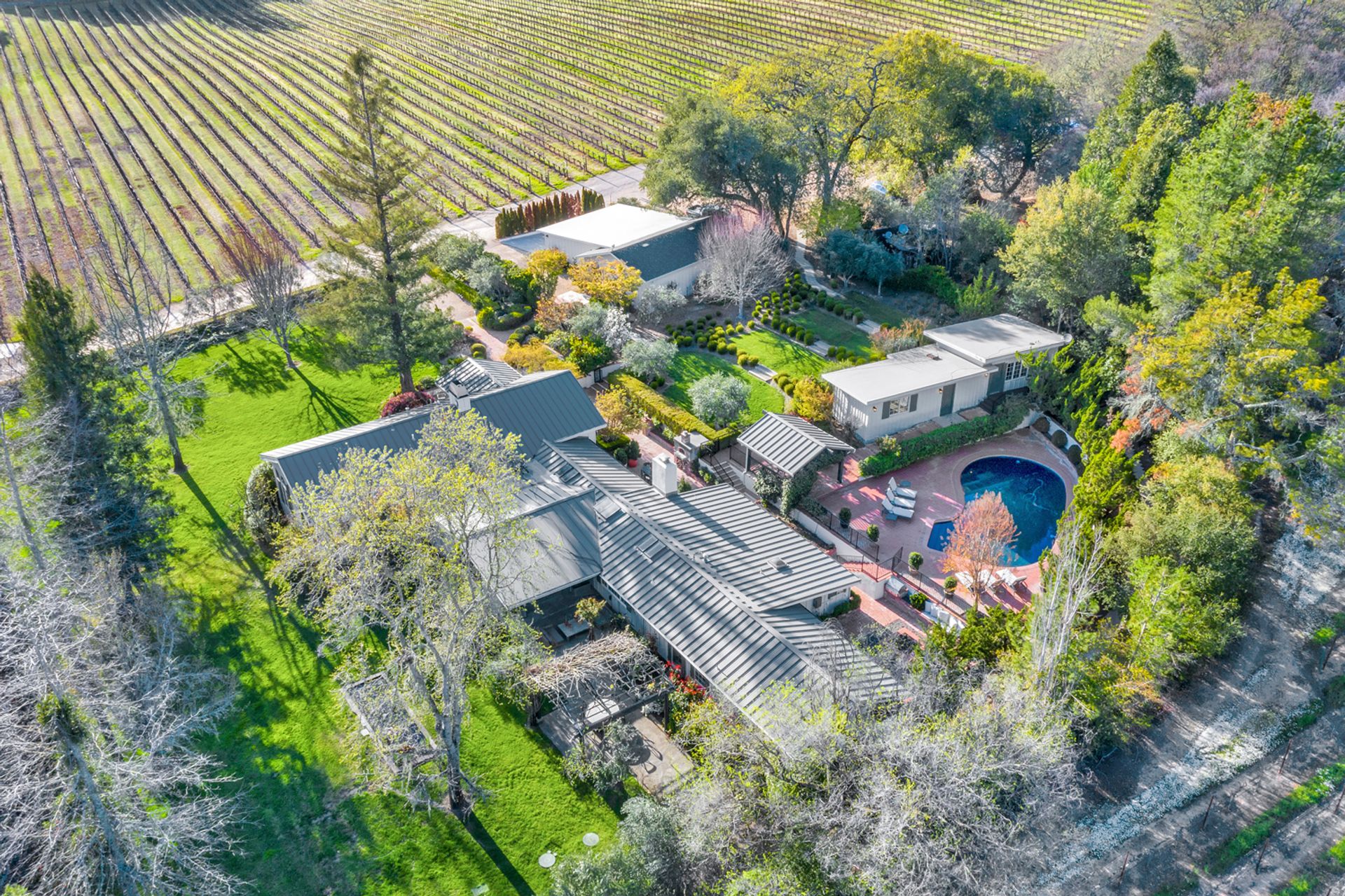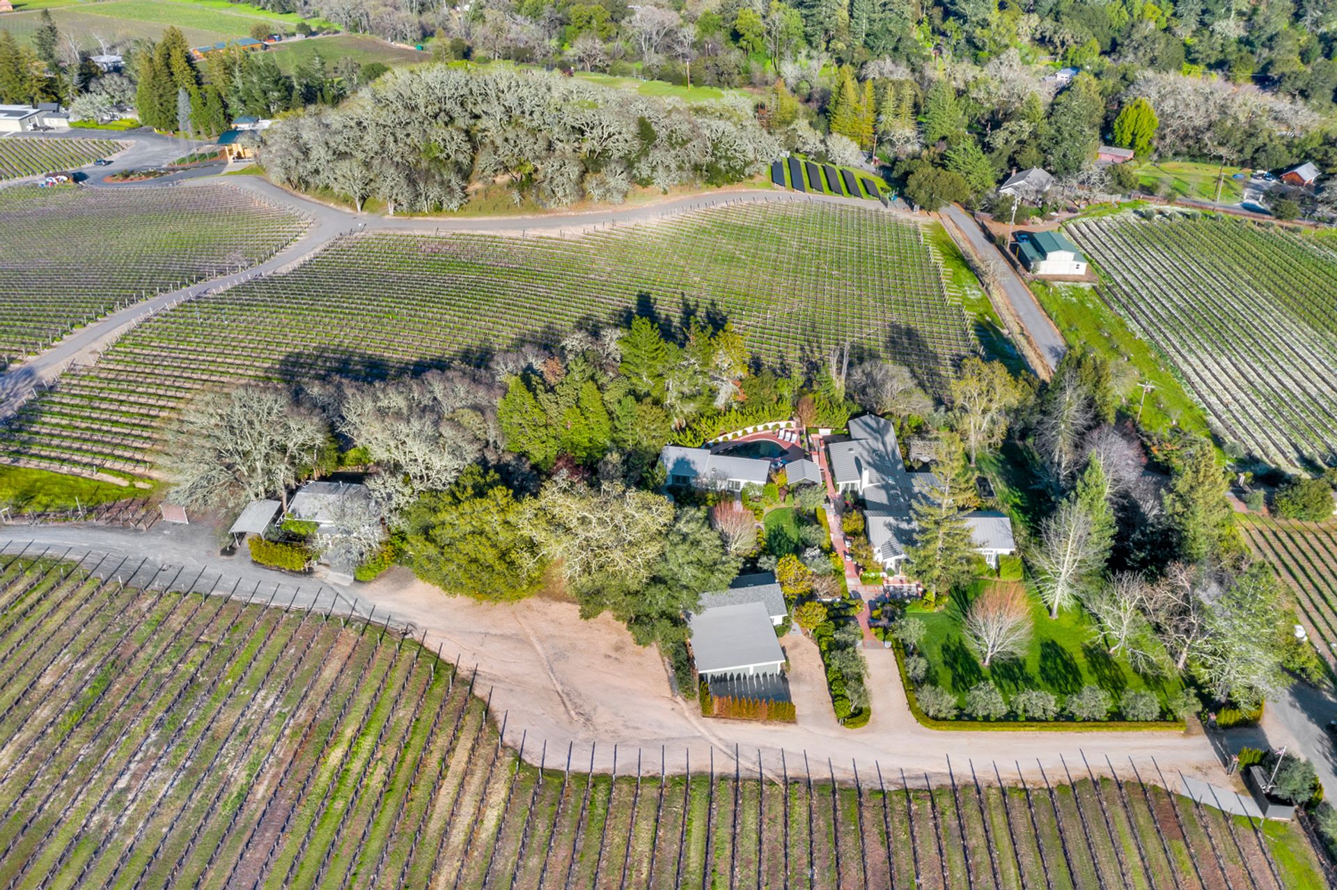 Set in the heart of Sonoma County, approximately 65 miles north of the Golden Gate Bridge and close to the town of Healdsburg, this 21 acre vineyard estate captures timeless architectural features of arched doorways, wide plank wood flooring, brick courtyards, and outdoor dining terraces. The residential compound features a thoughtfully renovated estate including a main house, a guest home, 2 cottage casitas, detached office building, and 12+/- acres planted to Cabernet Sauvignon in the Alexander Valley AVA. The manicured grounds feature meandering brick pathways that link the amenities of the estate from the main residence to the outdoor pool and well-appointed cottage casitas, poolside dining under the wisteria covered pergolas, fire pit, pizza oven, and outdoor grill, expansive lawn areas bordered with olive trees. The natural beauty and distinctive countryside showcase the gently rolling vineyard land and pond. Multiple residences make this an ideal family compound.