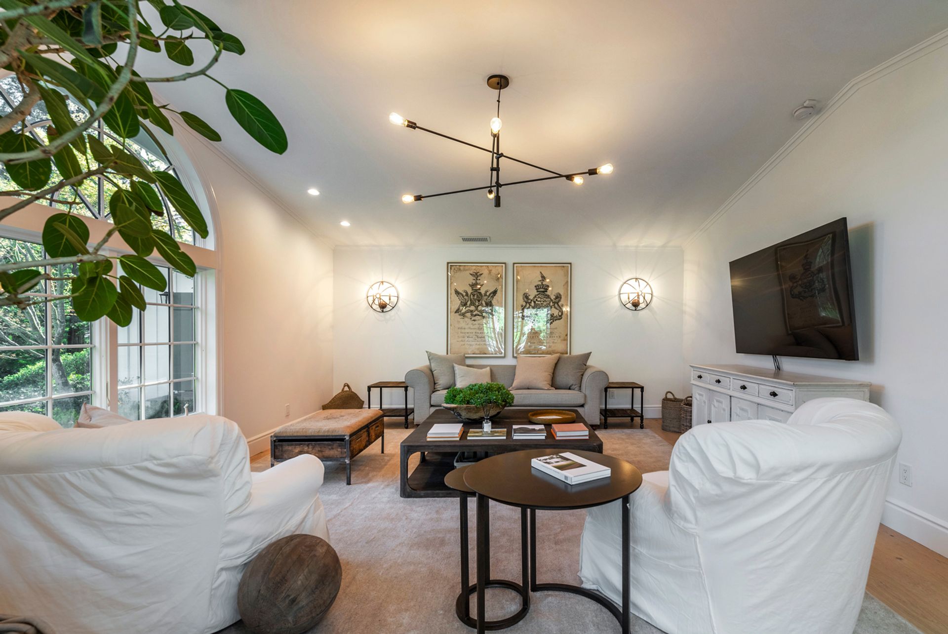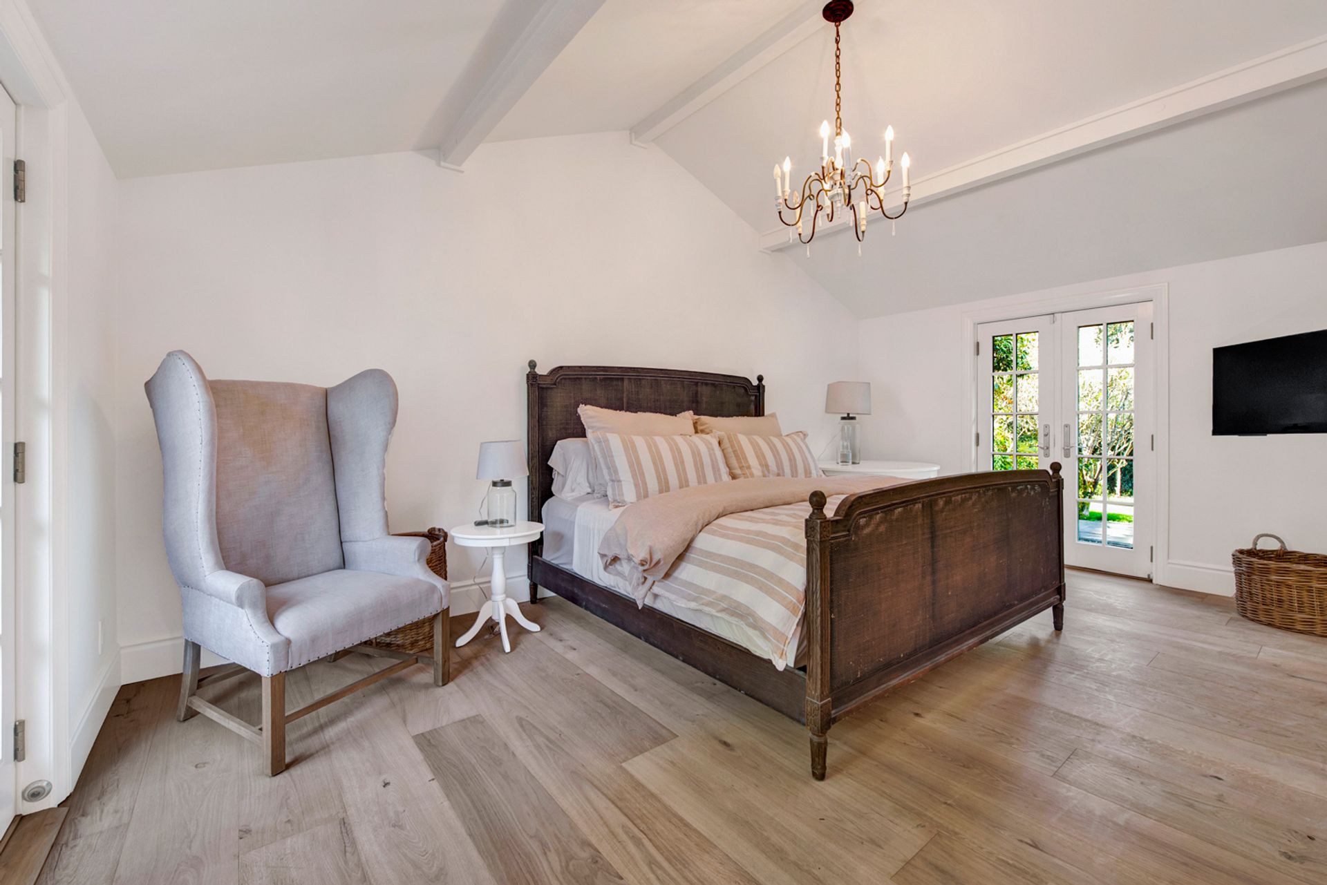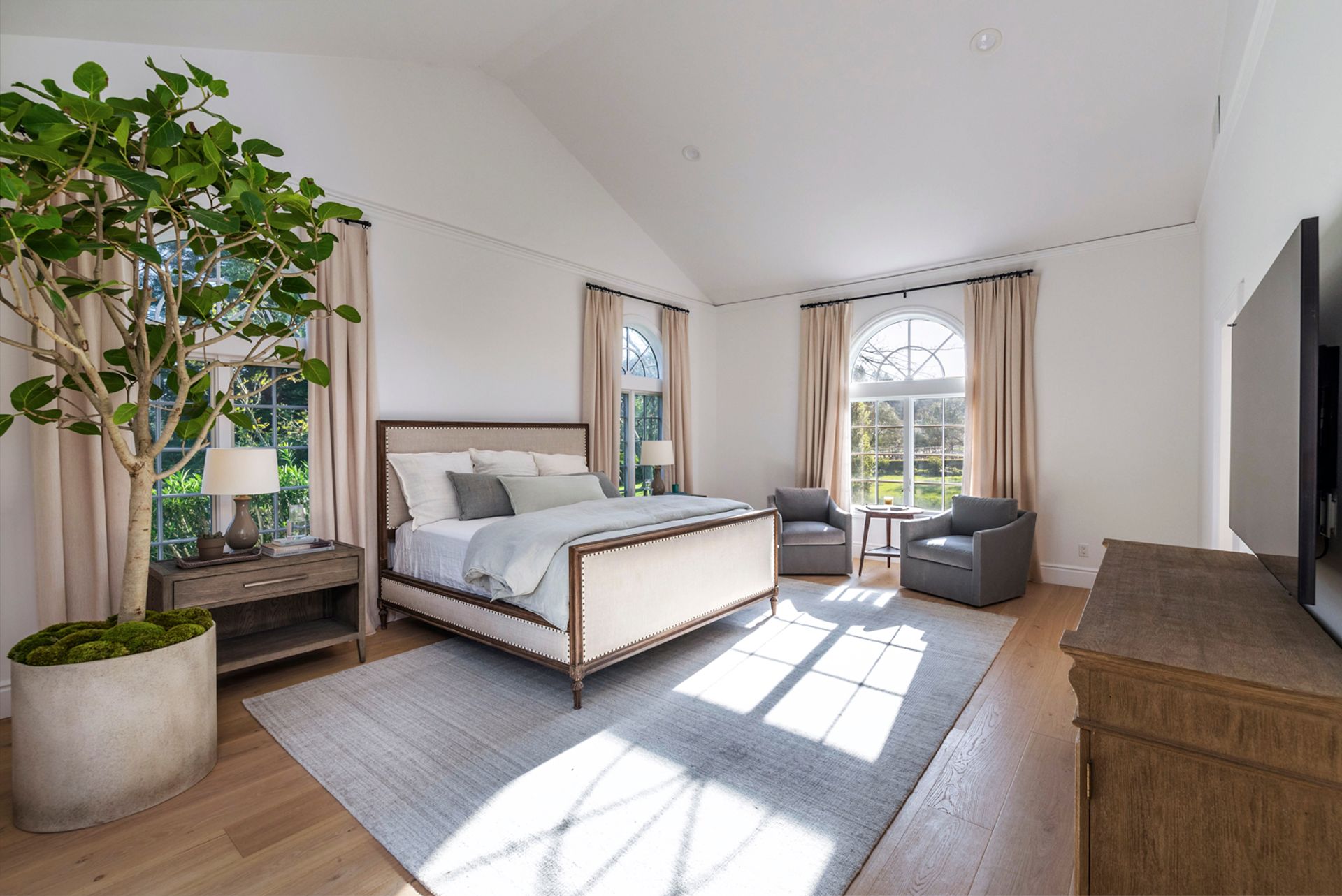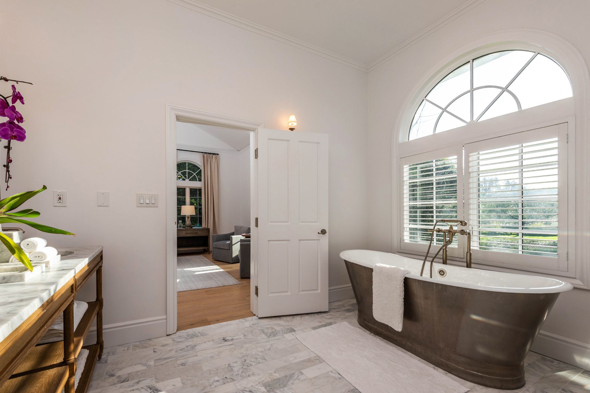 · Master suite wing includes high ceiling, arched windows, French doors to garden, secondary walk-in closet, secondary master bath