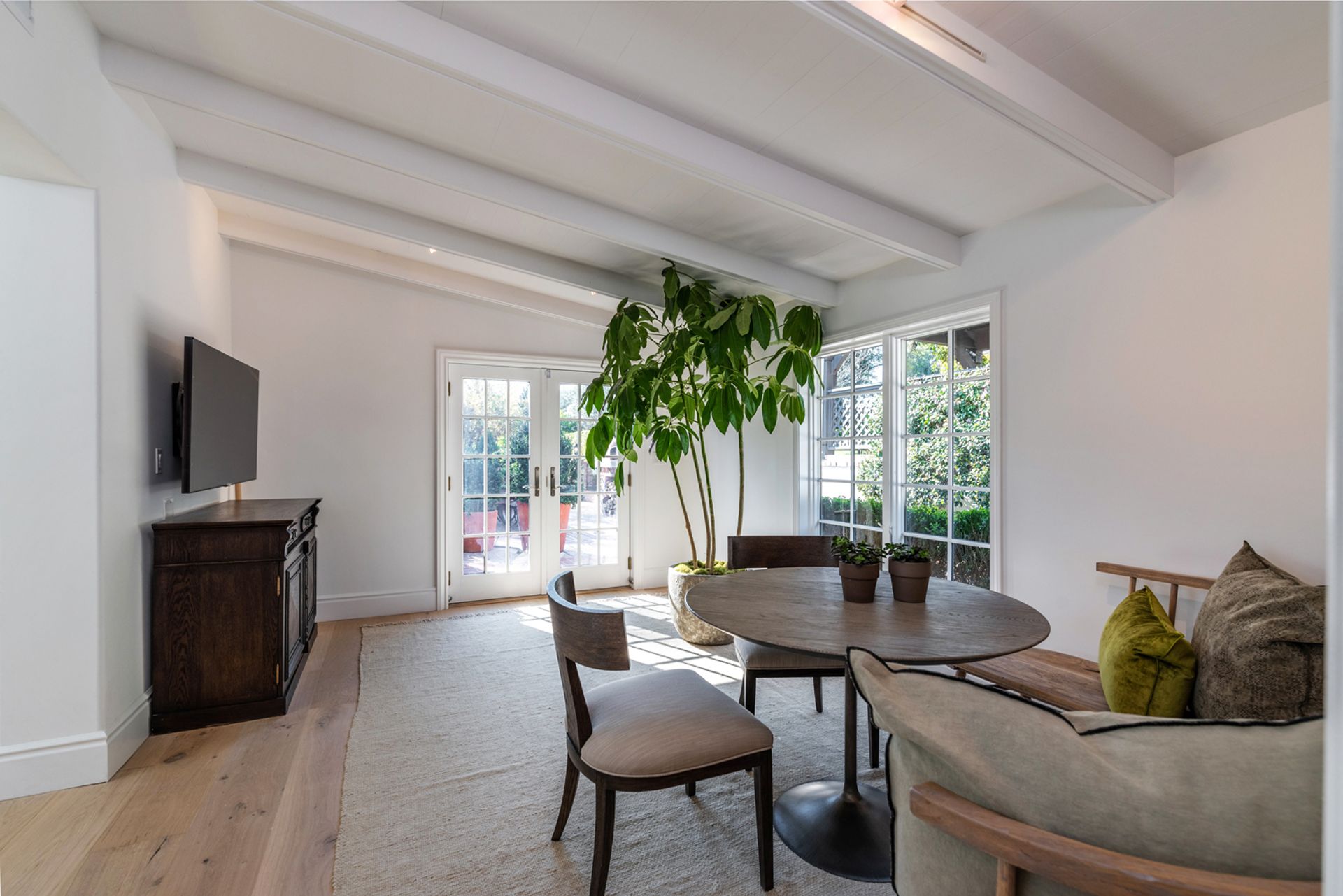 · Breakfast room has exposed beam ceiling, French doors to brick patio