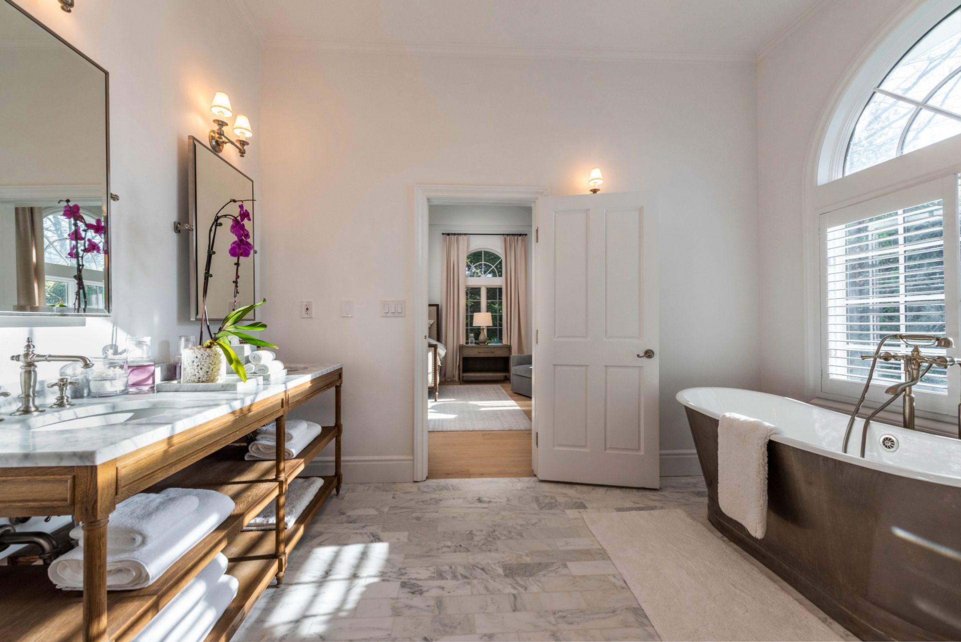· Main master bath boasts marble floors, dual sinks in marble vanity, soaking tub, shower stall, large walk-in closet