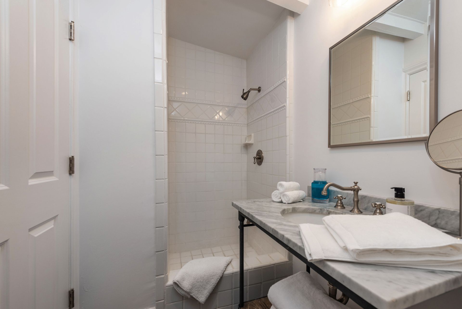 · Casita #1: bedroom and bath reading nook, French doors to deck