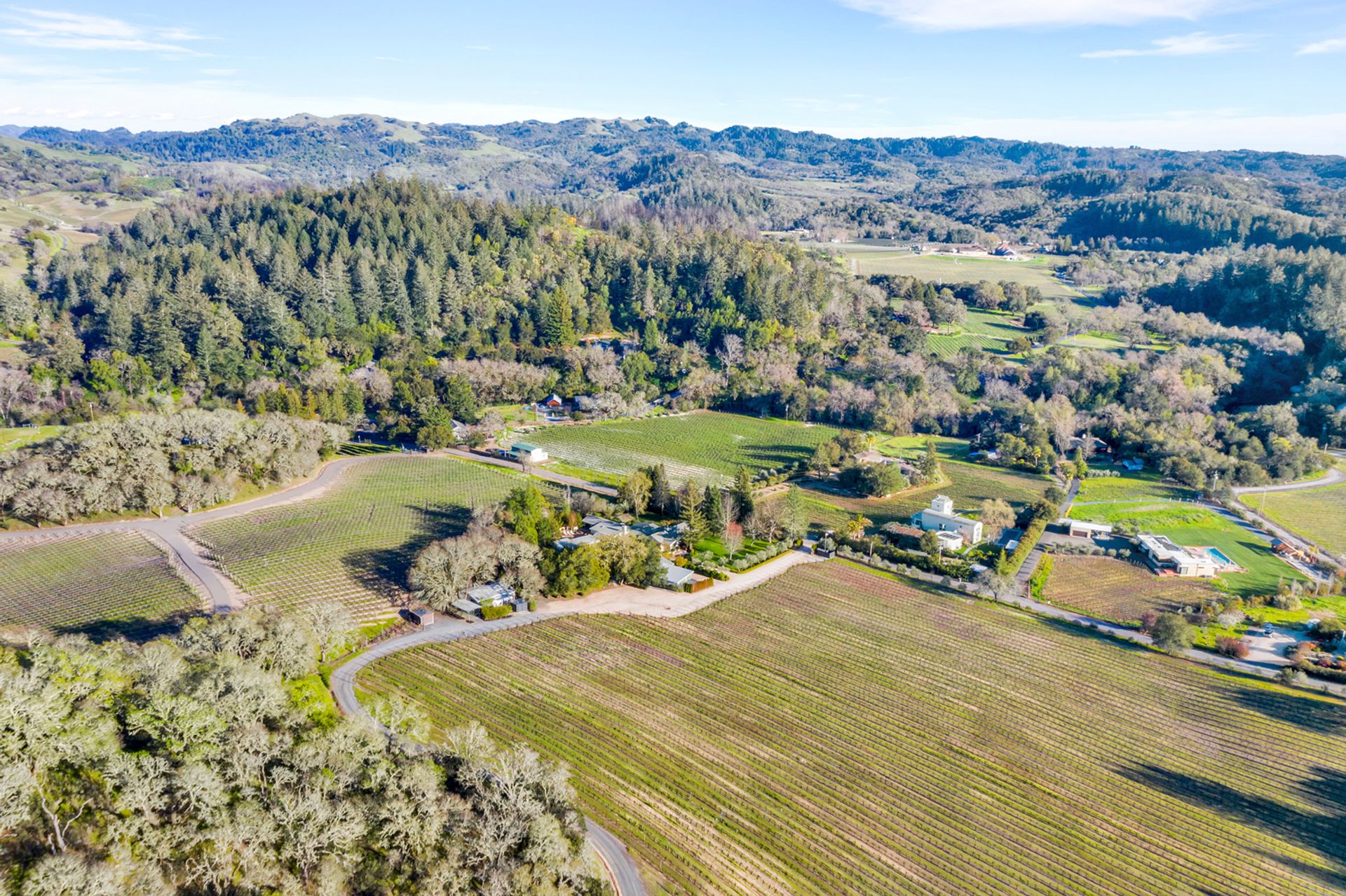 Located just off scenic Highway 128 in the highly acclaimed Alexander Valley AVA on approximately 21 acres with 12+/- acres plated to Cabernet Sauvignon and year-round pond and custom tree house. Manicured maple trees, olive trees, roses, azaleas, and stately hedges. Brick pathways meander through the property for a sunset stroll at days end. Raised vegetable and garden beds. Zoning: LIA20 - Williamson Act contract