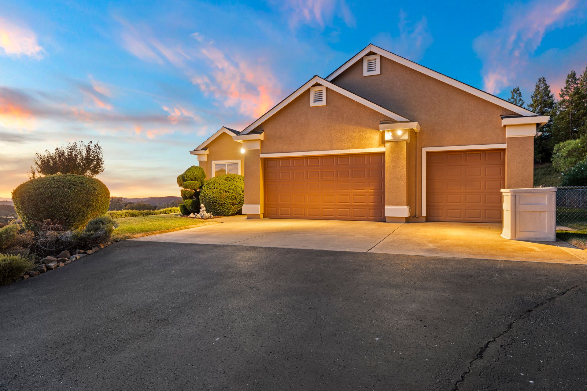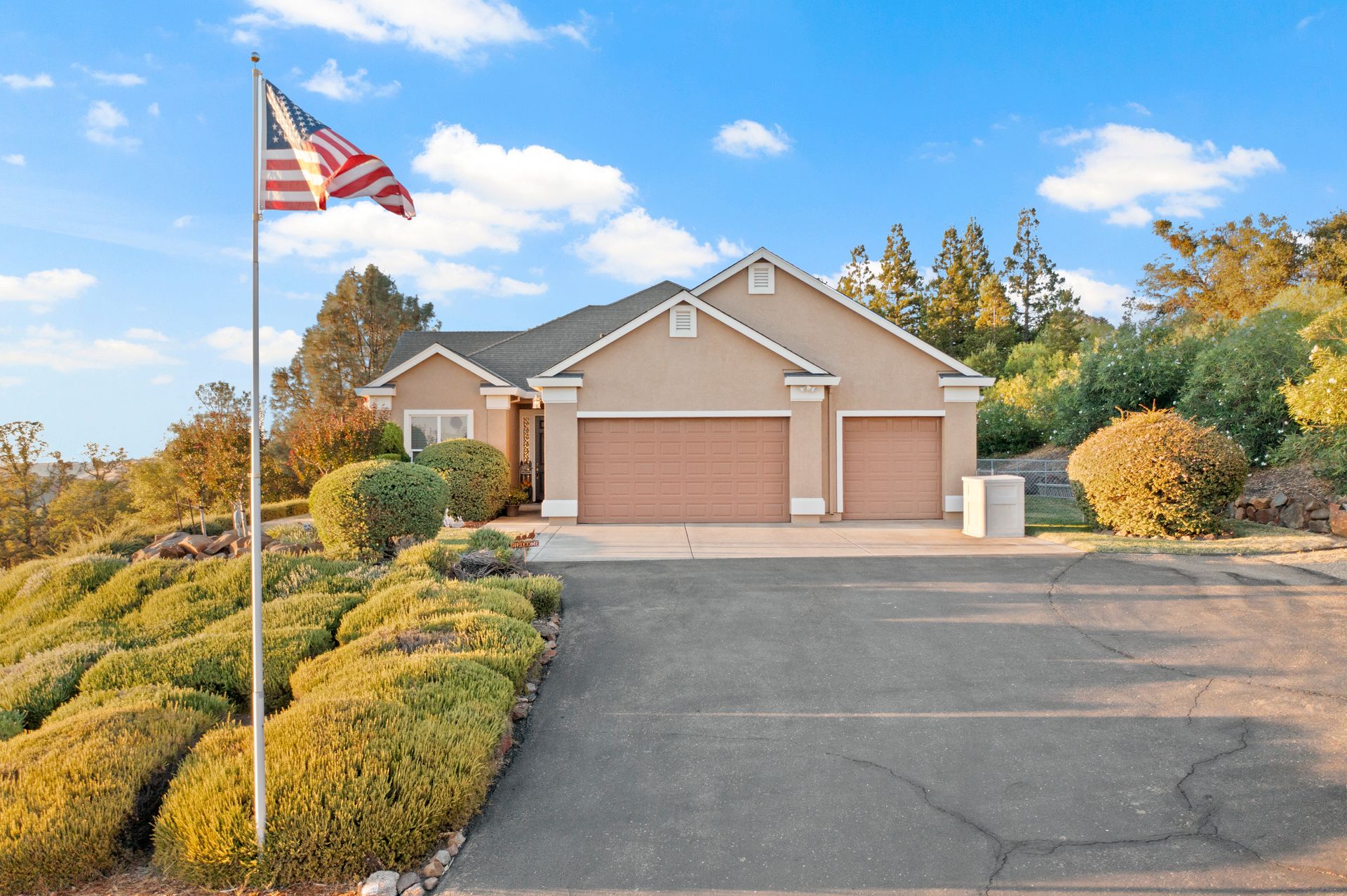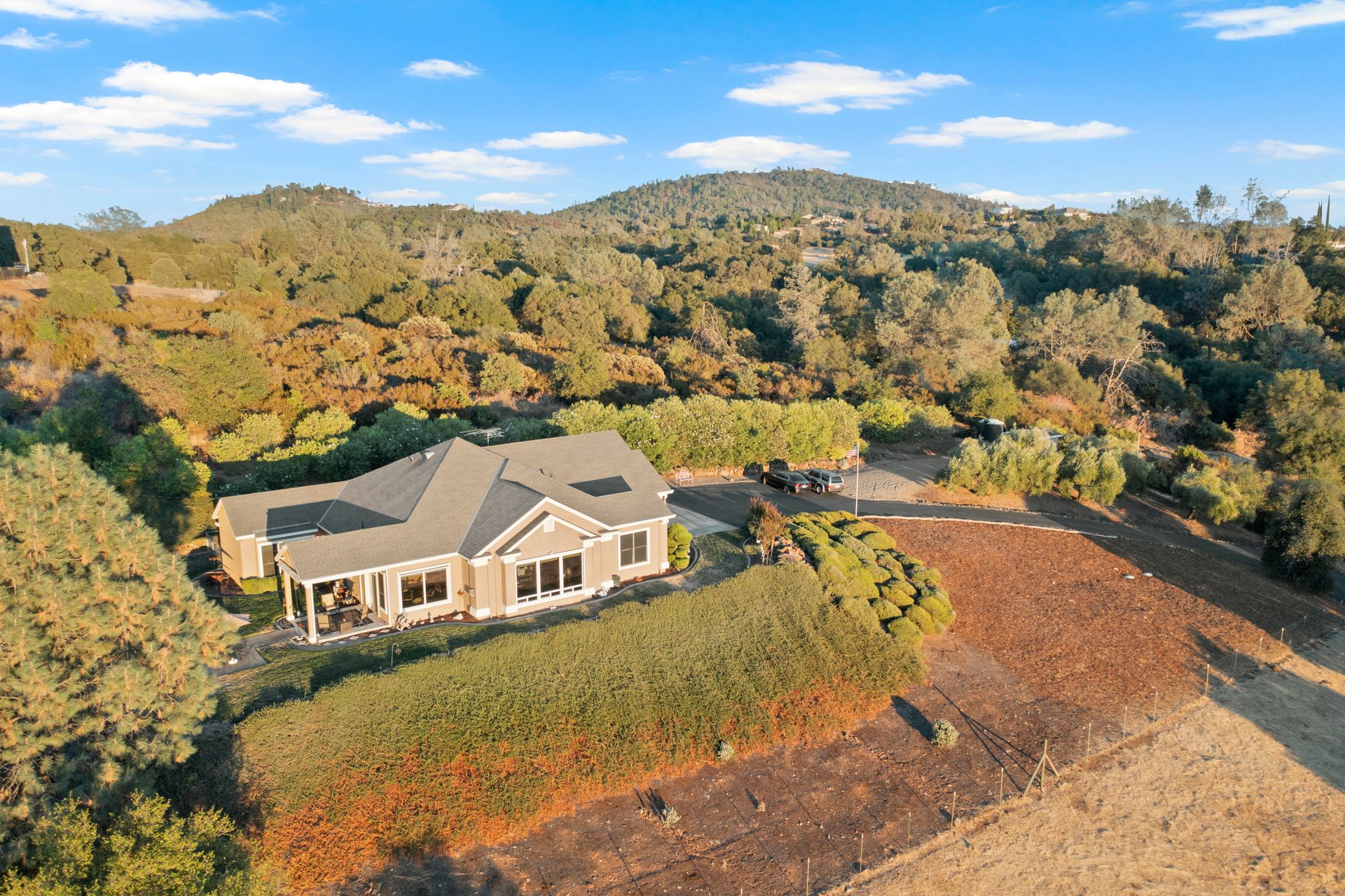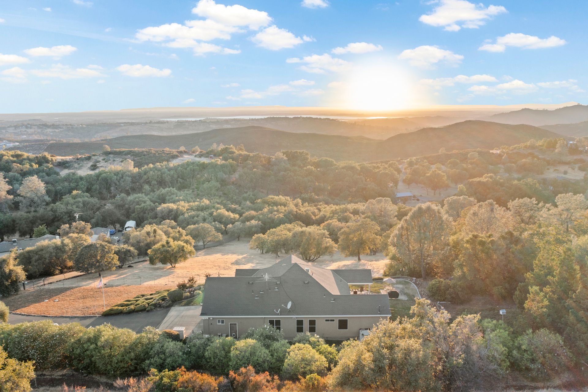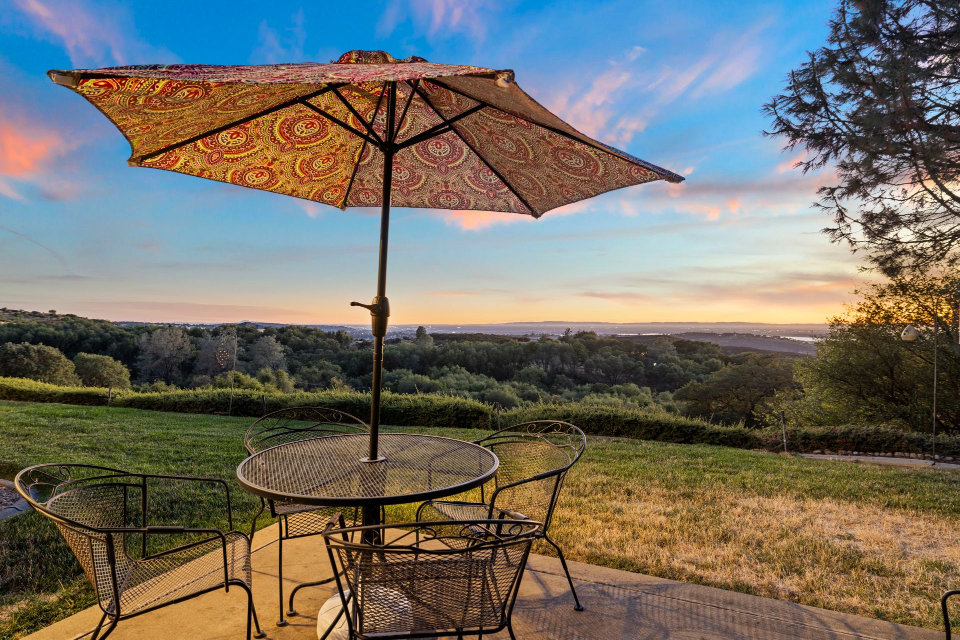 Come discover breathtaking views minutes from city life! Built in 2003 on approximately 10 acres, this home offers privacy and stunning views of Folsom Lake, Downtown Sacramento and Mount Diablo. Just about 15 minutes from El Dorado Hills shopping and on a county maintained road, this landscaped lot features picturesque oak trees and is an ideal location for building an additional home or out building. Upon entering you will love the spacious, approximately 10-foot ceilings and captivating views both night and day from the living room and dining area. The home offers dual-pane windows, remote control sunshades and a cozy gas fireplace. The kitchen boasts Alder wood cabinets, quartz countertops, a large island and ample storage. Spacious bedrooms have ceiling fans and the luxurious primary suite provides scenic views and a walk-in closet, soaking tub, dual vanities and an oversized shower. Dine outside on your covered patio with remote shades providing you the ideal amount of light in the late afternoon. Make your dreams of having a dry sauna a reality with the unfinished but plumbed room in the garage currently being used as storage. Additional features include a three-car garage, dog run, backup generator, outdoor shower and electric gated entrance, well-maintained septic system, and daily wildlife sightings. This home combines complete privacy with convenient proximity to modern amenities, ideal for nature lovers seeking a tranquil retreat.