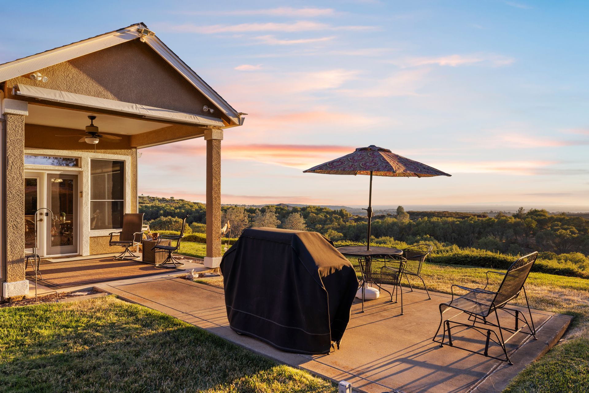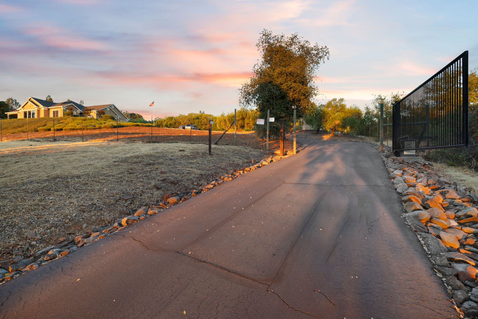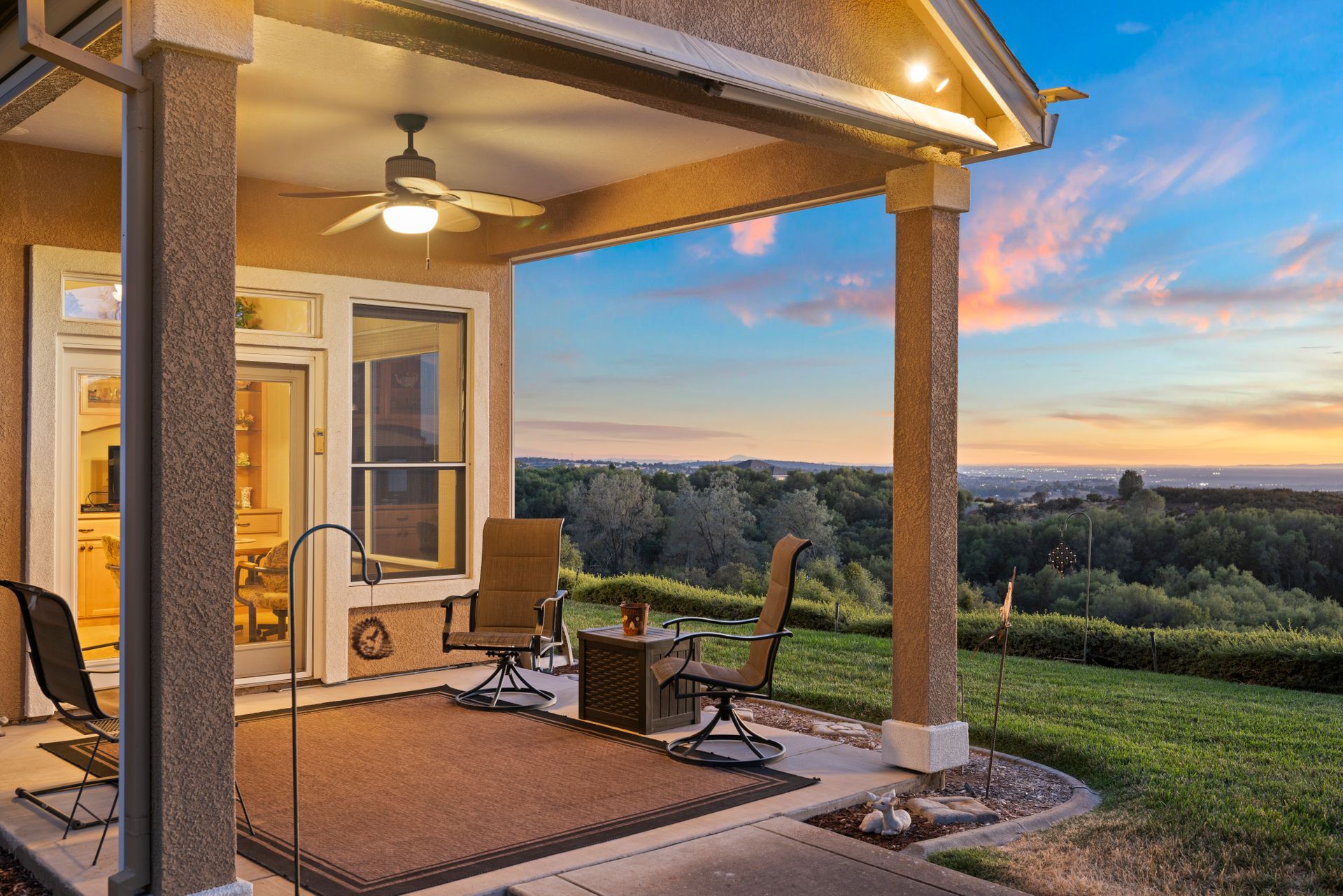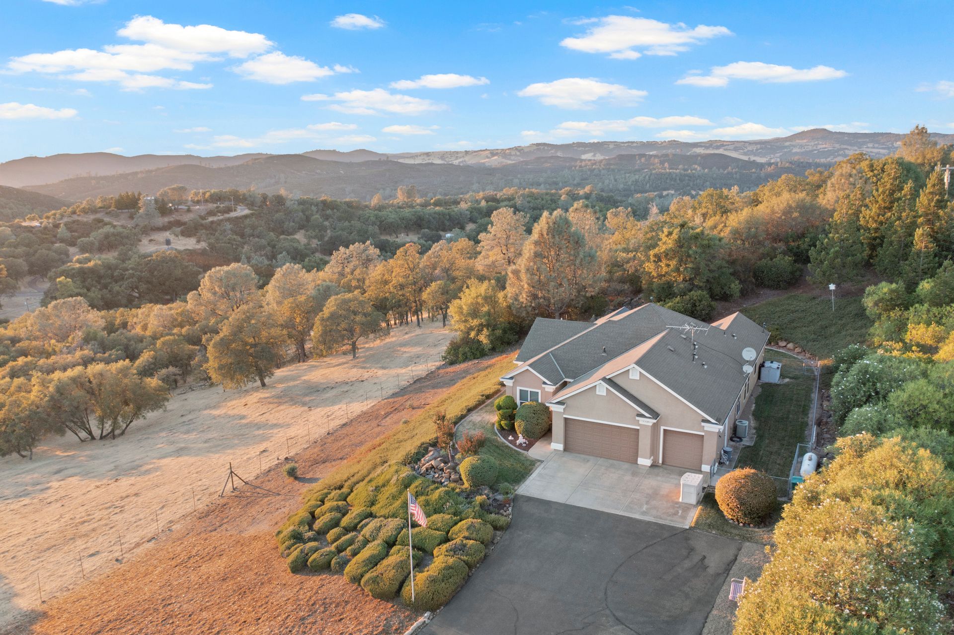 Come discover breathtaking views minutes from city life! Built in 2003 on approximately 10 acres, this home offers privacy and stunning views of Folsom Lake, Downtown Sacramento and Mount Diablo. Just about 15 minutes from El Dorado Hills shopping and on a county maintained road, this landscaped lot features picturesque oak trees and is an ideal location for building an additional home or out building. Upon entering you will love the spacious, approximately 10-foot ceilings and captivating views both night and day from the living room and dining area. The home offers dual-pane windows, remote control sunshades and a cozy gas fireplace. The kitchen boasts Alder wood cabinets, quartz countertops, a large island and ample storage. Spacious bedrooms have ceiling fans and the luxurious primary suite provides scenic views and a walk-in closet, soaking tub, dual vanities and an oversized shower. Dine outside on your covered patio with remote shades providing you the ideal amount of light in the late afternoon. Make your dreams of having a dry sauna a reality with the unfinished but plumbed room in the garage currently being used as storage. Additional features include a three-car garage, dog run, backup generator, outdoor shower and electric gated entrance, well-maintained septic system, and daily wildlife sightings. This home combines complete privacy with convenient proximity to modern amenities, ideal for nature lovers seeking a tranquil retreat.