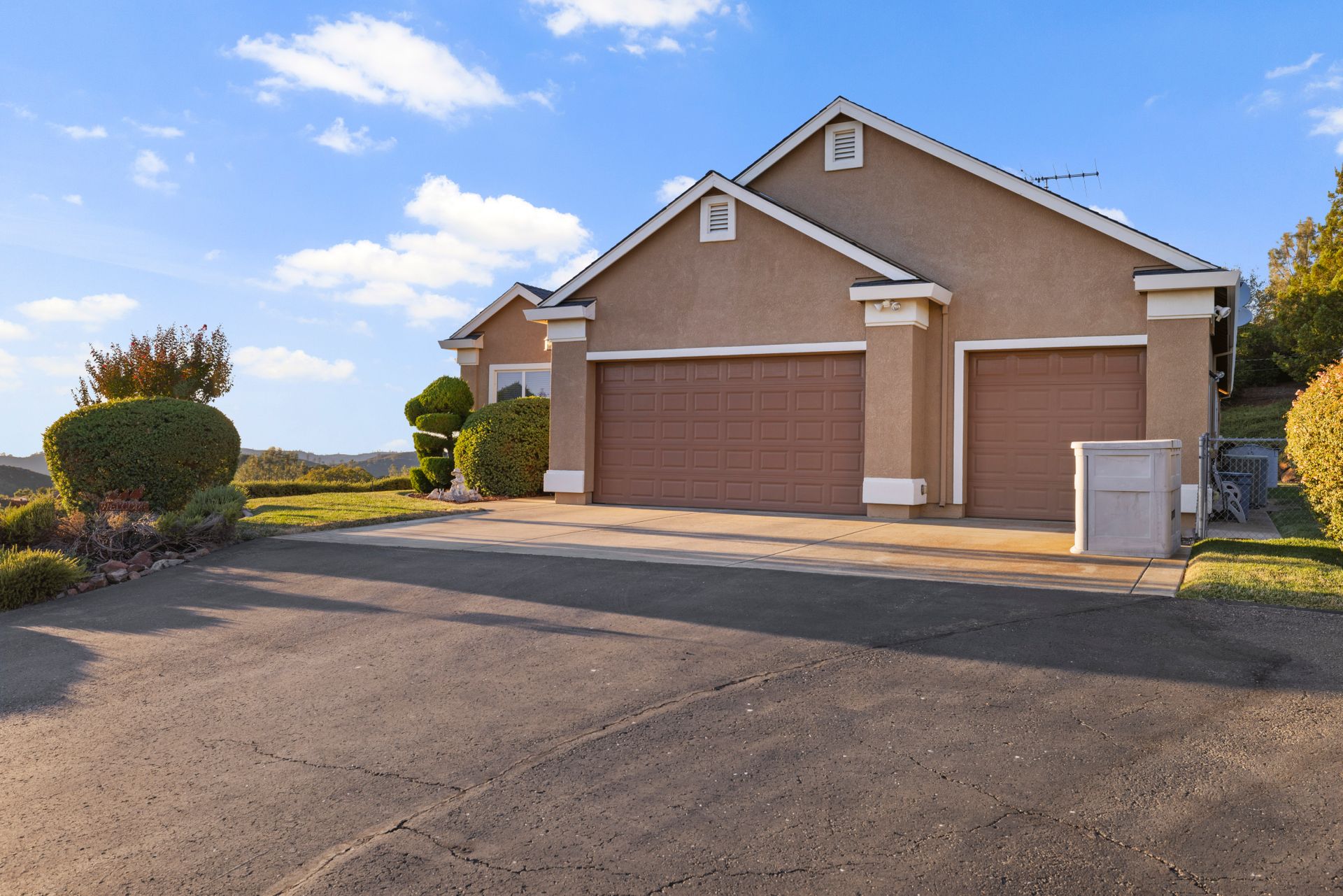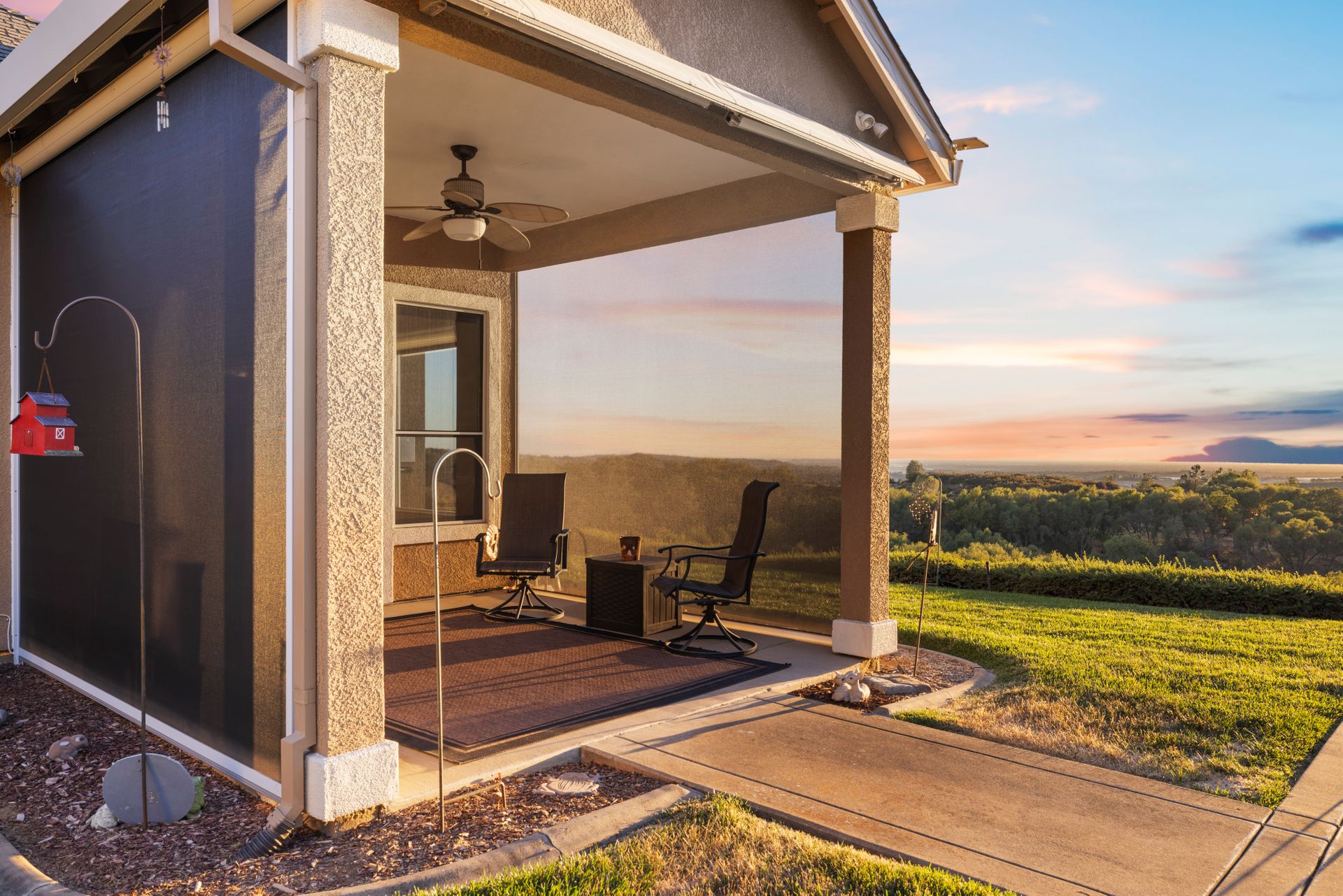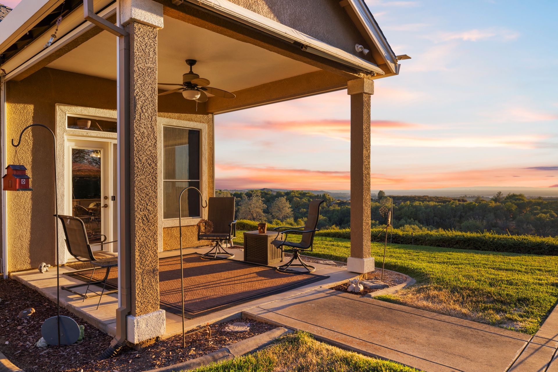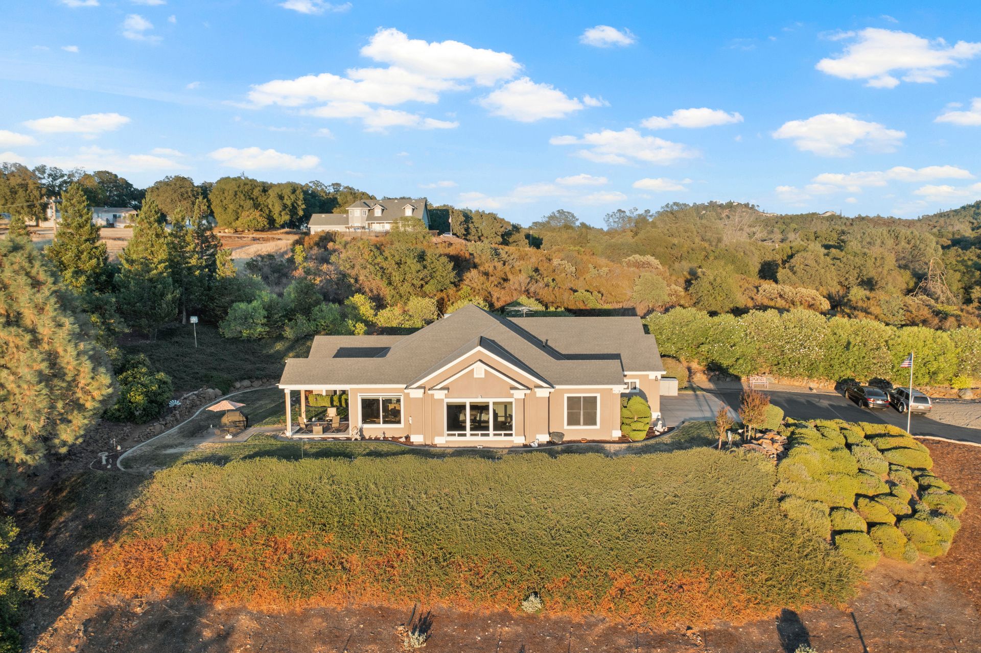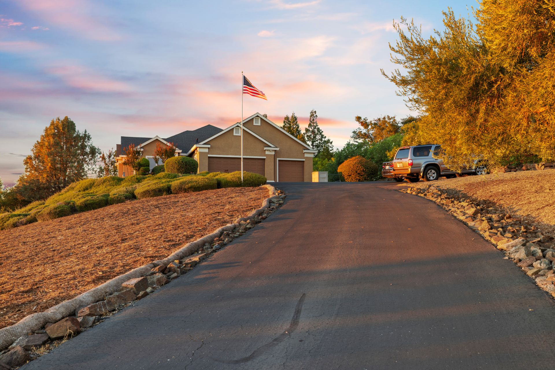 Come discover breathtaking views minutes from city life! Built in 2003 on approximately 10 acres, this home offers privacy and stunning views of Folsom Lake, Downtown Sacramento and Mount Diablo. Just about 15 minutes from El Dorado Hills shopping and on a county maintained road, this landscaped lot features picturesque oak trees and is an ideal location for building an additional home or out building. Upon entering you will love the spacious, approximately 10-foot ceilings and captivating views both night and day from the living room and dining area. The home offers dual-pane windows, remote control sunshades and a cozy gas fireplace. The kitchen boasts Alder wood cabinets, quartz countertops, a large island and ample storage. Spacious bedrooms have ceiling fans and the luxurious primary suite provides scenic views and a walk-in closet, soaking tub, dual vanities and an oversized shower. Dine outside on your covered patio with remote shades providing you the ideal amount of light in the late afternoon. Make your dreams of having a dry sauna a reality with the unfinished but plumbed room in the garage currently being used as storage. Additional features include a three-car garage, dog run, backup generator, outdoor shower and electric gated entrance, well-maintained septic system, and daily wildlife sightings. This home combines complete privacy with convenient proximity to modern amenities, ideal for nature lovers seeking a tranquil retreat.