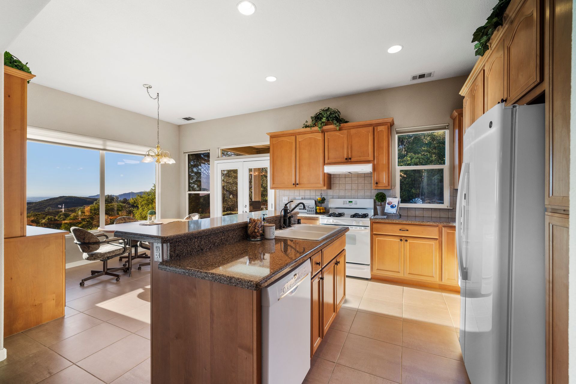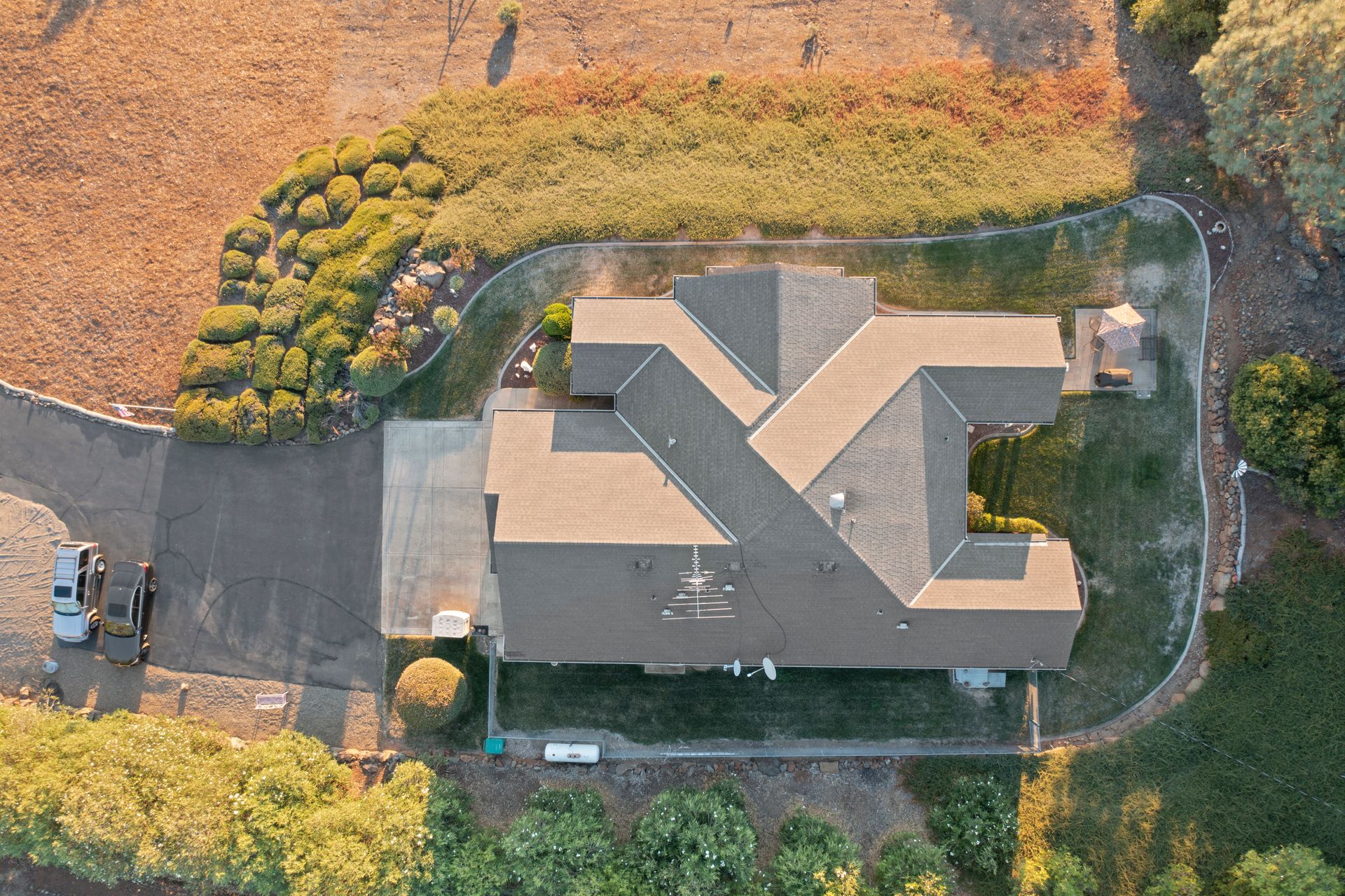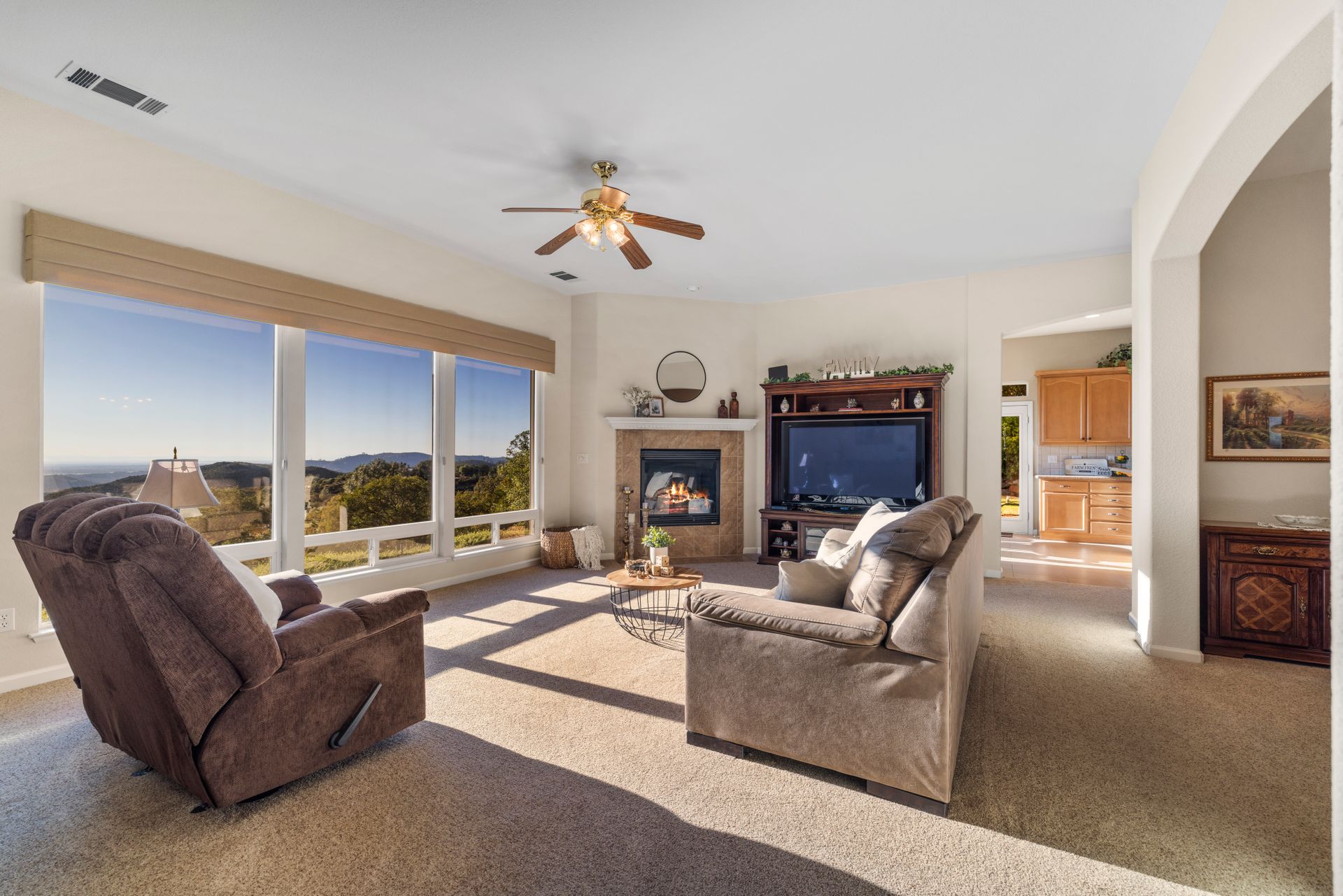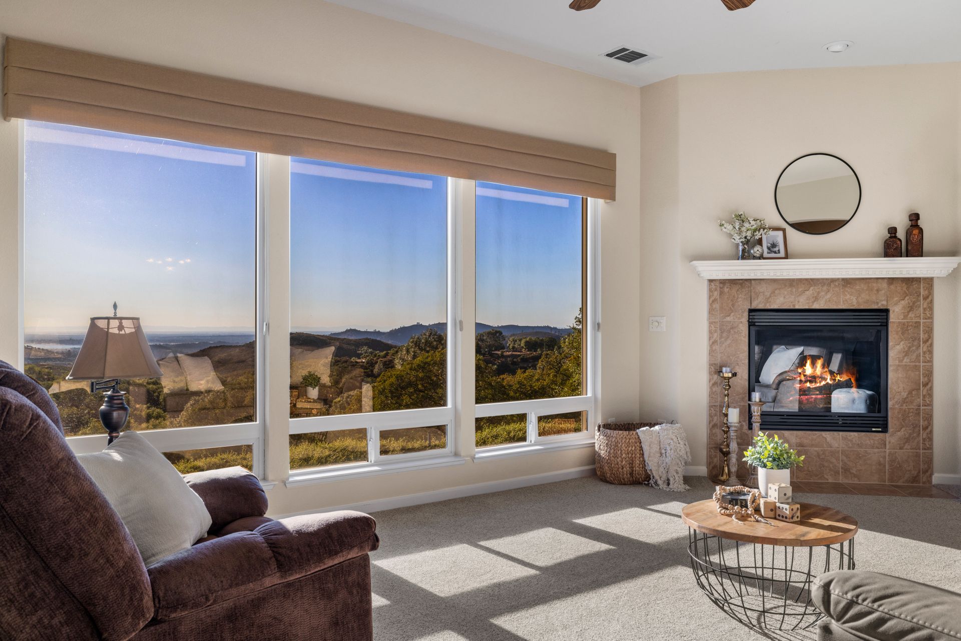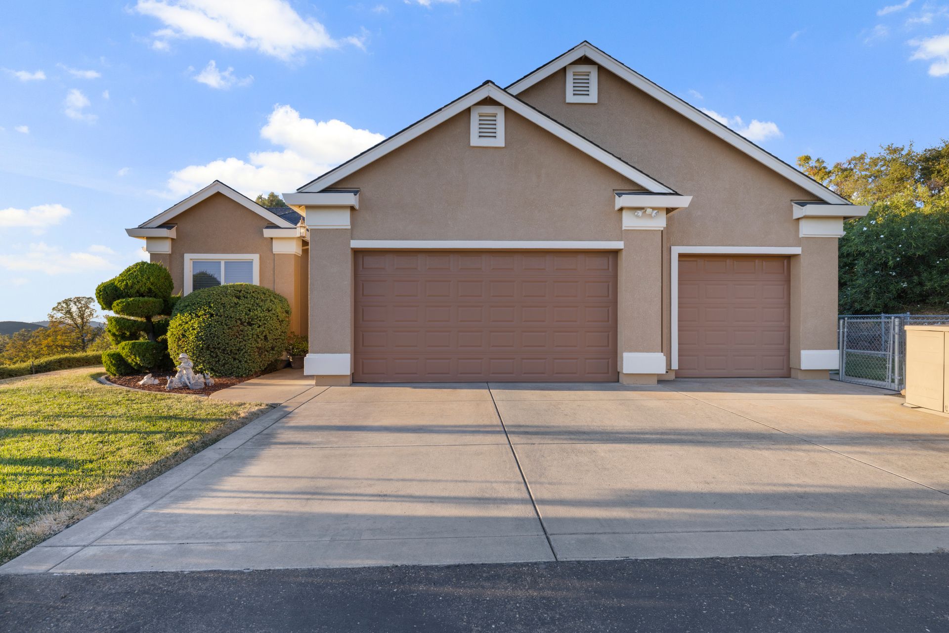 Come discover breathtaking views minutes from city life! Built in 2003 on approximately 10 acres, this home offers privacy and stunning views of Folsom Lake, Downtown Sacramento and Mount Diablo. Just about 15 minutes from El Dorado Hills shopping and on a county maintained road, this landscaped lot features picturesque oak trees and is an ideal location for building an additional home or out building. Upon entering you will love the spacious, approximately 10-foot ceilings and captivating views both night and day from the living room and dining area. The home offers dual-pane windows, remote control sunshades and a cozy gas fireplace. The kitchen boasts Alder wood cabinets, quartz countertops, a large island and ample storage. Spacious bedrooms have ceiling fans and the luxurious primary suite provides scenic views and a walk-in closet, soaking tub, dual vanities and an oversized shower. Dine outside on your covered patio with remote shades providing you the ideal amount of light in the late afternoon. Make your dreams of having a dry sauna a reality with the unfinished but plumbed room in the garage currently being used as storage. Additional features include a three-car garage, dog run, backup generator, outdoor shower and electric gated entrance, well-maintained septic system, and daily wildlife sightings. This home combines complete privacy with convenient proximity to modern amenities, ideal for nature lovers seeking a tranquil retreat.