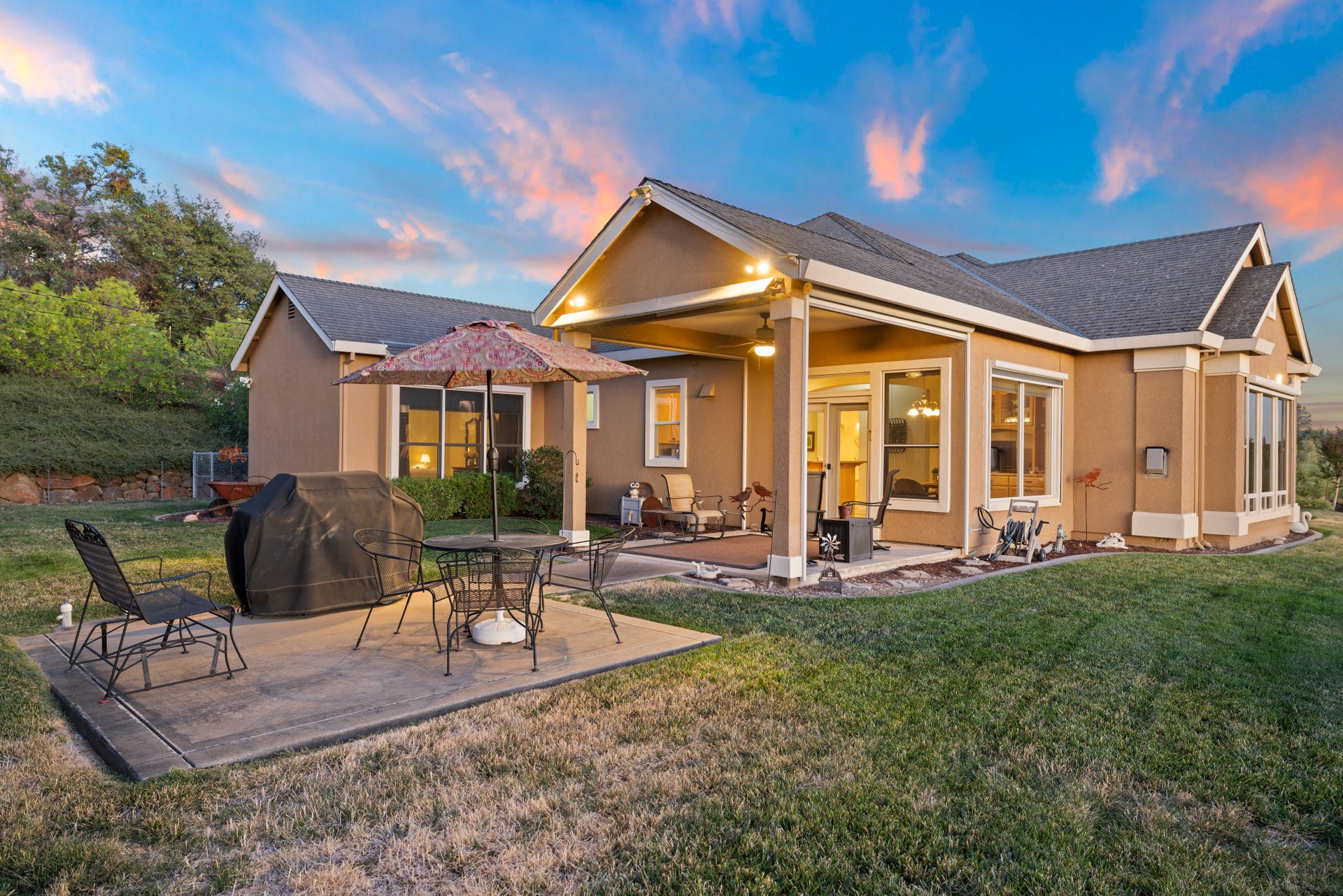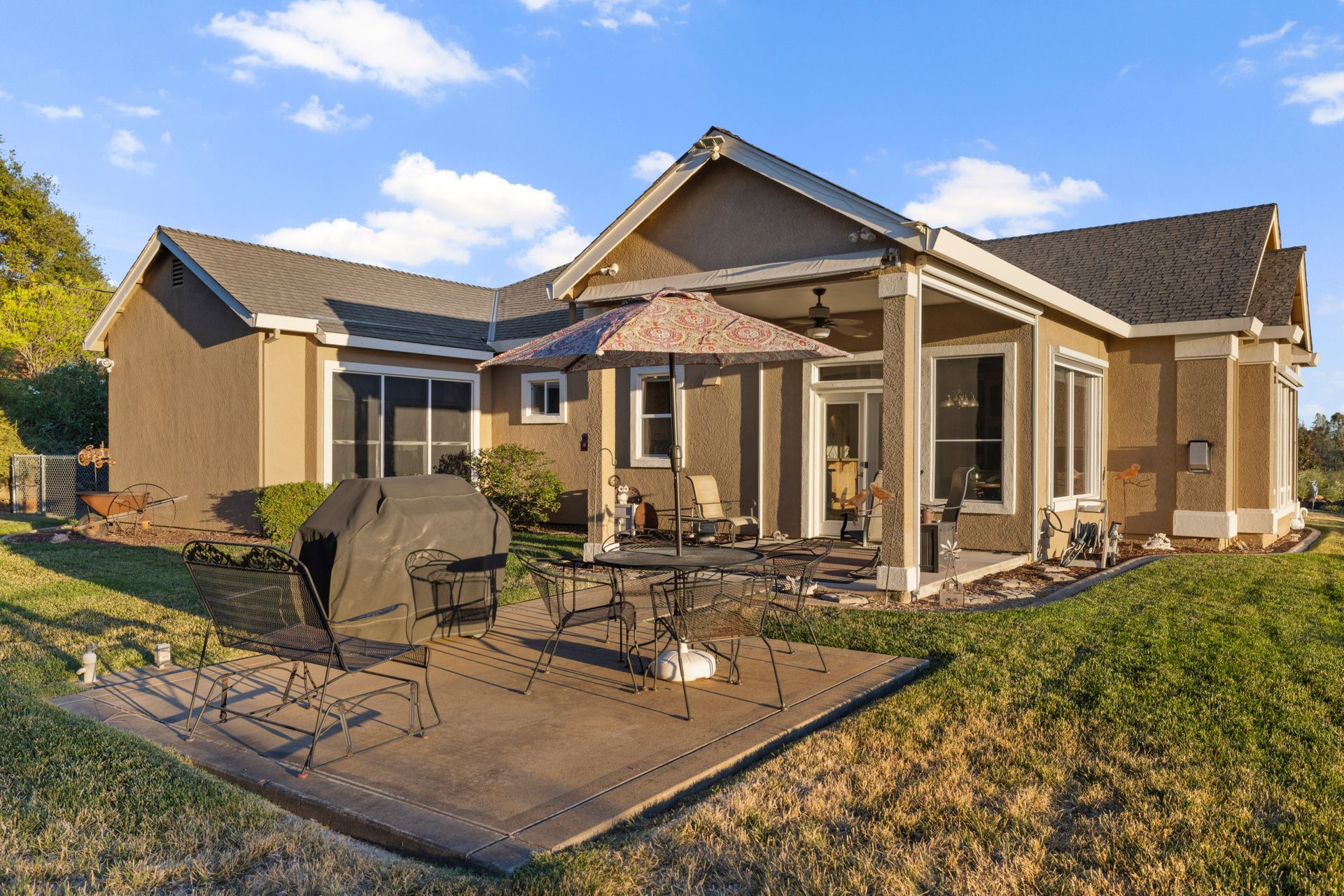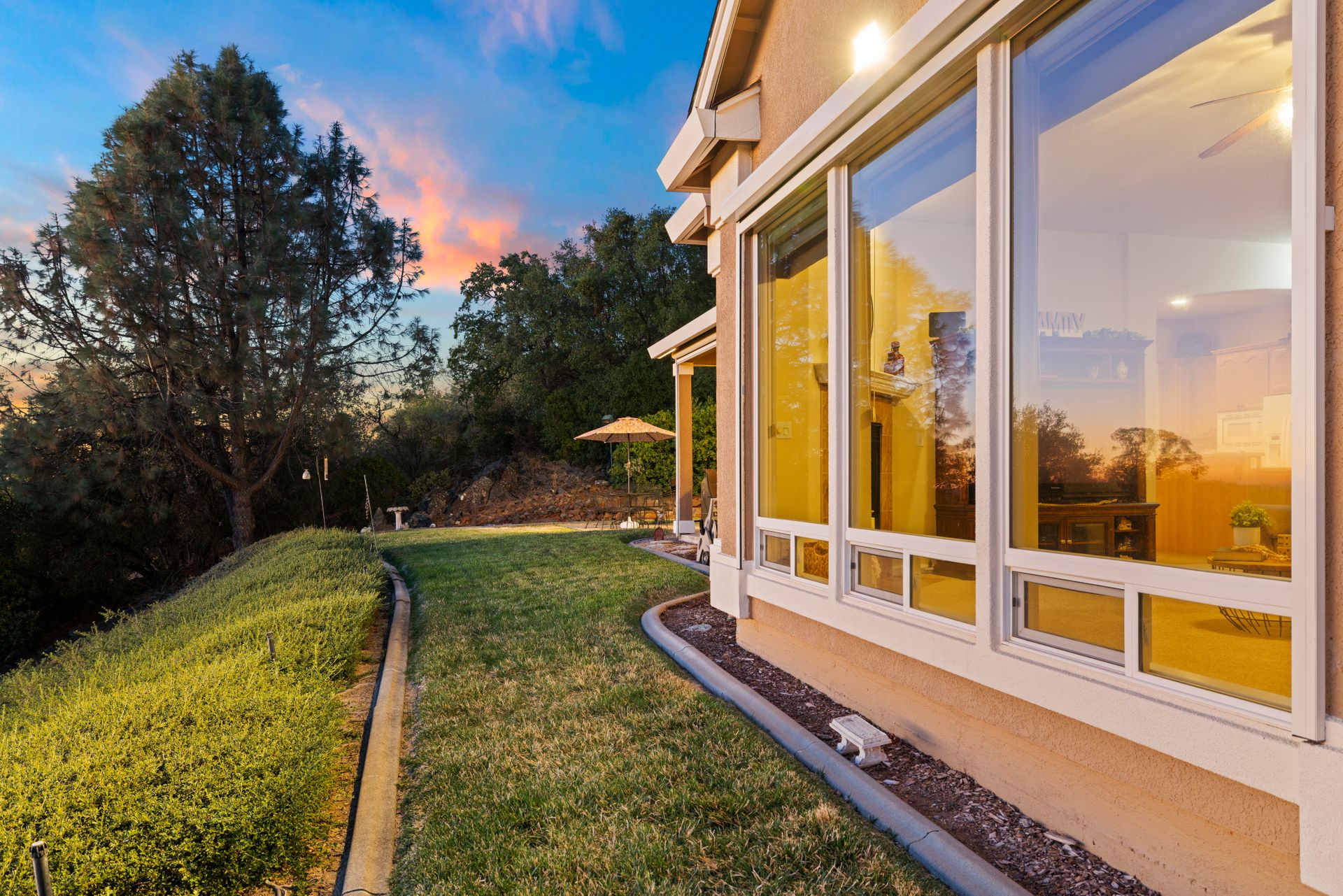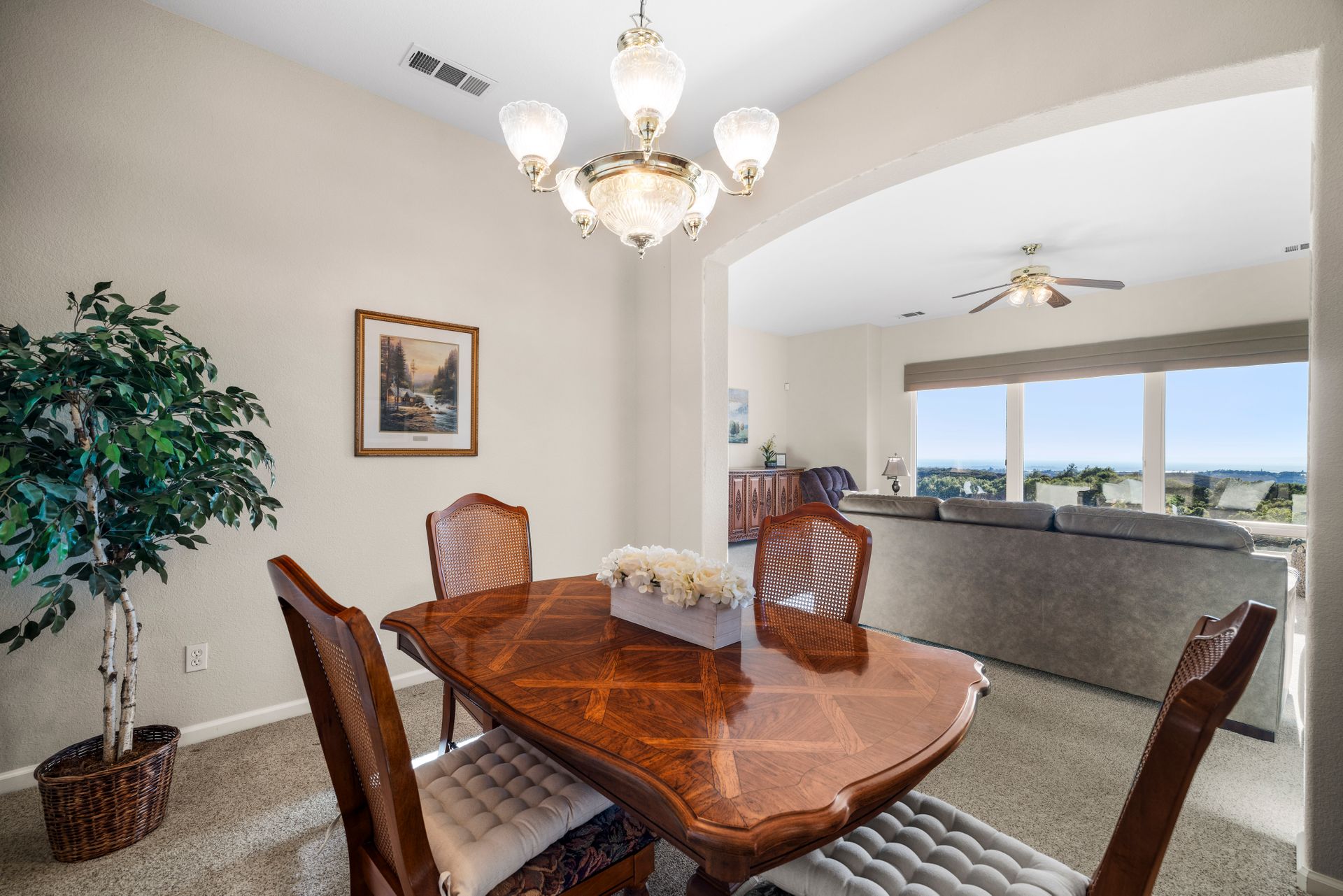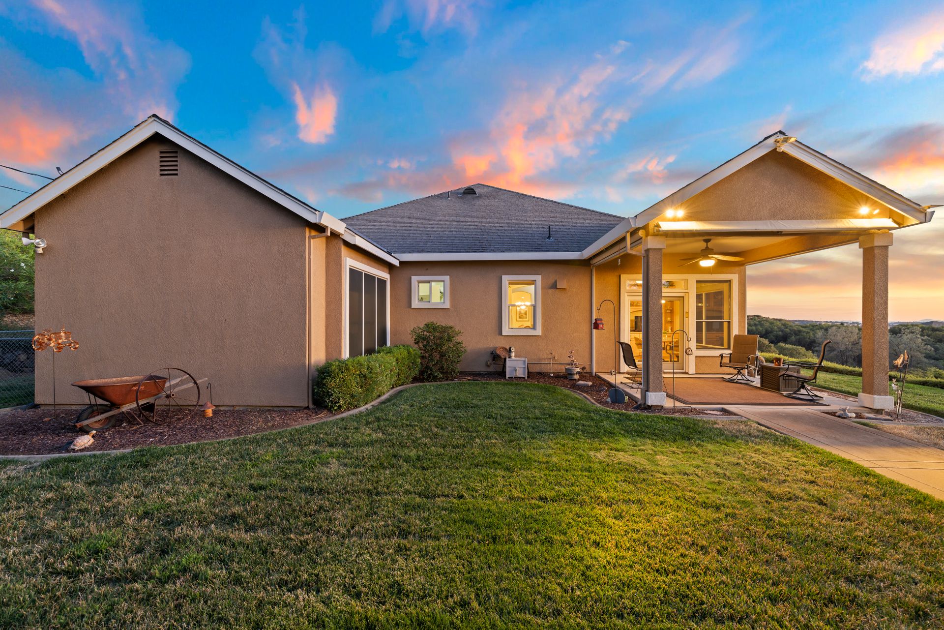 Come discover breathtaking views minutes from city life! Built in 2003 on approximately 10 acres, this home offers privacy and stunning views of Folsom Lake, Downtown Sacramento and Mount Diablo. Just about 15 minutes from El Dorado Hills shopping and on a county maintained road, this landscaped lot features picturesque oak trees and is an ideal location for building an additional home or out building. Upon entering you will love the spacious, approximately 10-foot ceilings and captivating views both night and day from the living room and dining area. The home offers dual-pane windows, remote control sunshades and a cozy gas fireplace. The kitchen boasts Alder wood cabinets, quartz countertops, a large island and ample storage. Spacious bedrooms have ceiling fans and the luxurious primary suite provides scenic views and a walk-in closet, soaking tub, dual vanities and an oversized shower. Dine outside on your covered patio with remote shades providing you the ideal amount of light in the late afternoon. Make your dreams of having a dry sauna a reality with the unfinished but plumbed room in the garage currently being used as storage. Additional features include a three-car garage, dog run, backup generator, outdoor shower and electric gated entrance, well-maintained septic system, and daily wildlife sightings. This home combines complete privacy with convenient proximity to modern amenities, ideal for nature lovers seeking a tranquil retreat.