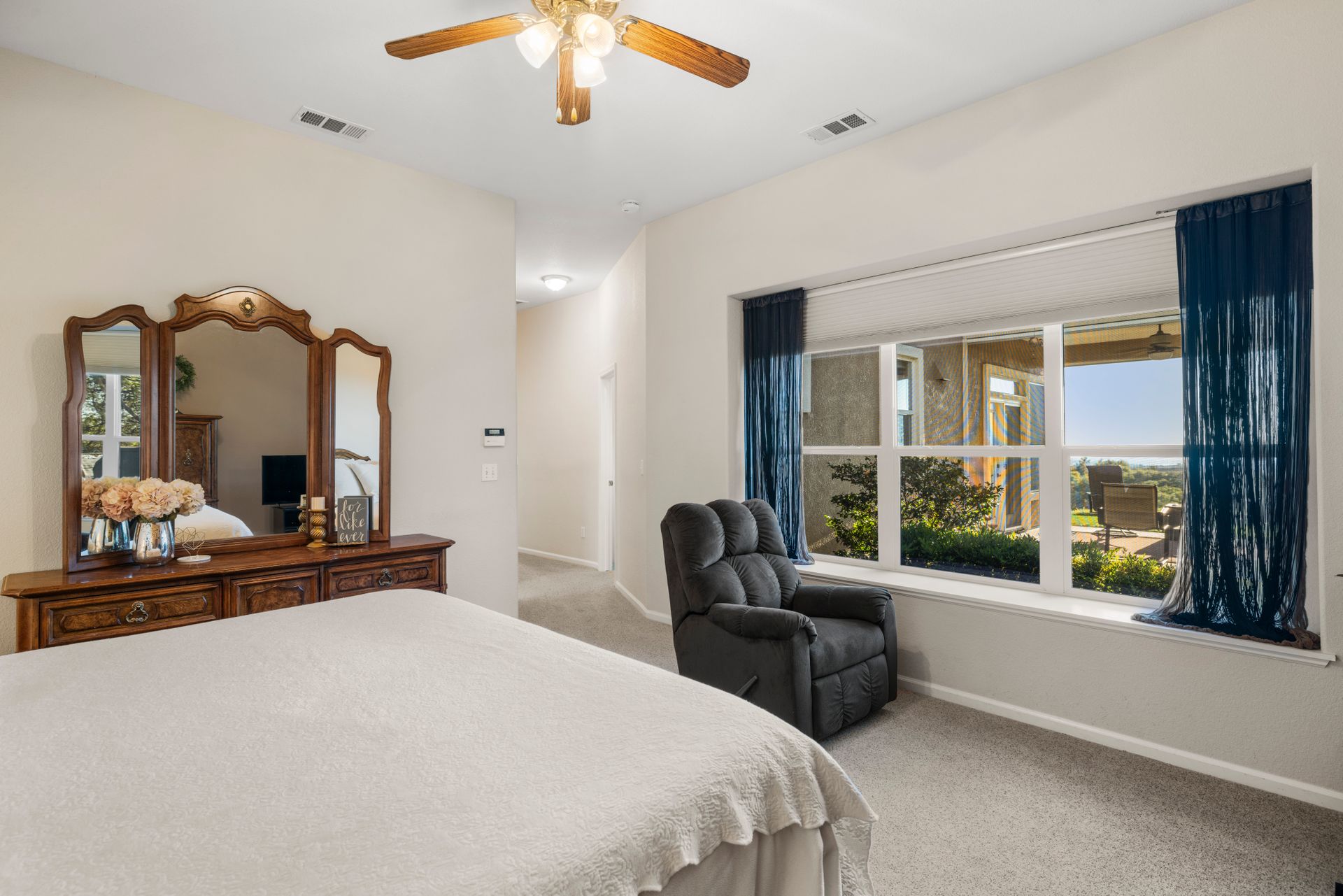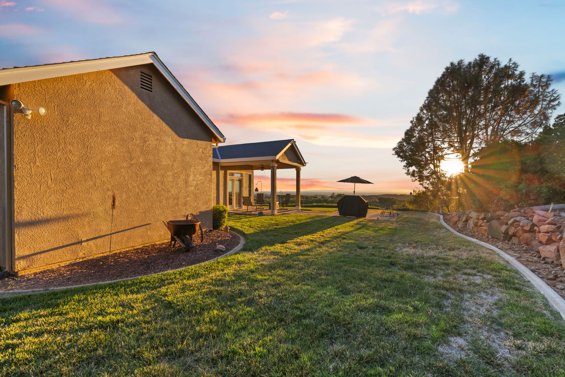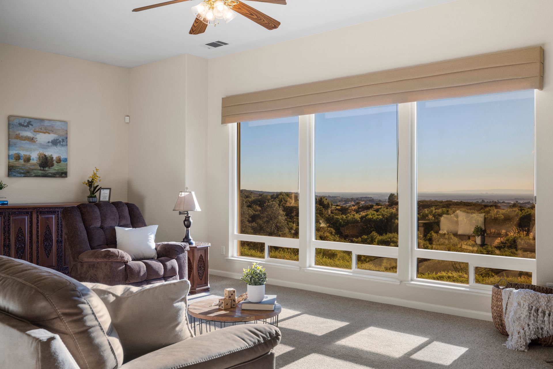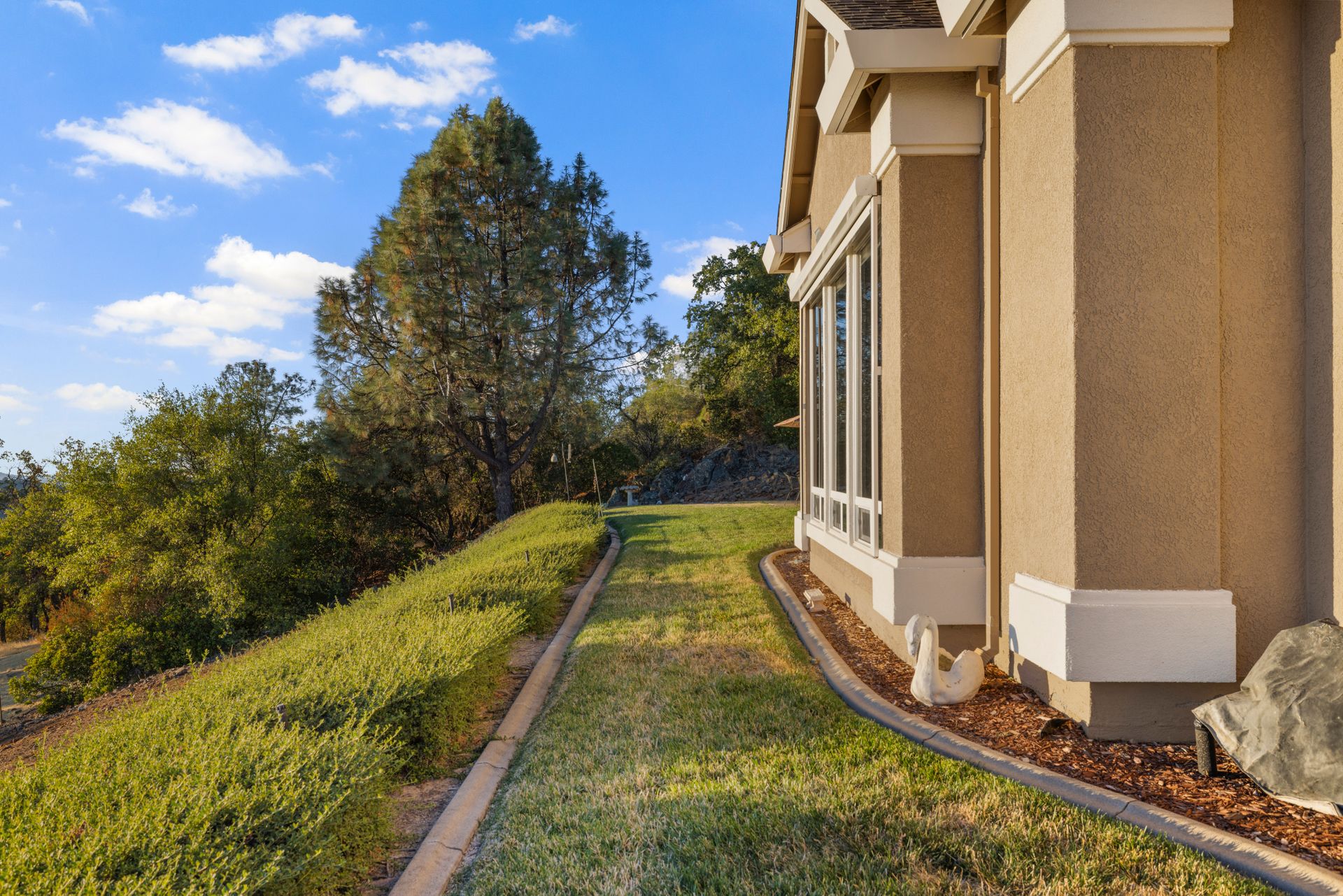 Come discover breathtaking views minutes from city life! Built in 2003 on approximately 10 acres, this home offers privacy and stunning views of Folsom Lake, Downtown Sacramento and Mount Diablo. Just about 15 minutes from El Dorado Hills shopping and on a county maintained road, this landscaped lot features picturesque oak trees and is an ideal location for building an additional home or out building. Upon entering you will love the spacious, approximately 10-foot ceilings and captivating views both night and day from the living room and dining area. The home offers dual-pane windows, remote control sunshades and a cozy gas fireplace. The kitchen boasts Alder wood cabinets, quartz countertops, a large island and ample storage. Spacious bedrooms have ceiling fans and the luxurious primary suite provides scenic views and a walk-in closet, soaking tub, dual vanities and an oversized shower. Dine outside on your covered patio with remote shades providing you the ideal amount of light in the late afternoon. Make your dreams of having a dry sauna a reality with the unfinished but plumbed room in the garage currently being used as storage. Additional features include a three-car garage, dog run, backup generator, outdoor shower and electric gated entrance, well-maintained septic system, and daily wildlife sightings. This home combines complete privacy with convenient proximity to modern amenities, ideal for nature lovers seeking a tranquil retreat.