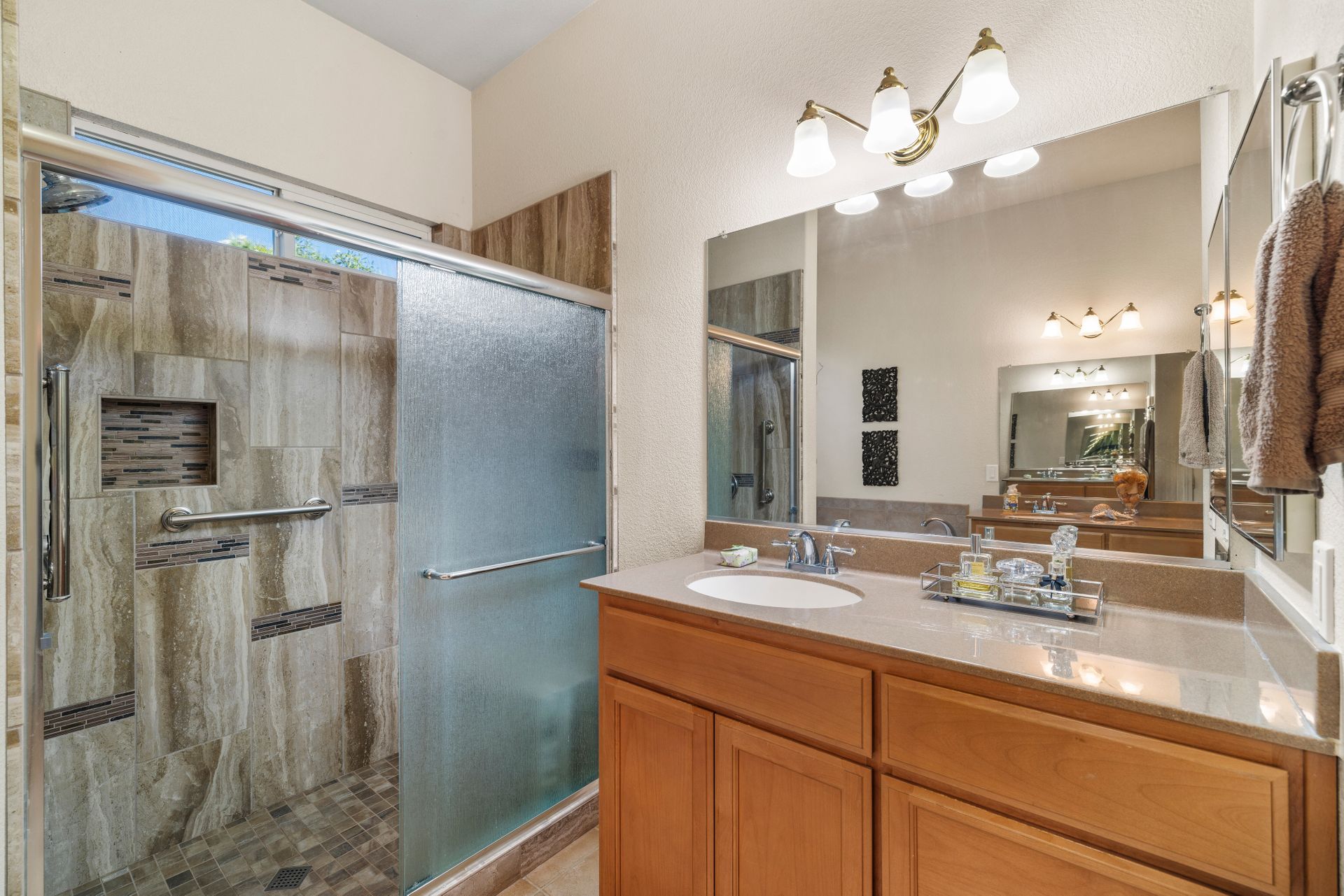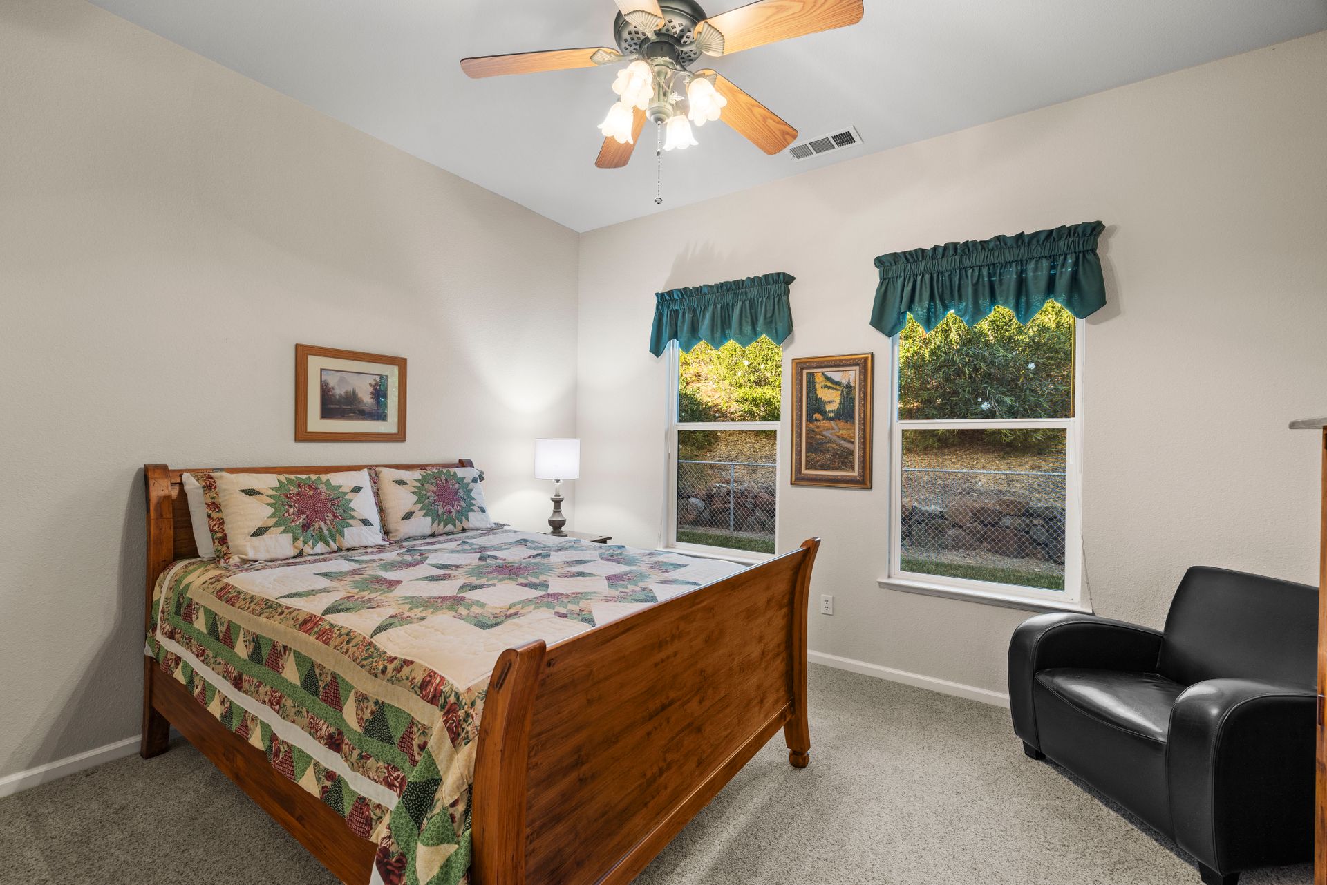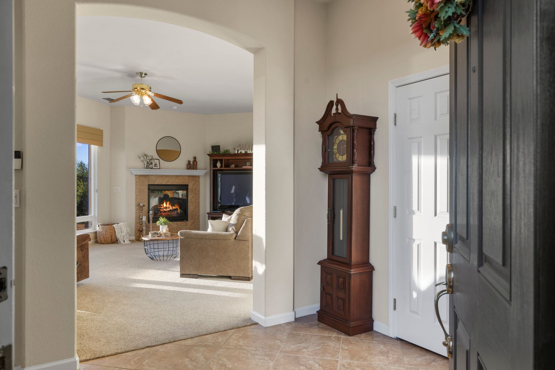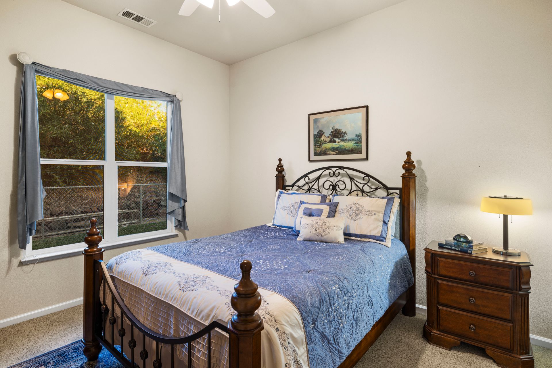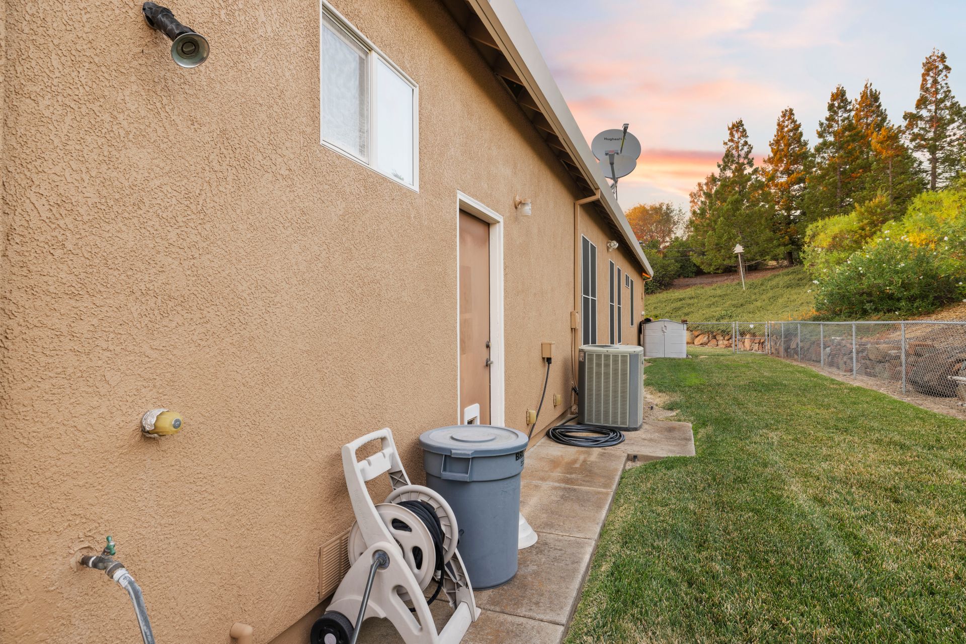 Come discover breathtaking views minutes from city life! Built in 2003 on approximately 10 acres, this home offers privacy and stunning views of Folsom Lake, Downtown Sacramento and Mount Diablo. Just about 15 minutes from El Dorado Hills shopping and on a county maintained road, this landscaped lot features picturesque oak trees and is an ideal location for building an additional home or out building. Upon entering you will love the spacious, approximately 10-foot ceilings and captivating views both night and day from the living room and dining area. The home offers dual-pane windows, remote control sunshades and a cozy gas fireplace. The kitchen boasts Alder wood cabinets, quartz countertops, a large island and ample storage. Spacious bedrooms have ceiling fans and the luxurious primary suite provides scenic views and a walk-in closet, soaking tub, dual vanities and an oversized shower. Dine outside on your covered patio with remote shades providing you the ideal amount of light in the late afternoon. Make your dreams of having a dry sauna a reality with the unfinished but plumbed room in the garage currently being used as storage. Additional features include a three-car garage, dog run, backup generator, outdoor shower and electric gated entrance, well-maintained septic system, and daily wildlife sightings. This home combines complete privacy with convenient proximity to modern amenities, ideal for nature lovers seeking a tranquil retreat.