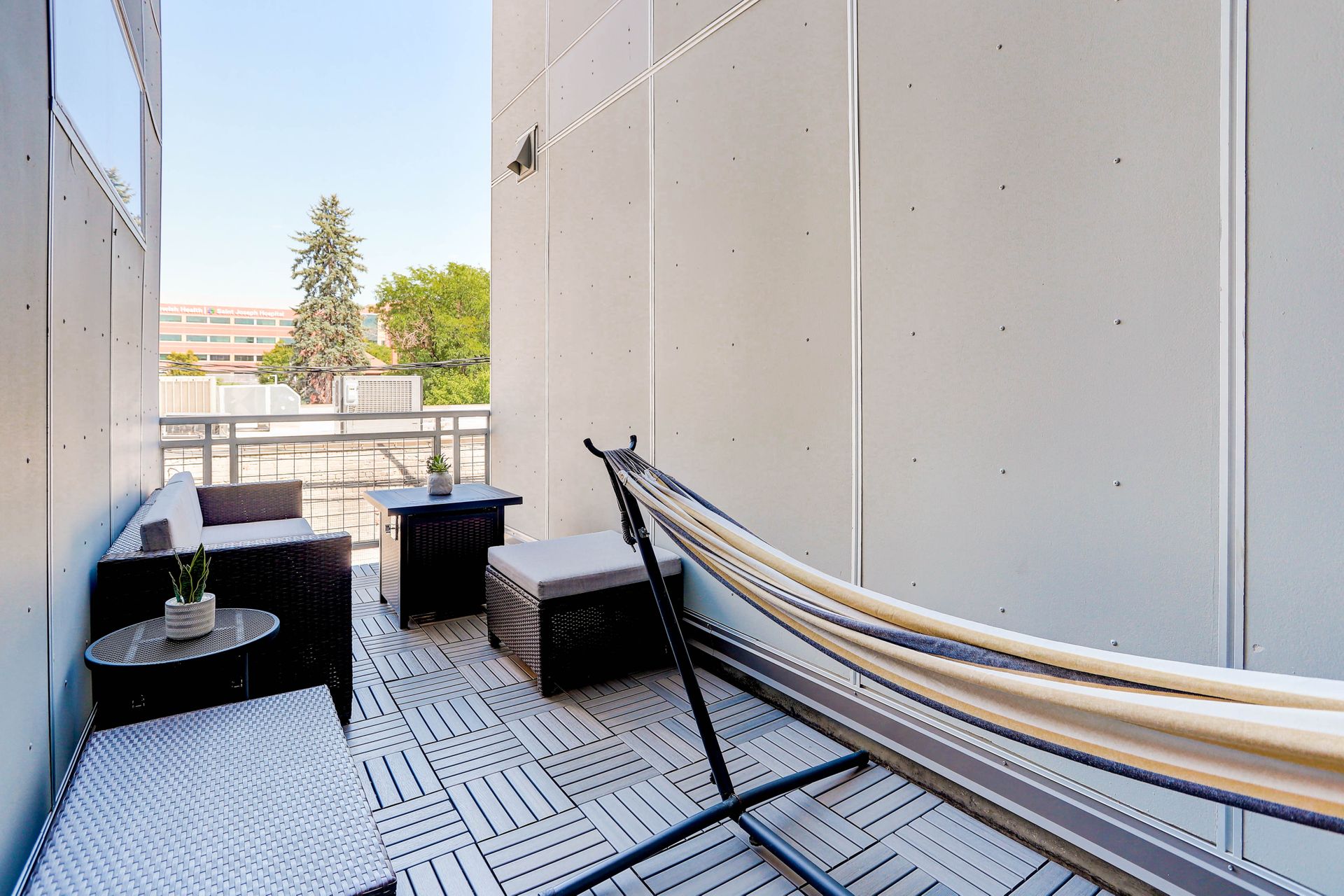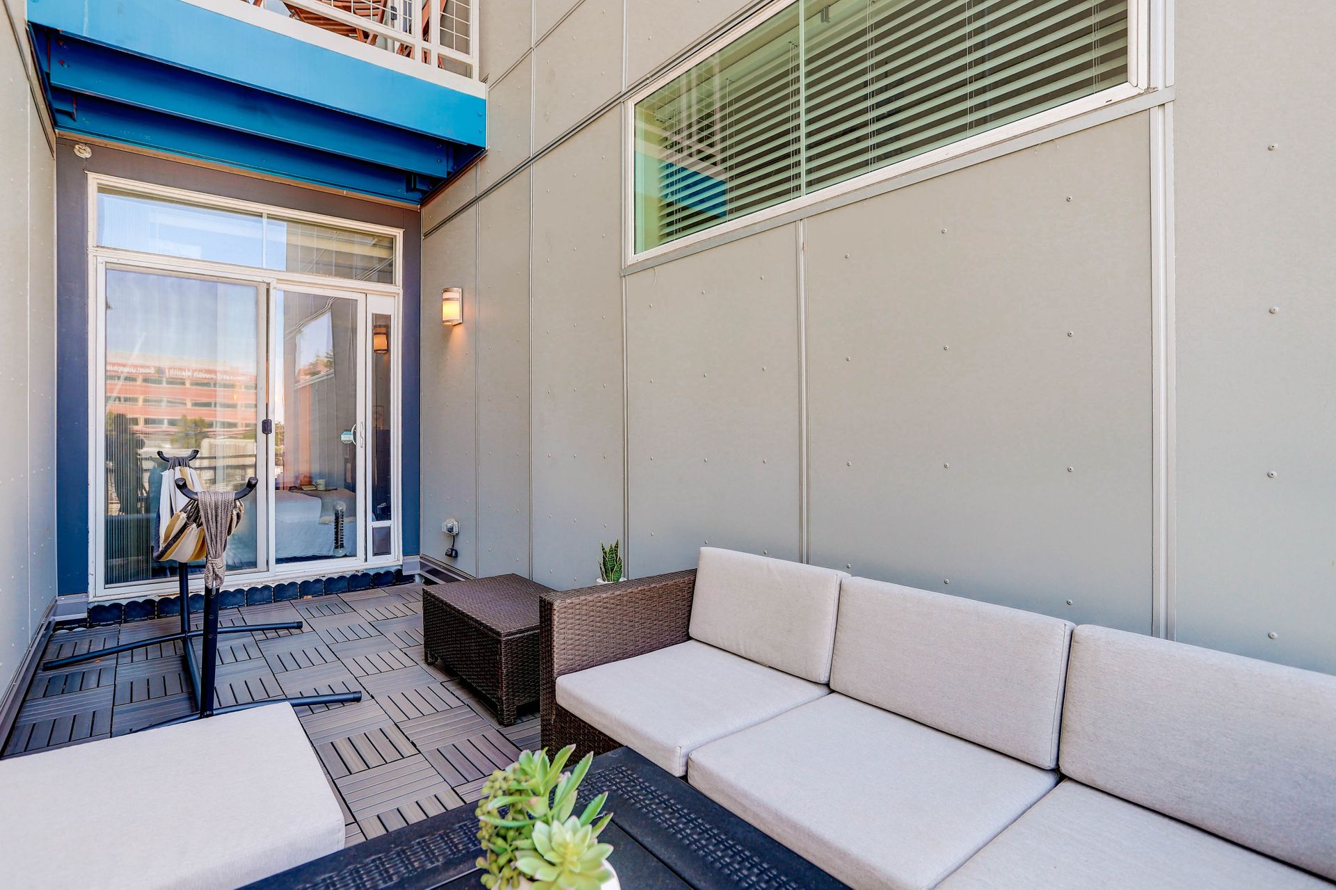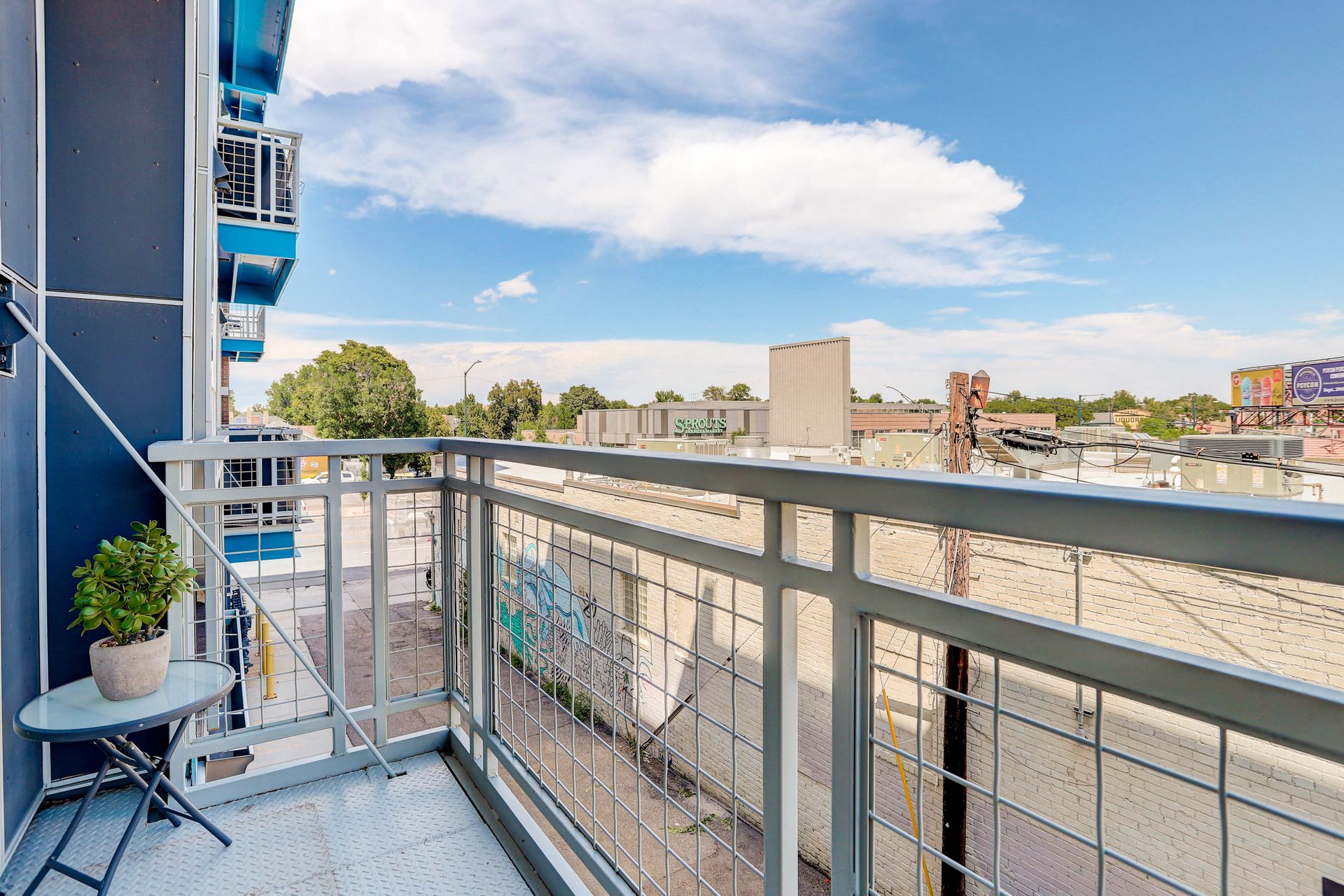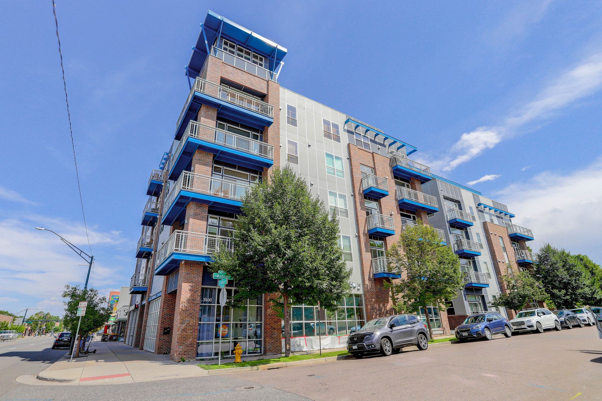 Convenient urban living in desirable Congress Park! This beautiful, modern condo complex is home to Unit 208, boasting three bedrooms and two baths. Enter into light and bright, high ceilings and natural flow. The cherry cabinet and granite counter kitchen flows seamlessly to the dining room and living room, spilling onto the east facing balcony. Outside the patio is equipped with gas access for your grilling pleasure! The guest room comes with a Murphy bed which maximizes functionality and has a three-fourths bath attached. Your spacious primary suite has its own private balcony oasis, one of only three units in the building with this luxury. Dual closets and a five-piece en-suite round out the primary. In-unit laundry with washer and dryer included. The Blueprint has secured underground heated parking with one reserved space as well as a locked storage unit. A spacious community sundeck on the fourth floor is where you can host parties or mingle with neighbors. This prime location grants you walkability to pretty much anything your heart desires!