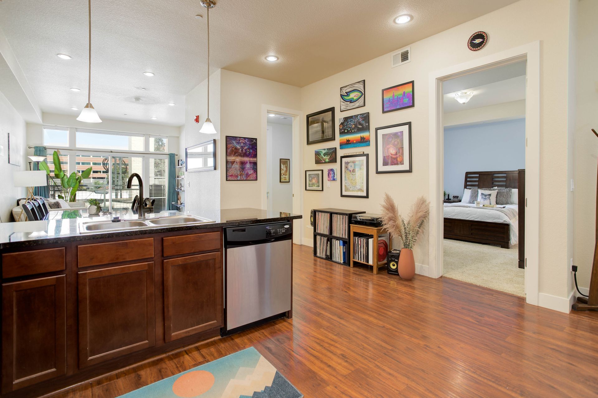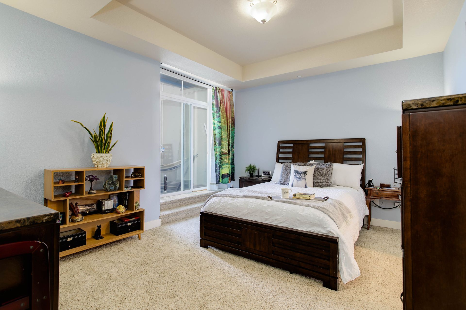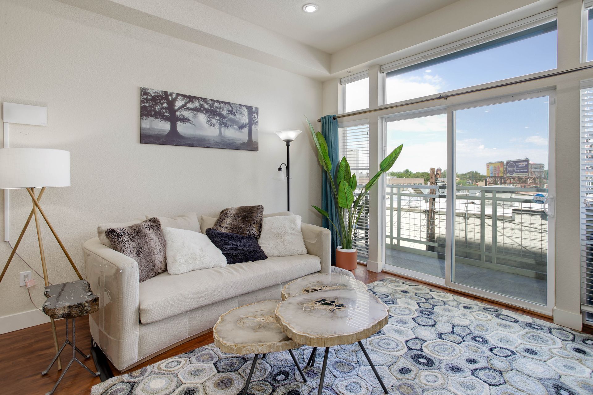 Convenient urban living in desirable Congress Park! This beautiful, modern condo complex is home to Unit 208, boasting three bedrooms and two baths. Enter into light and bright, high ceilings and natural flow. The cherry cabinet and granite counter kitchen flows seamlessly to the dining room and living room, spilling onto the east facing balcony. Outside the patio is equipped with gas access for your grilling pleasure! The guest room comes with a Murphy bed which maximizes functionality and has a three-fourths bath attached. Your spacious primary suite has its own private balcony oasis, one of only three units in the building with this luxury. Dual closets and a five-piece en-suite round out the primary. In-unit laundry with washer and dryer included. The Blueprint has secured underground heated parking with one reserved space as well as a locked storage unit. A spacious community sundeck on the fourth floor is where you can host parties or mingle with neighbors. This prime location grants you walkability to pretty much anything your heart desires!