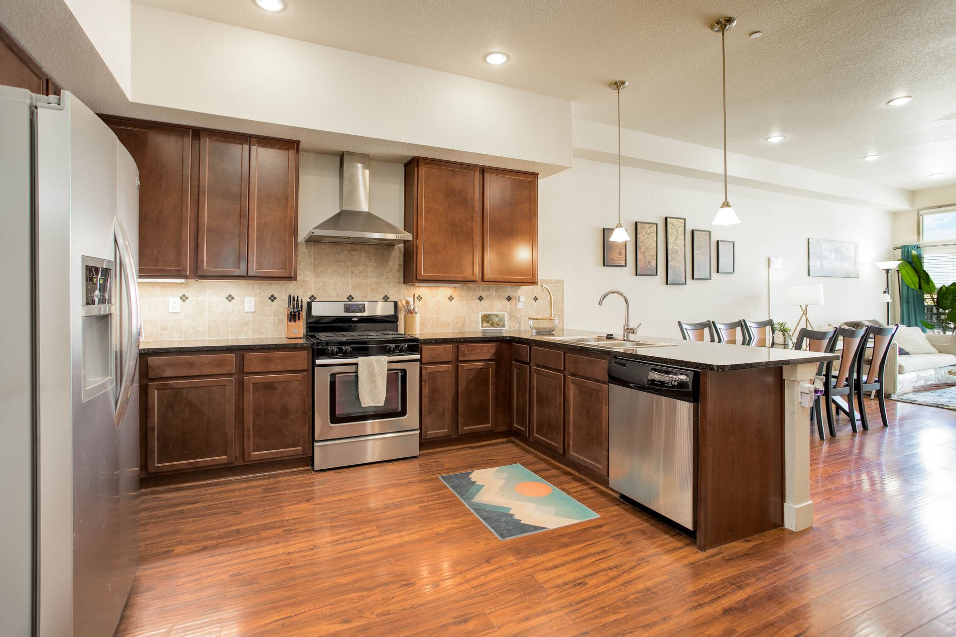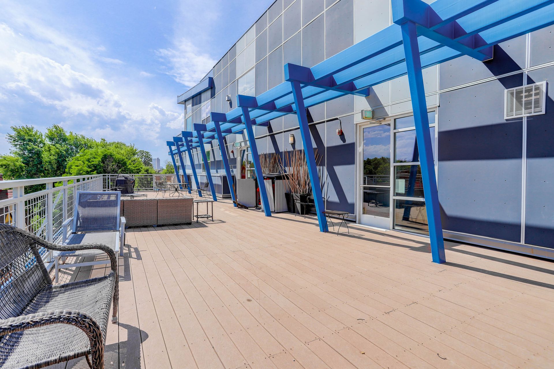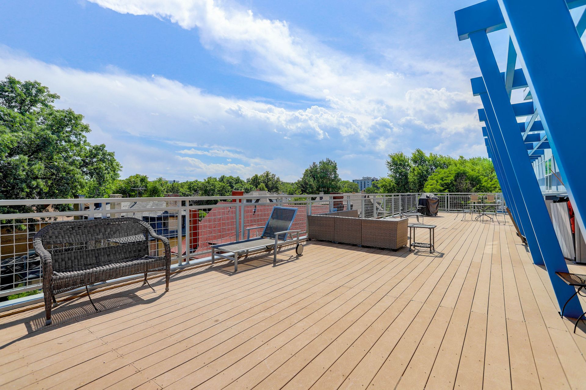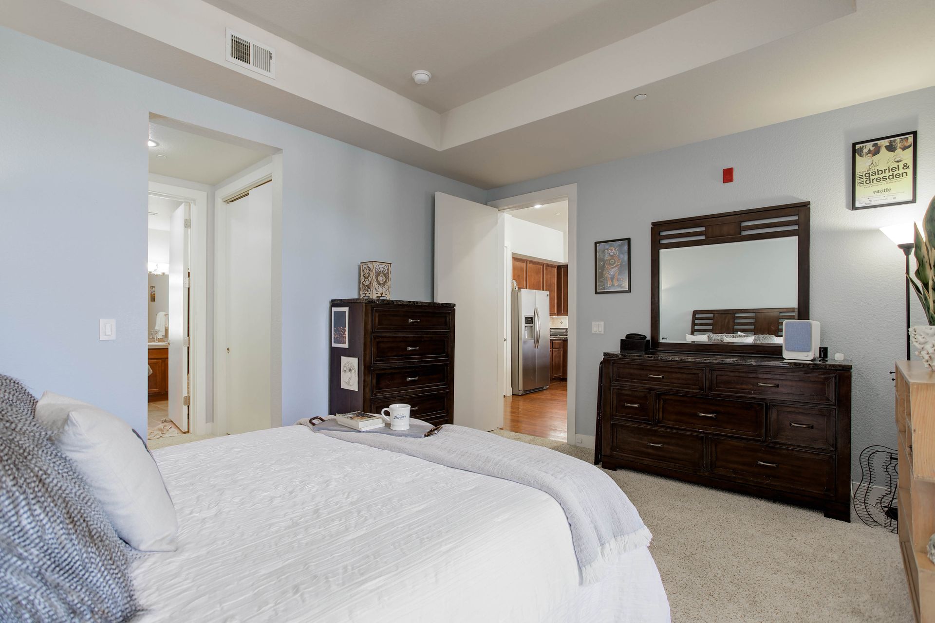 Convenient urban living in desirable Congress Park! This beautiful, modern condo complex is home to Unit 208, boasting three bedrooms and two baths. Enter into light and bright, high ceilings and natural flow. The cherry cabinet and granite counter kitchen flows seamlessly to the dining room and living room, spilling onto the east facing balcony. Outside the patio is equipped with gas access for your grilling pleasure! The guest room comes with a Murphy bed which maximizes functionality and has a three-fourths bath attached. Your spacious primary suite has its own private balcony oasis, one of only three units in the building with this luxury. Dual closets and a five-piece en-suite round out the primary. In-unit laundry with washer and dryer included. The Blueprint has secured underground heated parking with one reserved space as well as a locked storage unit. A spacious community sundeck on the fourth floor is where you can host parties or mingle with neighbors. This prime location grants you walkability to pretty much anything your heart desires!