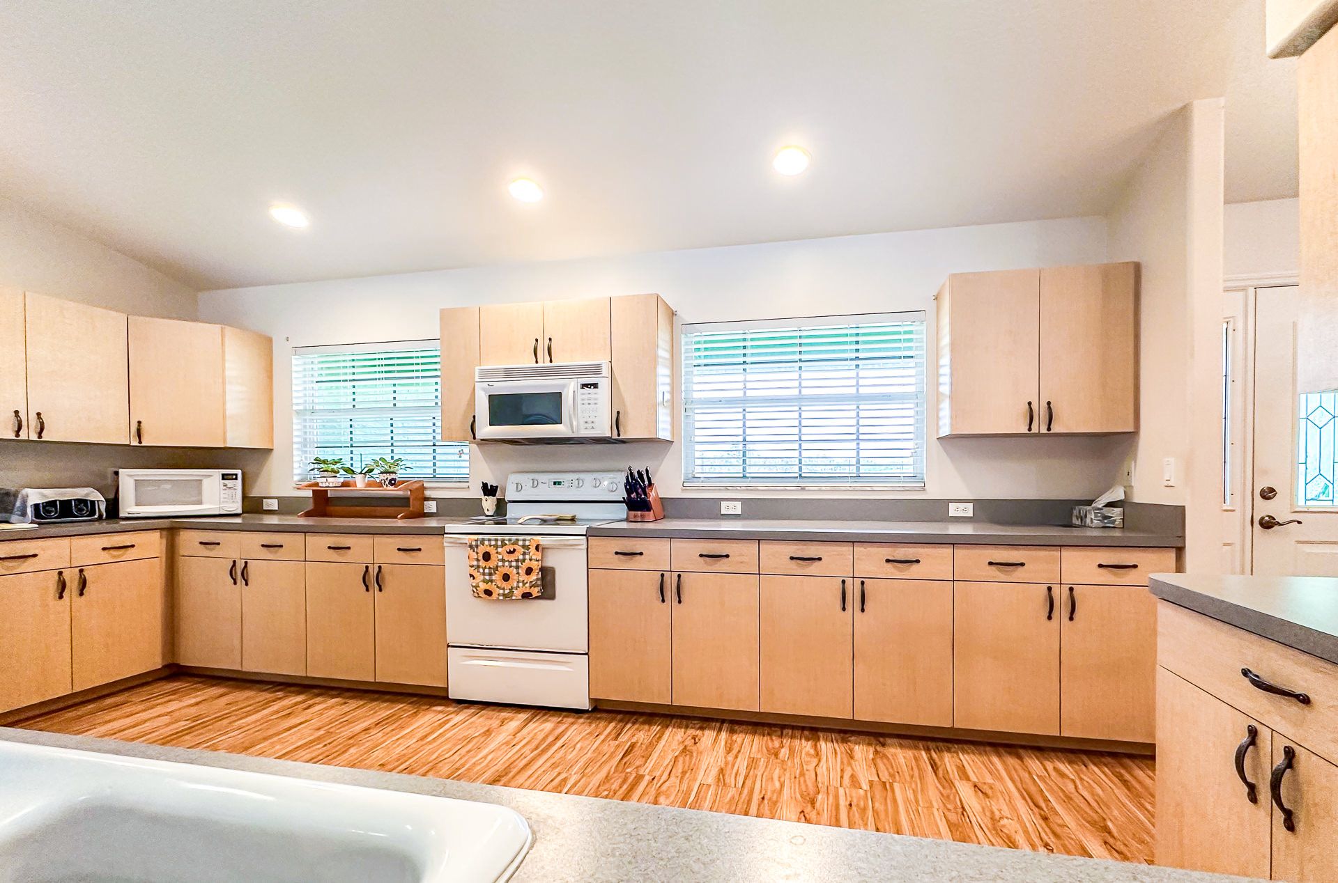 The three-car garage provides convenient parking and storage space. Recent updates include a newer roof installed in 2023, ensuring the home's long-term durability. The property is serviced by public sewer and is not located in a flood zone, offering peace of mind.