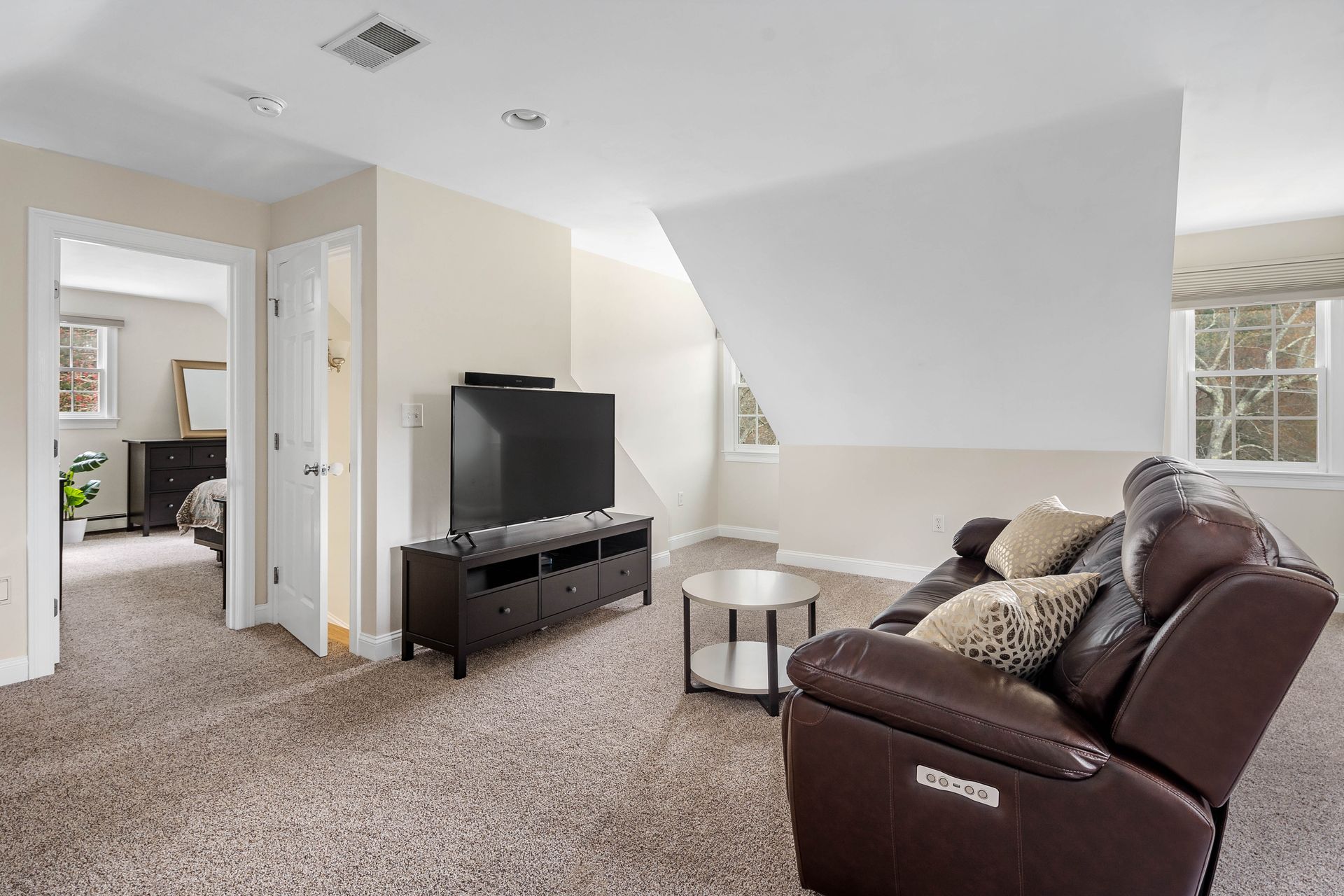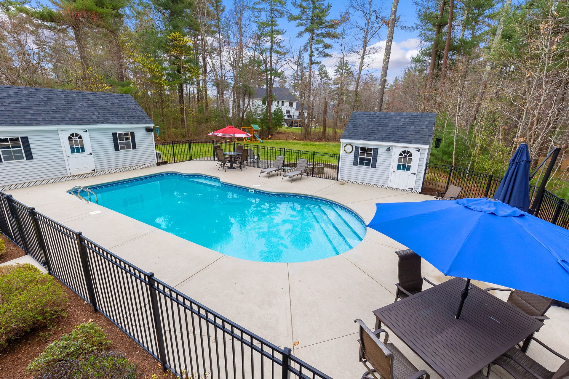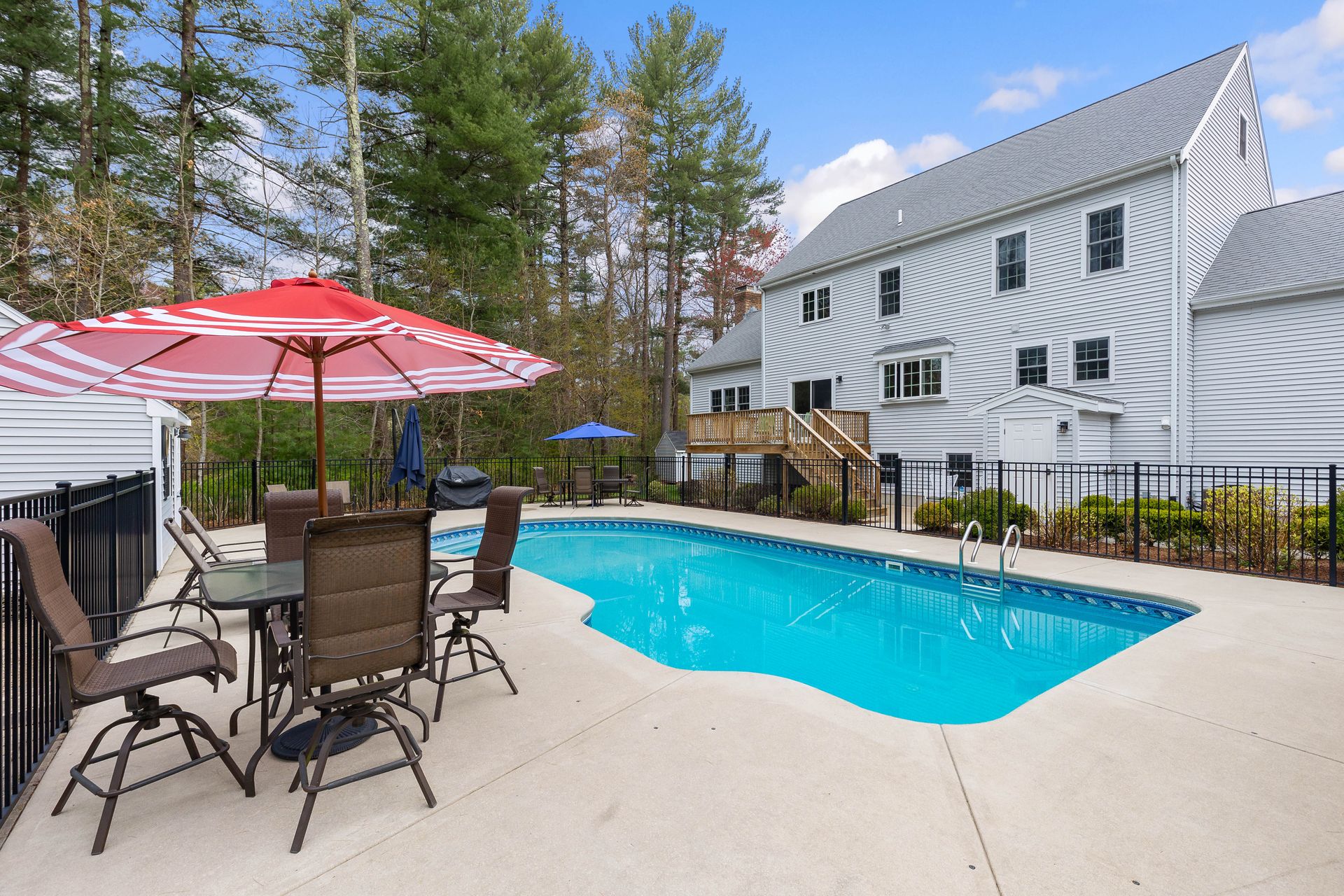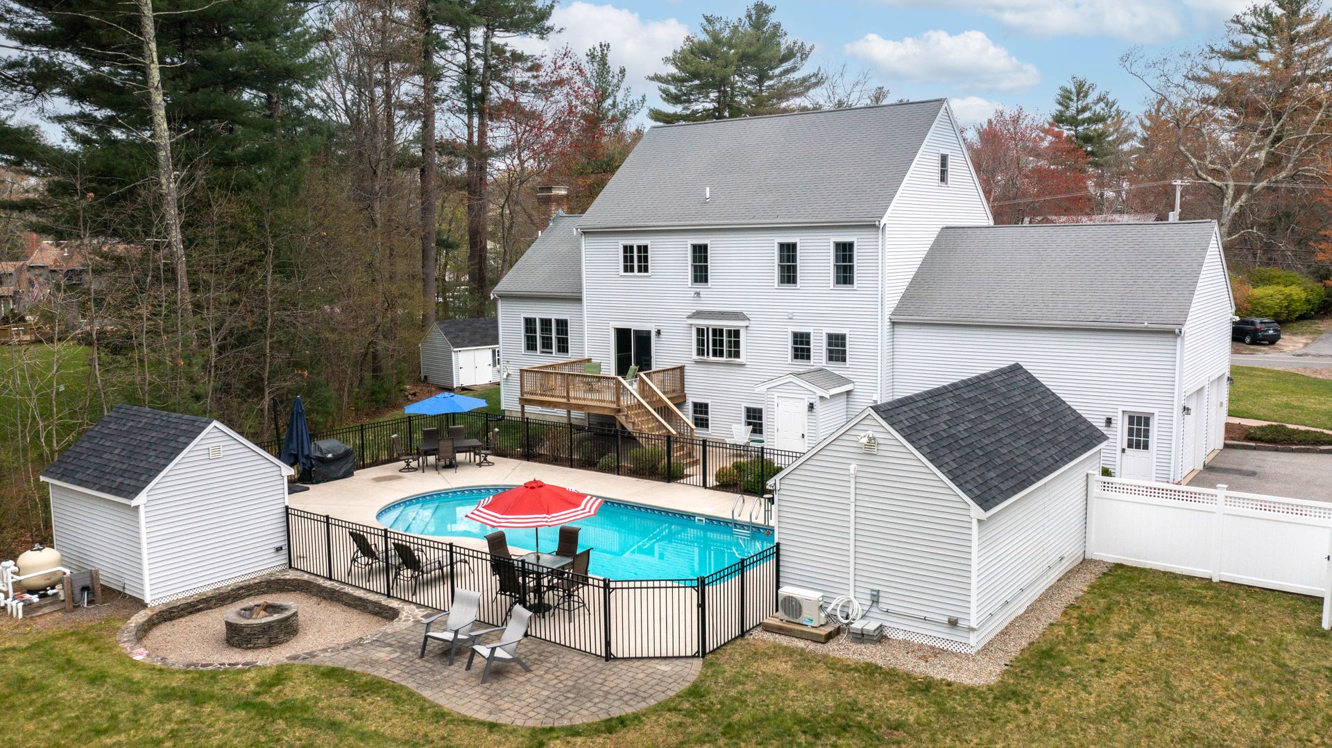 LIVE, Work and Entertain in this classic Colonial featuring a spacious backyard with a gorgeous in-ground pool and cabana/studio for those nice summer afternoons. Wonderful, bright, and spacious open floor plan featuring hardwood floors throughout the first floor. Notice the tray ceiling in the family room and crown moldings in the foyer, dining room, and living room. You will love the large bedrooms. The master bedroom features crown molding, a large walk-in closet, and a tiled bathroom with tiled shower and jacuzzi tub. The third floor has a bedroom and great living space which nicely supports an office/recreation area. A large full-height walk-out basement area is ready for your imagination. The attached two-car garage has good storage and an EV charging station. Bonus: 22KW Generac generator was installed in 2020.Ten minutes to Route 3, 45 minutes to downtown Boston and 30 minutes to Sagamore bridge...... Sellers are ready to move!