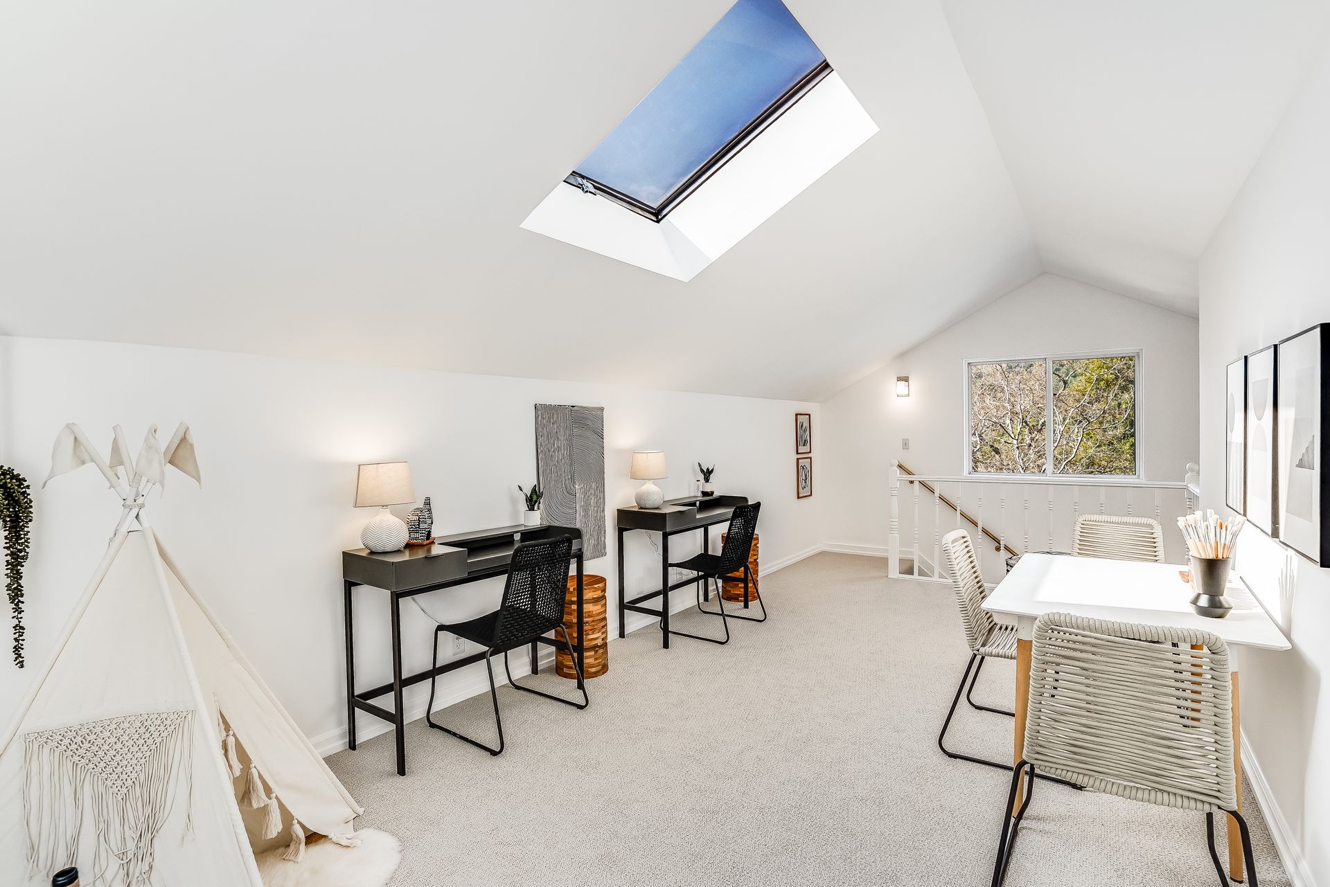 The formal living and dining rooms are grand yet welcoming, ideal for both entertaining and cozy evenings at home. Soaring ceilings, skylights, & custom wood accents are just a few of the architectural components that make this home so alluring.