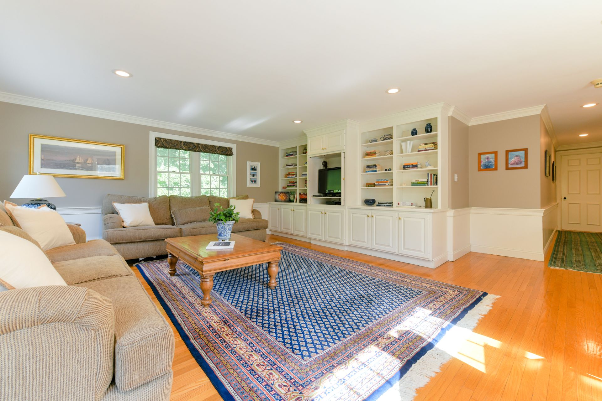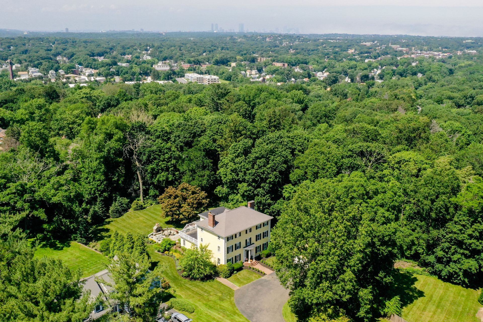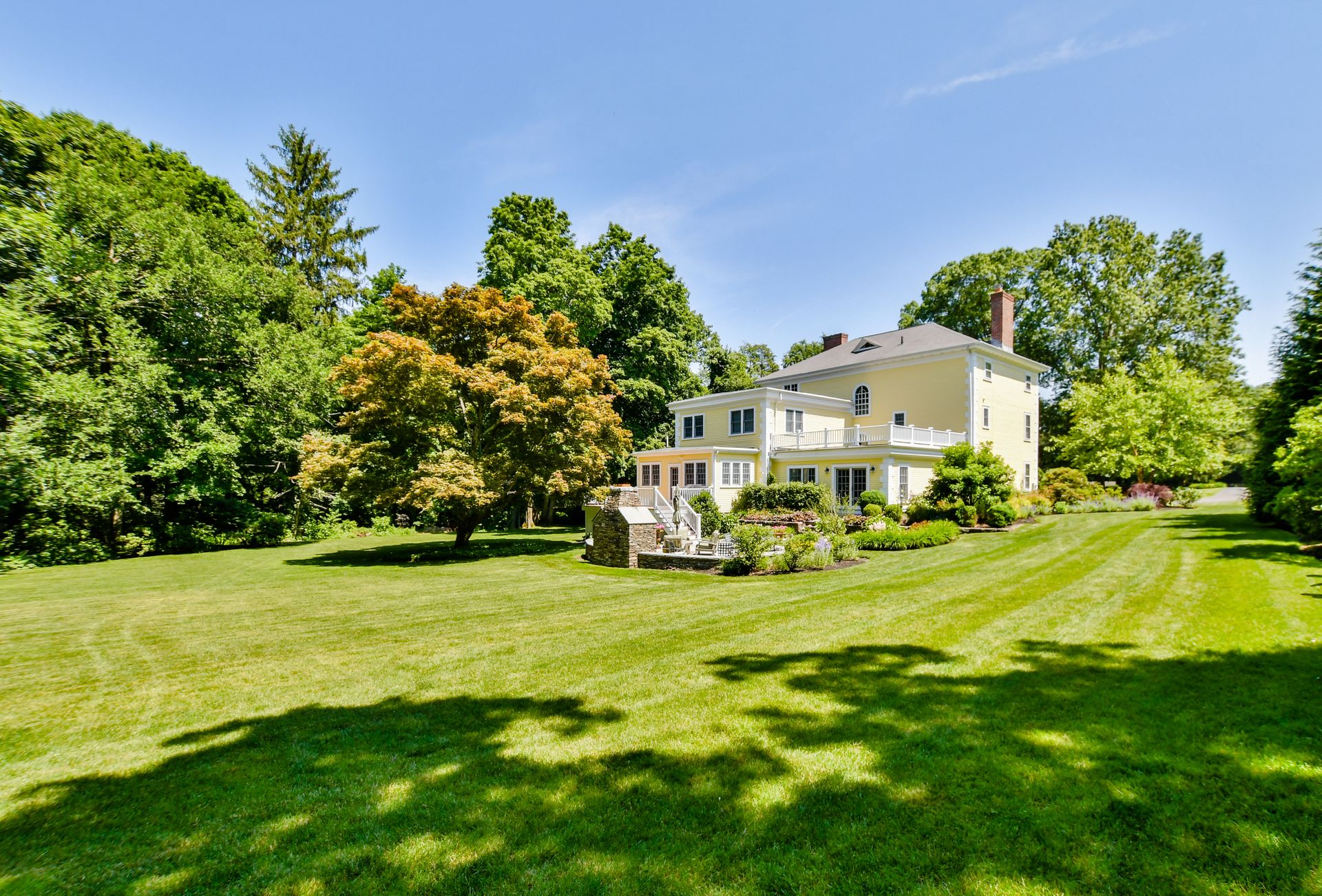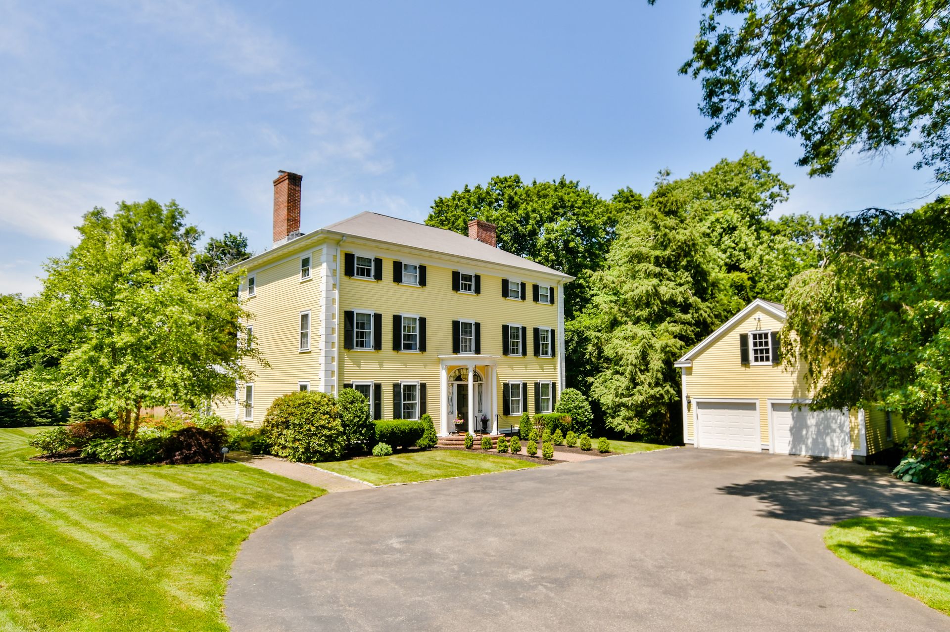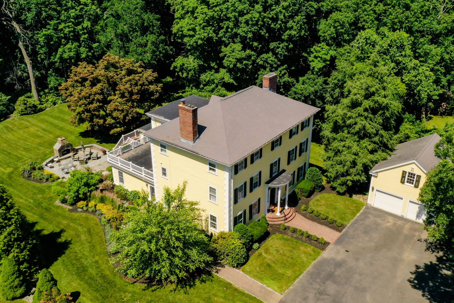 A grand semi-circular entry sets the stage to this stately, 1914, architectural beauty. A practical tile-floor entry leads to a generous foyer with walk-in coat closet to accommodate the family and second closet for hosting guests. The adjoining classical library, dining room and living room boast exquisite detail and craftmanship and unique mantels adorn each of three fireplaces. These spaces lead to the rear of the house with kitchen and pantry, plus kitchen office, sitting area and 1st floor laundry room, that have been totally renovated: appliances include double ovens, microwave, two sinks, two dishwashers, two disposals, 48" side-by-side, refrigerator/freezer and a bar refrigerator. No expense was spared with radiant floor heat and high velocity A/C. As if this were not enough, an expansive, step-down family room addition now connects the kitchen area and the formal living room, and has French doors that lead to the backyard. Other upgrades include the 2-story, 2-car garage, a custom-built wine cellar in the basement and a second-floor family room, just up the back stairs from the kitchen, completely renovated and featuring extensive built-in cabinetry. Get ready for outdoor fun with a Trek deck, a gorgeous bluestone patio with stone fireplace, stonewall seating and architectural lighting, a sprawling, green lawn, with irrigation, and prolific professional landscaping. Maintained to perfection from top to bottom: all windows reconditioned; all clapboards, all custom-milled trim boards and beaded moldings, gutters, and shutters replaced; upgraded electric; re-zoned and upgraded Buderus heaters; French drain along the perimeter of the yard; stone walls and cobble bordered brick pathways; extensive designer landscaping; the list goes on and on. A serene, private, and sophisticated property just minutes to Town Center, public schools, Milton Academy, Redline Trolley, commuter rail, Route 128 and Boston. This one is truly exceptional!