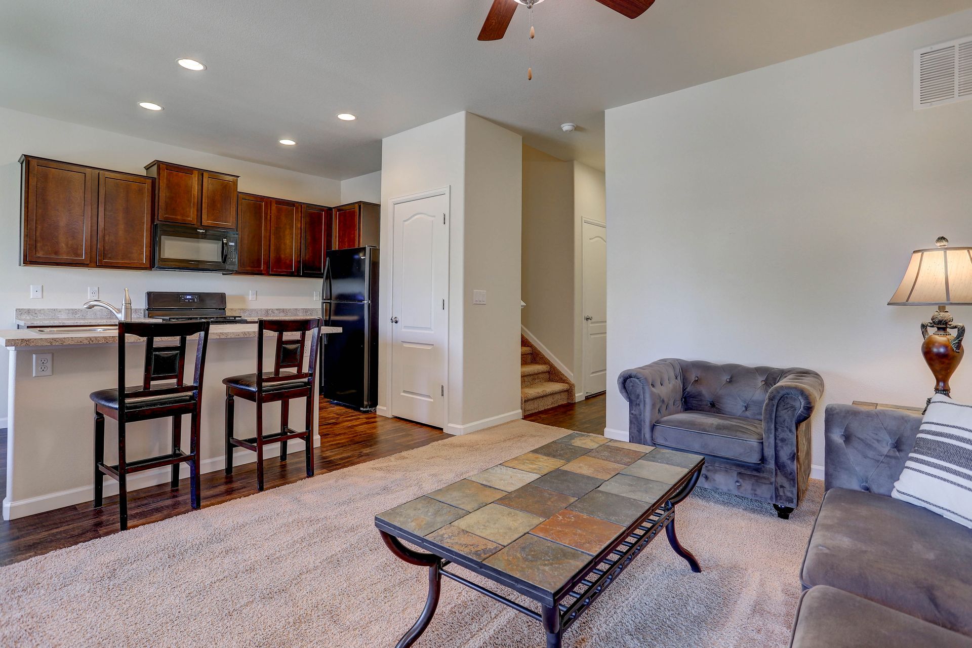 Fabulous three bedroom townhome in the heart of Longmont! This newly built townhome boasts a large family room, dining room and spacious kitchen with abundant storage. Nearly new appliances including a gas range/oven, a huge kitchen island, a pantry, LVP flooring and gorgeous dark cabinets complete this dream eat-in kitchen. Storage options continue with the main-level over-sized hall closet, crawl space and completely drywalled two-car garage. Upstairs, the large primary bedroom features a private patio perfect for relaxing, a gigantic walk-in closet and comfortable primary bathroom. Two additional bedrooms, a bathroom, an upstairs laundry room and another spacious hall closet make for comfortable and functional living. Longmont Rec Center, parks, tennis courts, restaurants, schools, grocery stores, retail, hiking and biking trails all very close.