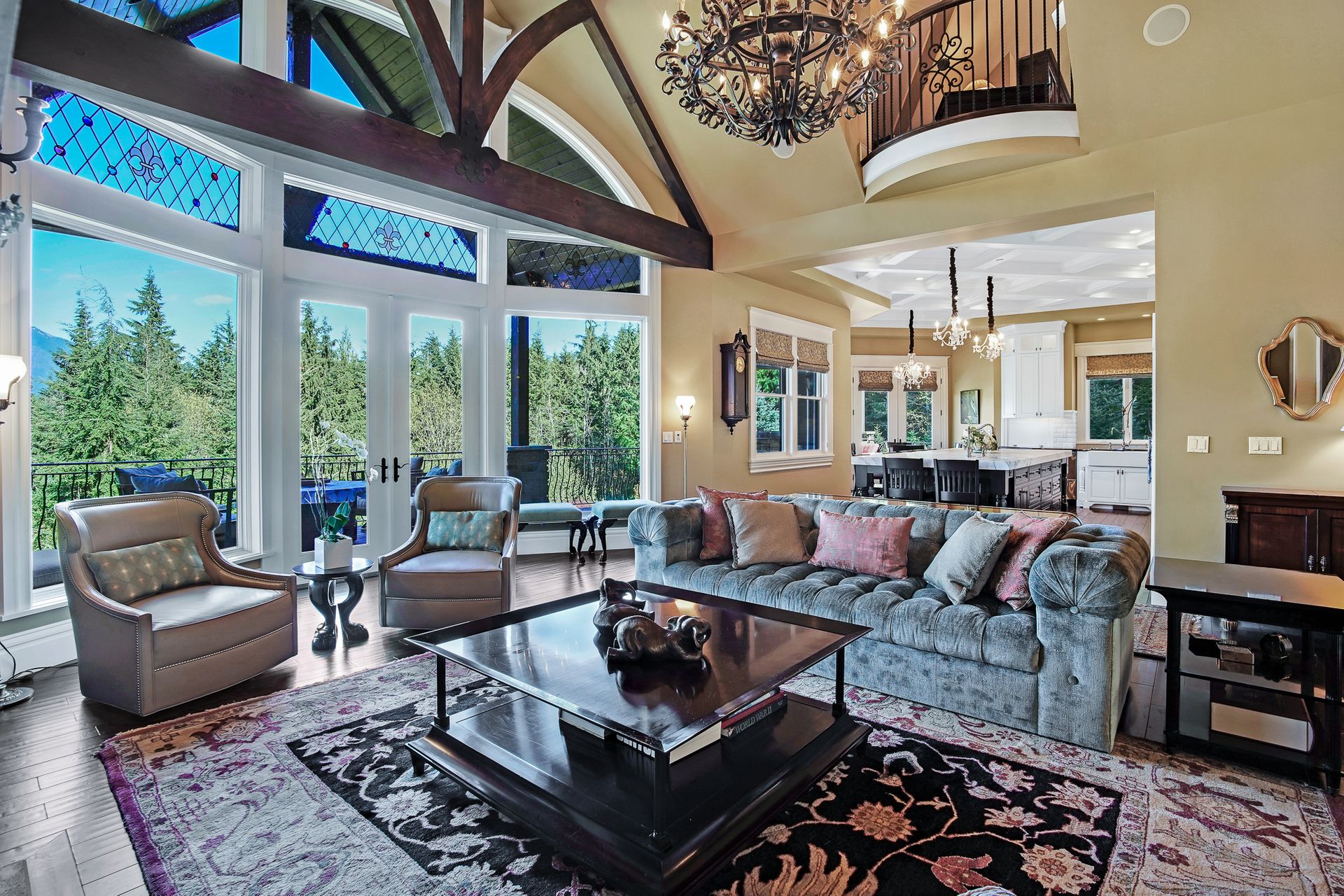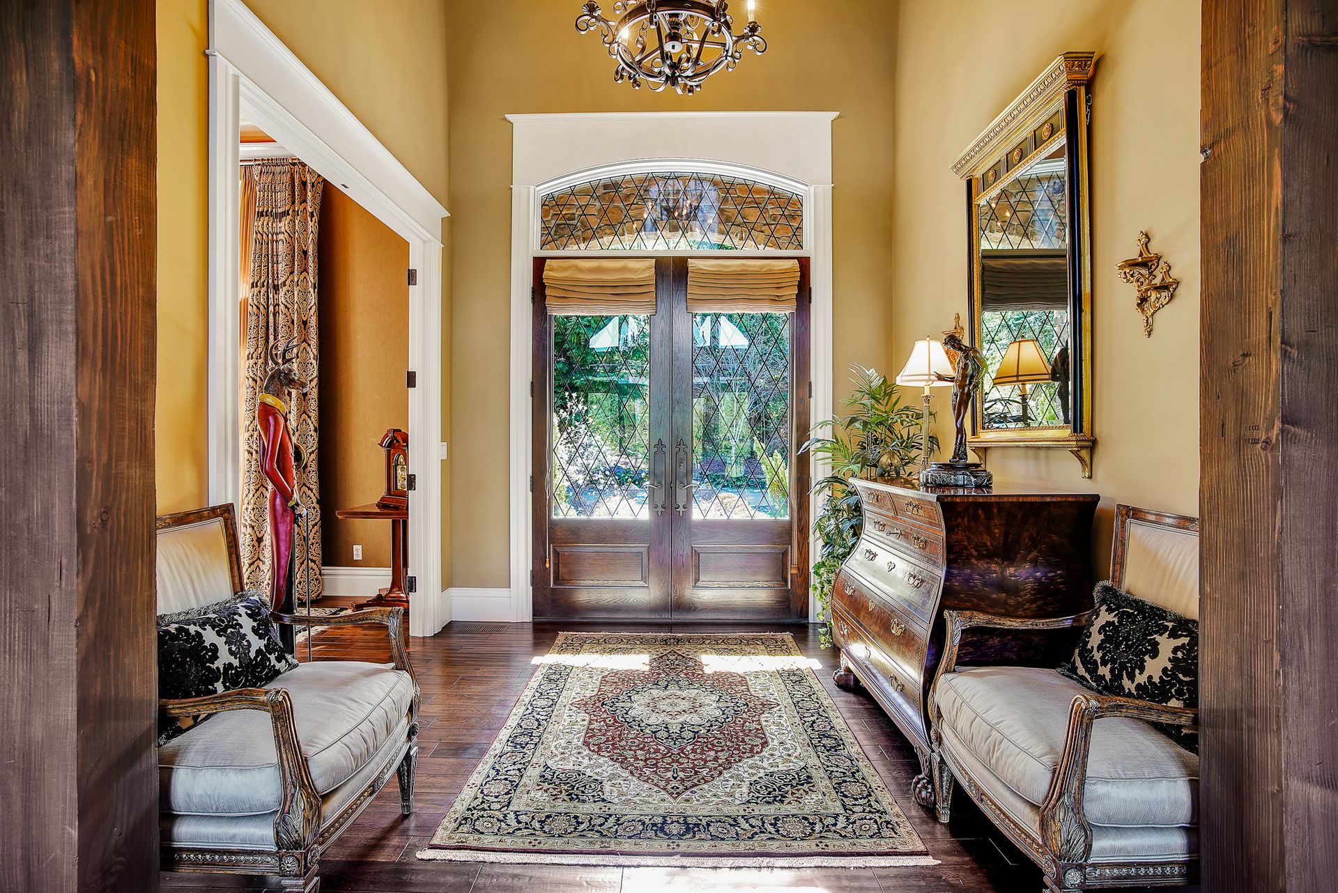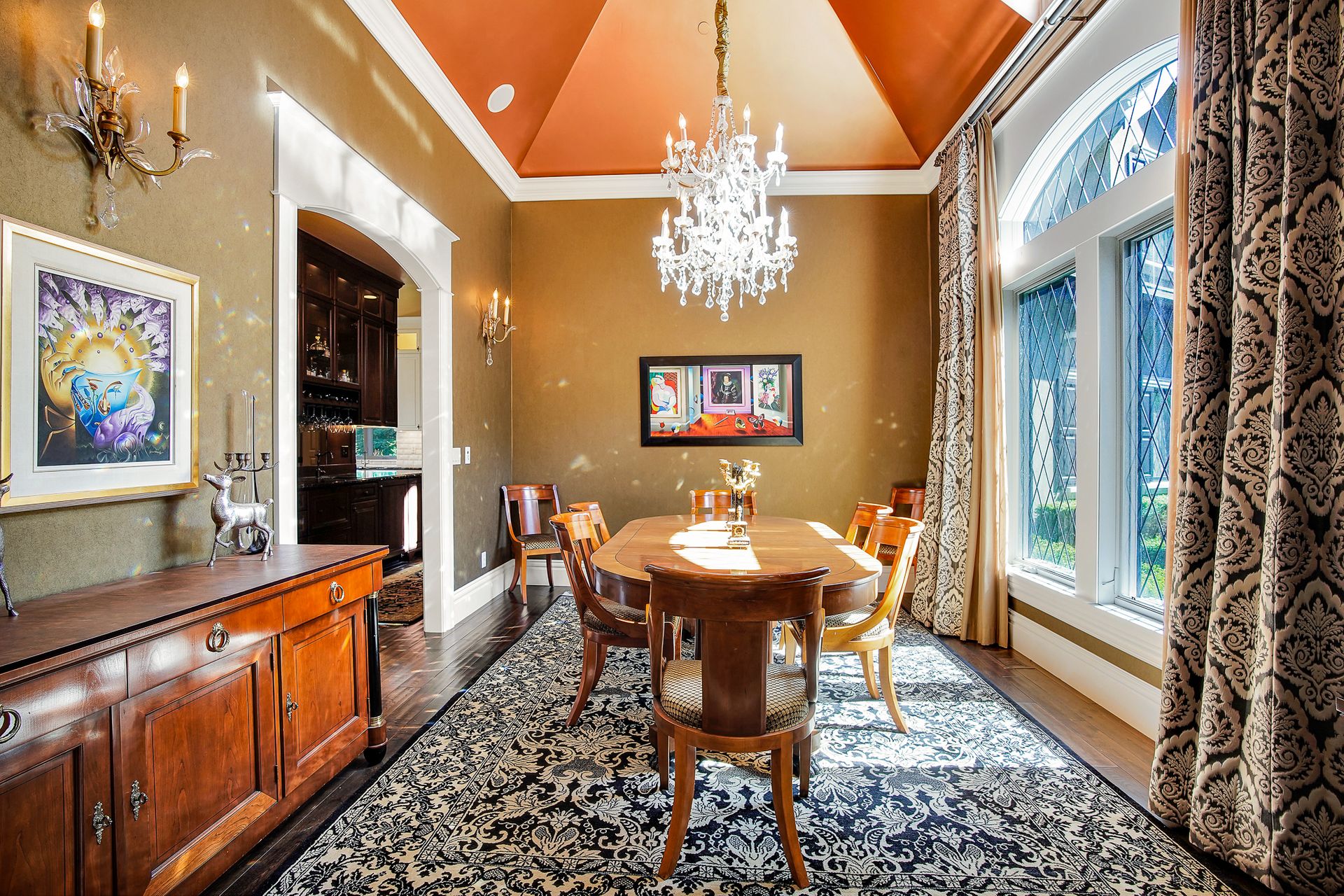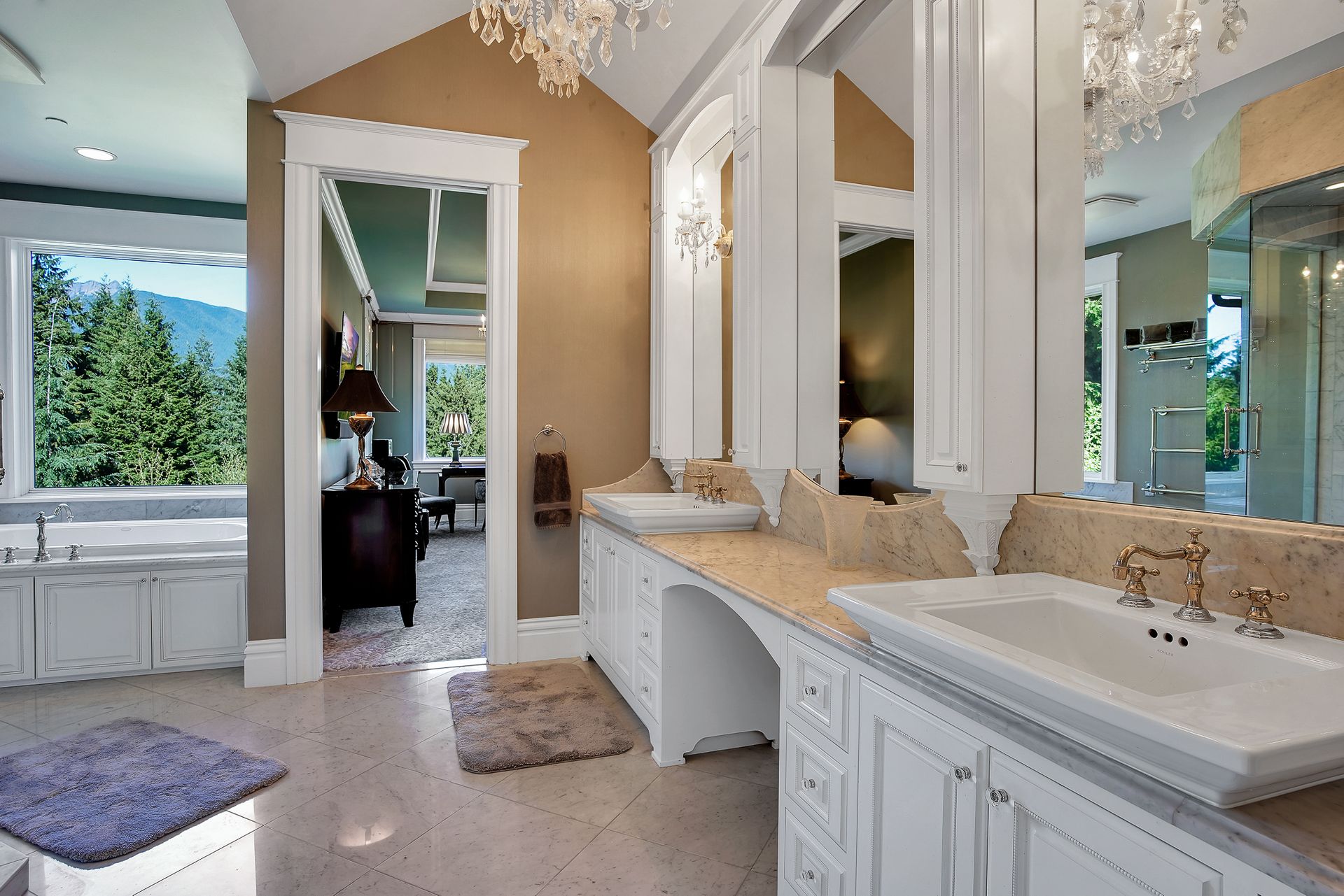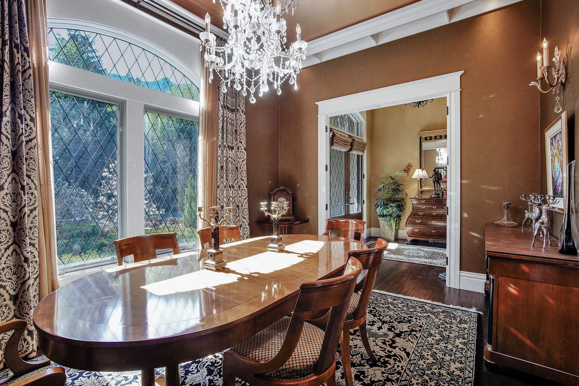 - Crystal chandeliers throughout home