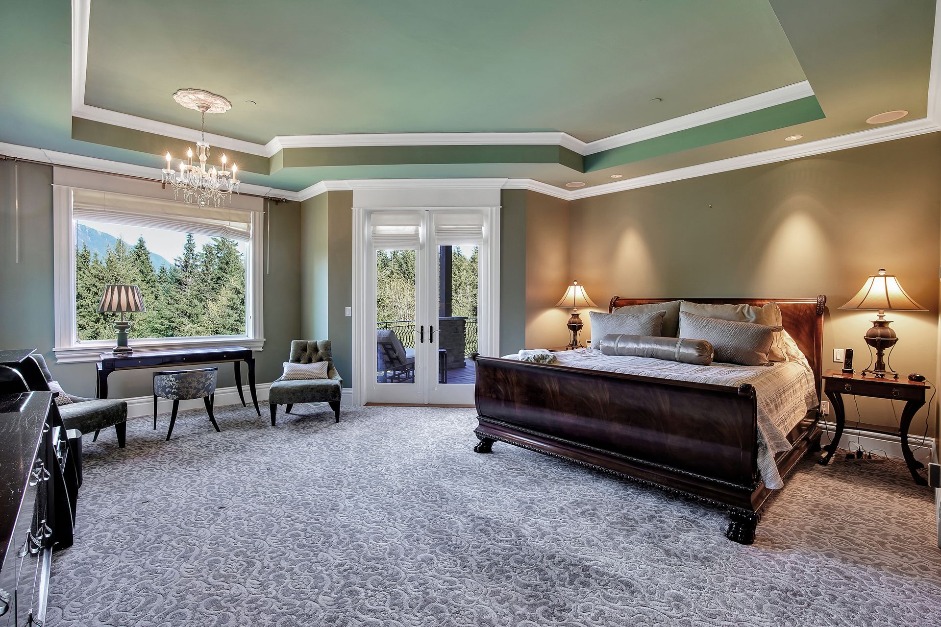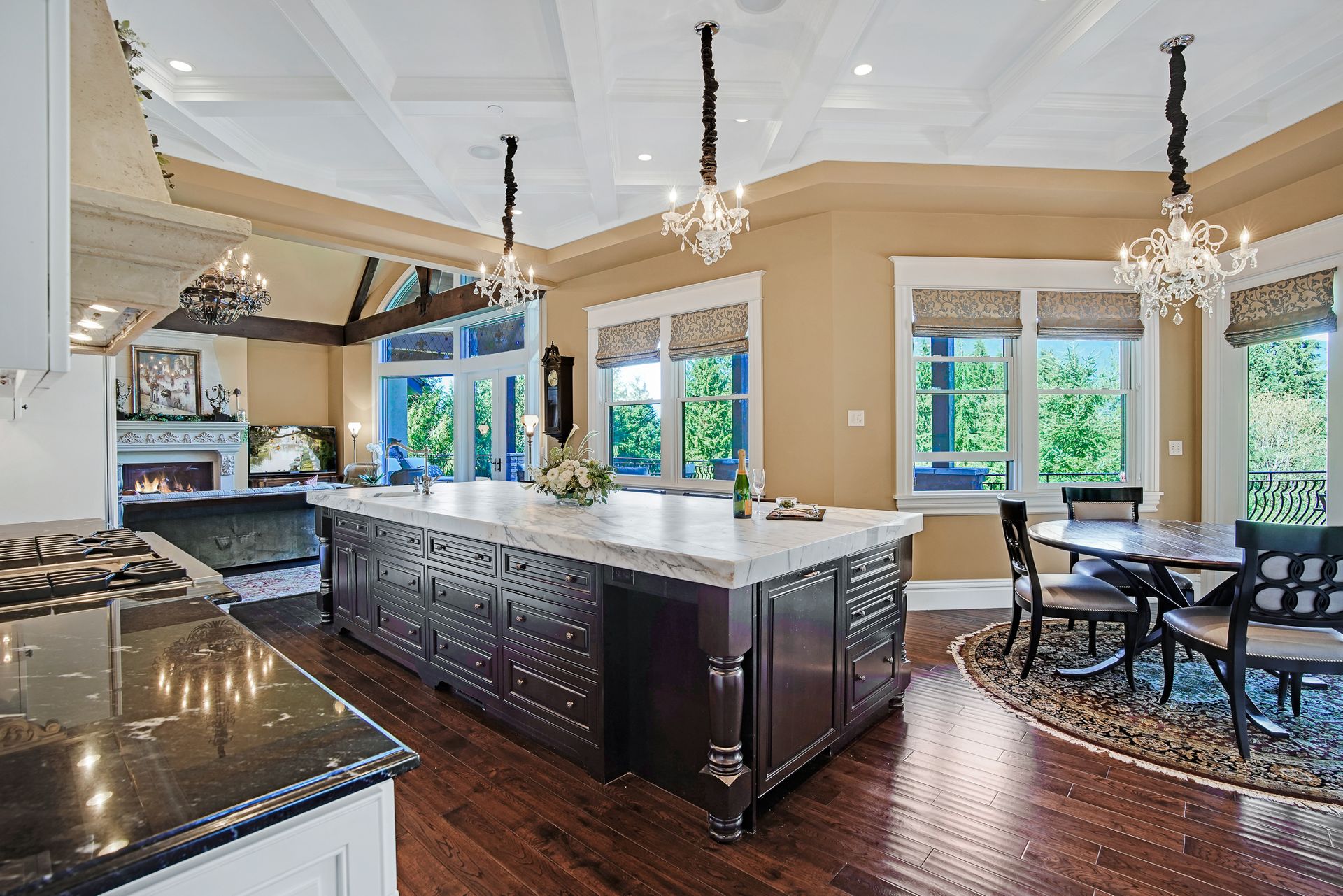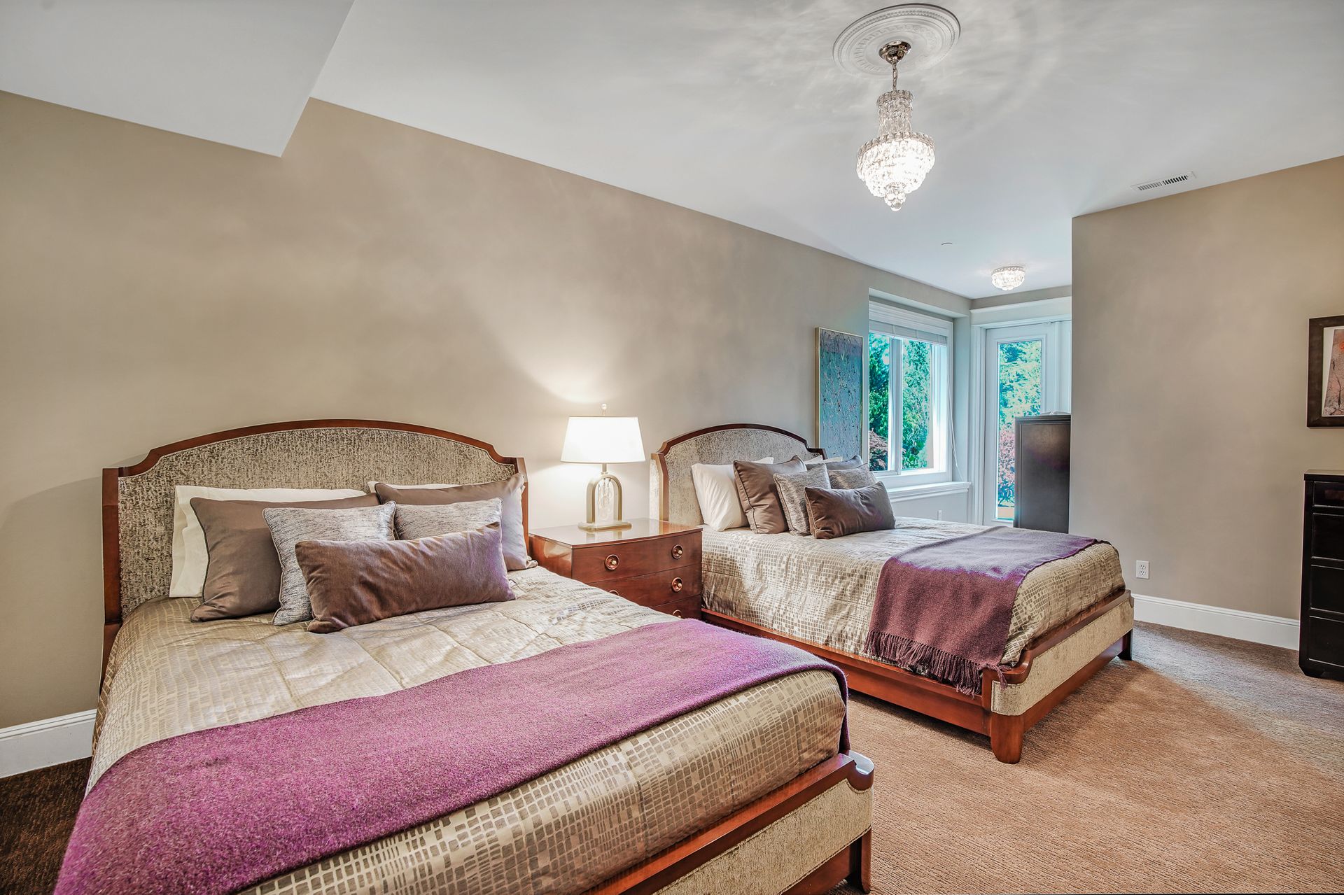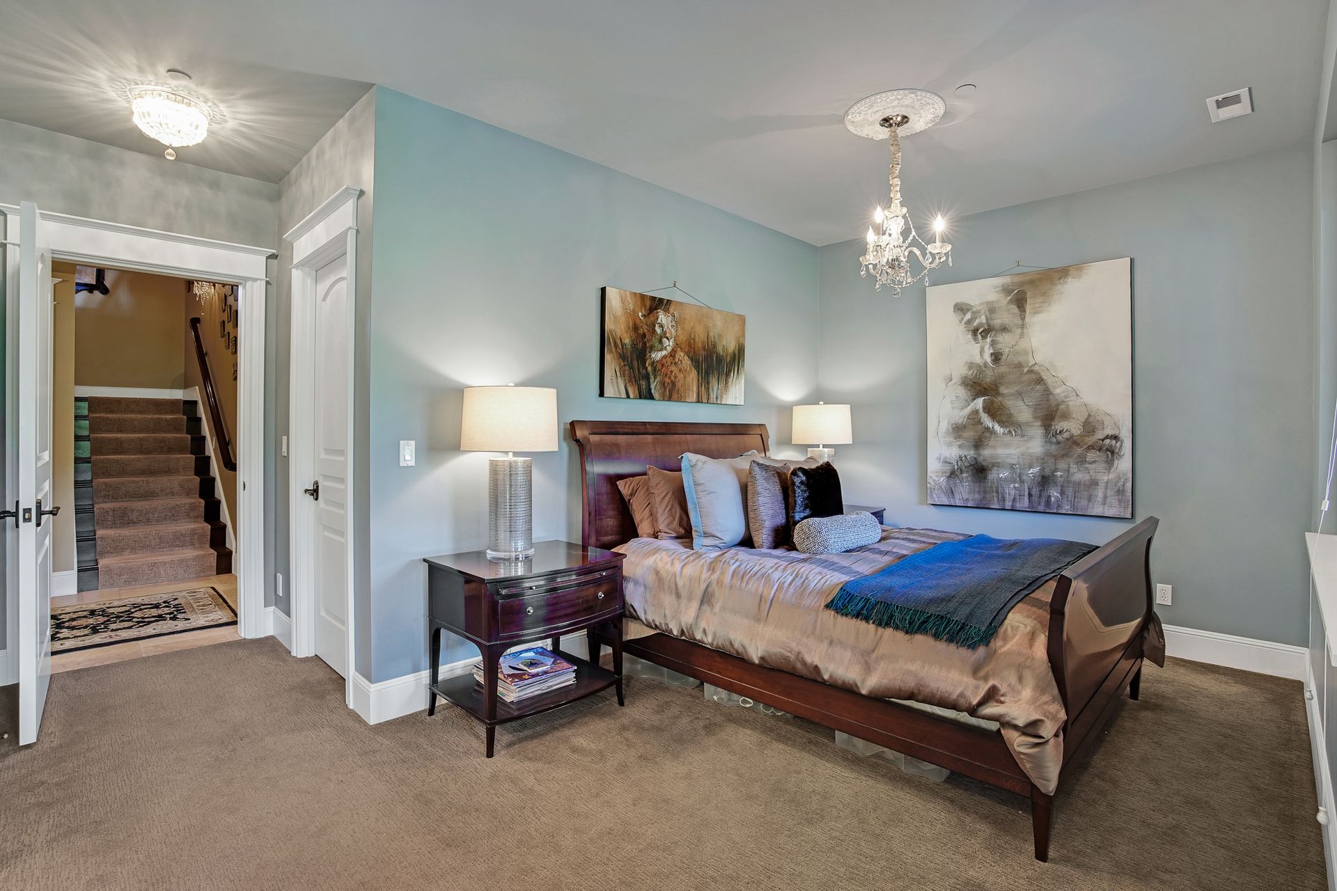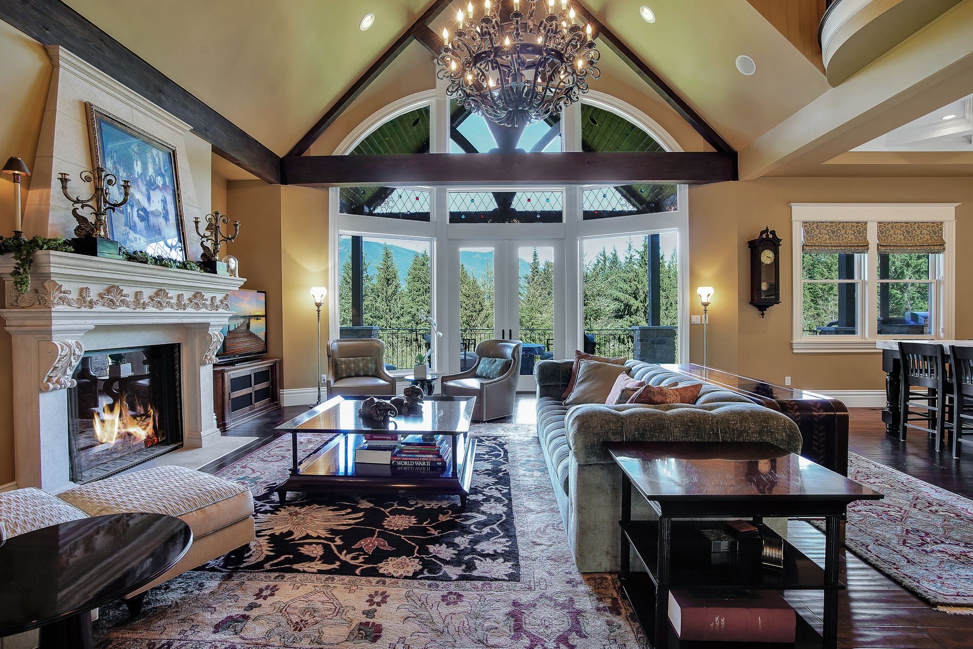 - Crystal chandeliers throughout home