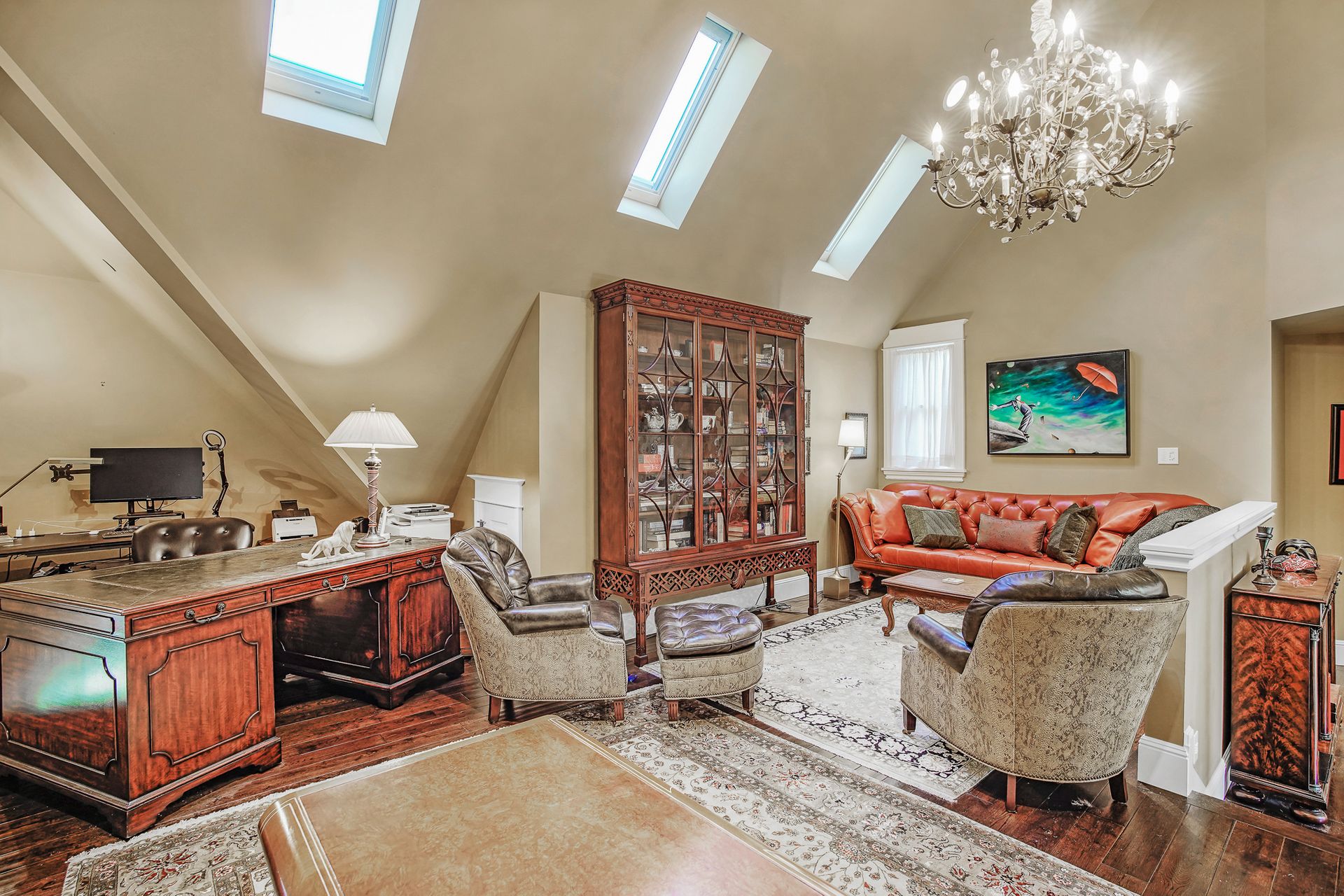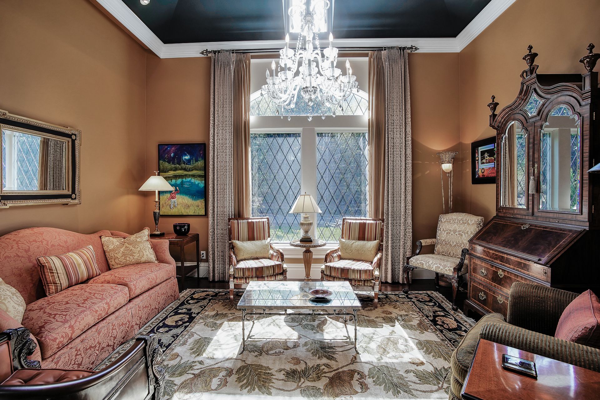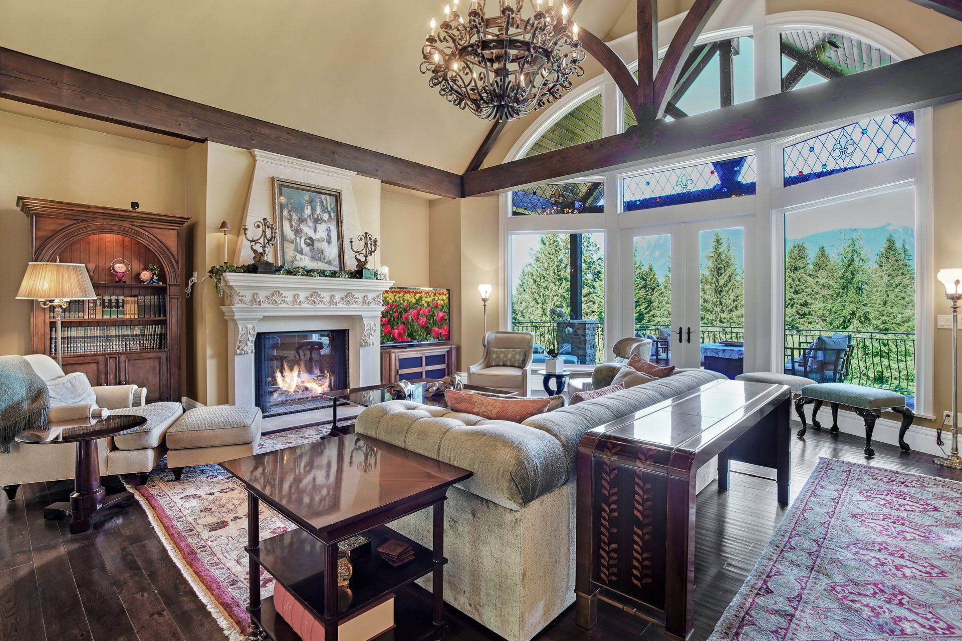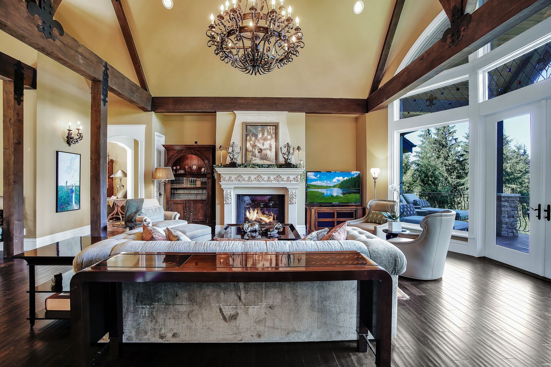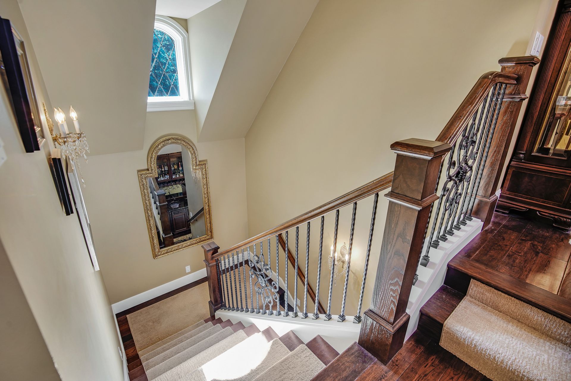 - Crystal chandeliers throughout home