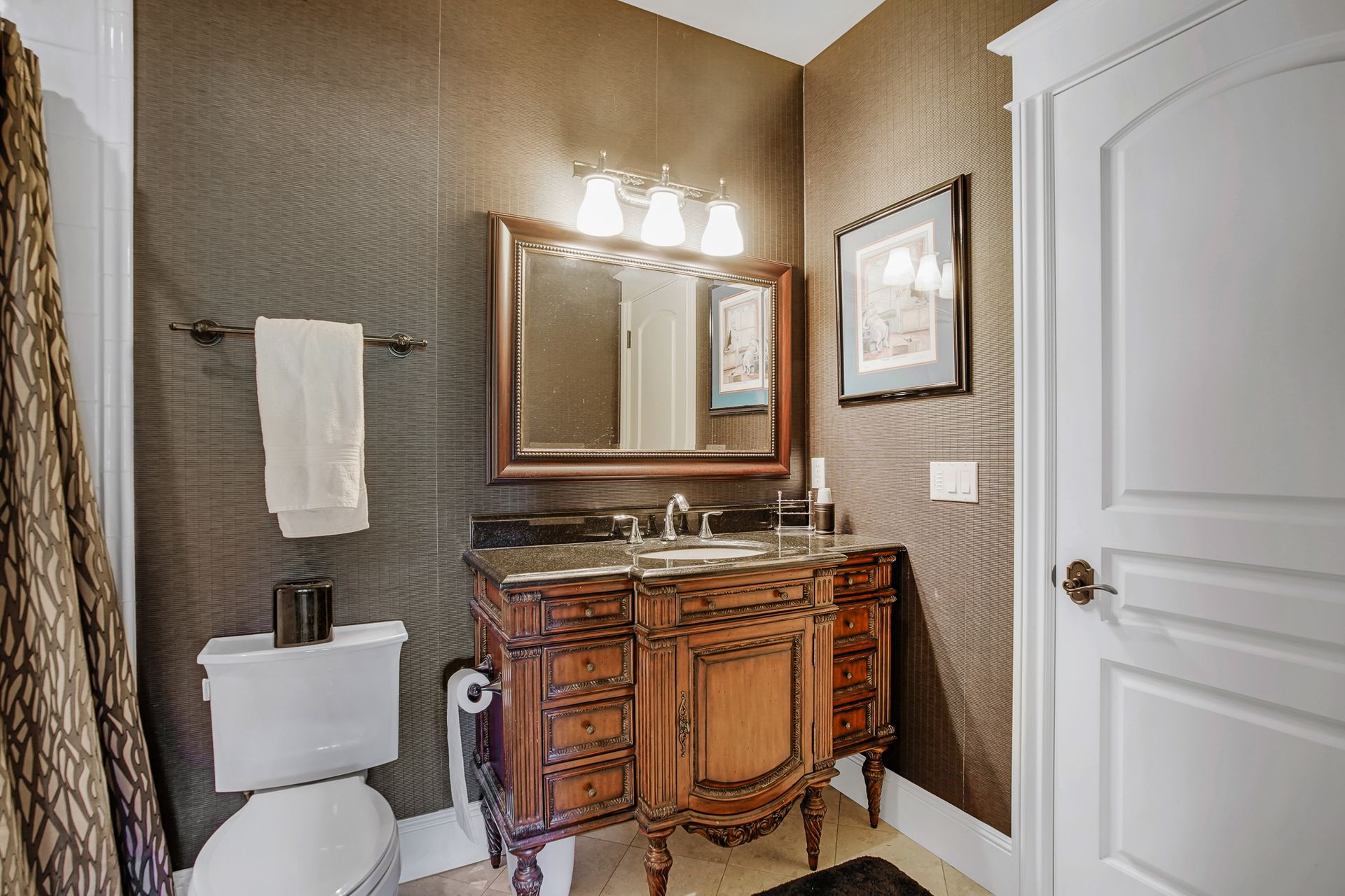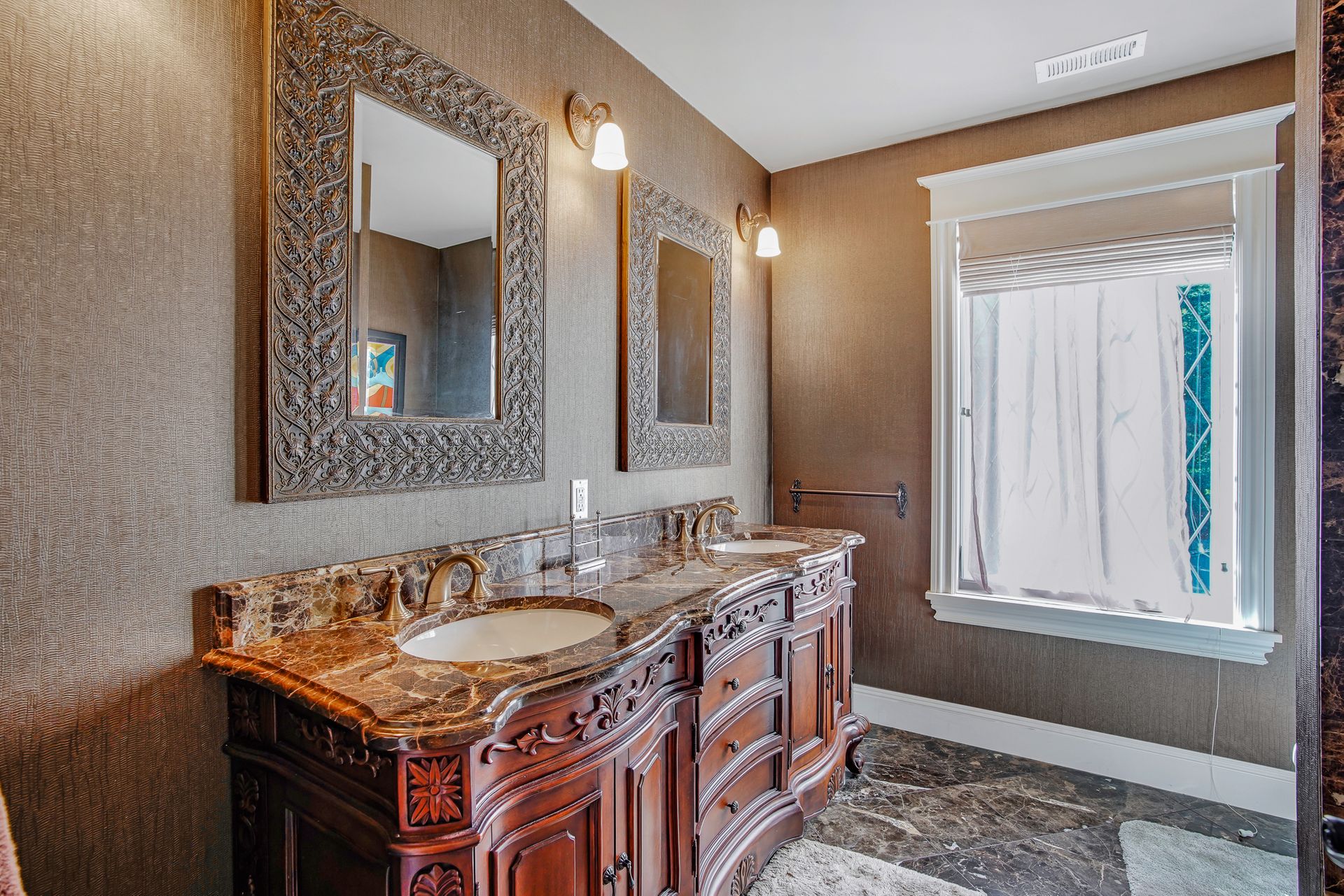 - Marble and granite counters throughout