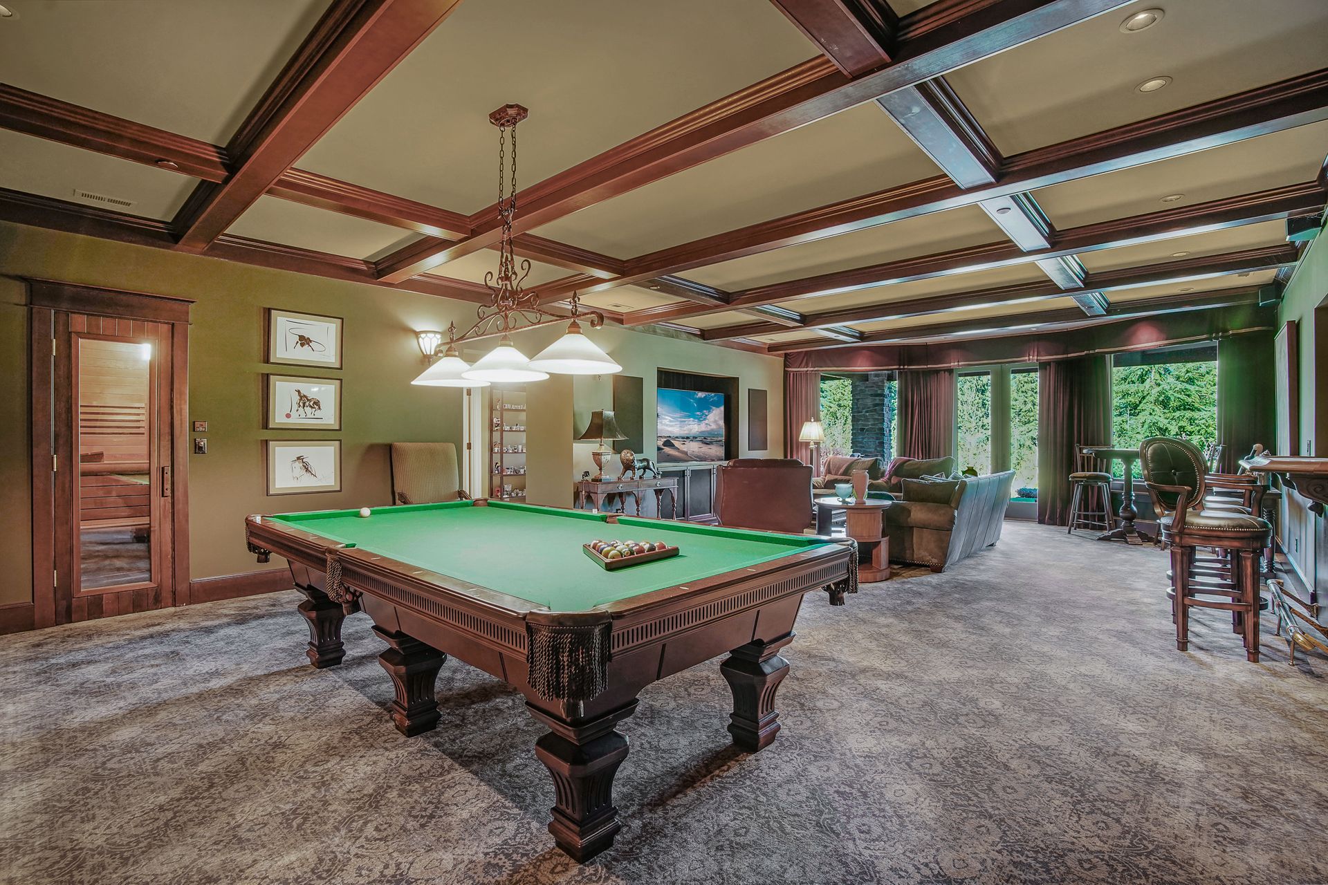 - Pool table and related equipment included in purchase