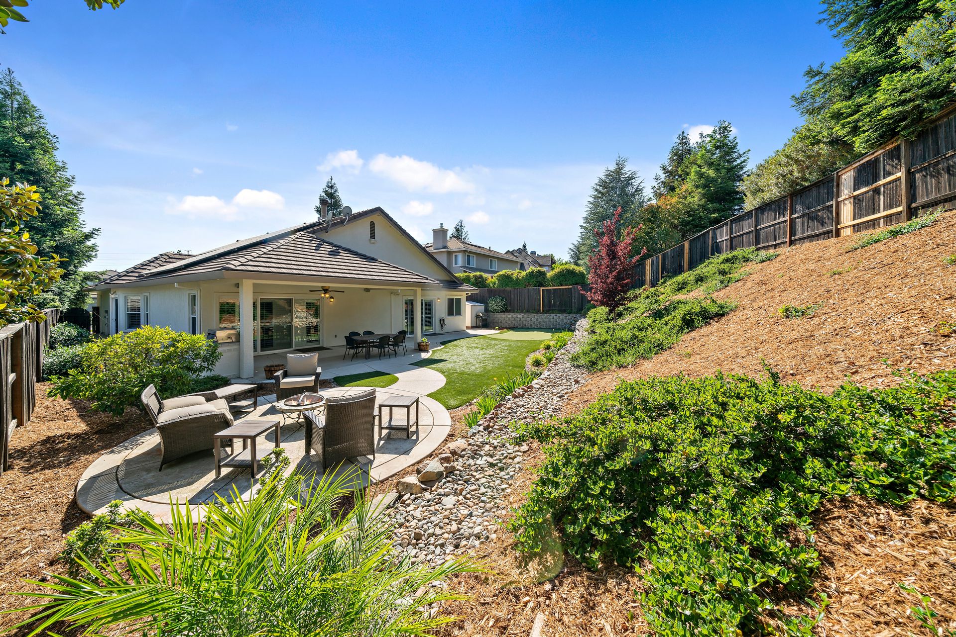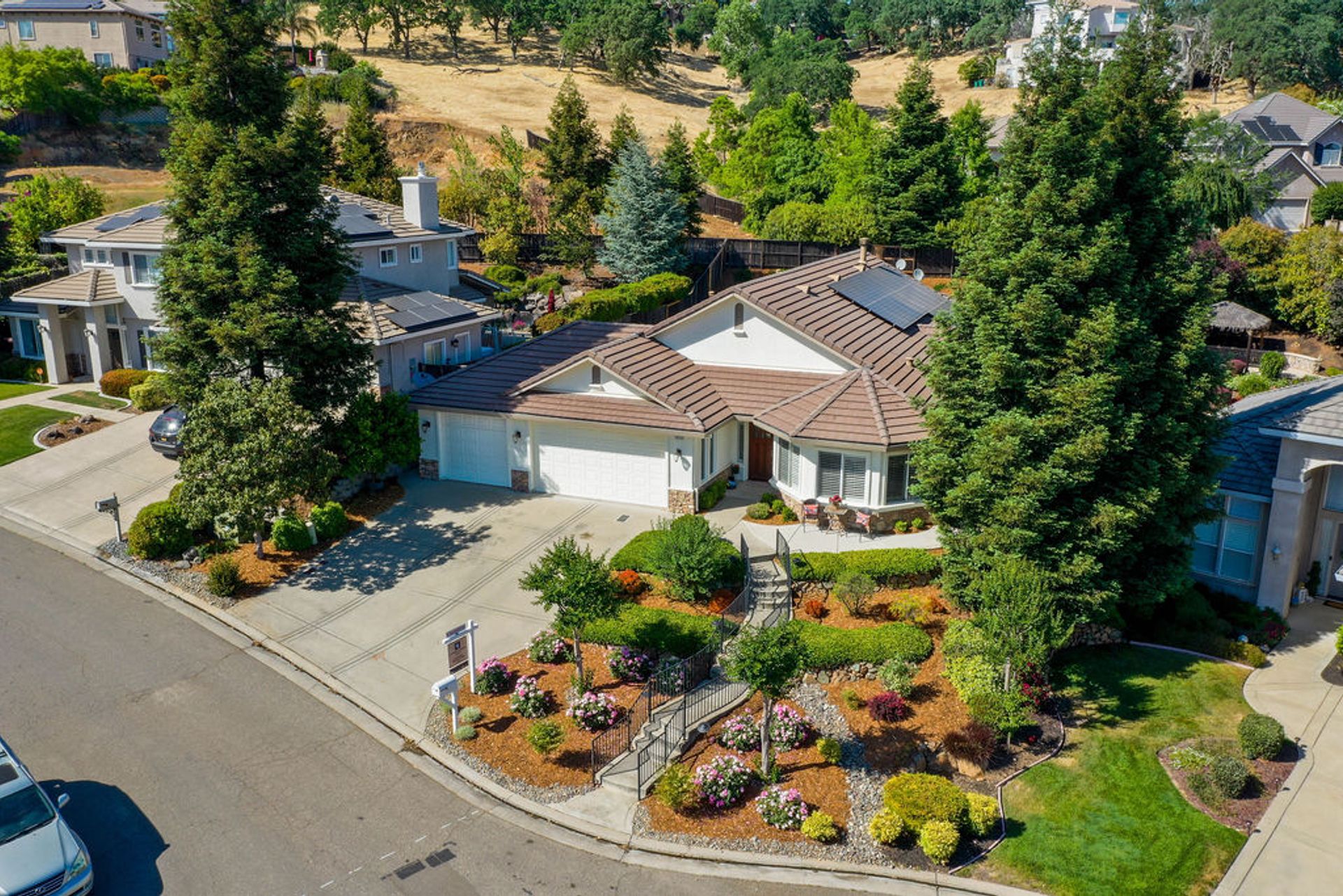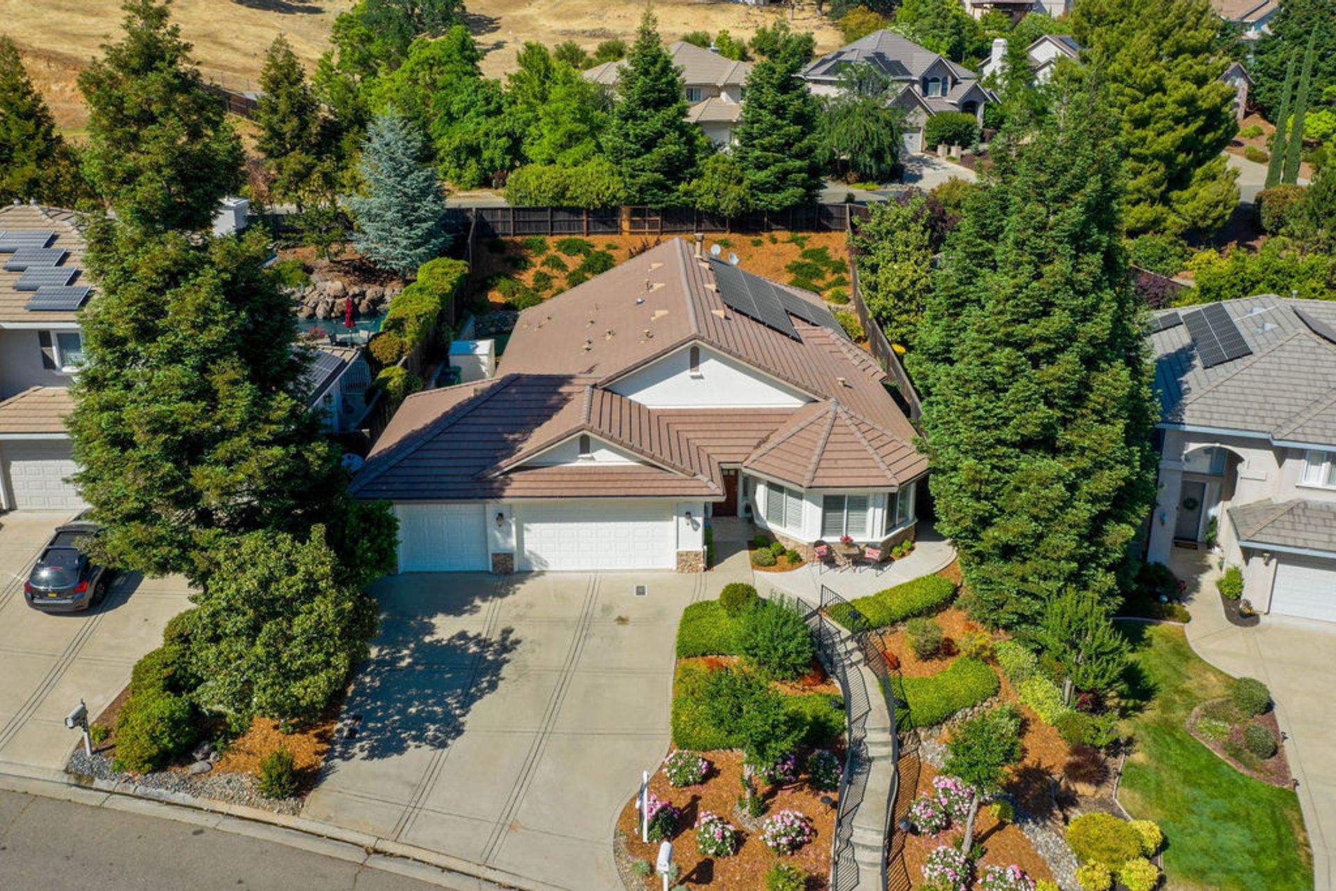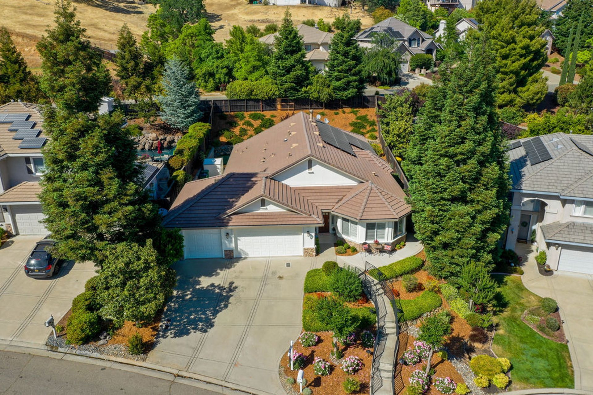 Beautiful Ridgeview custom one-story home in a cul-de-sac offers elegance & privacy. You'll want to stay-at-home in this wonderful 4 bed, 2.5 bath home. Energy saving features; owned solar, whole house fan, ceiling fan & more. Home updates include wide hallways & doorways, ramps at entry, hardwood floors, angled ceilings, open living spaces & a very private backyard with room for social distancing. Remodeled kitchen includes stainless appliances, beautiful granite counters, gorgeous cabinets & flows nicely to nook & oversized family room with soft carpet and a perfectly placed gas fireplace. Elegant details include wainscoting & crown moulding. Separate office room is ideal for working from home. 3-car garage is deep, spacious & has pass-through door. Large backyard is low maintenance & has room for pool. No HOA or Mello Roos. Home & master bath are updated with practical disability features. Top schools, shopping & parks nearby. Easy access to Folsom & Highway 50. Come and see!