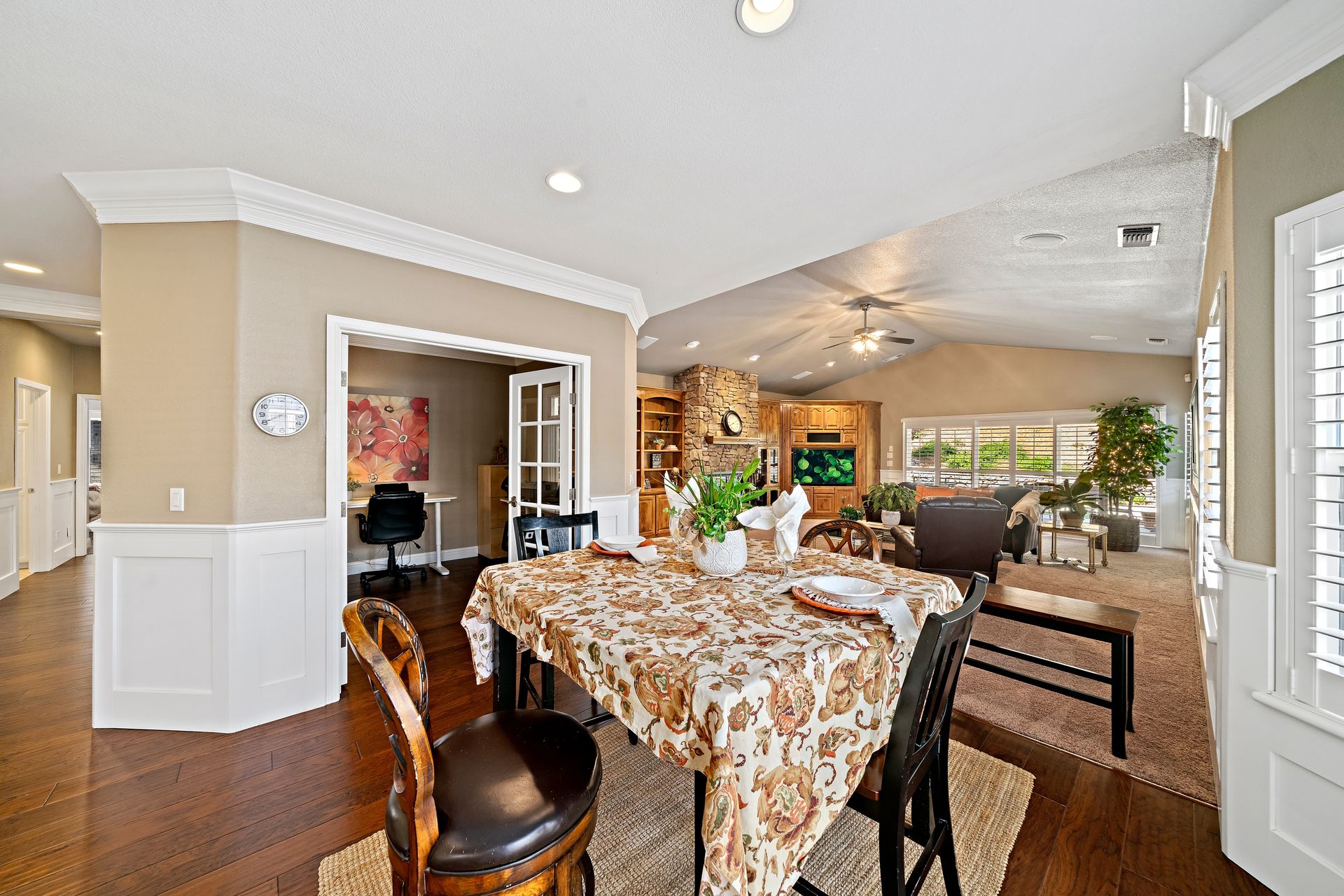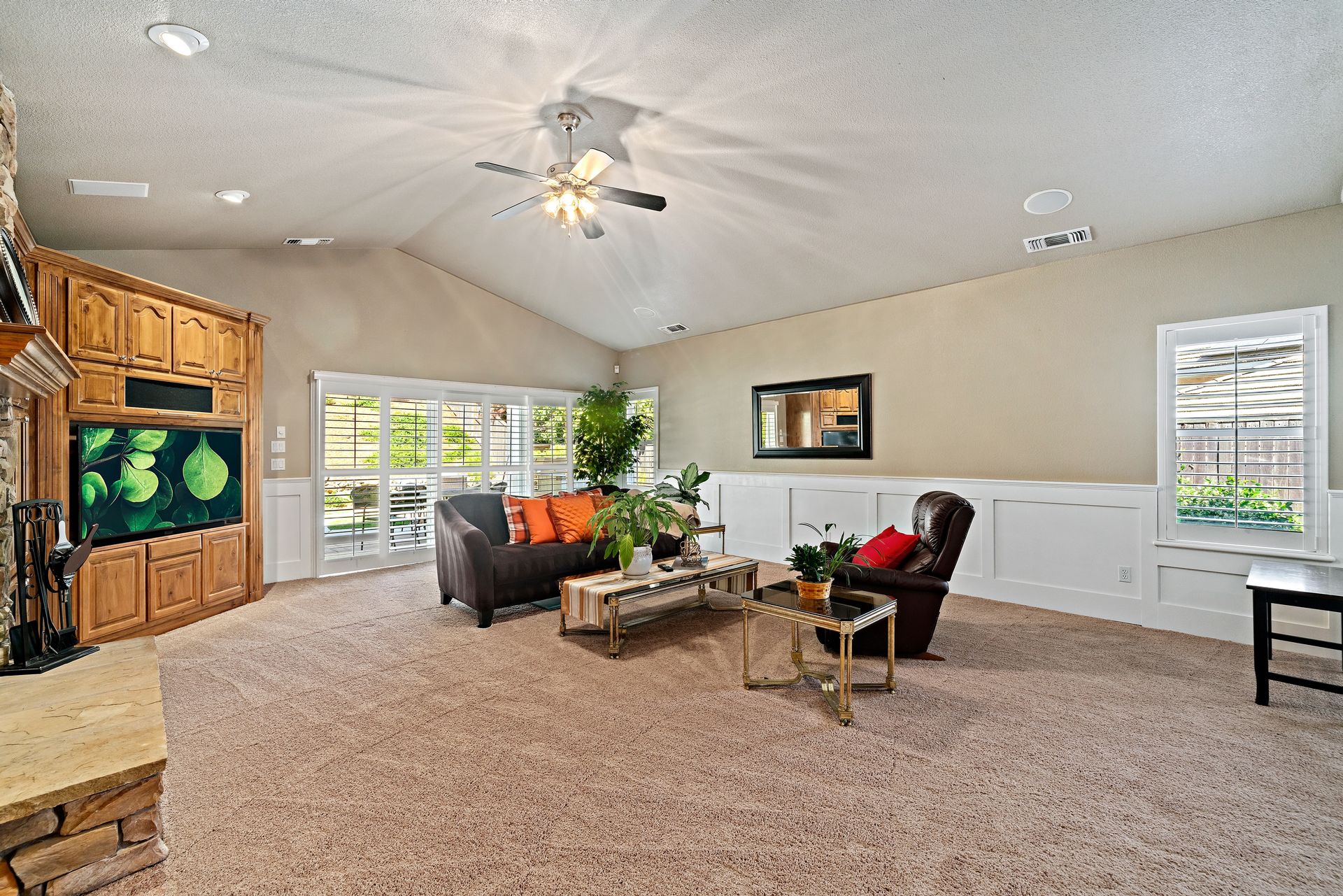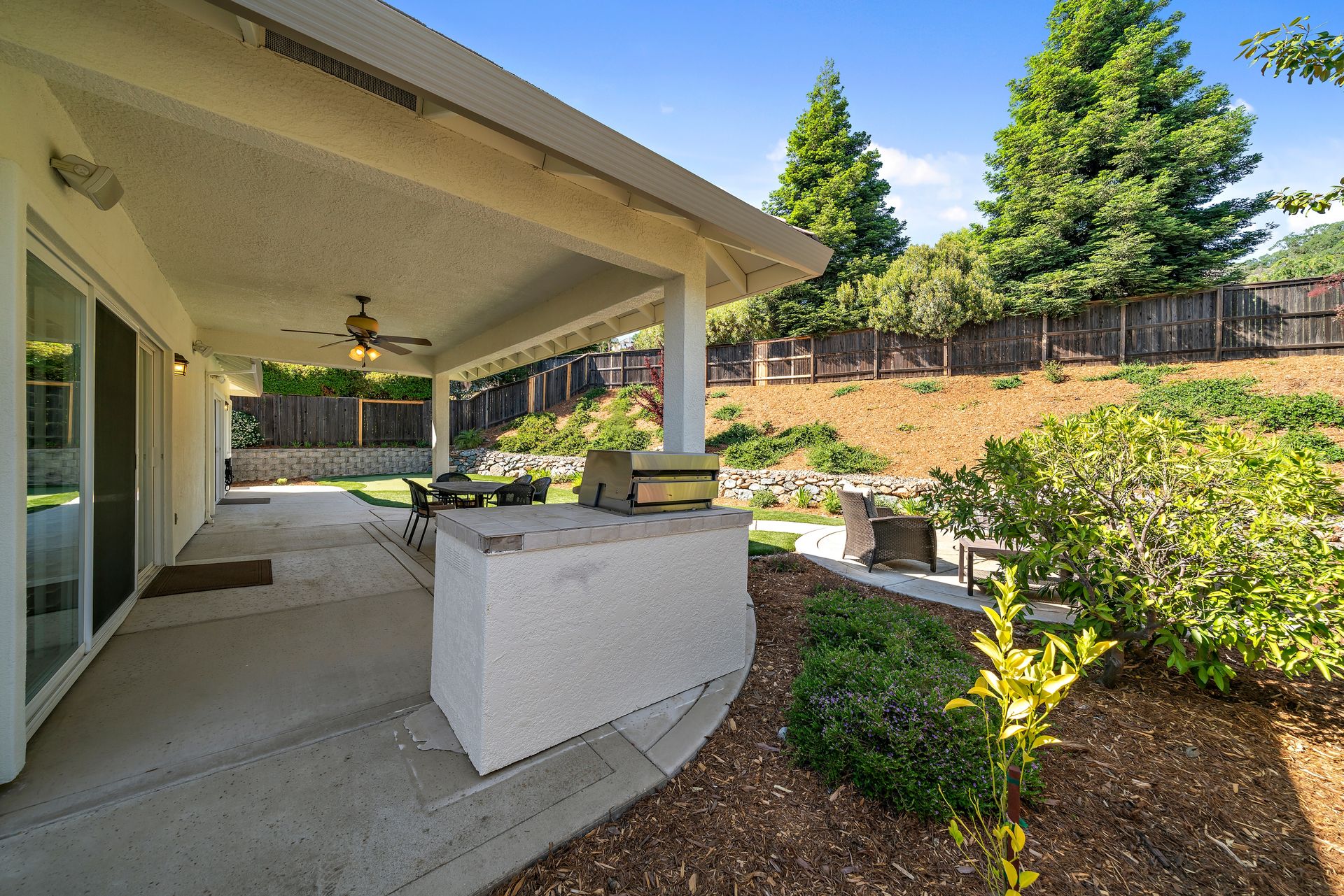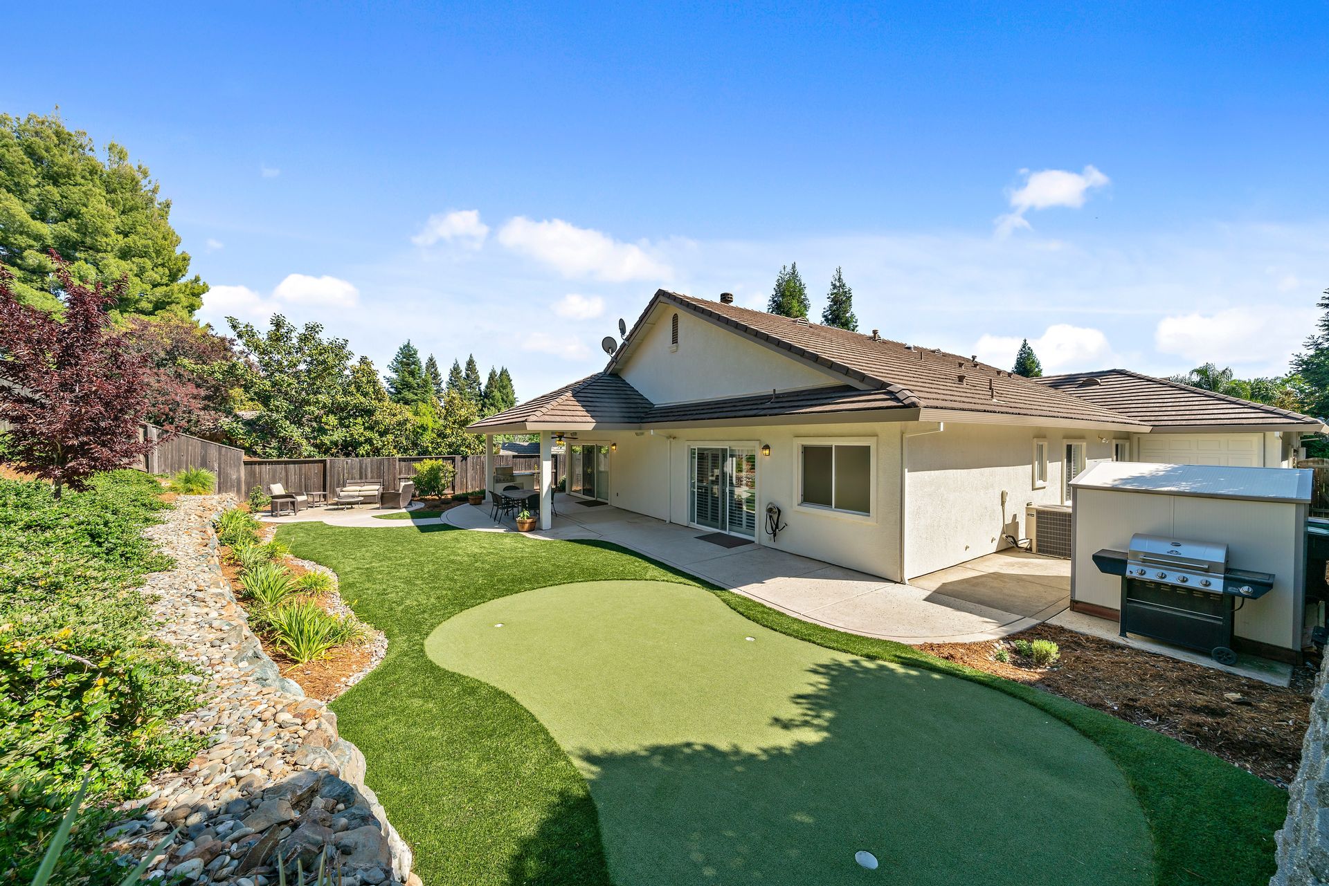 Beautiful Ridgeview custom one-story home in a cul-de-sac offers elegance & privacy. You'll want to stay-at-home in this wonderful 4 bed, 2.5 bath home. Energy saving features; owned solar, whole house fan, ceiling fan & more. Home updates include wide hallways & doorways, ramps at entry, hardwood floors, angled ceilings, open living spaces & a very private backyard with room for social distancing. Remodeled kitchen includes stainless appliances, beautiful granite counters, gorgeous cabinets & flows nicely to nook & oversized family room with soft carpet and a perfectly placed gas fireplace. Elegant details include wainscoting & crown moulding. Separate office room is ideal for working from home. 3-car garage is deep, spacious & has pass-through door. Large backyard is low maintenance & has room for pool. No HOA or Mello Roos. Home & master bath are updated with practical disability features. Top schools, shopping & parks nearby. Easy access to Folsom & Highway 50. Come and see!