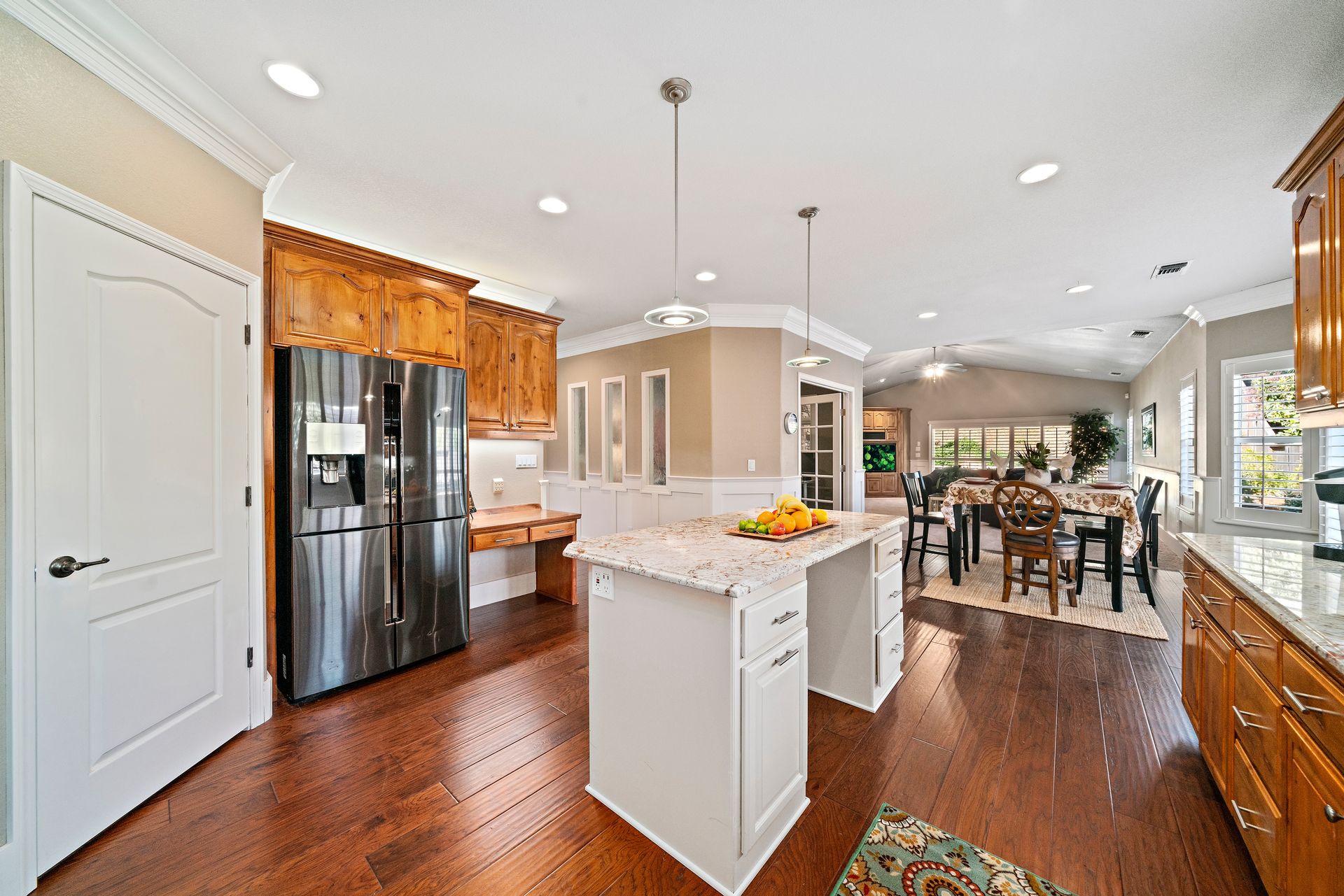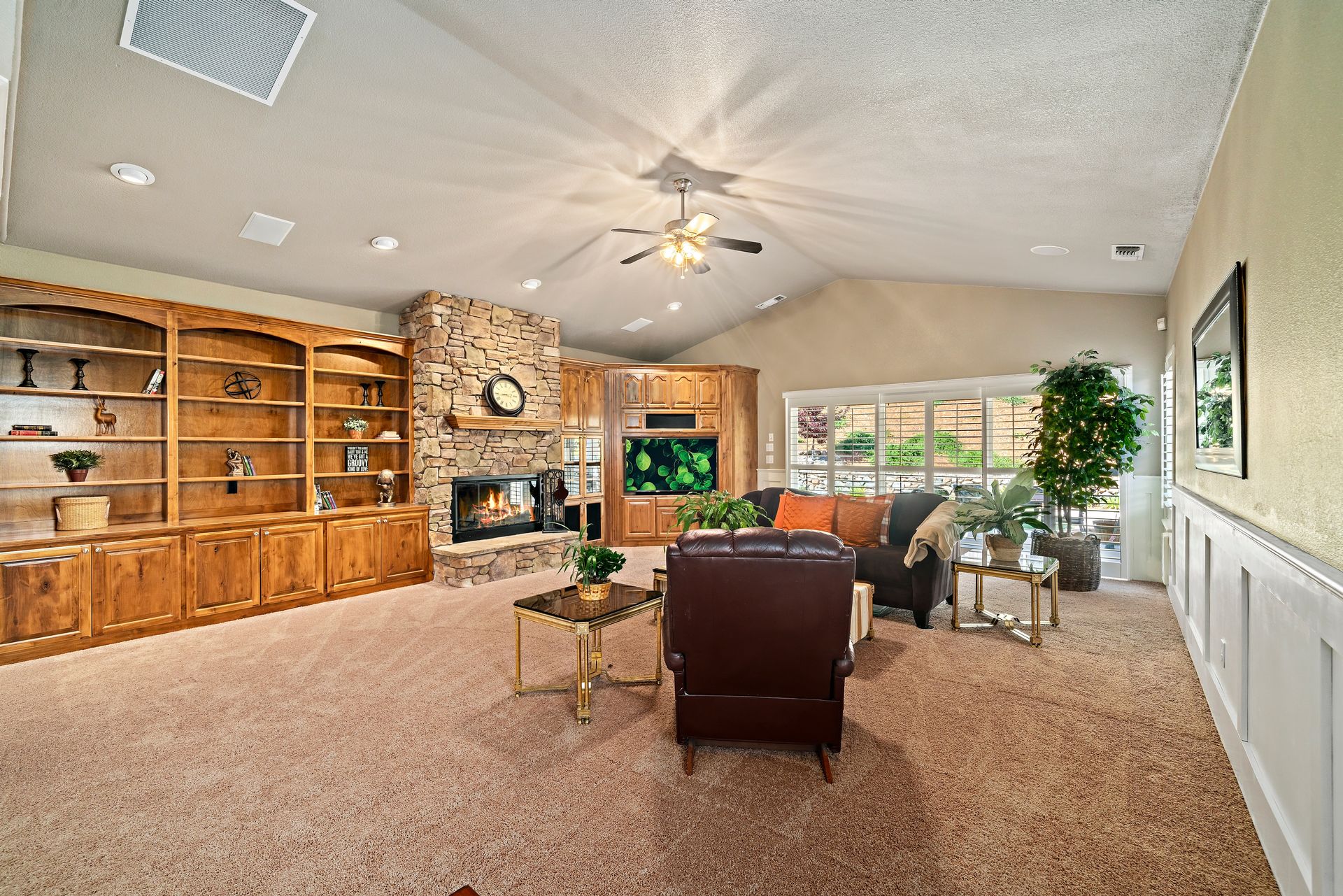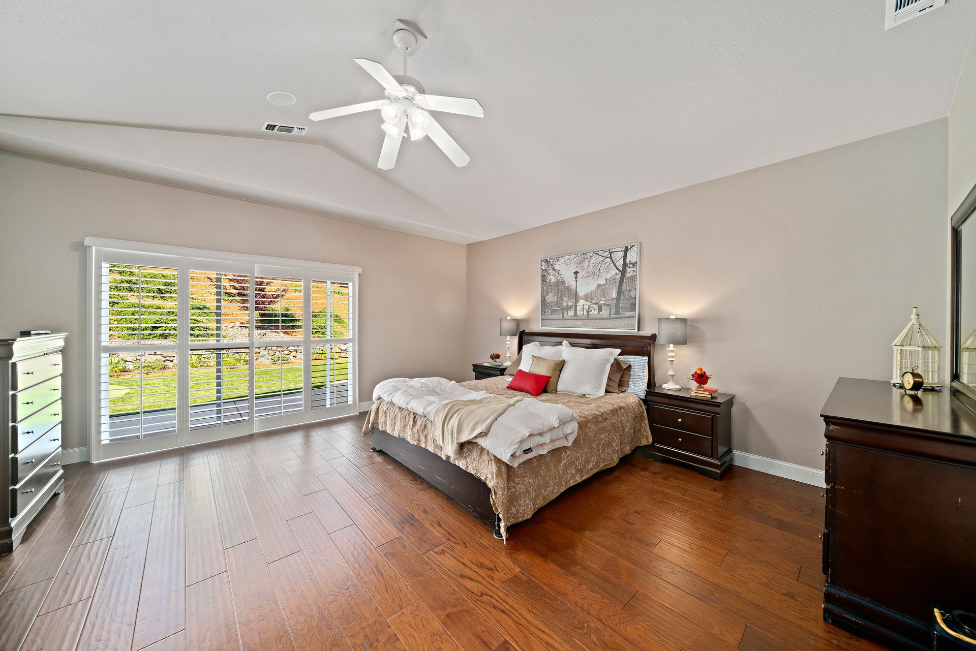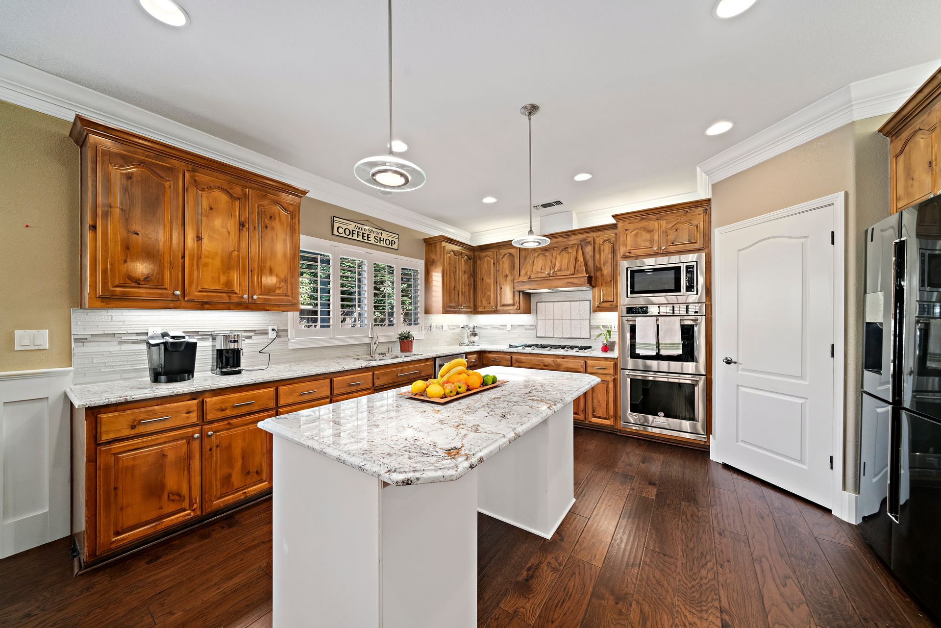 Beautiful Ridgeview custom one-story home in a cul-de-sac offers elegance & privacy. You'll want to stay-at-home in this wonderful 4 bed, 2.5 bath home. Energy saving features; owned solar, whole house fan, ceiling fan & more. Home updates include wide hallways & doorways, ramps at entry, hardwood floors, angled ceilings, open living spaces & a very private backyard with room for social distancing. Remodeled kitchen includes stainless appliances, beautiful granite counters, gorgeous cabinets & flows nicely to nook & oversized family room with soft carpet and a perfectly placed gas fireplace. Elegant details include wainscoting & crown moulding. Separate office room is ideal for working from home. 3-car garage is deep, spacious & has pass-through door. Large backyard is low maintenance & has room for pool. No HOA or Mello Roos. Home & master bath are updated with practical disability features. Top schools, shopping & parks nearby. Easy access to Folsom & Highway 50. Come and see!