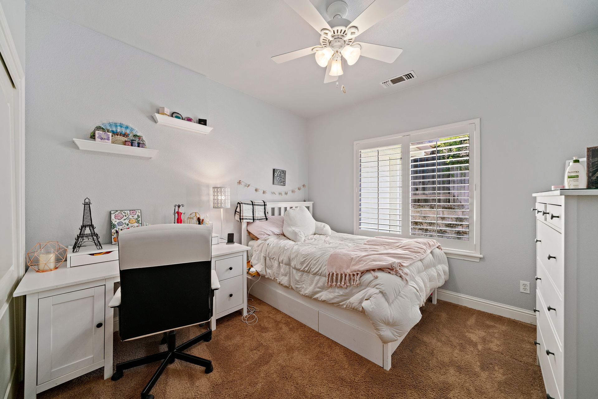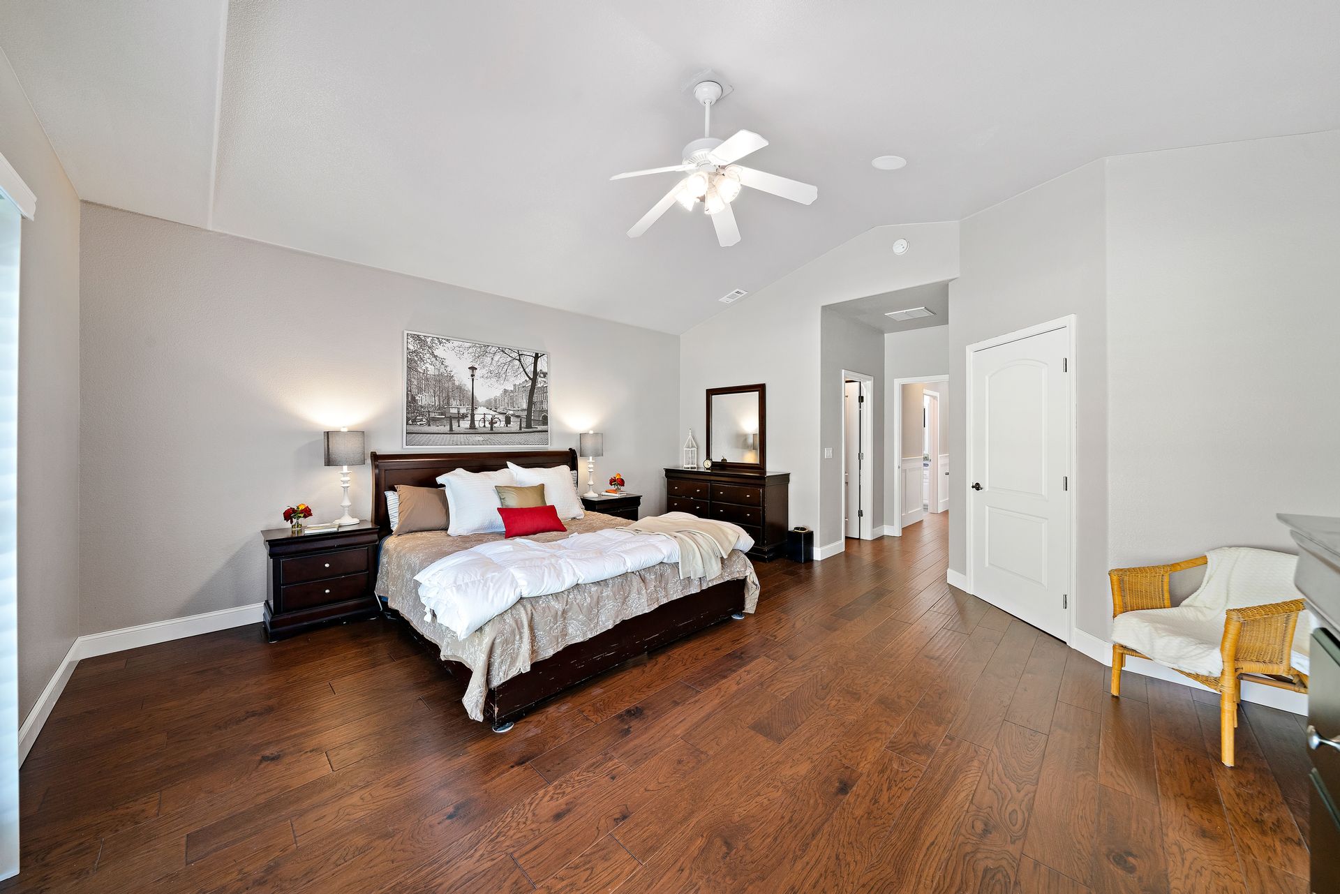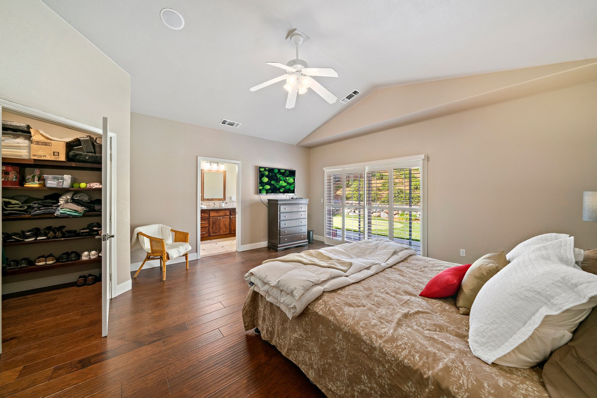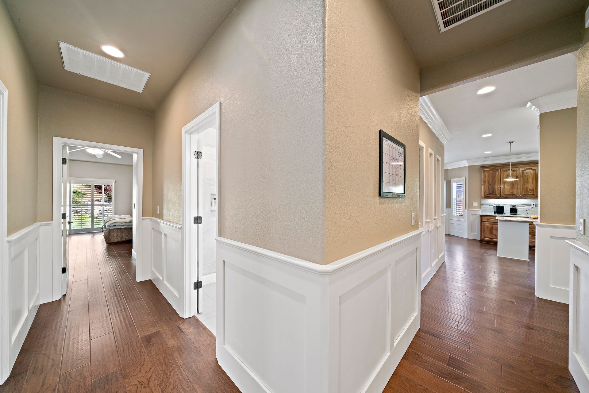 Beautiful Ridgeview custom one-story home in a cul-de-sac offers elegance & privacy. You'll want to stay-at-home in this wonderful 4 bed, 2.5 bath home. Energy saving features; owned solar, whole house fan, ceiling fan & more. Home updates include wide hallways & doorways, ramps at entry, hardwood floors, angled ceilings, open living spaces & a very private backyard with room for social distancing. Remodeled kitchen includes stainless appliances, beautiful granite counters, gorgeous cabinets & flows nicely to nook & oversized family room with soft carpet and a perfectly placed gas fireplace. Elegant details include wainscoting & crown moulding. Separate office room is ideal for working from home. 3-car garage is deep, spacious & has pass-through door. Large backyard is low maintenance & has room for pool. No HOA or Mello Roos. Home & master bath are updated with practical disability features. Top schools, shopping & parks nearby. Easy access to Folsom & Highway 50. Come and see!